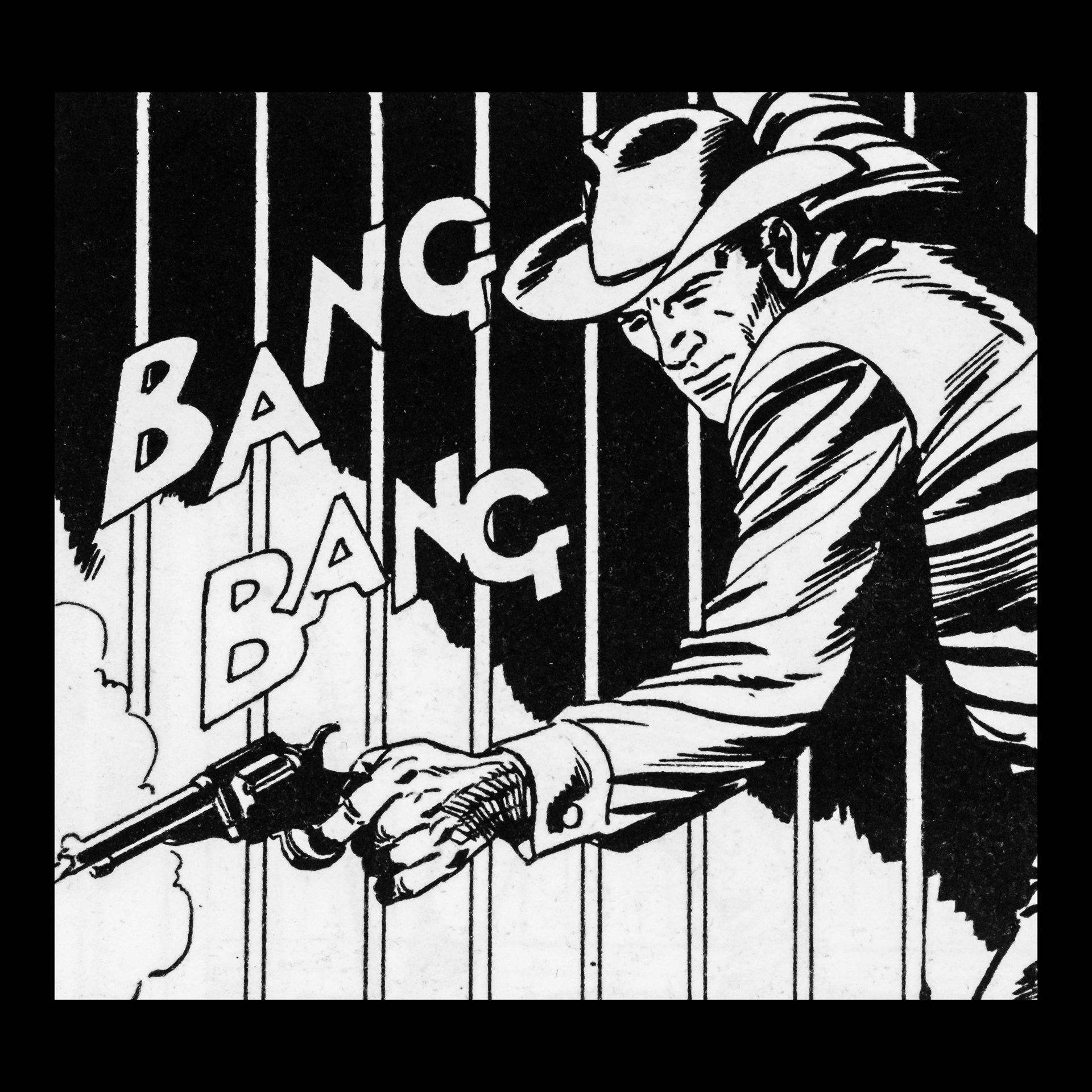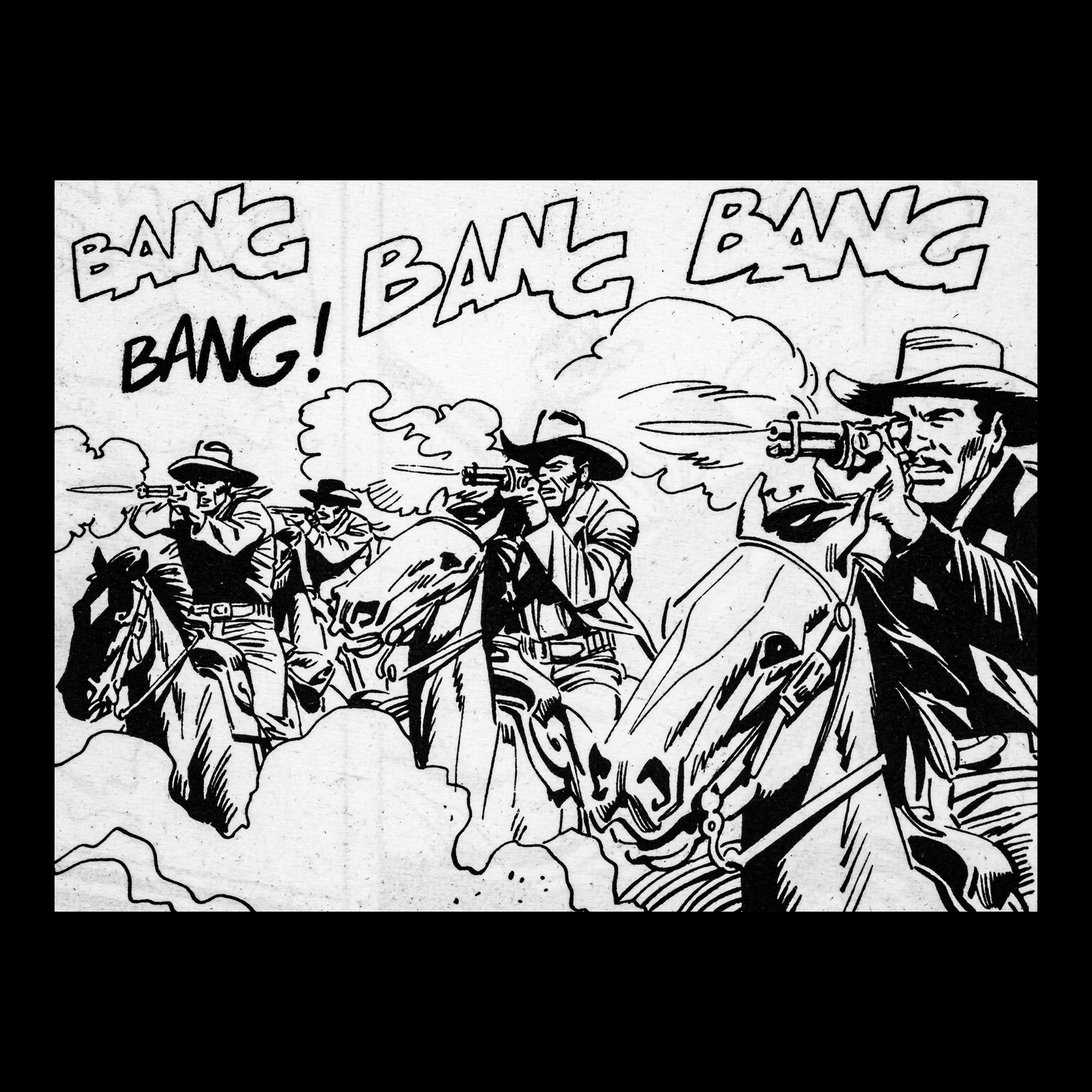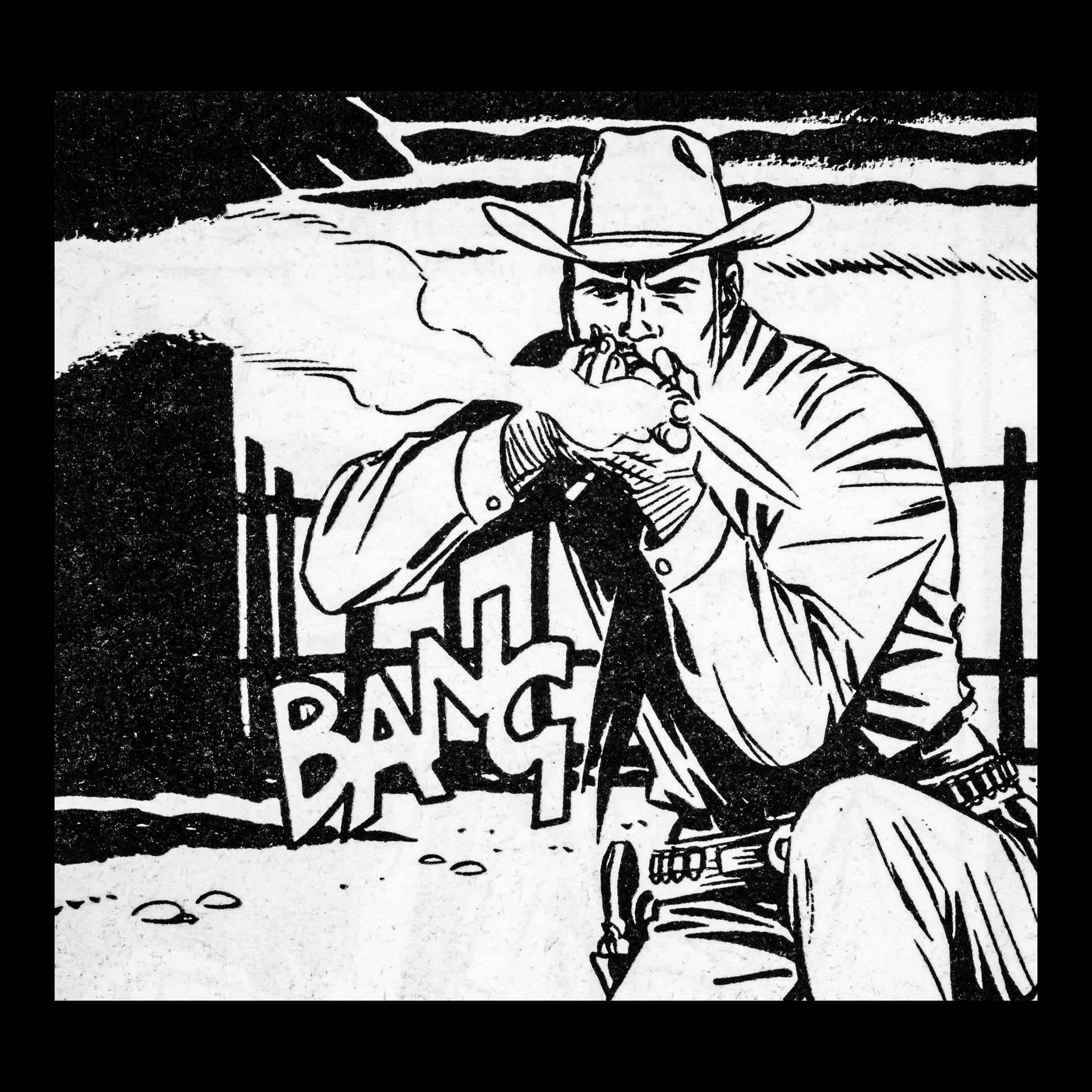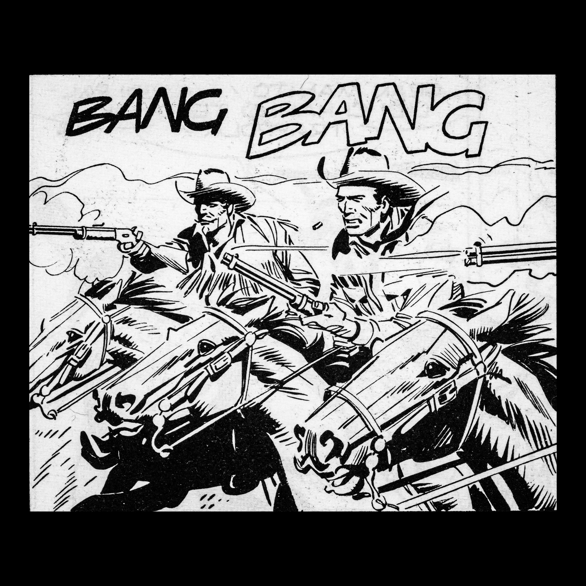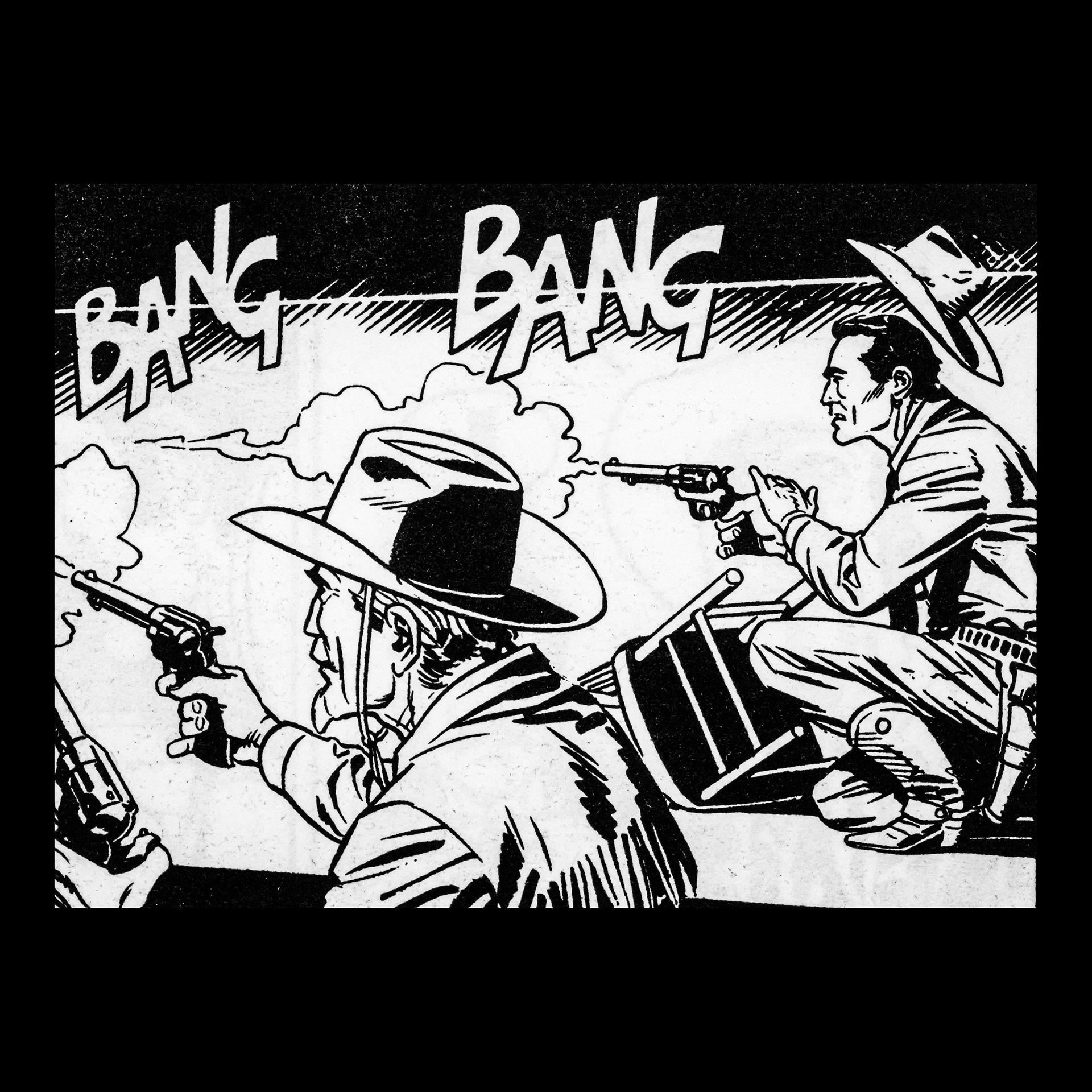 In this project I used Italian Western comics from the 1960s as an archive of mechanical gestures and encoded sounds. By scanning the original vintage issues, I isolated a single element: the sound-word that attempts to translate a gunshot into a graphic sign.