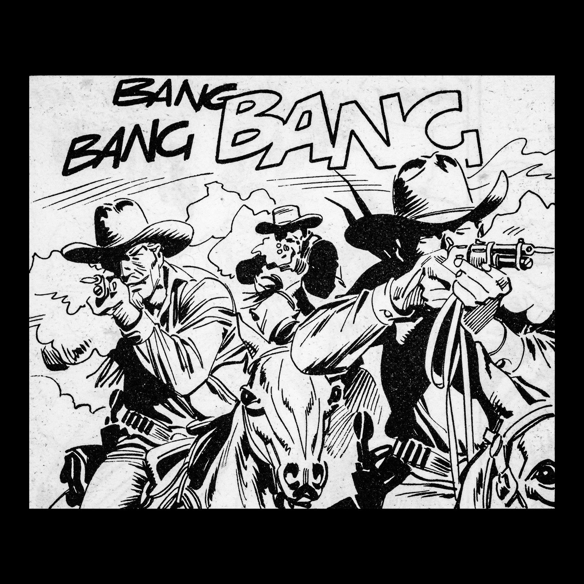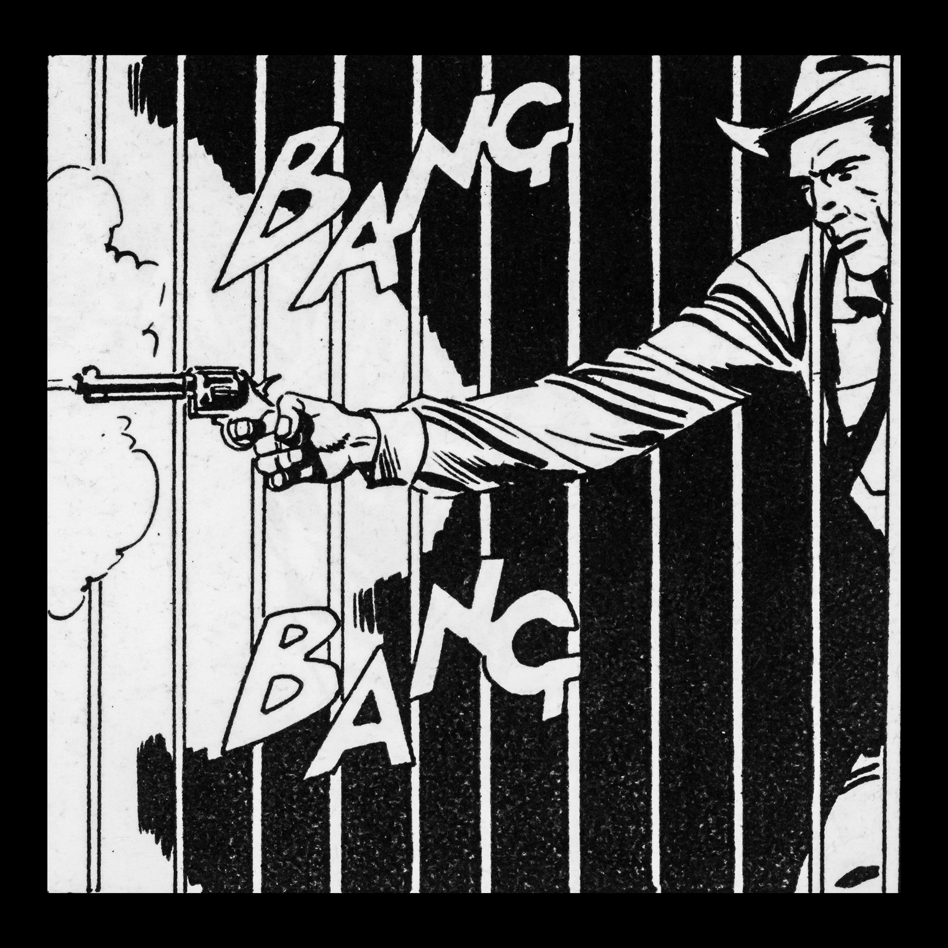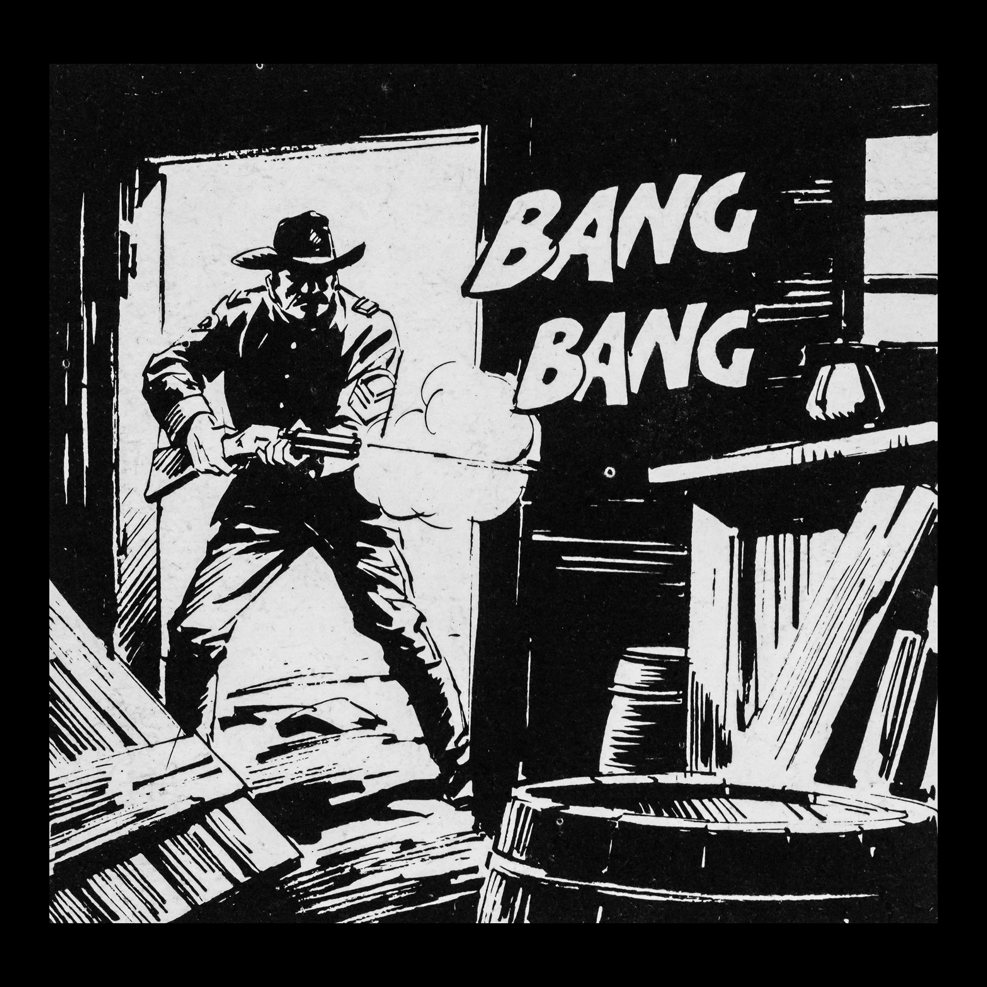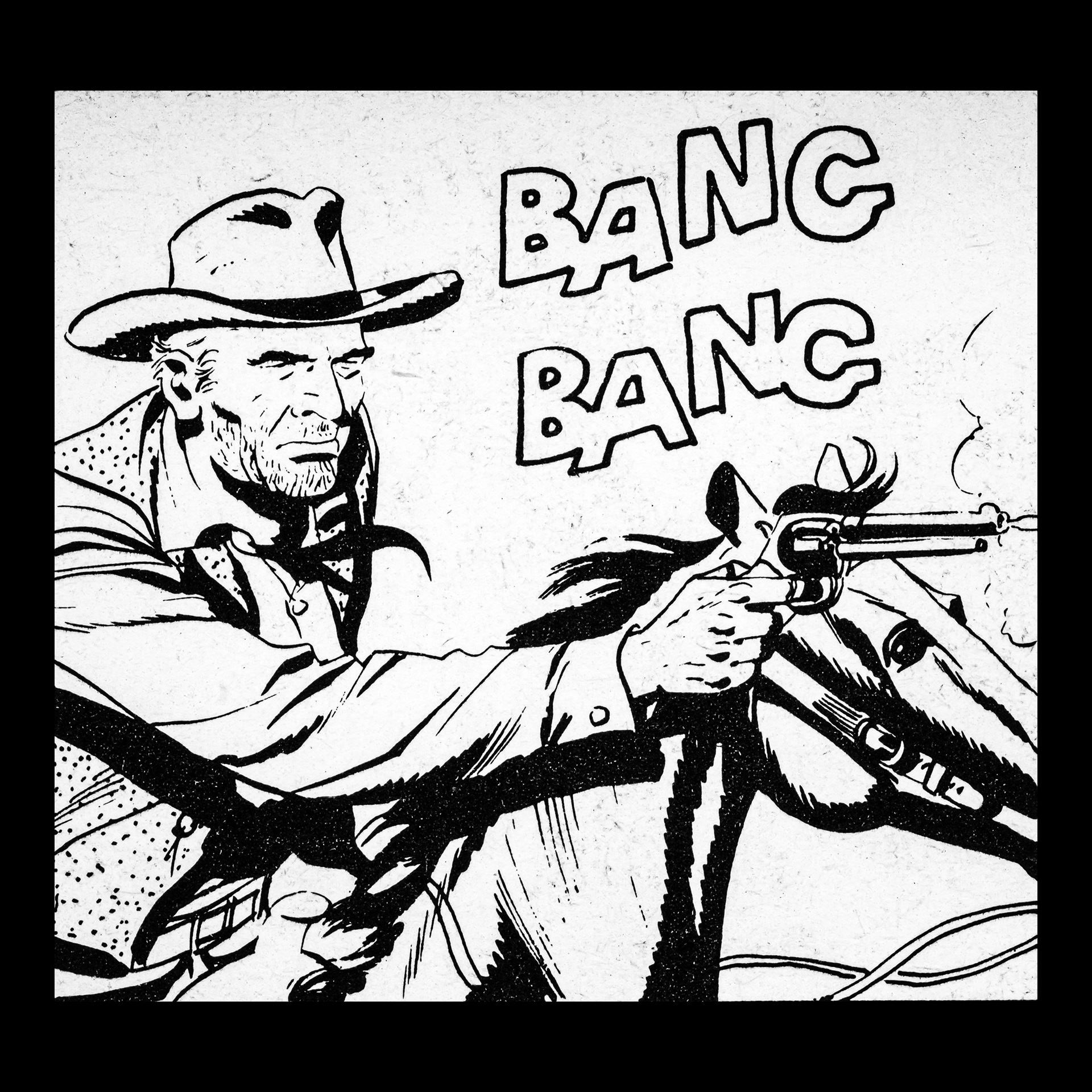 In this project I used Italian Western comics from the 1960s as an archive of mechanical gestures and encoded sounds. By scanning the original vintage issues, I isolated a single element: the sound-word that attempts to translate a gunshot into a graphic sign.