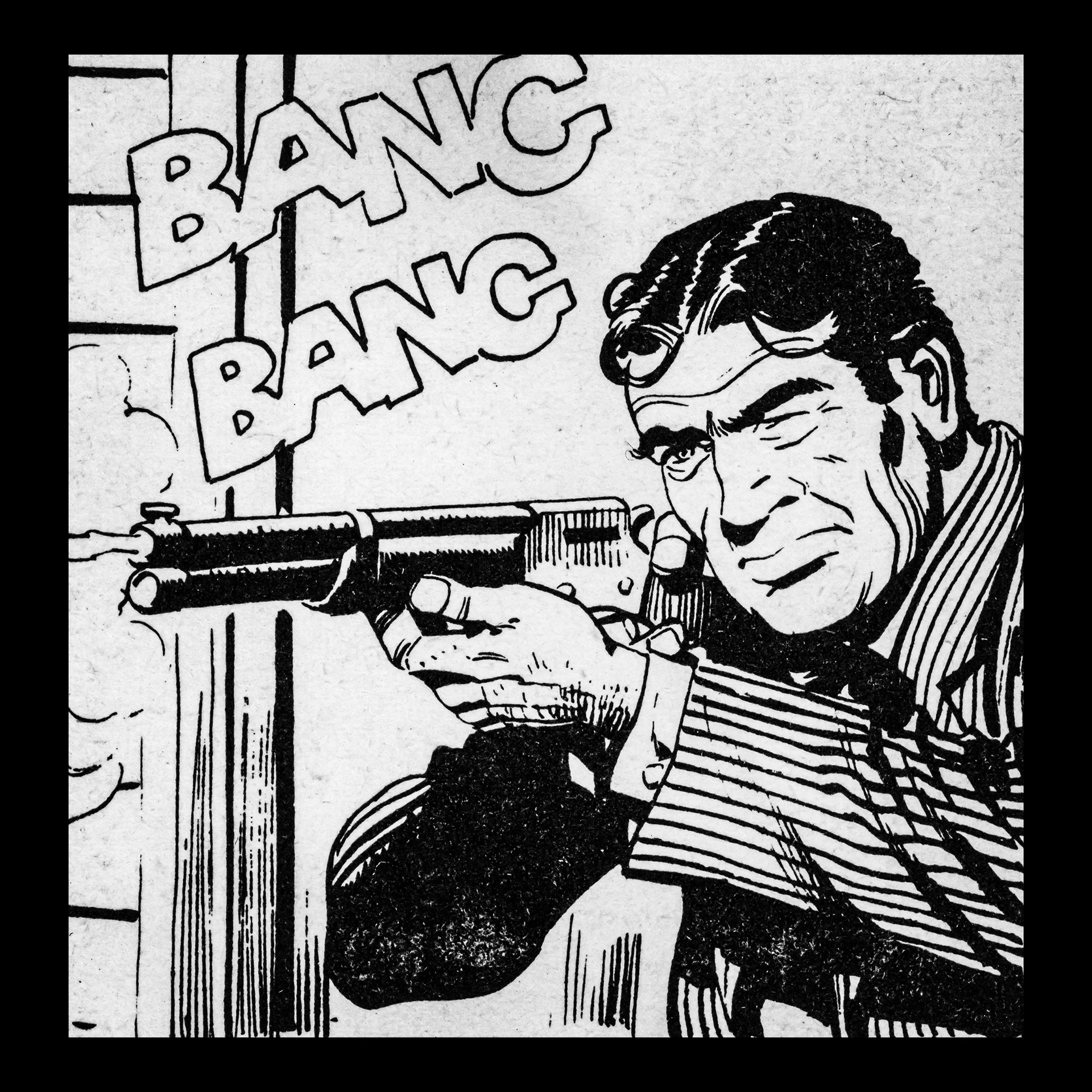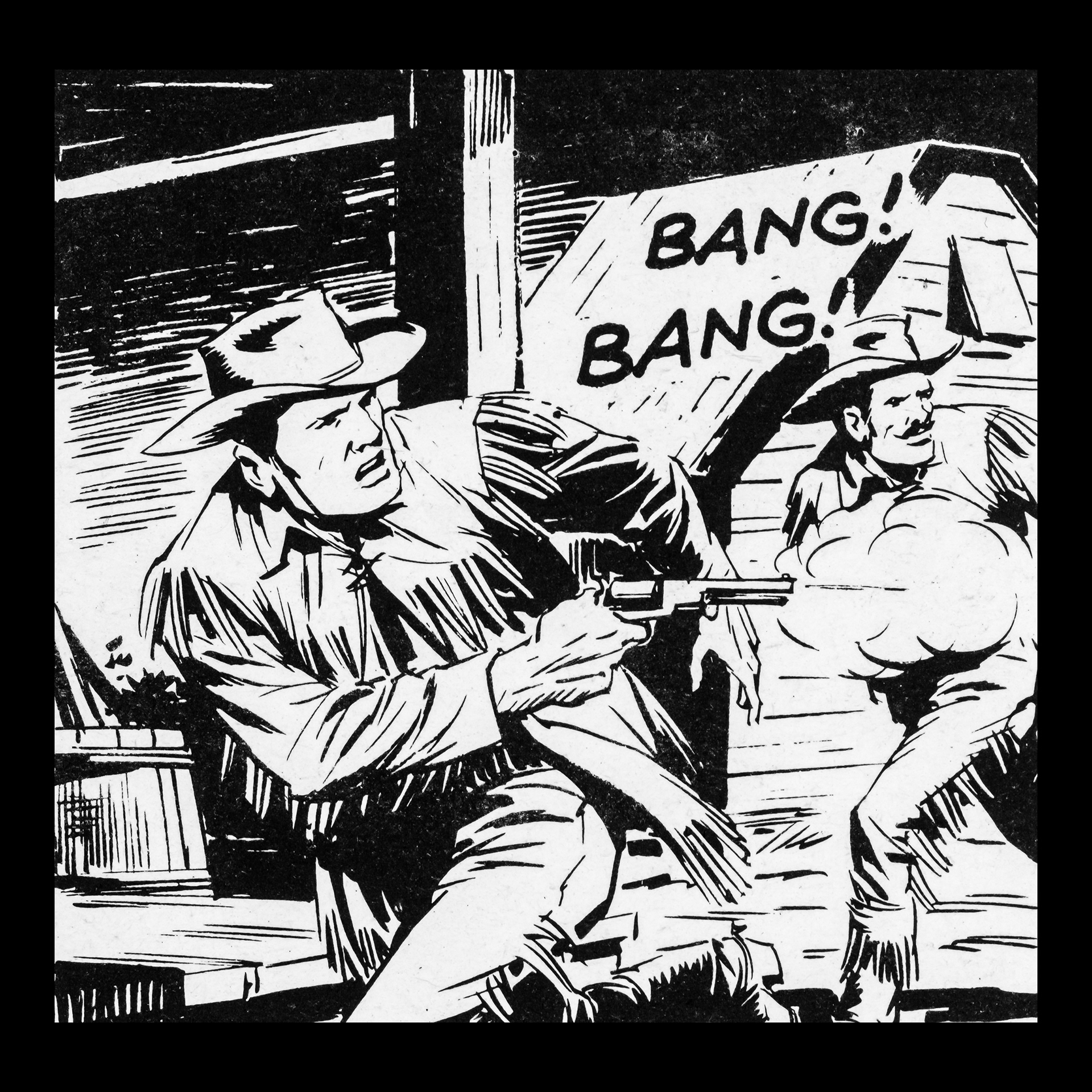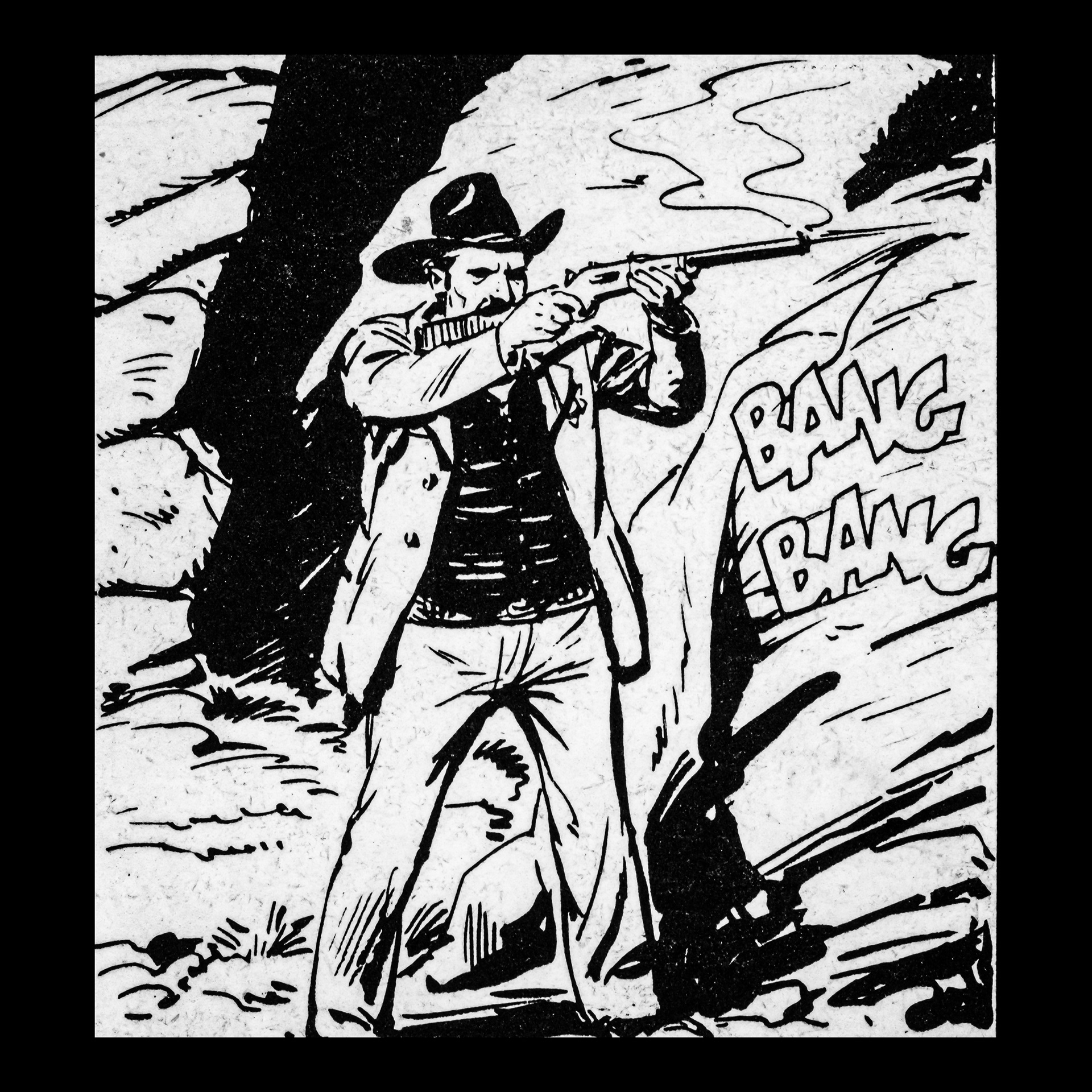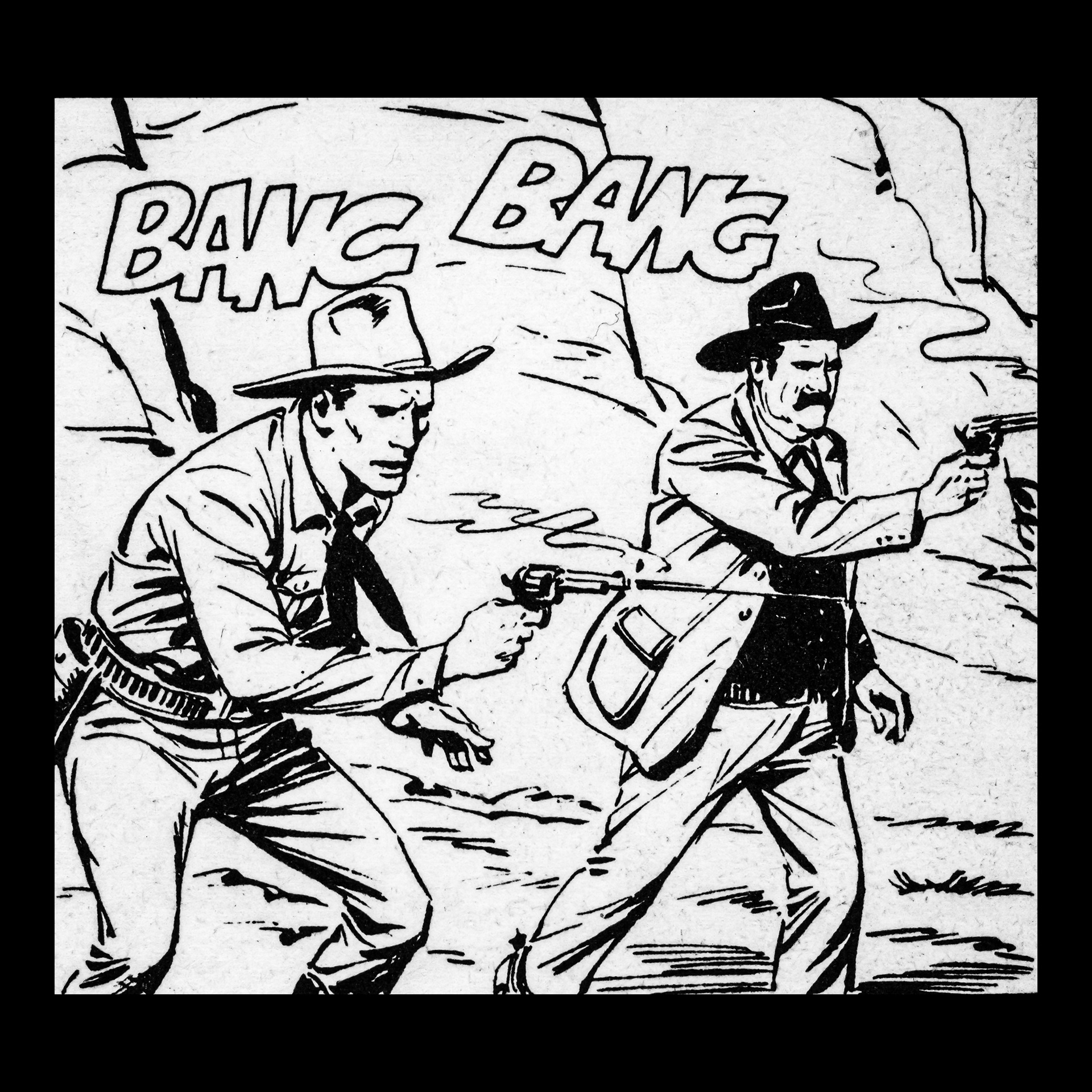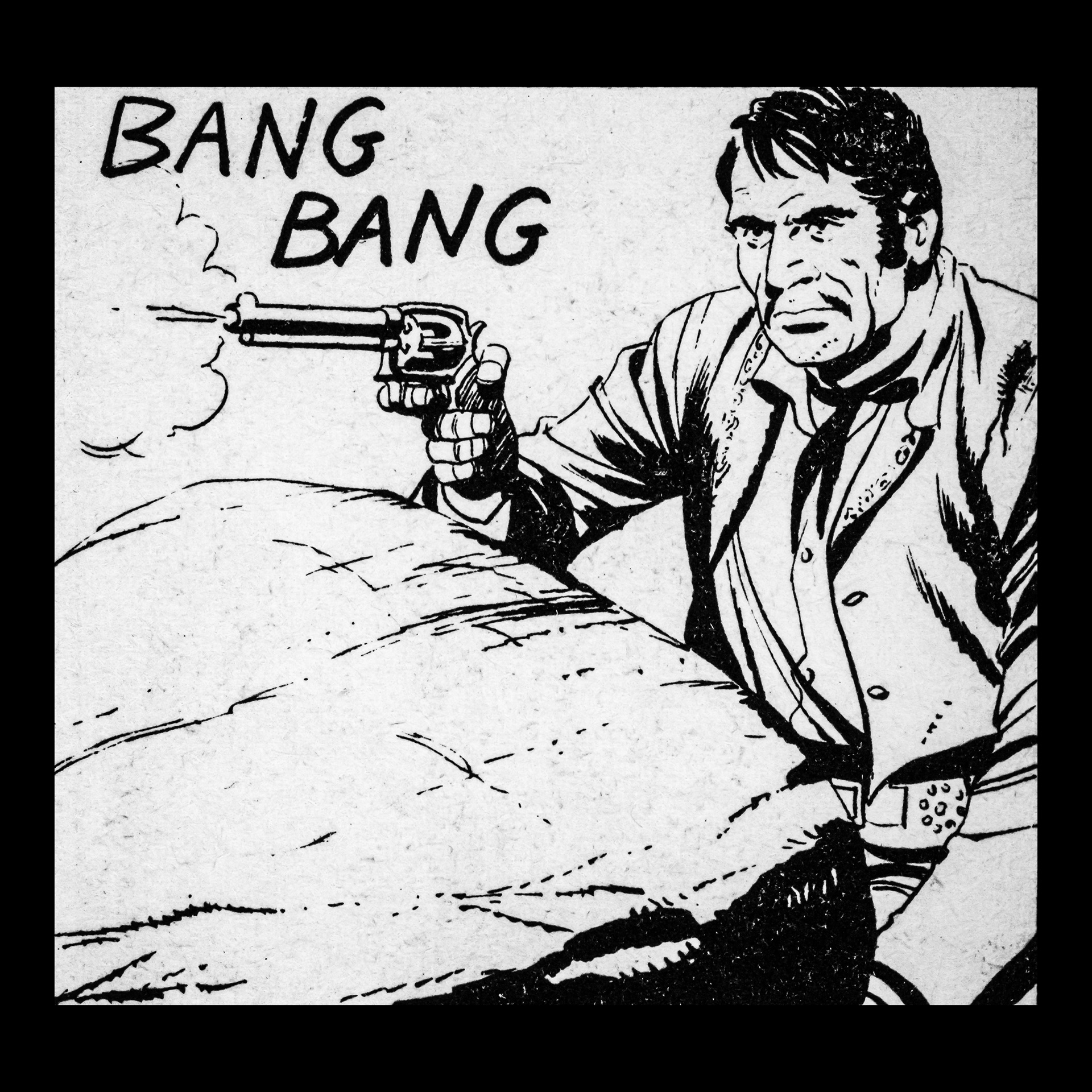 In this project I used Italian Western comics from the 1960s as an archive of mechanical gestures and encoded sounds. By scanning the original vintage issues, I isolated a single element: the sound-word that attempts to translate a gunshot into a graphic sign.