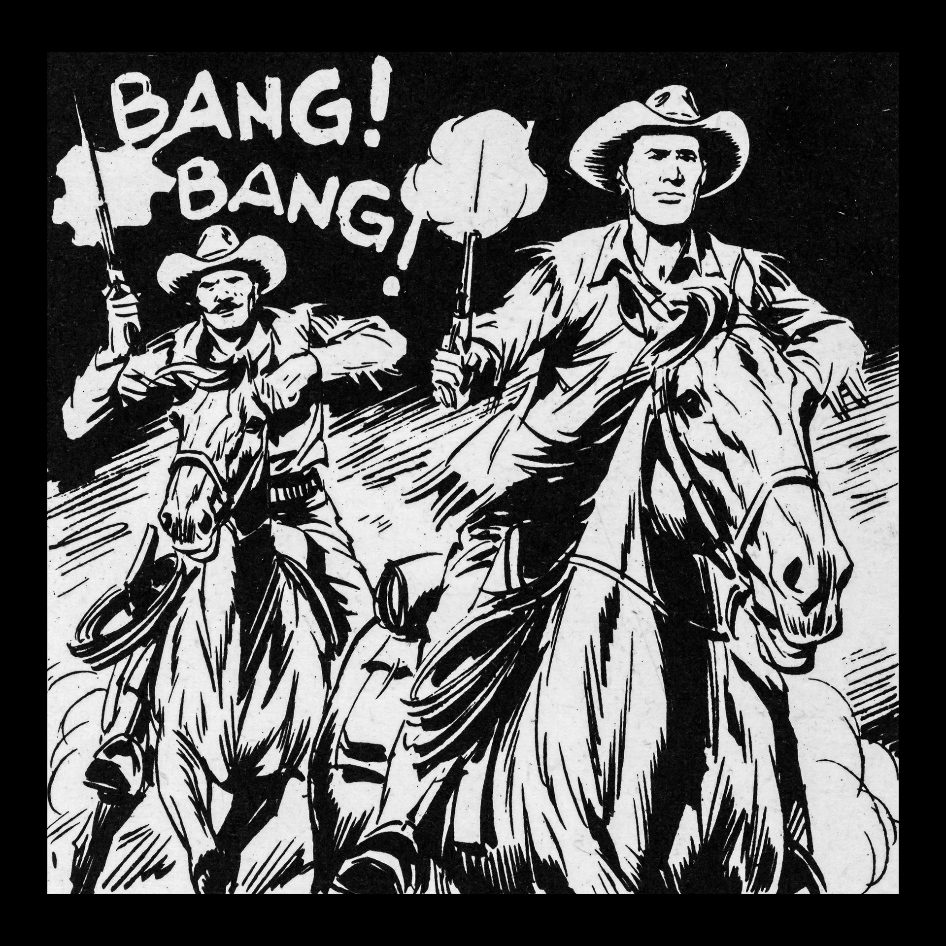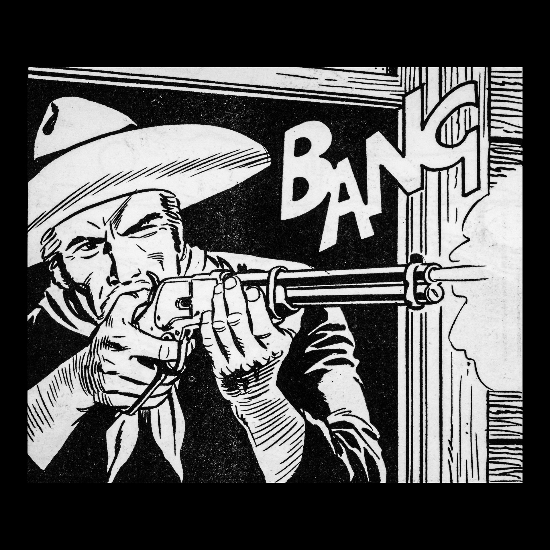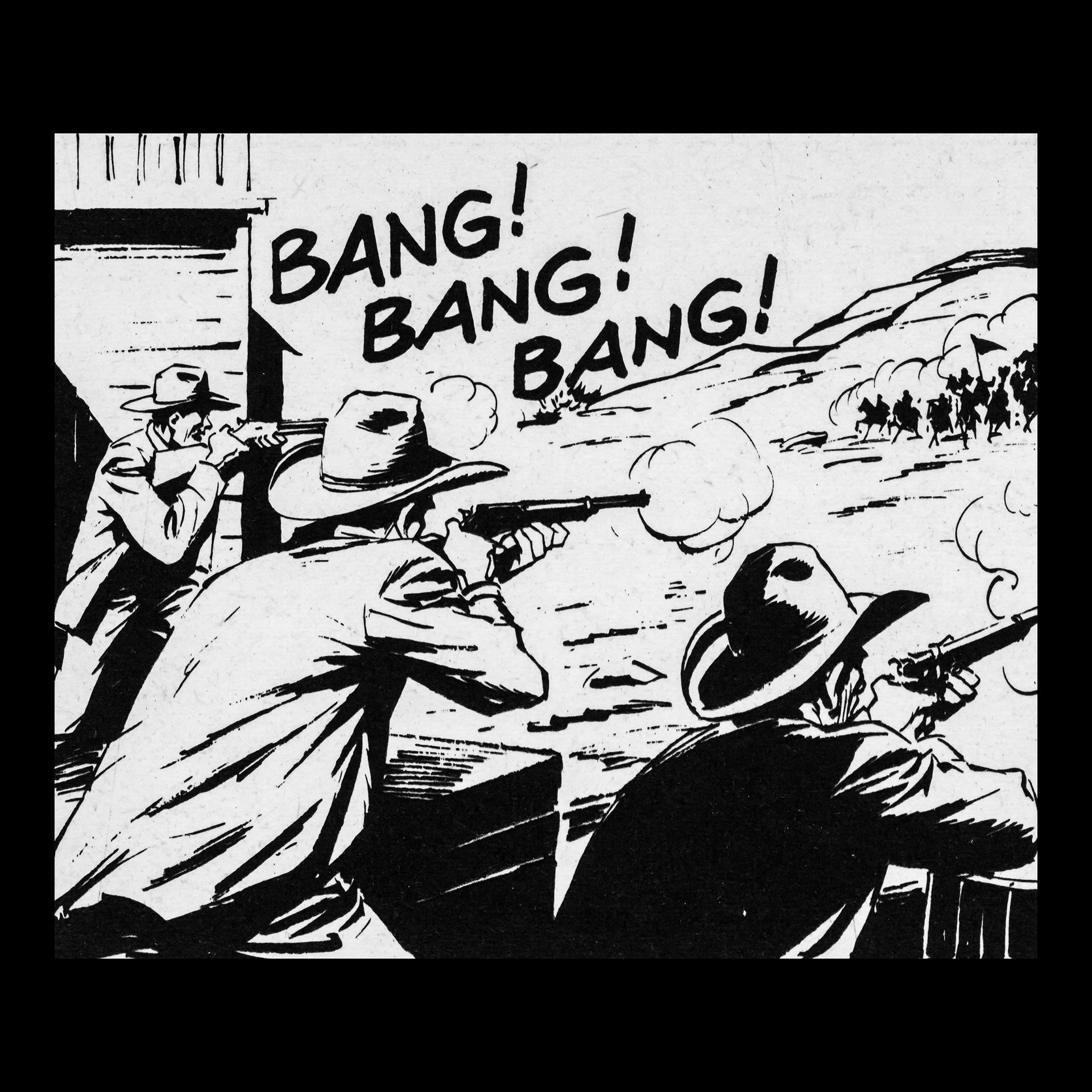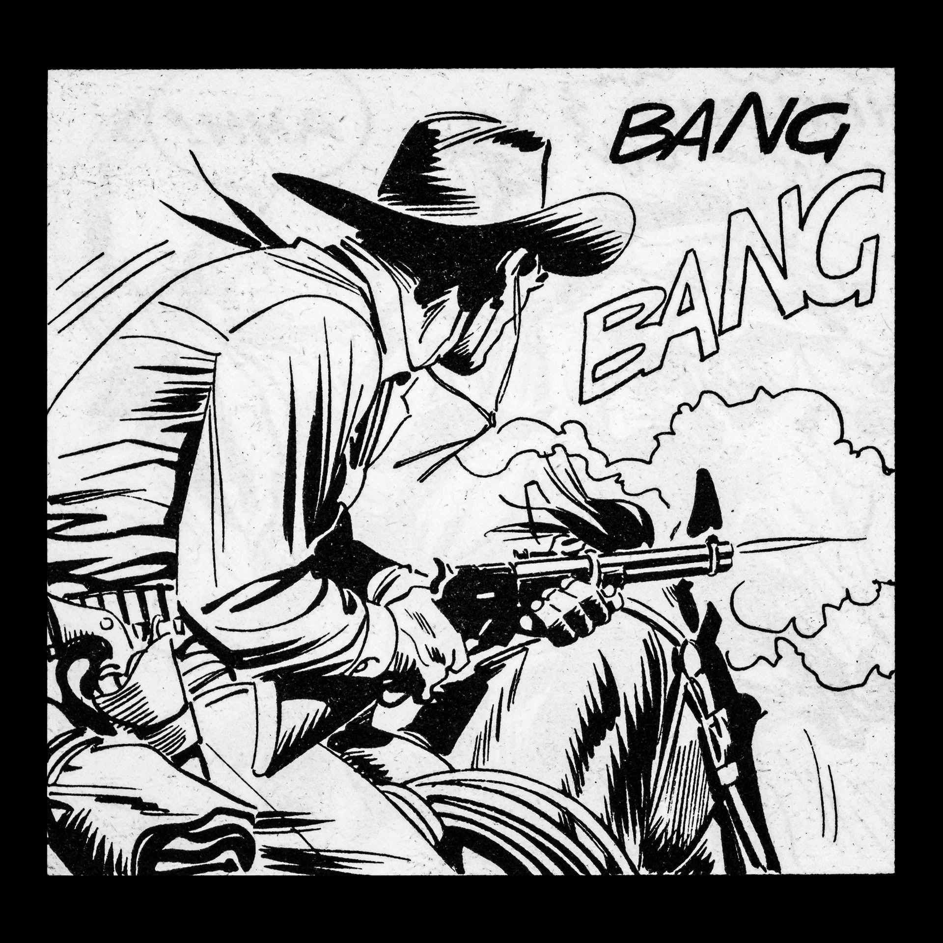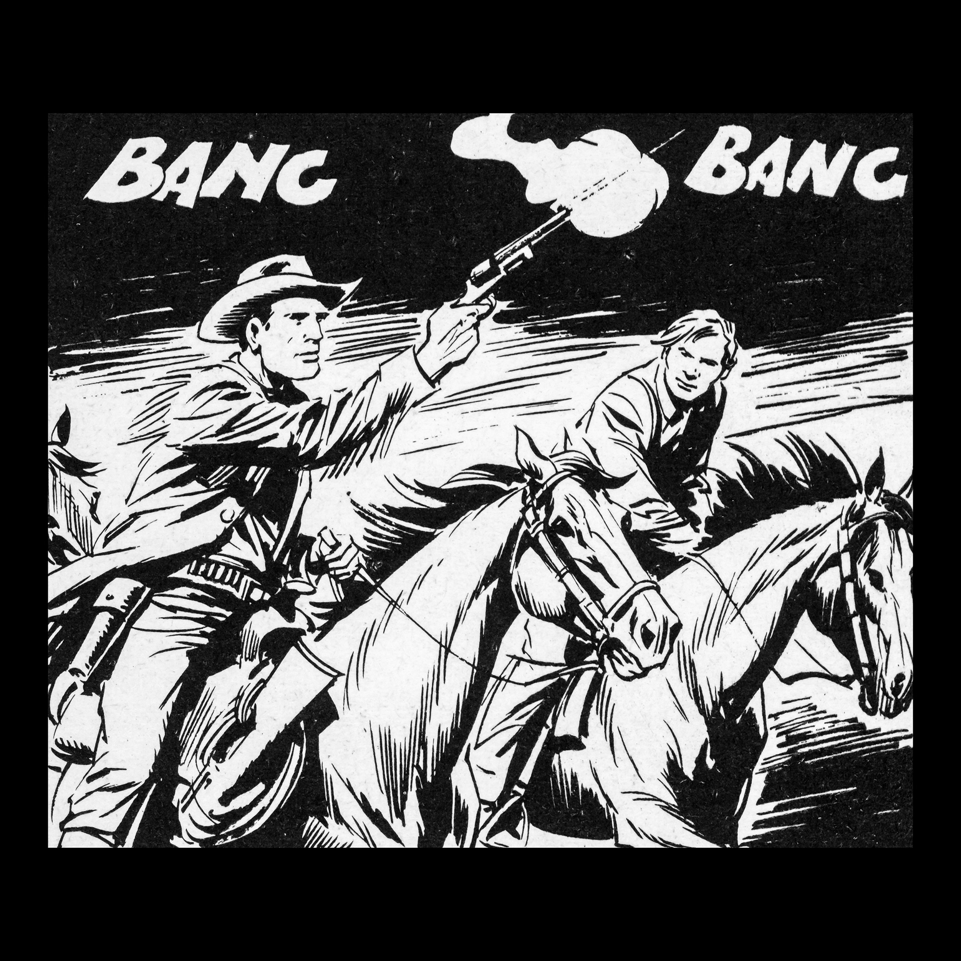 In this project I used Italian Western comics from the 1960s as an archive of mechanical gestures and encoded sounds. By scanning the original vintage issues, I isolated a single element: the sound-word that attempts to translate a gunshot into a graphic sign.