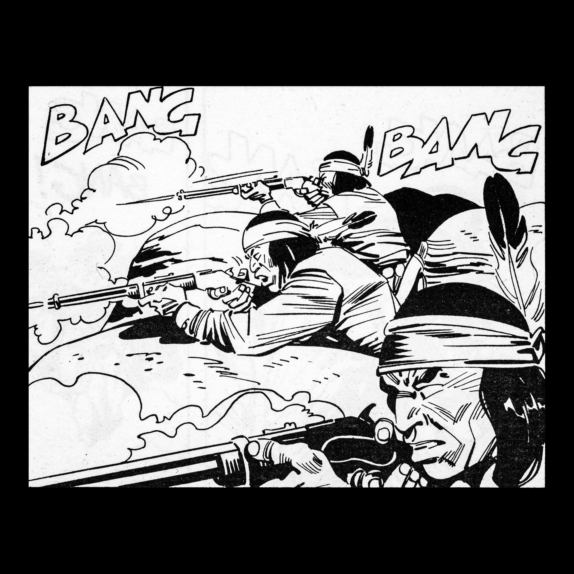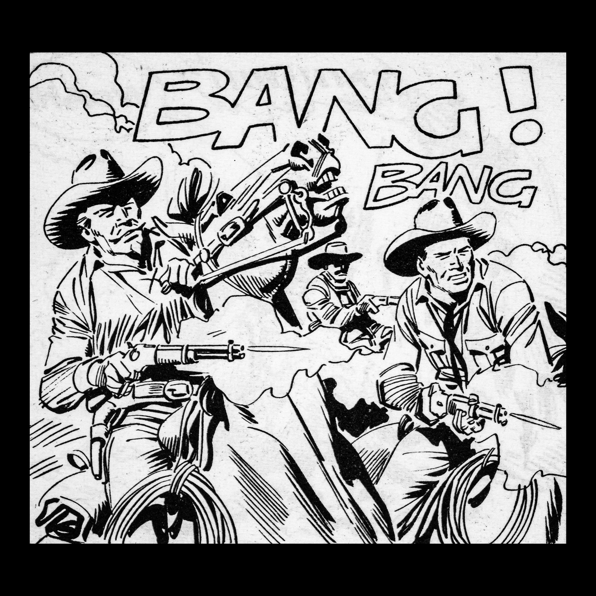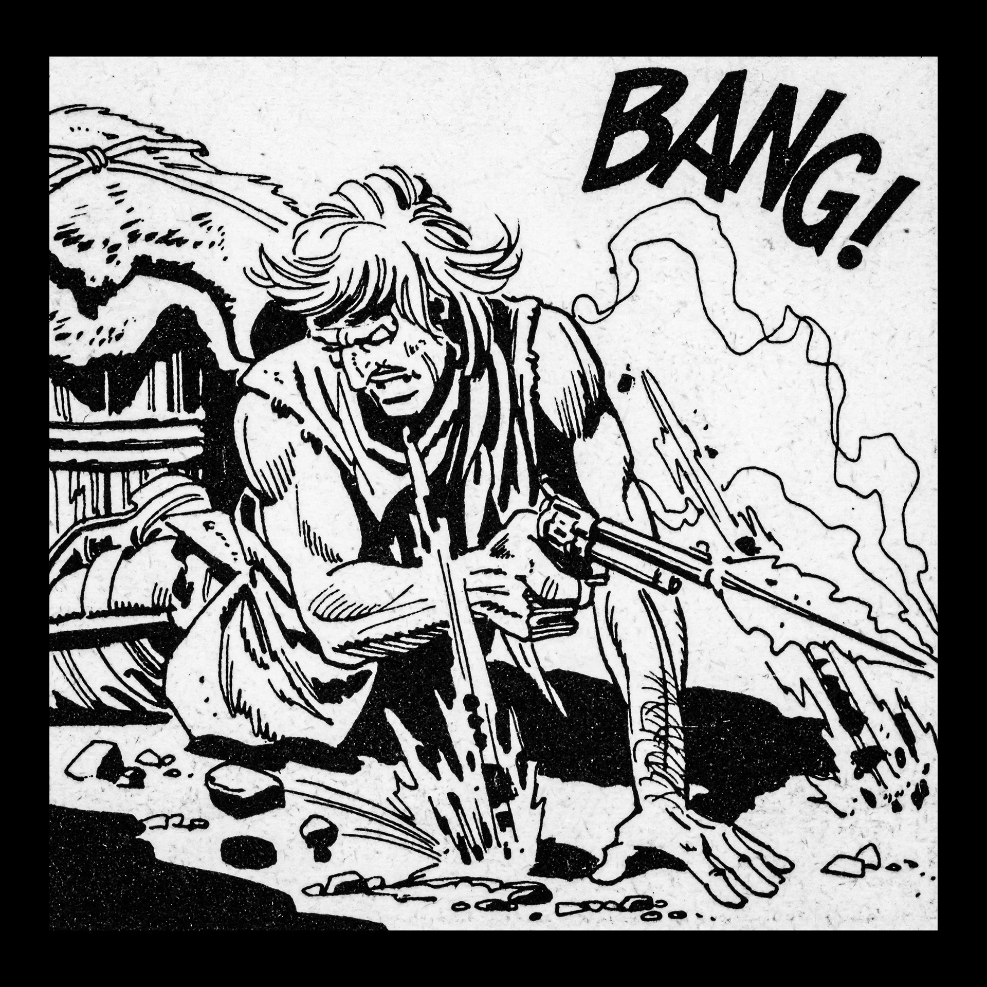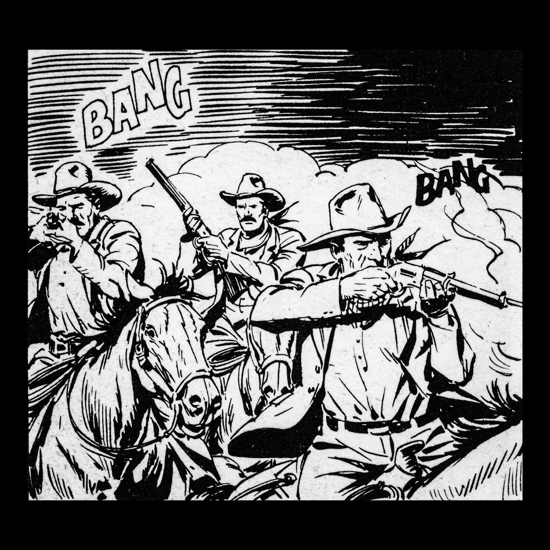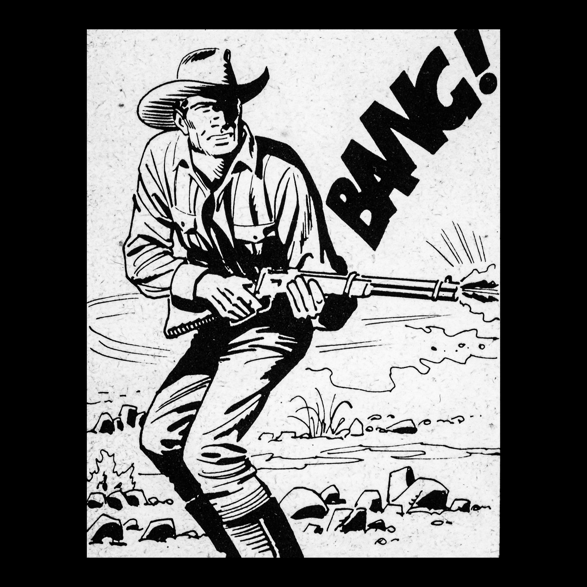 In this project I used Italian Western comics from the 1960s as an archive of mechanical gestures and encoded sounds. By scanning the original vintage issues, I isolated a single element: the sound-word that attempts to translate a gunshot into a graphic sign.