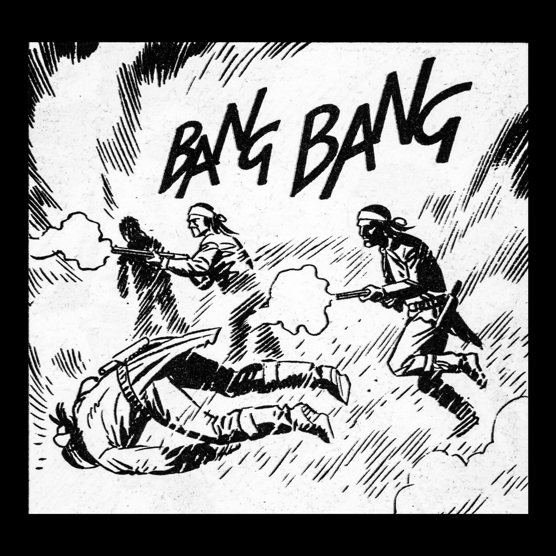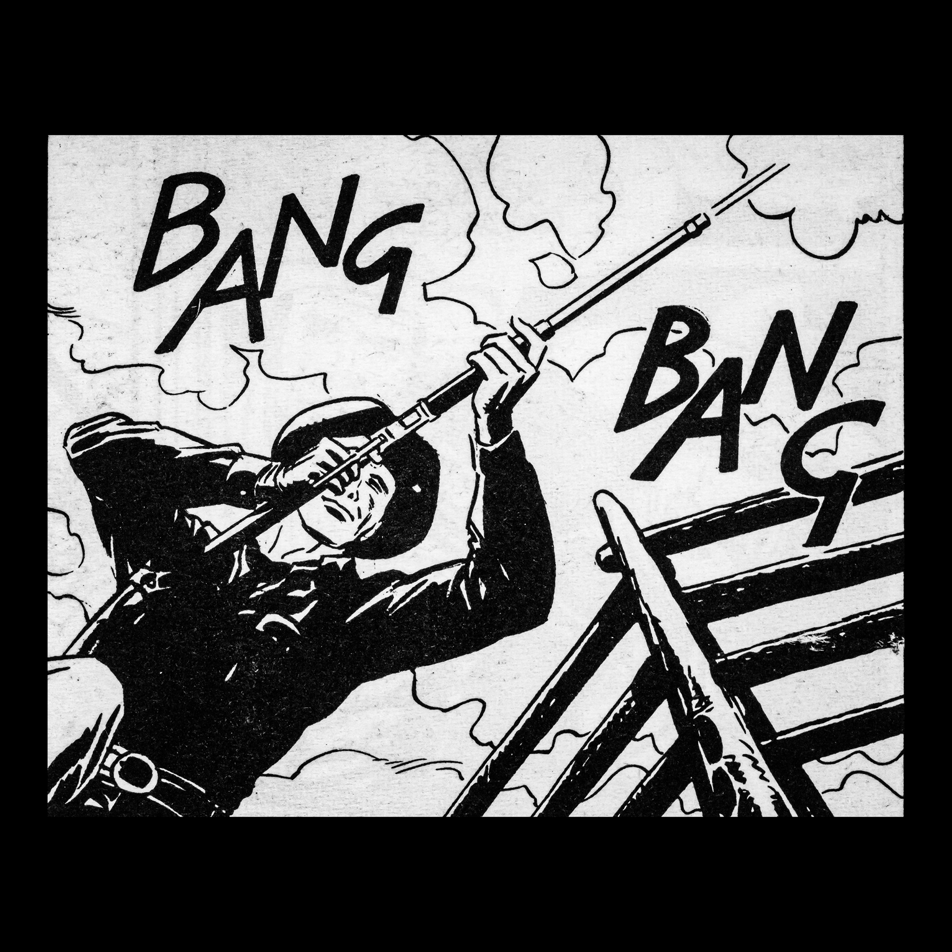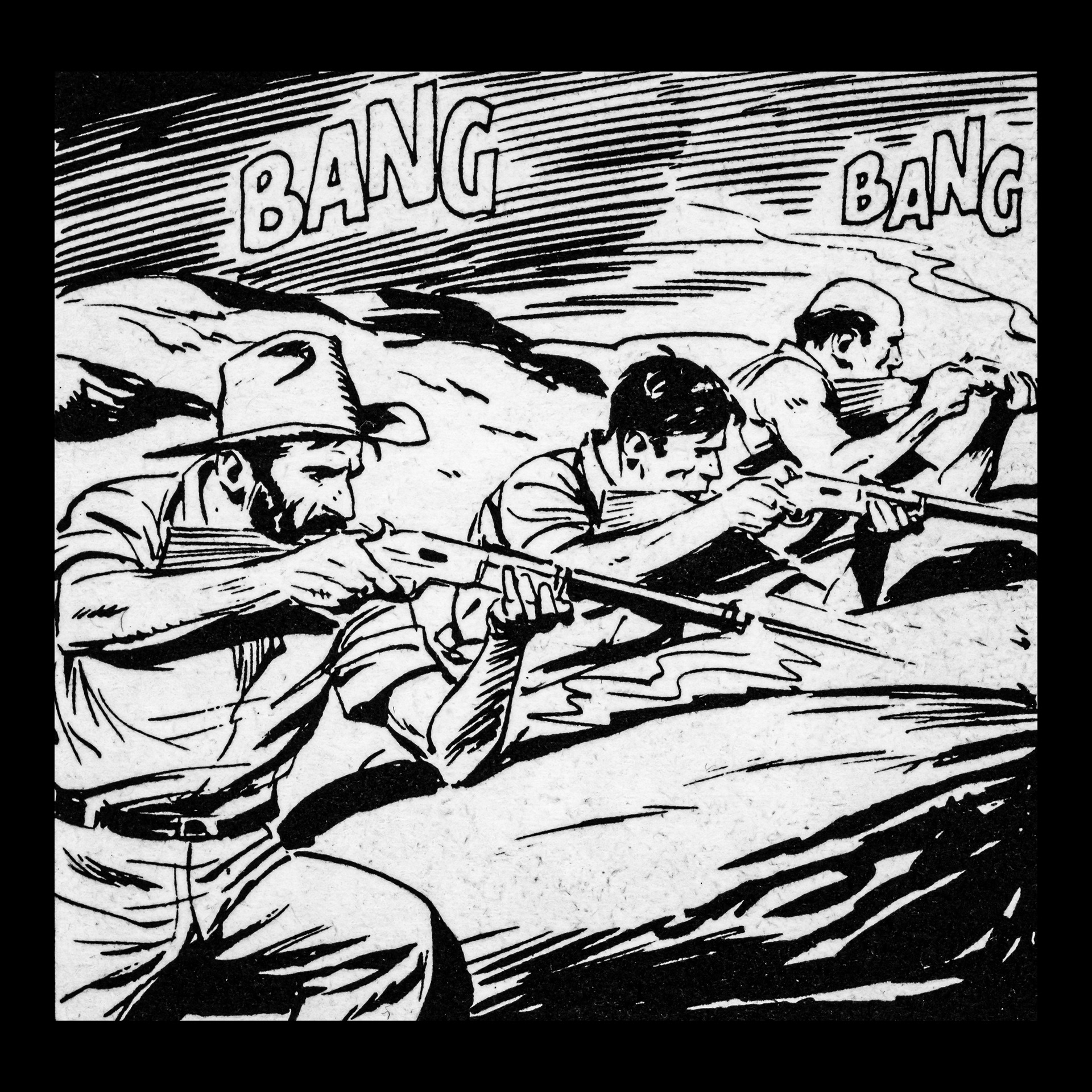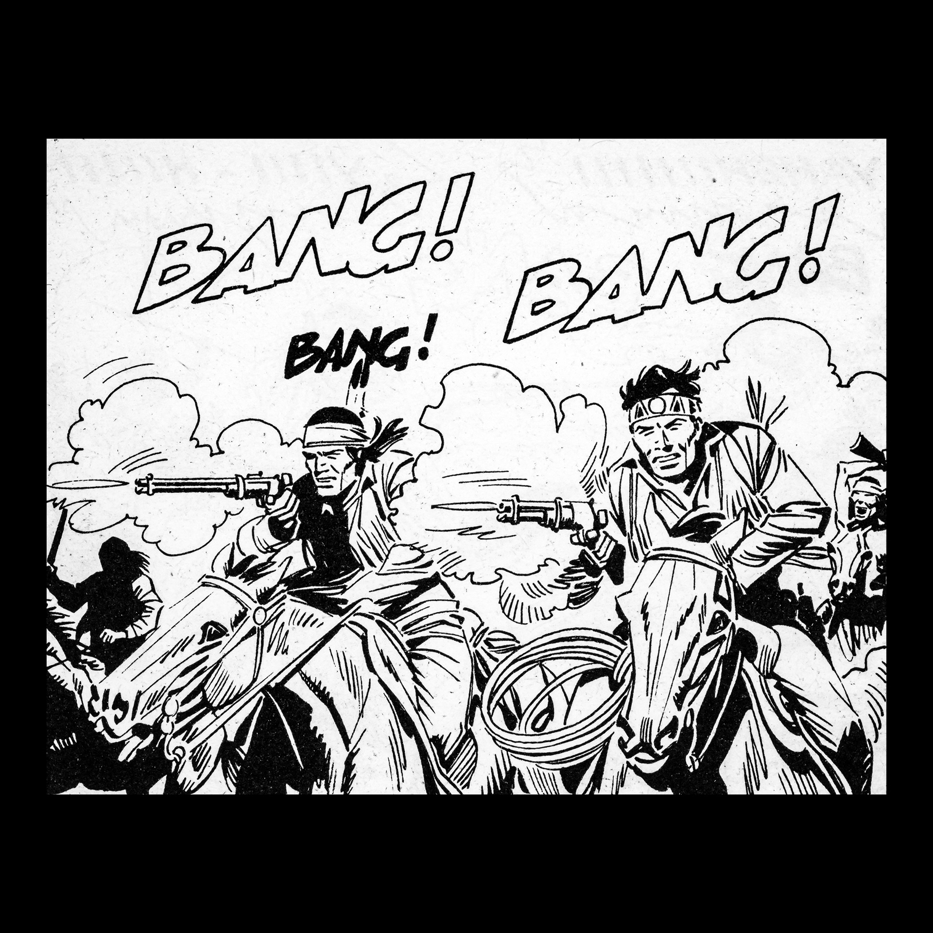 In this project I used Italian Western comics from the 1960s as an archive of mechanical gestures and encoded sounds. By scanning the original vintage issues, I isolated a single element: the sound-word that attempts to translate a gunshot into a graphic sign.