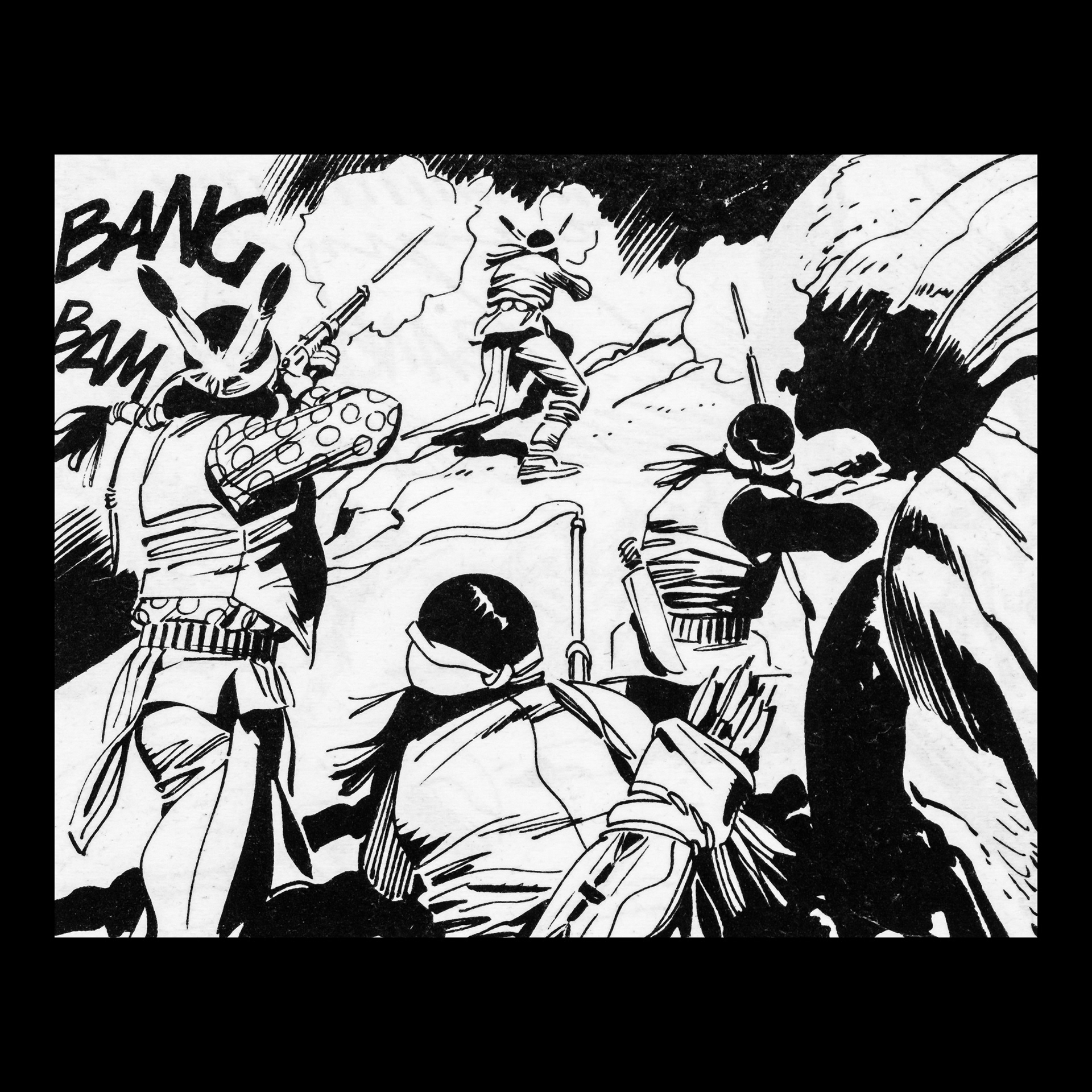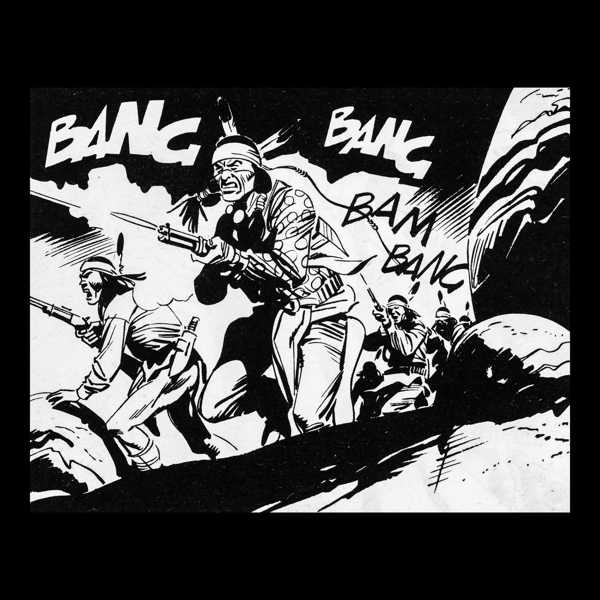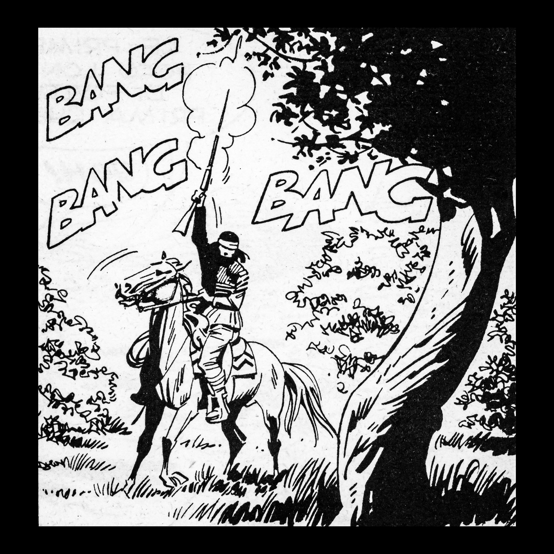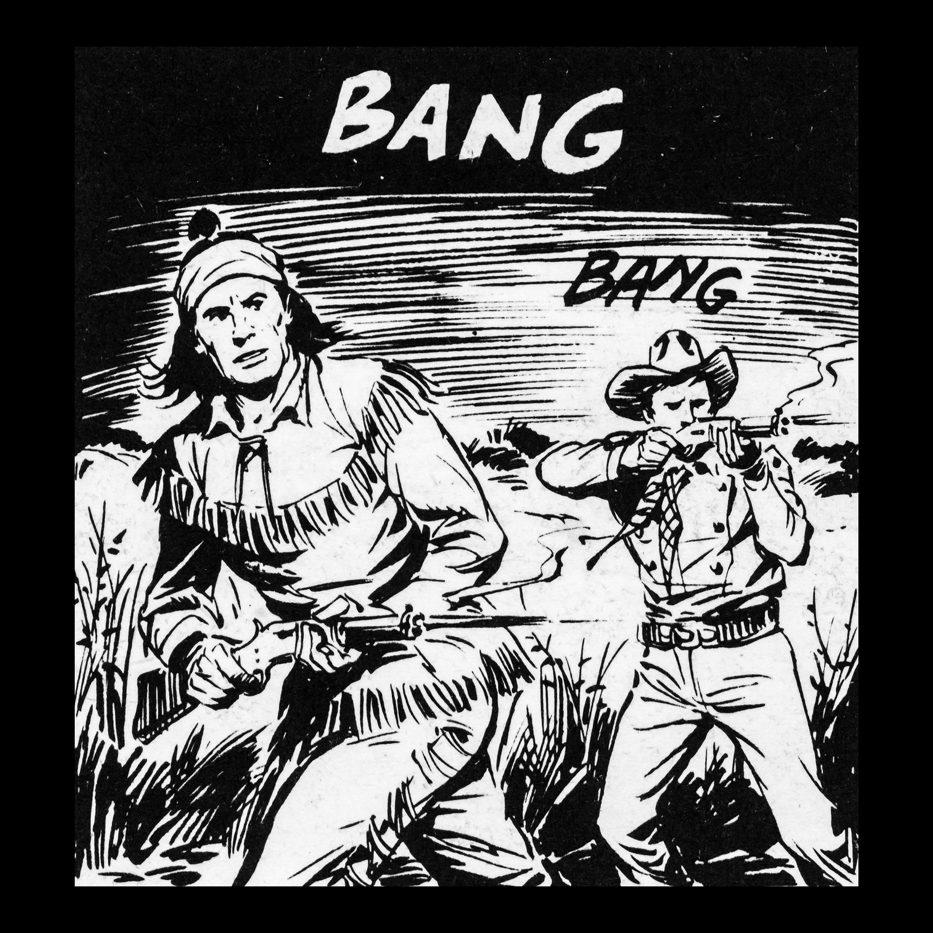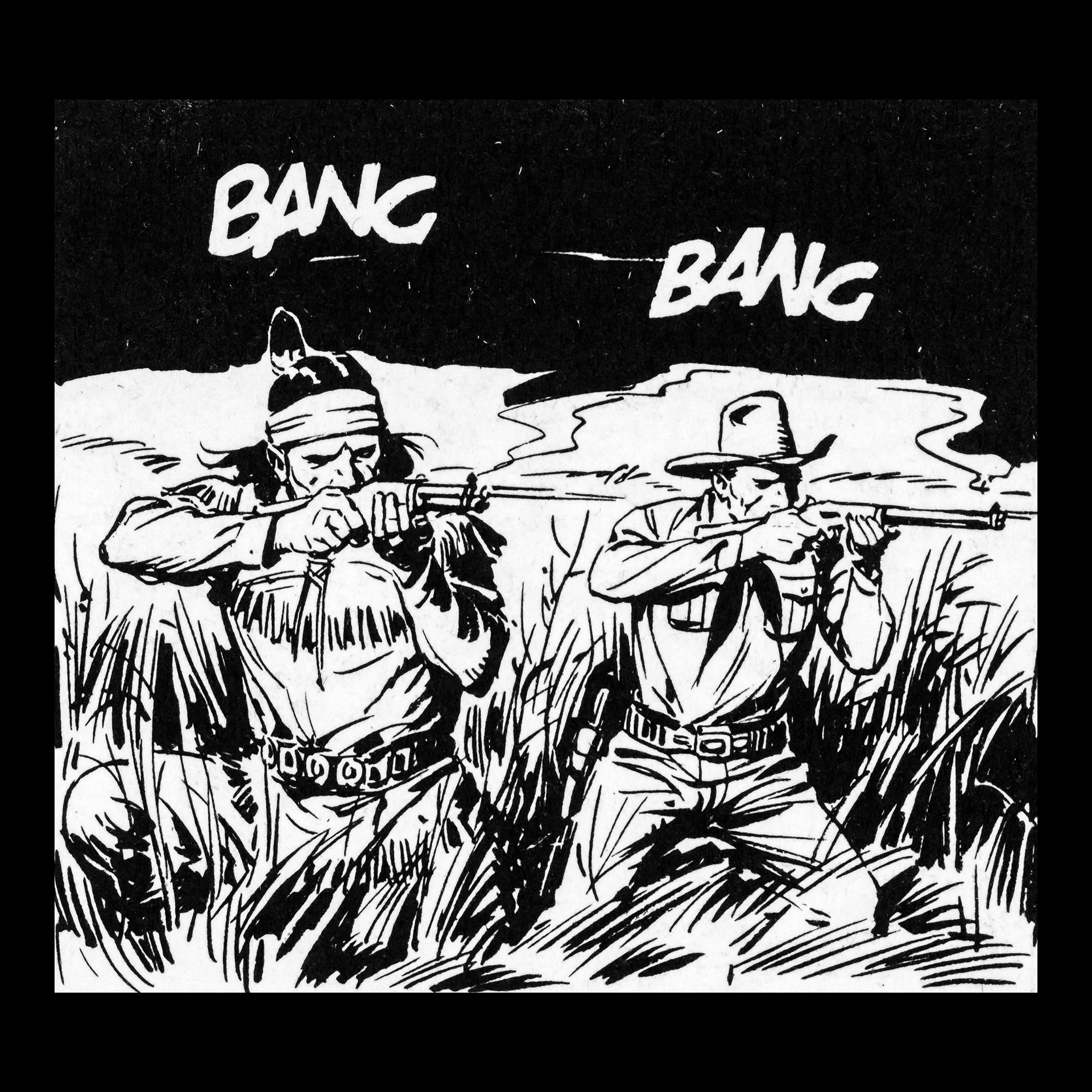 In this project I used Italian Western comics from the 1960s as an archive of mechanical gestures and encoded sounds. By scanning the original vintage issues, I isolated a single element: the sound-word that attempts to translate a gunshot into a graphic sign.