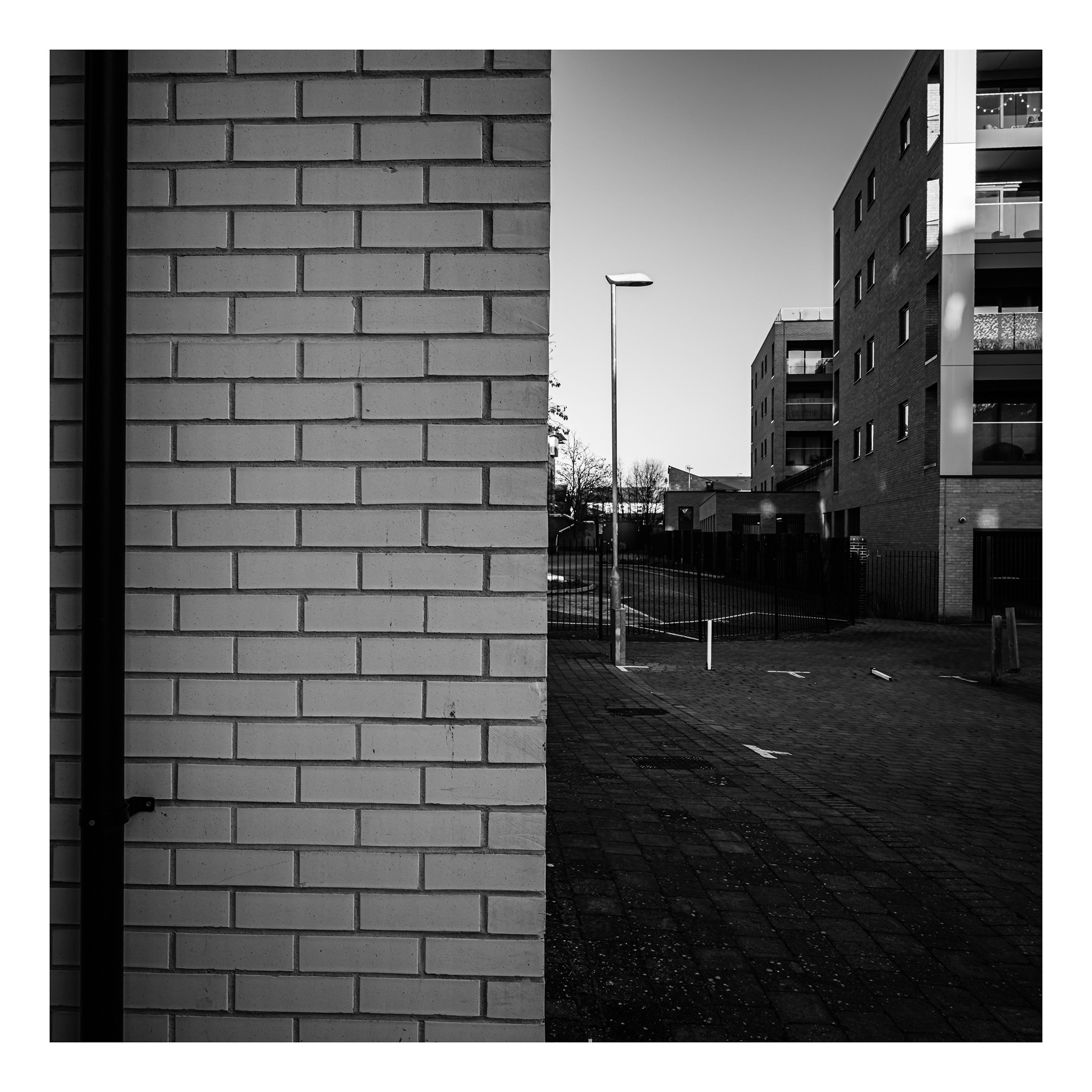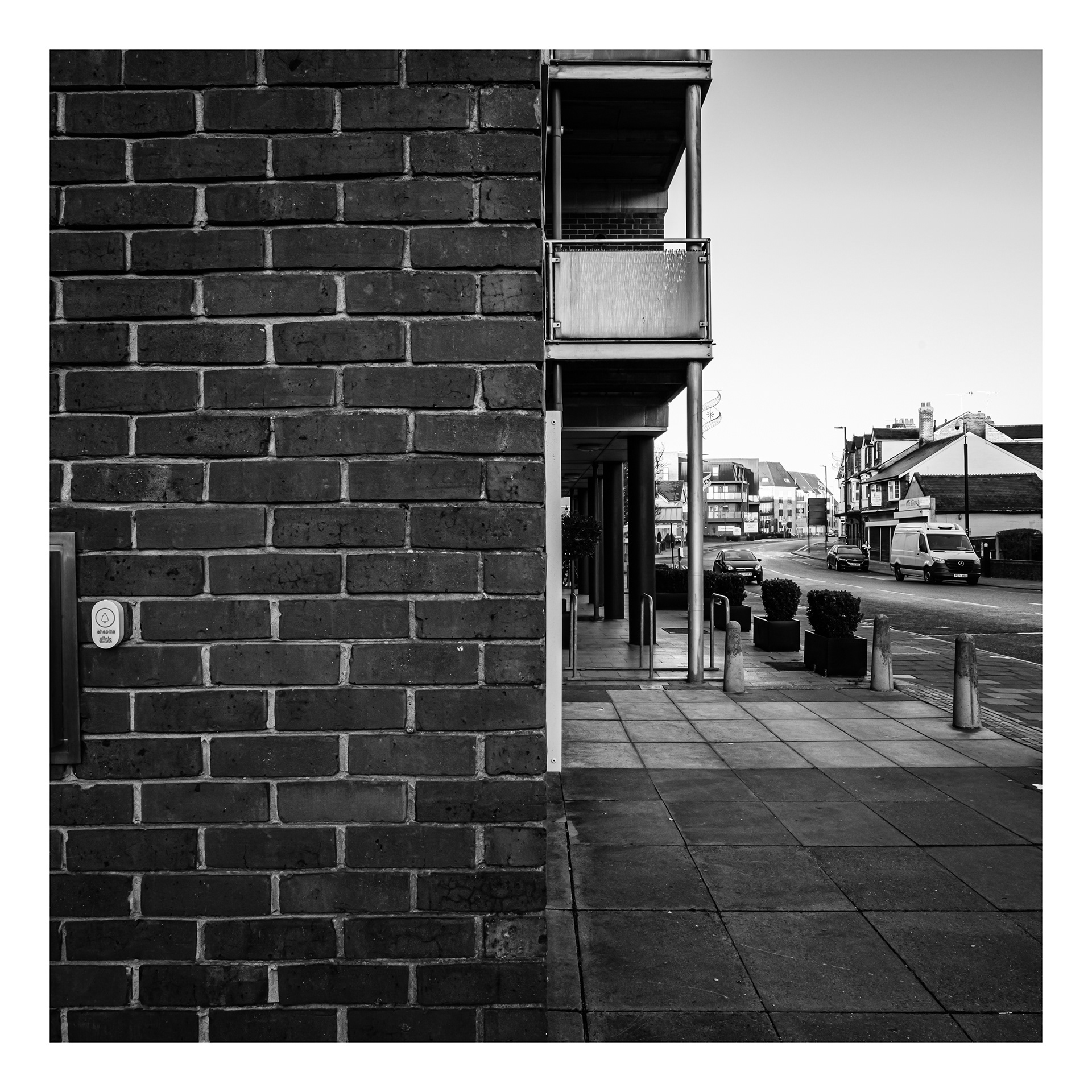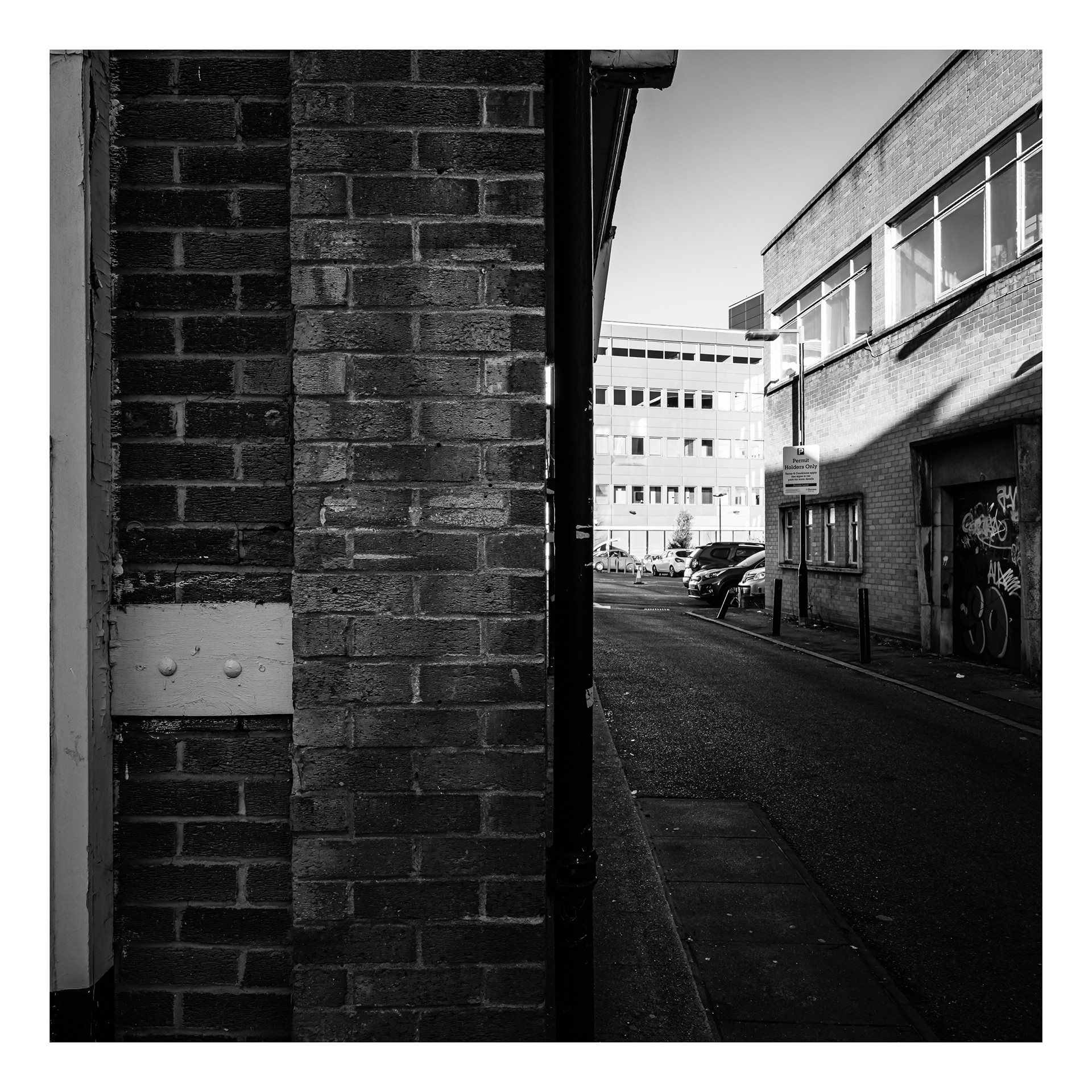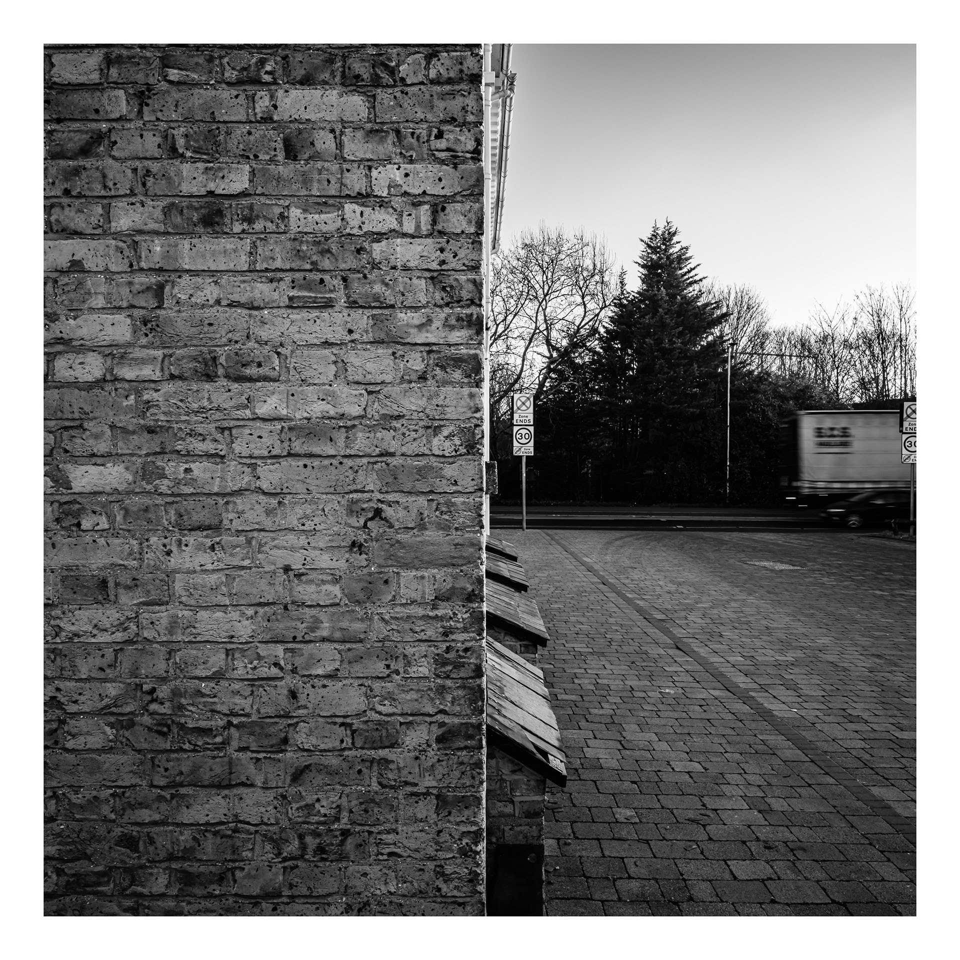 The work is not concerned with the function of the buildings or with the specificity of place. What remains is a condition: obstruction, limitation, and partial visibility.