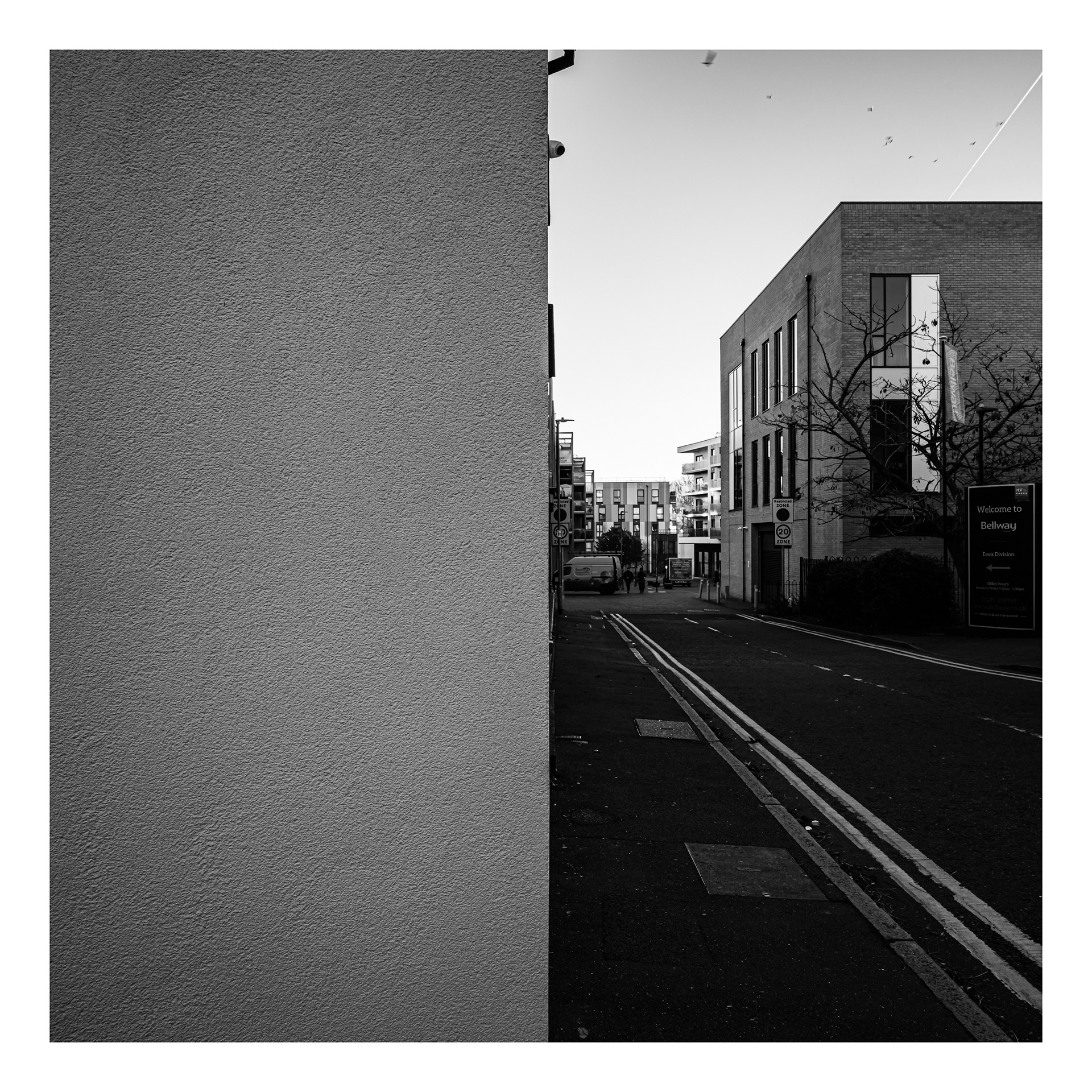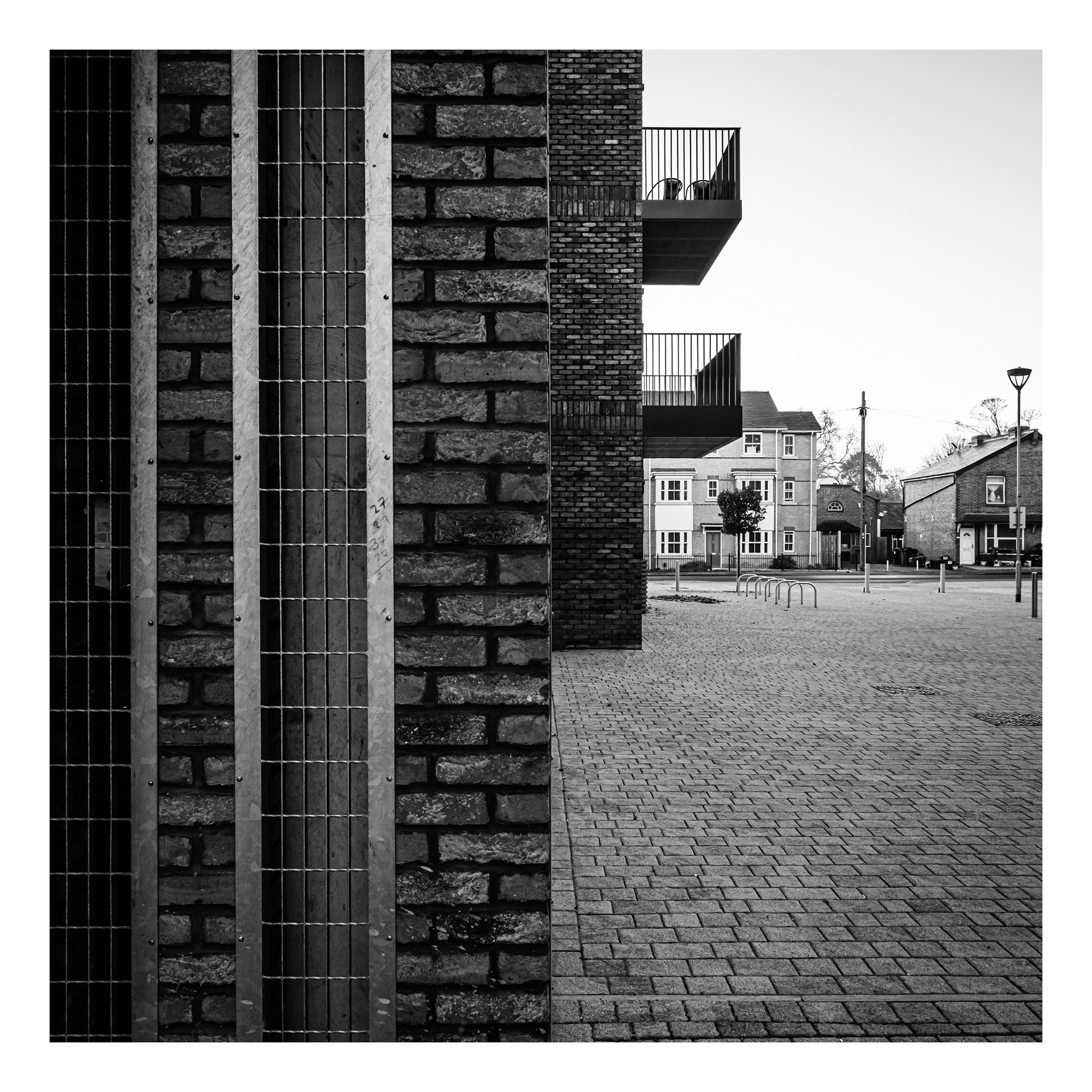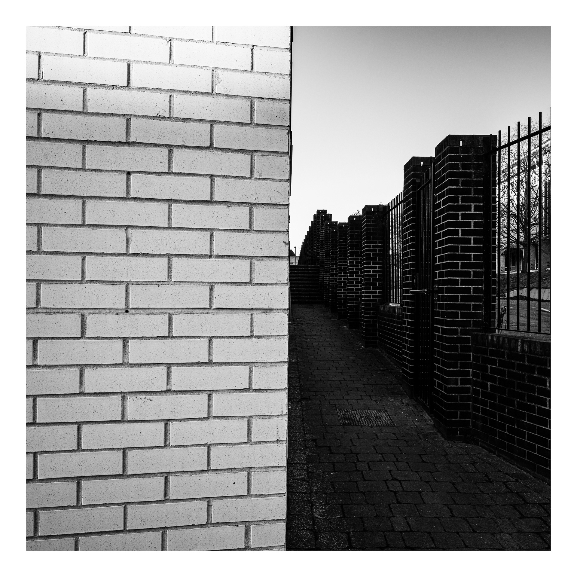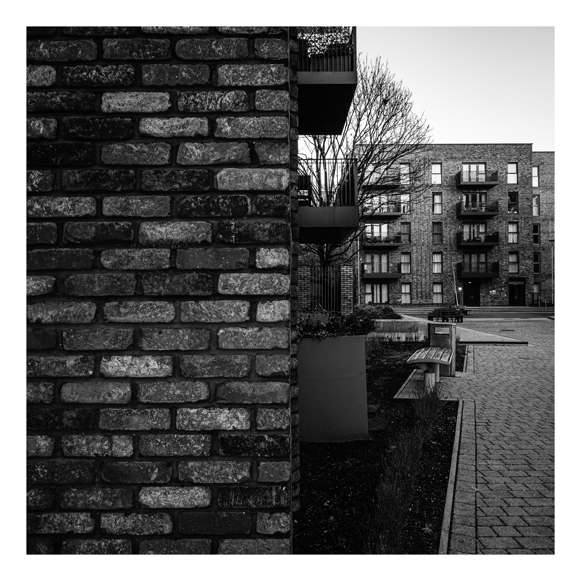 The work is not concerned with the function of the buildings or with the specificity of place. What remains is a condition: obstruction, limitation, and partial visibility.