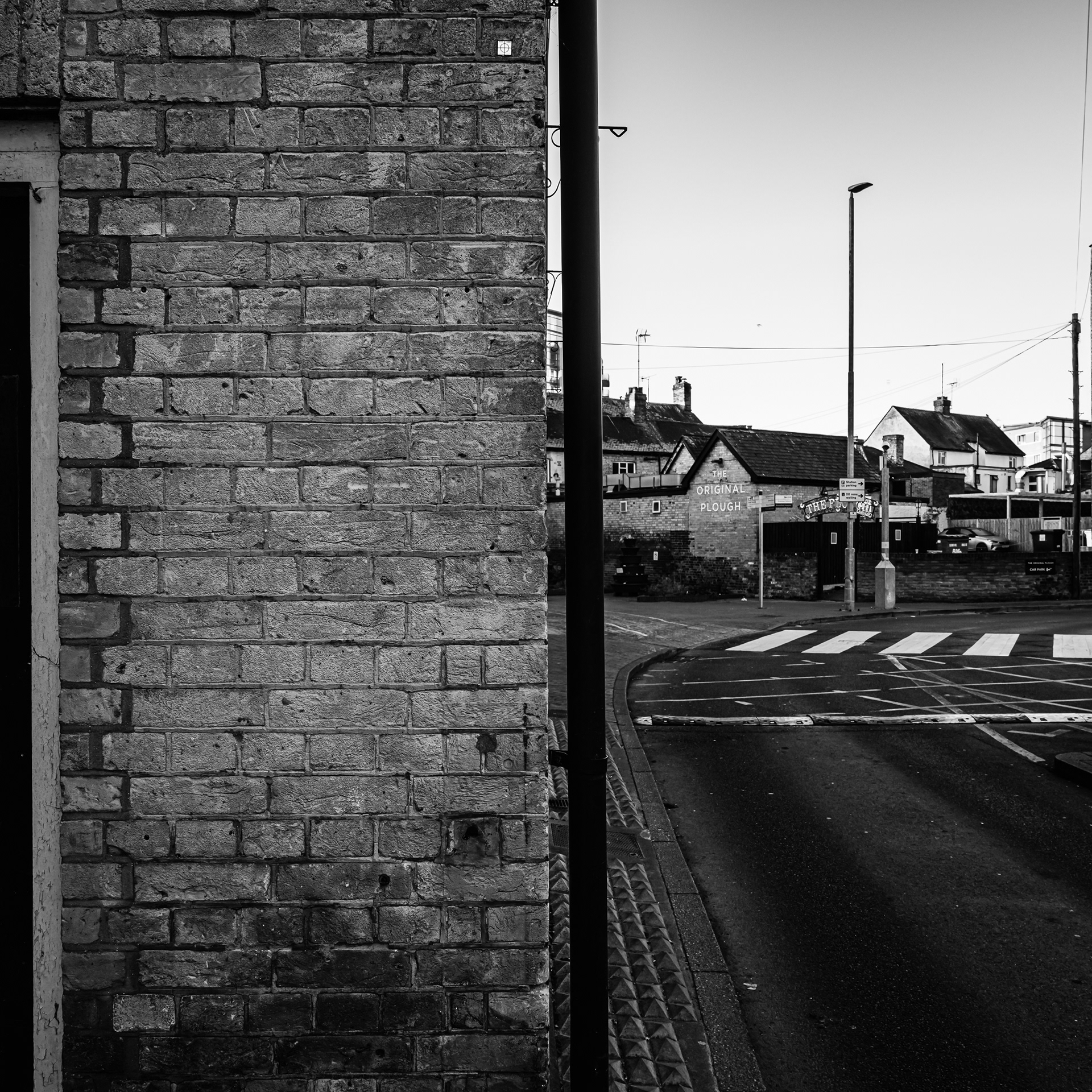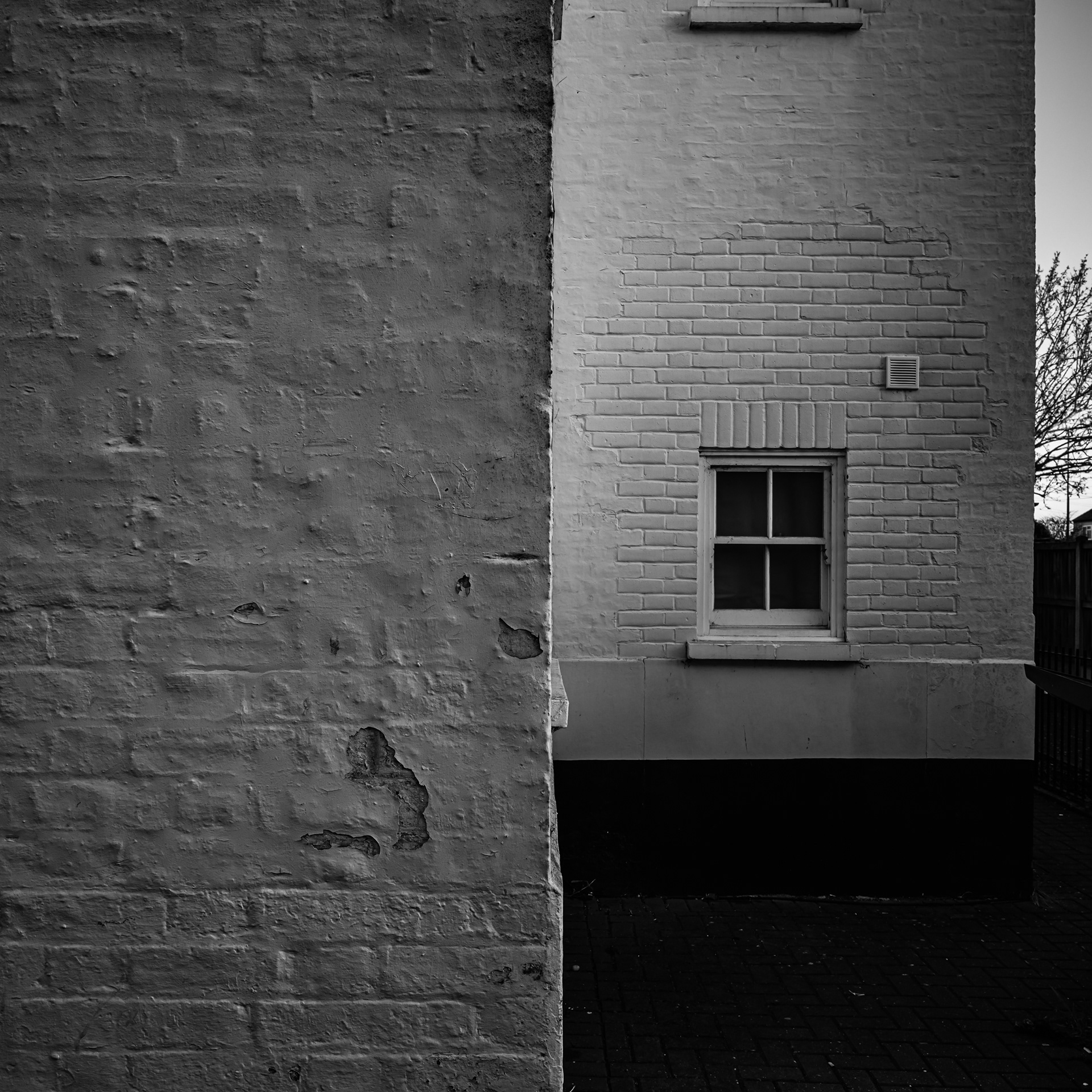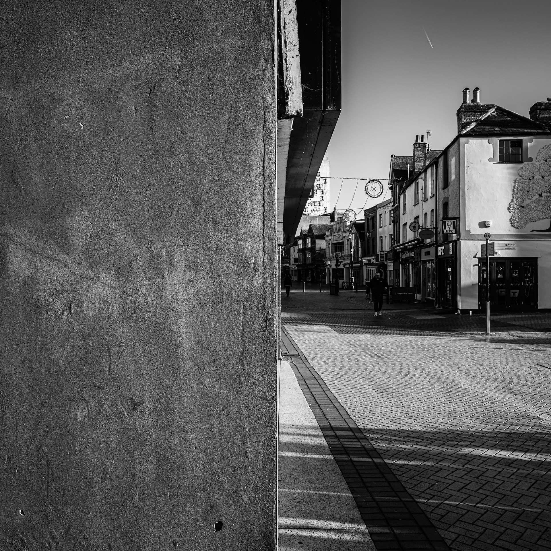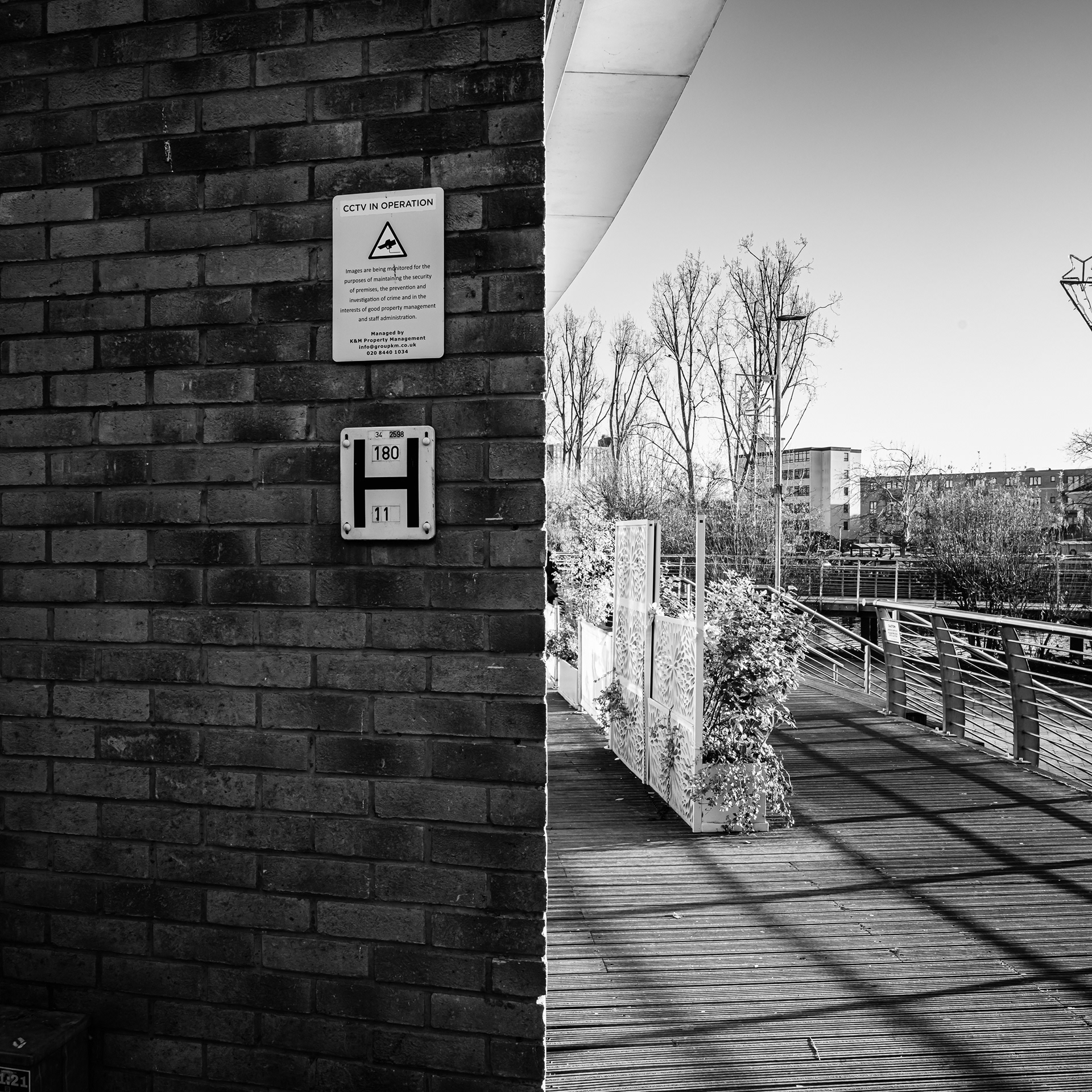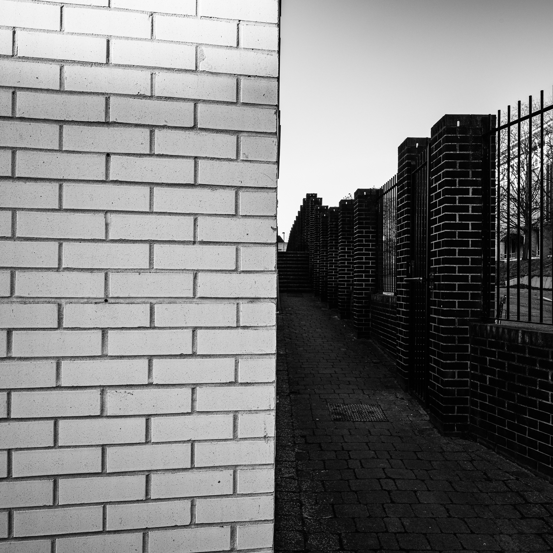 In this series of pictures I divided the frame into two sharp zones using architectural elements as screens: an opaque mass occupying half of the surface and a sliver of urban reality persisting in the other half. The act of photographing becomes a practice of systematic subtraction, where the building ceases to be a volume and is transformed into a visual obstacle that denies depth and forces the eye to focus on an isolated fragment.