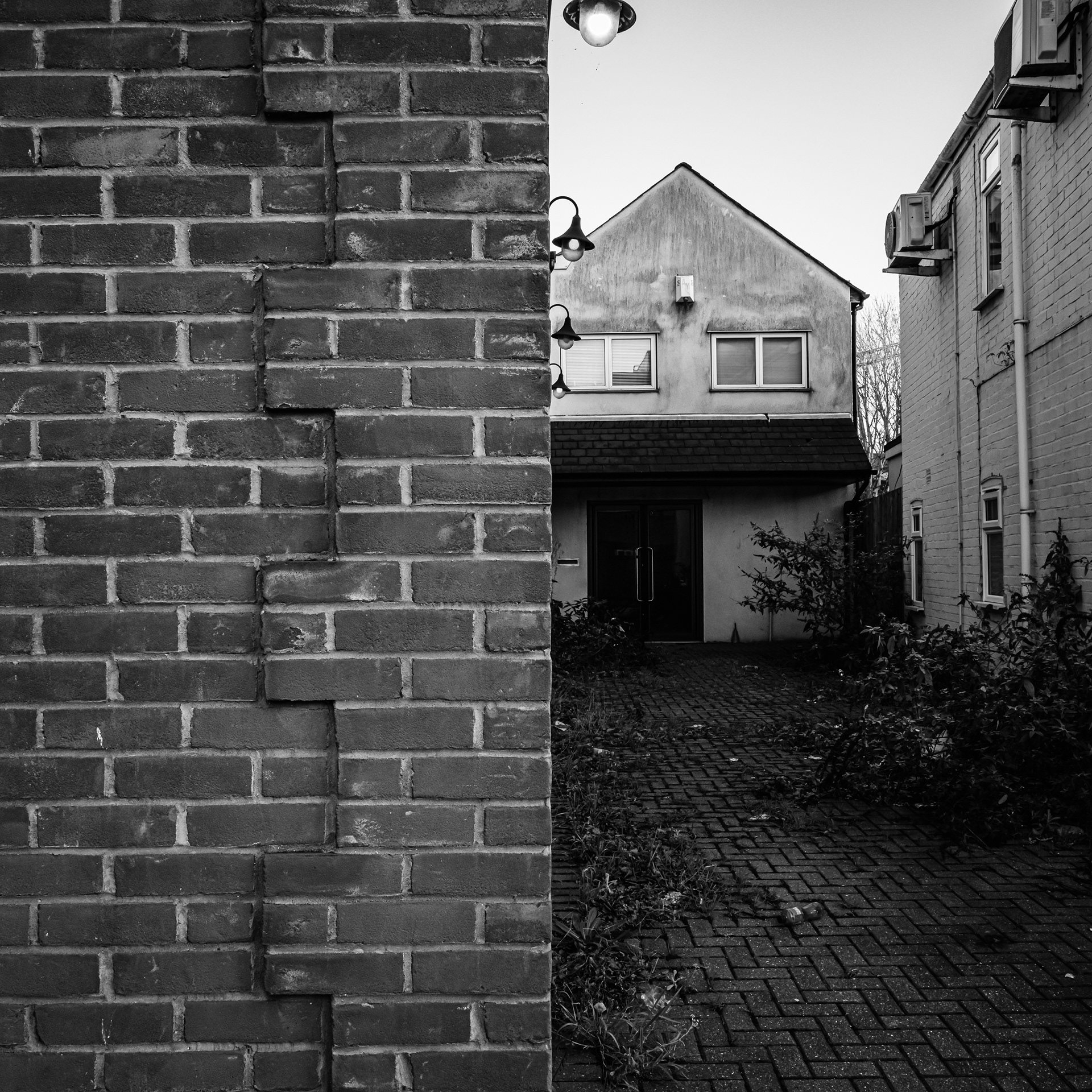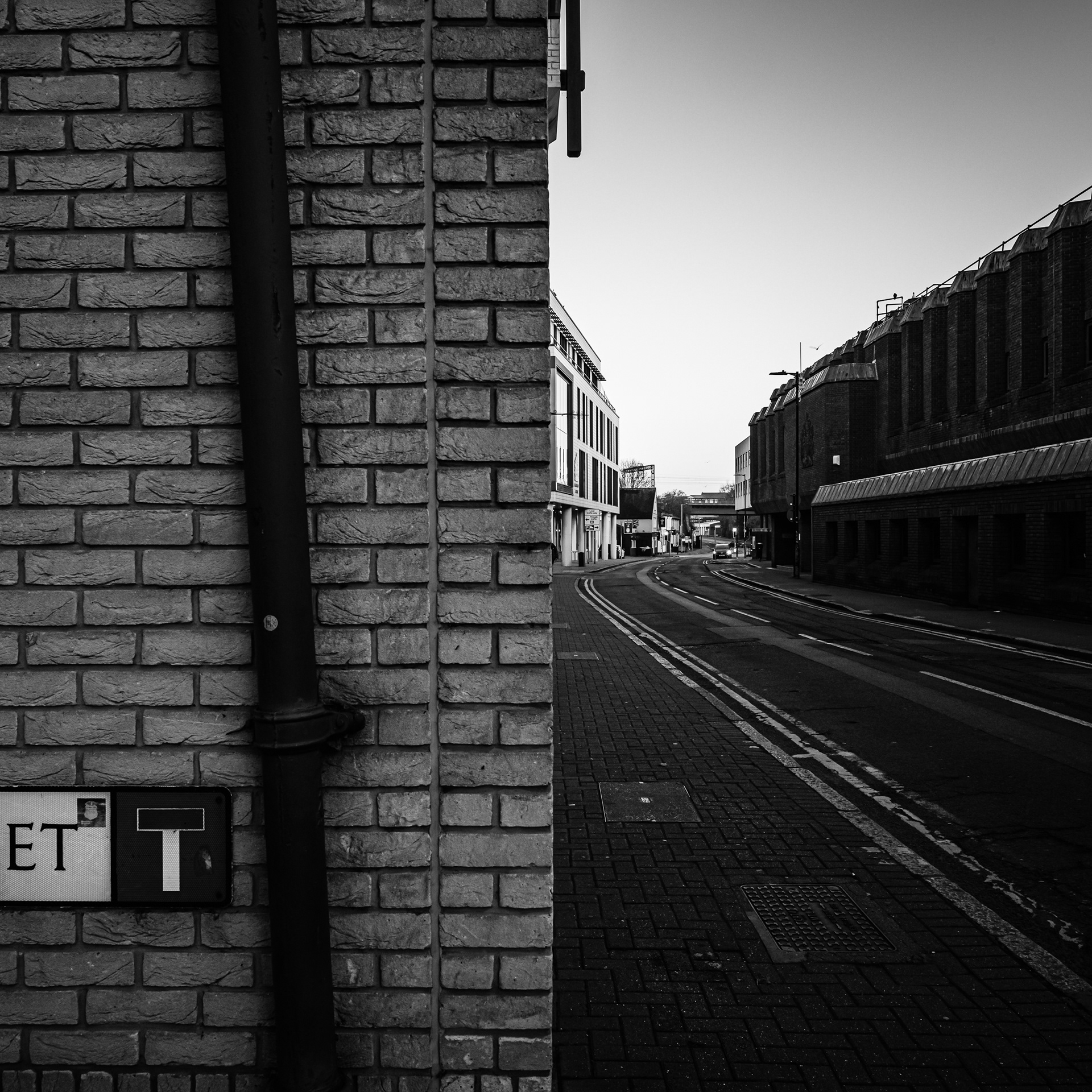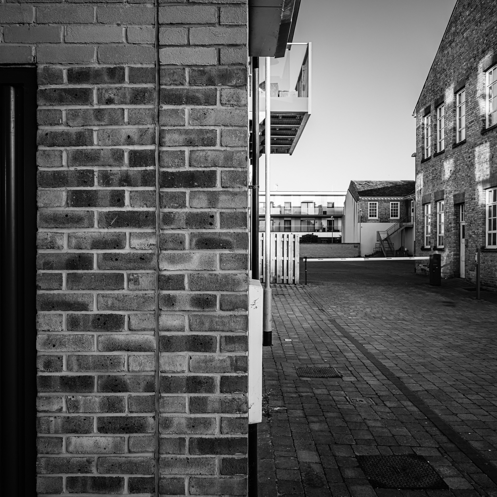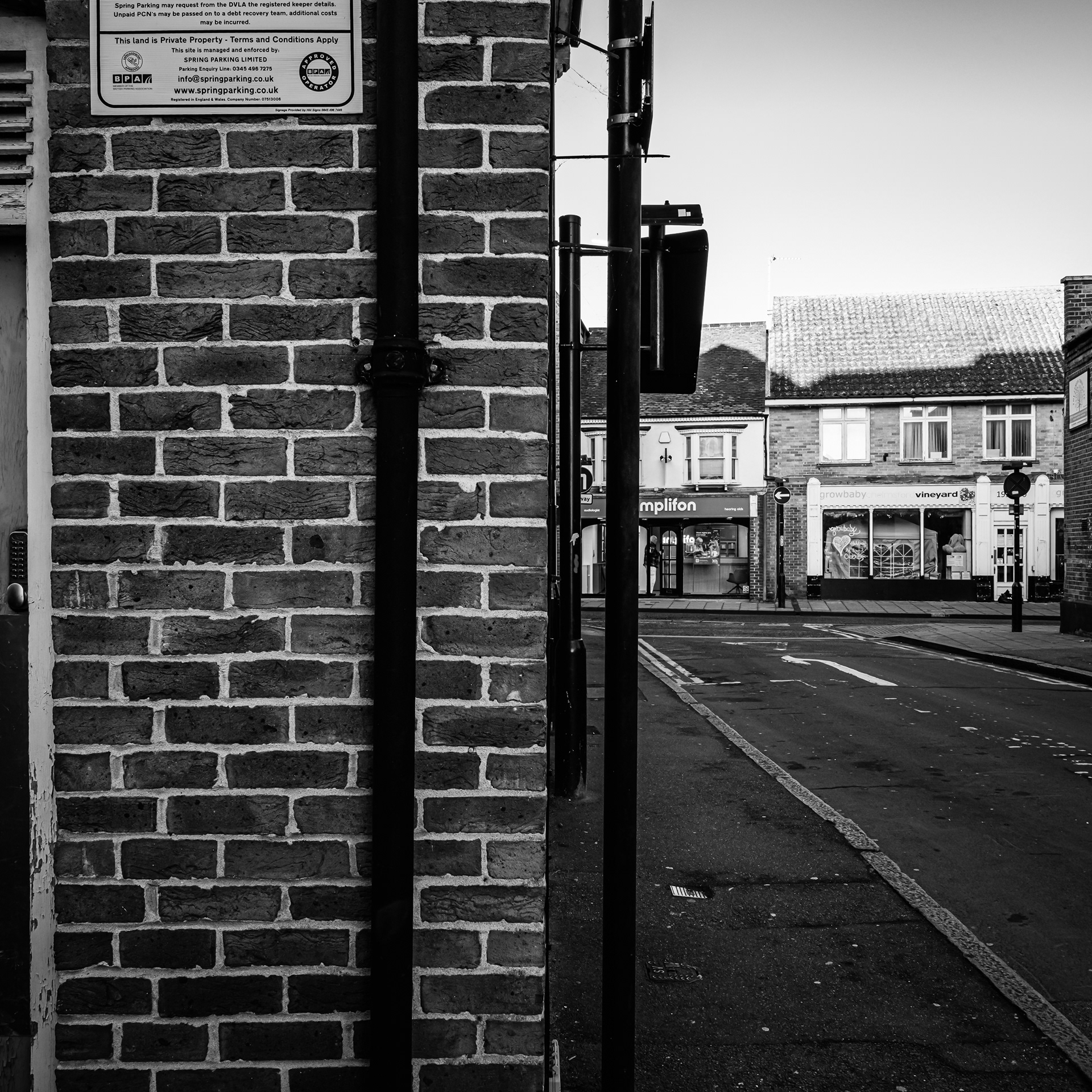 In this series of pictures I divided the frame into two sharp zones using architectural elements as screens: an opaque mass occupying half of the surface and a sliver of urban reality persisting in the other half. The act of photographing becomes a practice of systematic subtraction, where the building ceases to be a volume and is transformed into a visual obstacle that denies depth and forces the eye to focus on an isolated fragment.