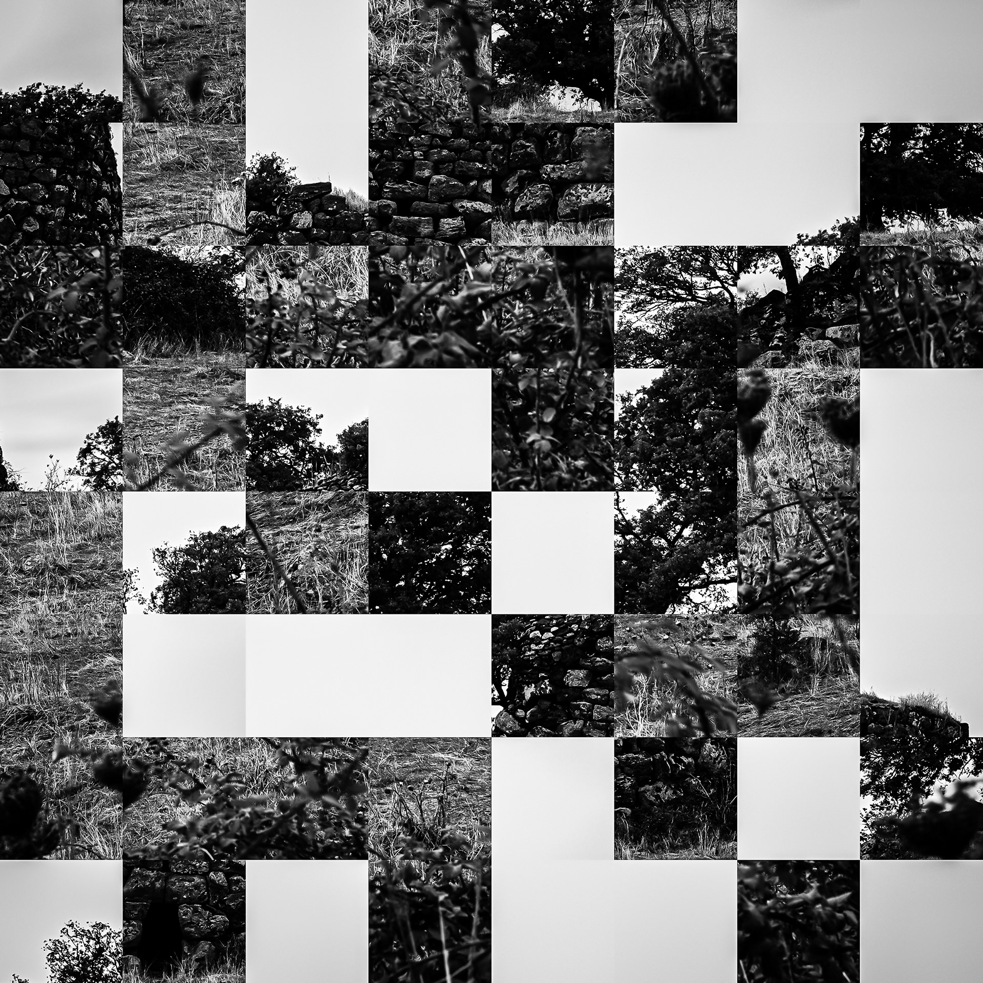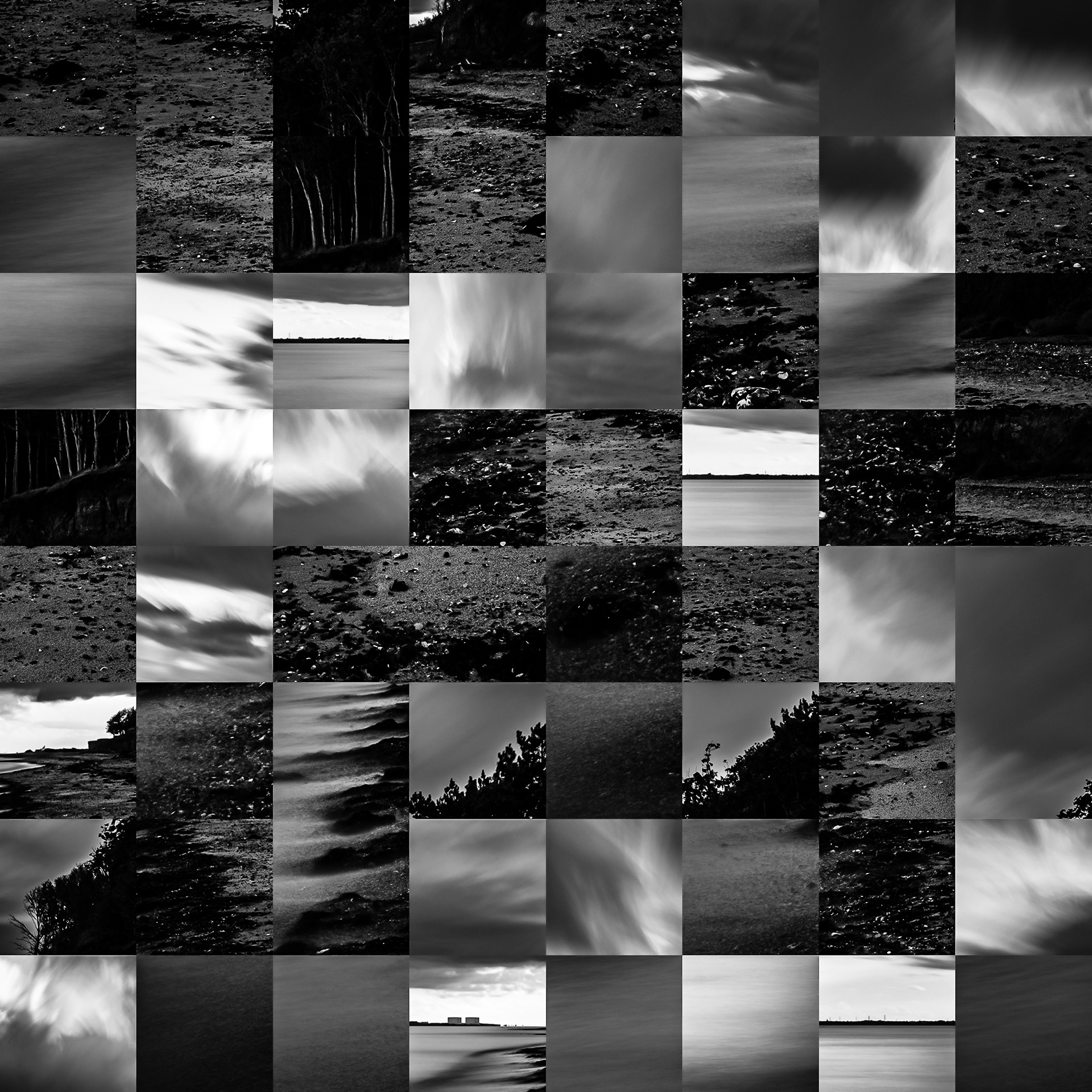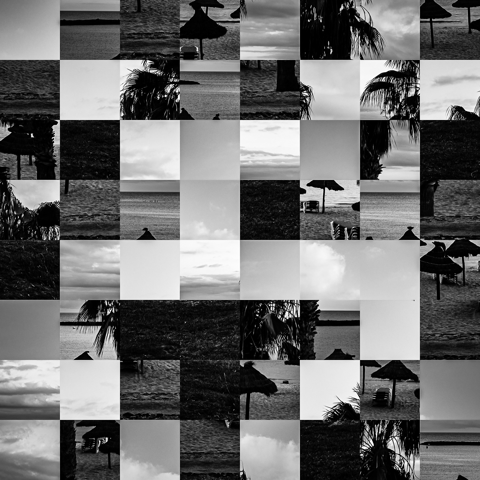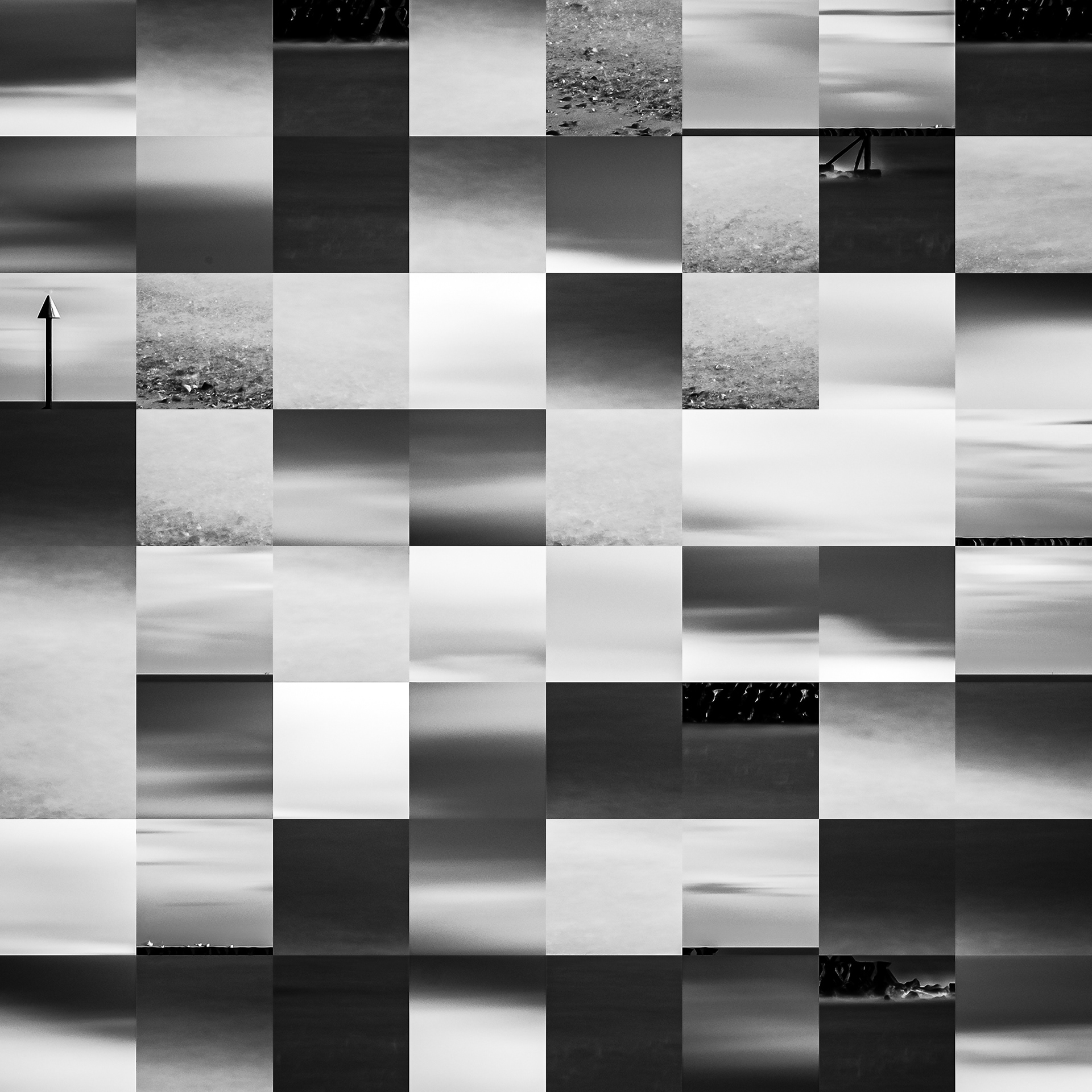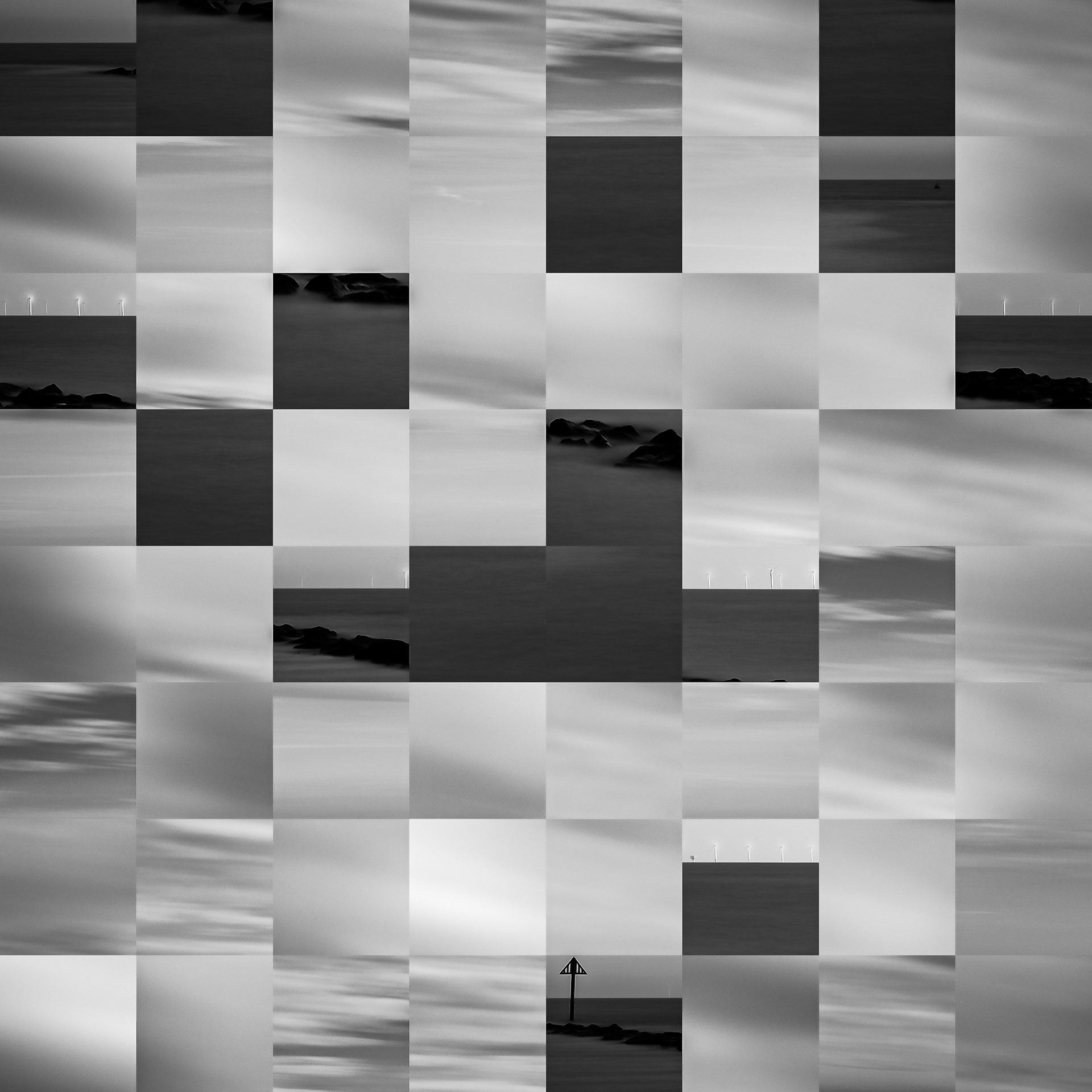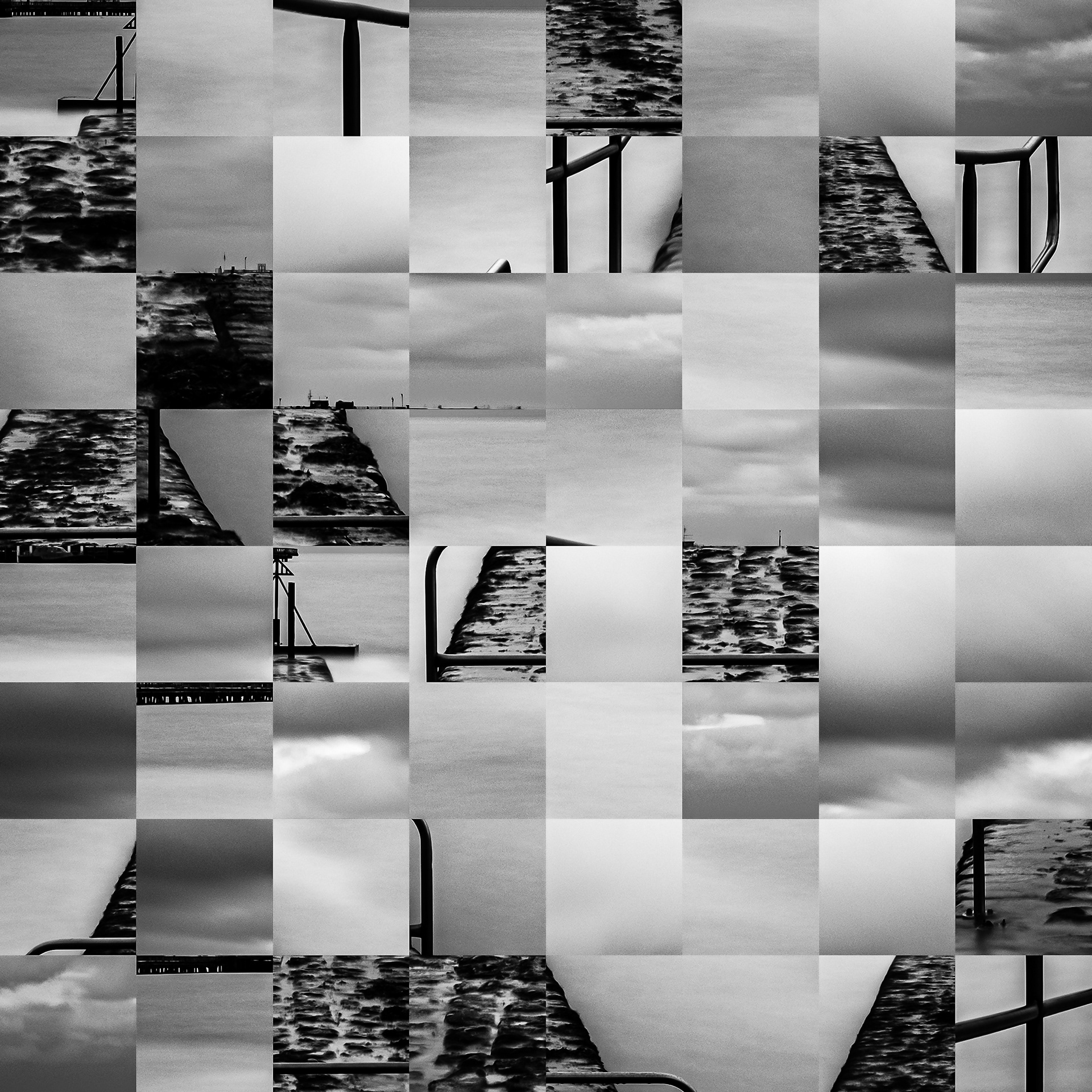 By working on the systematic deconstruction of these views, I reduced the territory to a sequence of fragments. Within this grid, the sea, the rocks, or the sky lose their names, becoming simple variations of tone, contrast, and geometric shapes. I am interested in that moment of uncertainty where the eye tries to reassemble the entire image, only to collide with the rigor of modularity.