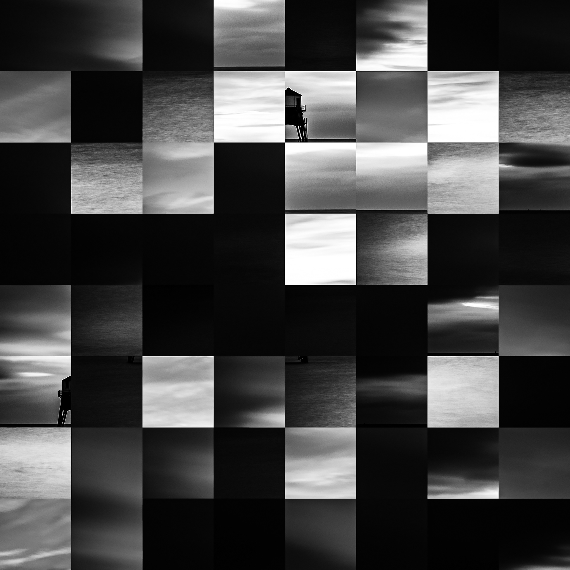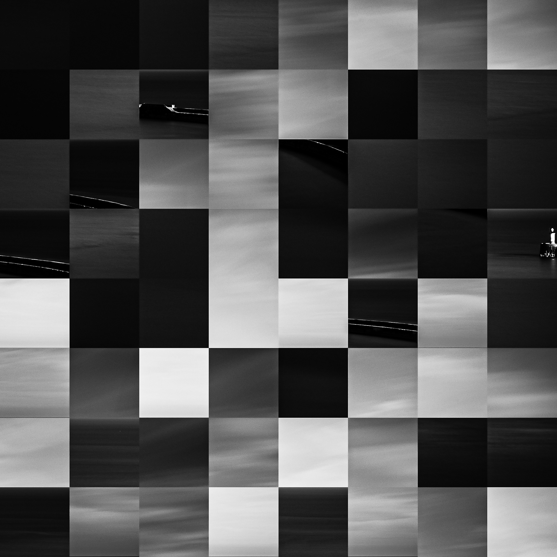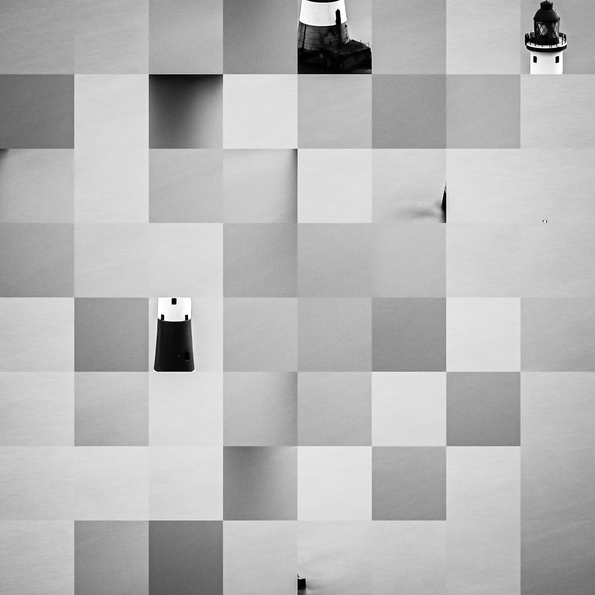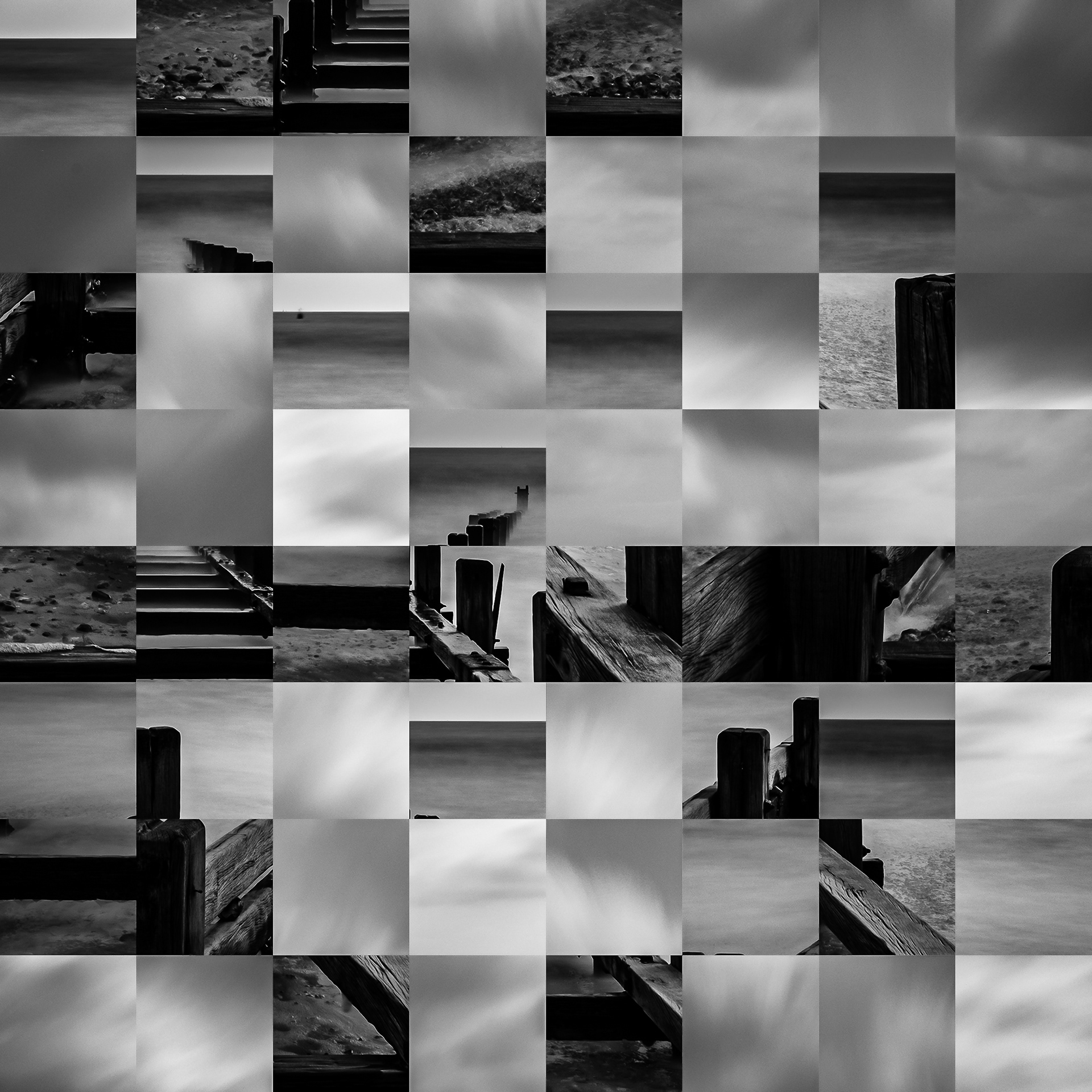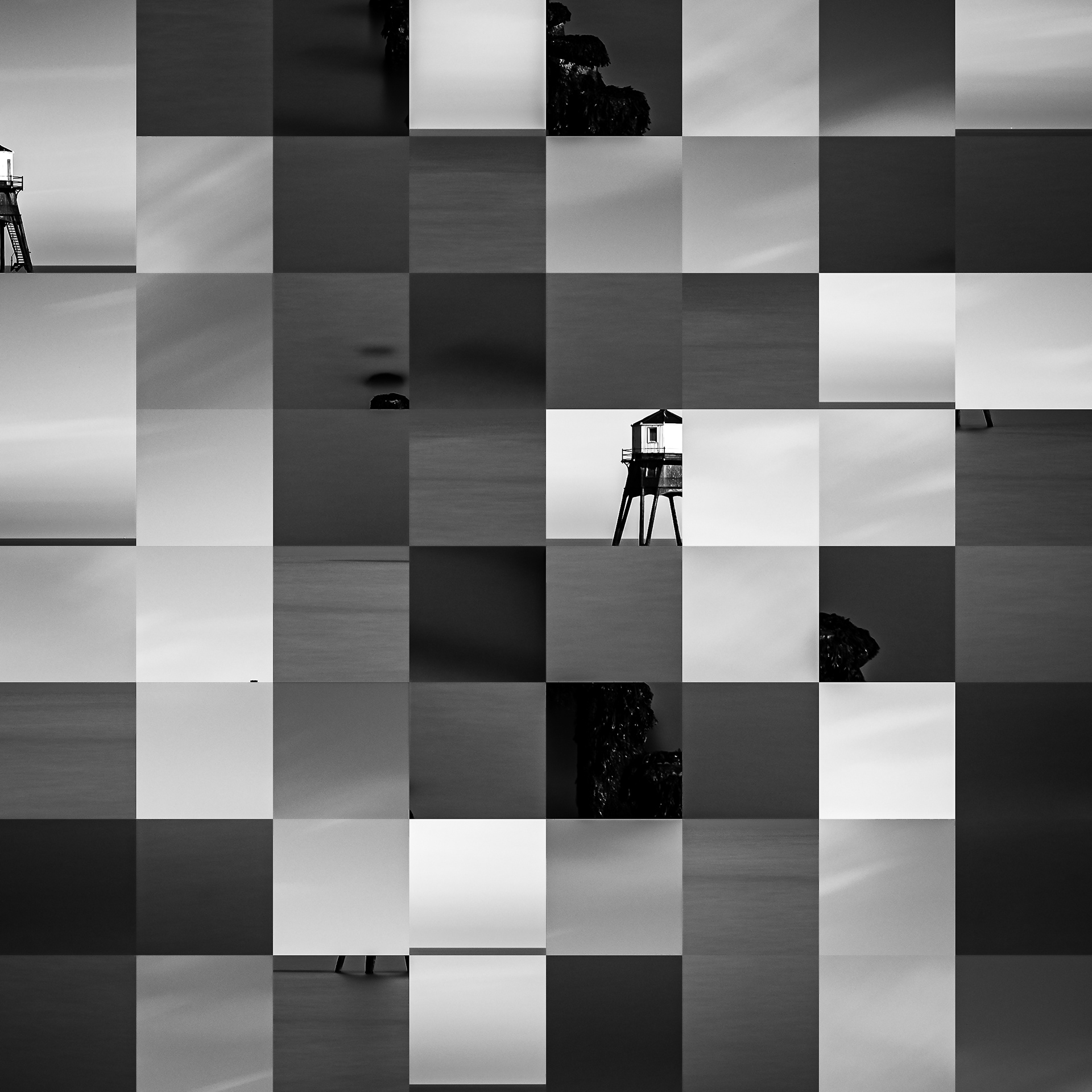 By working on the systematic deconstruction of these views, I reduced the territory to a sequence of fragments. Within this grid, the sea, the rocks, or the sky lose their names, becoming simple variations of tone, contrast, and geometric shapes. I am interested in that moment of uncertainty where the eye tries to reassemble the entire image, only to collide with the rigor of modularity.