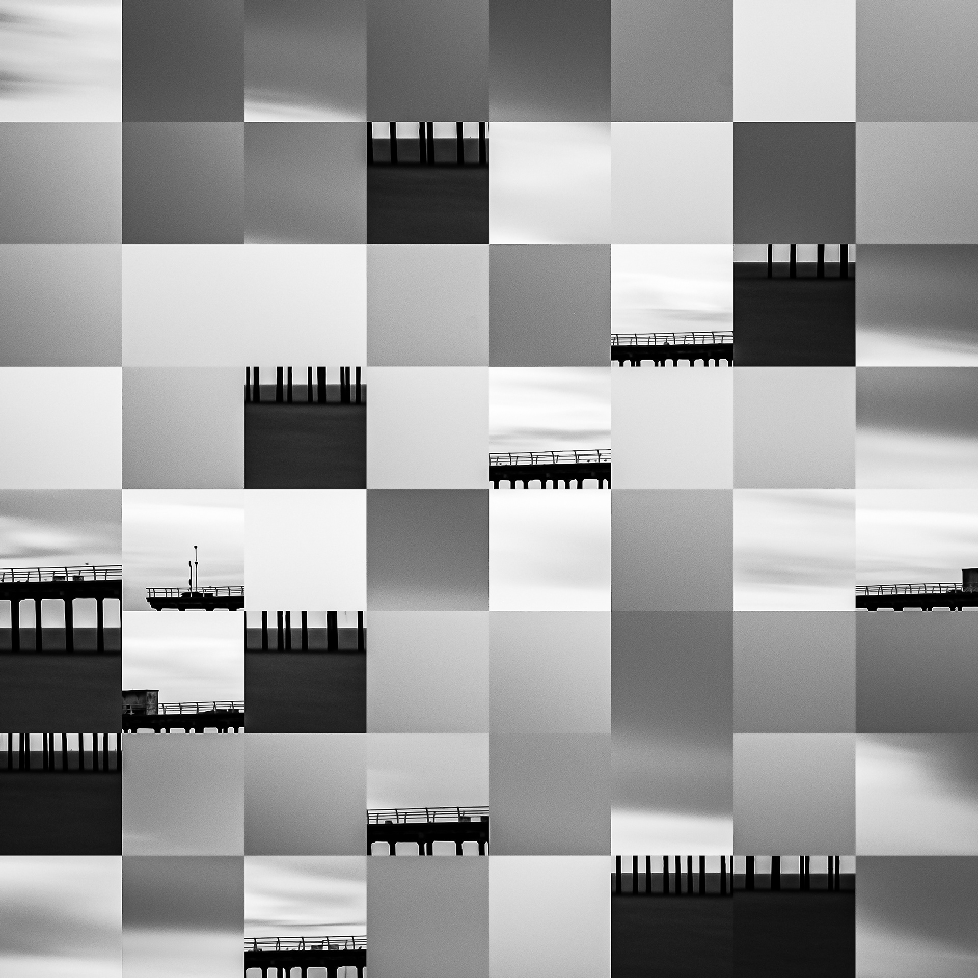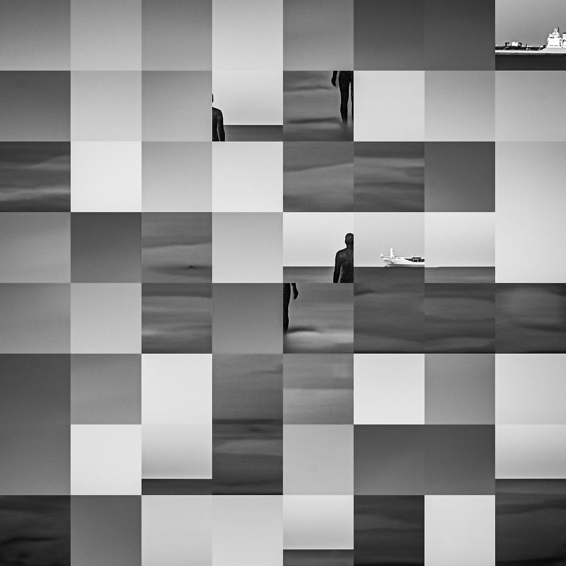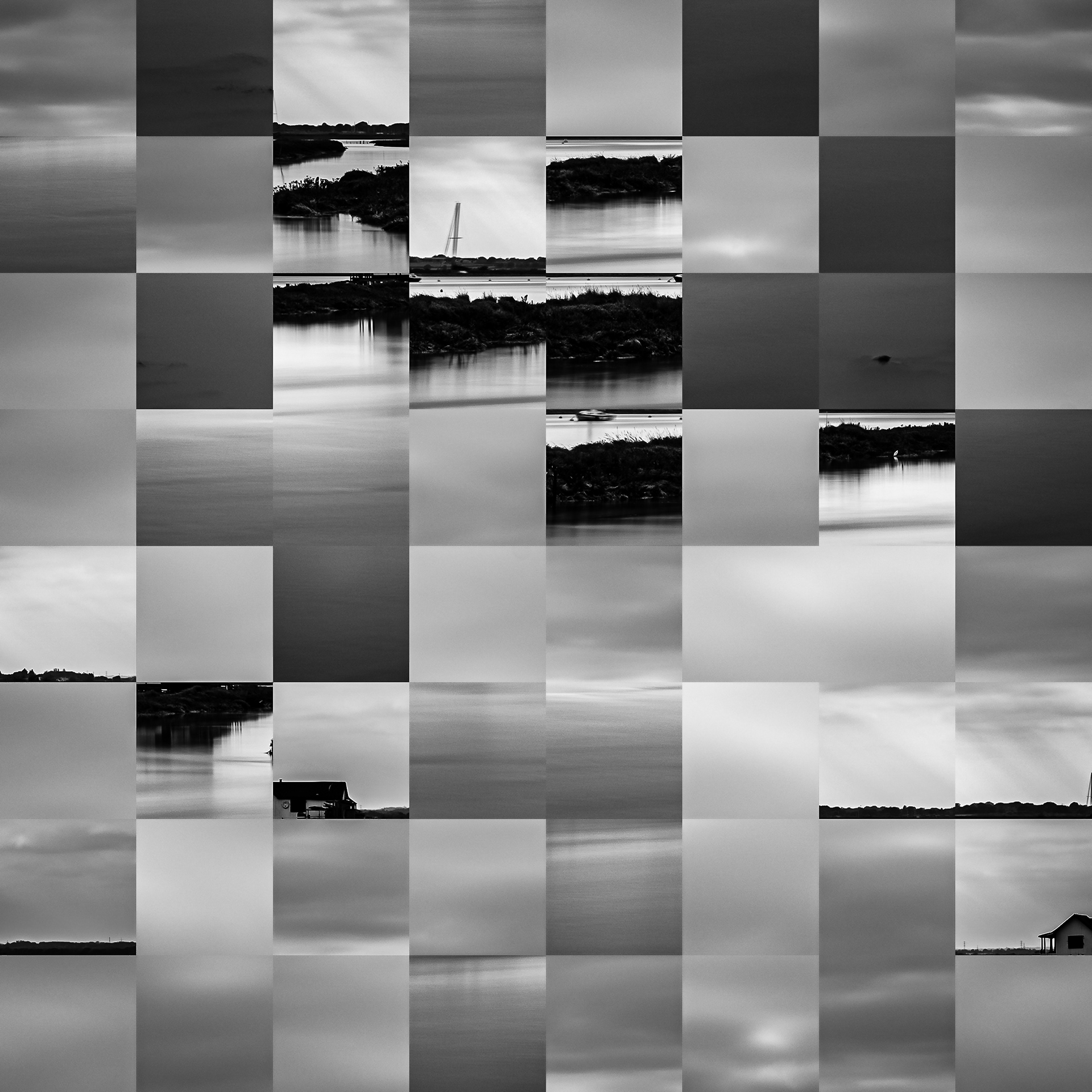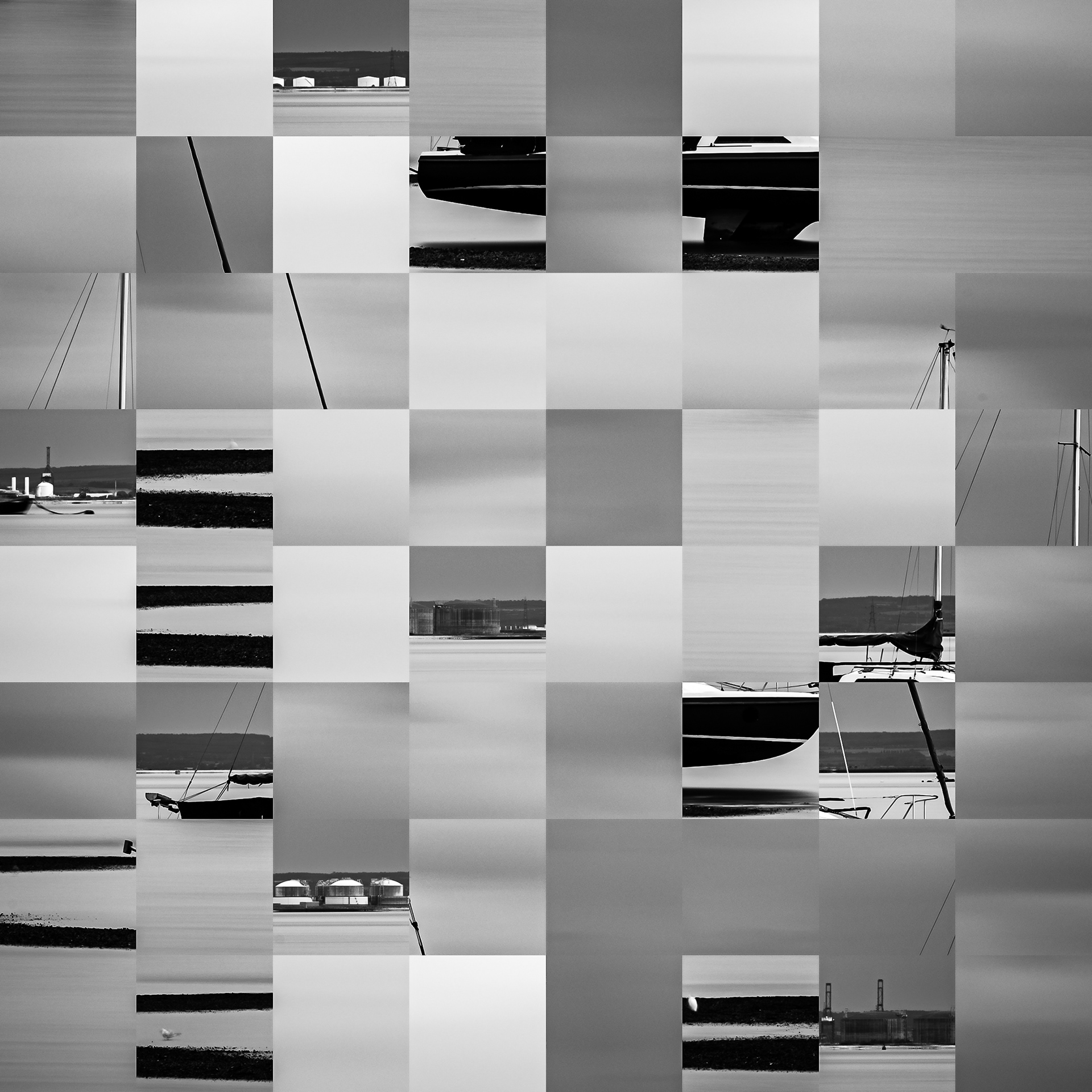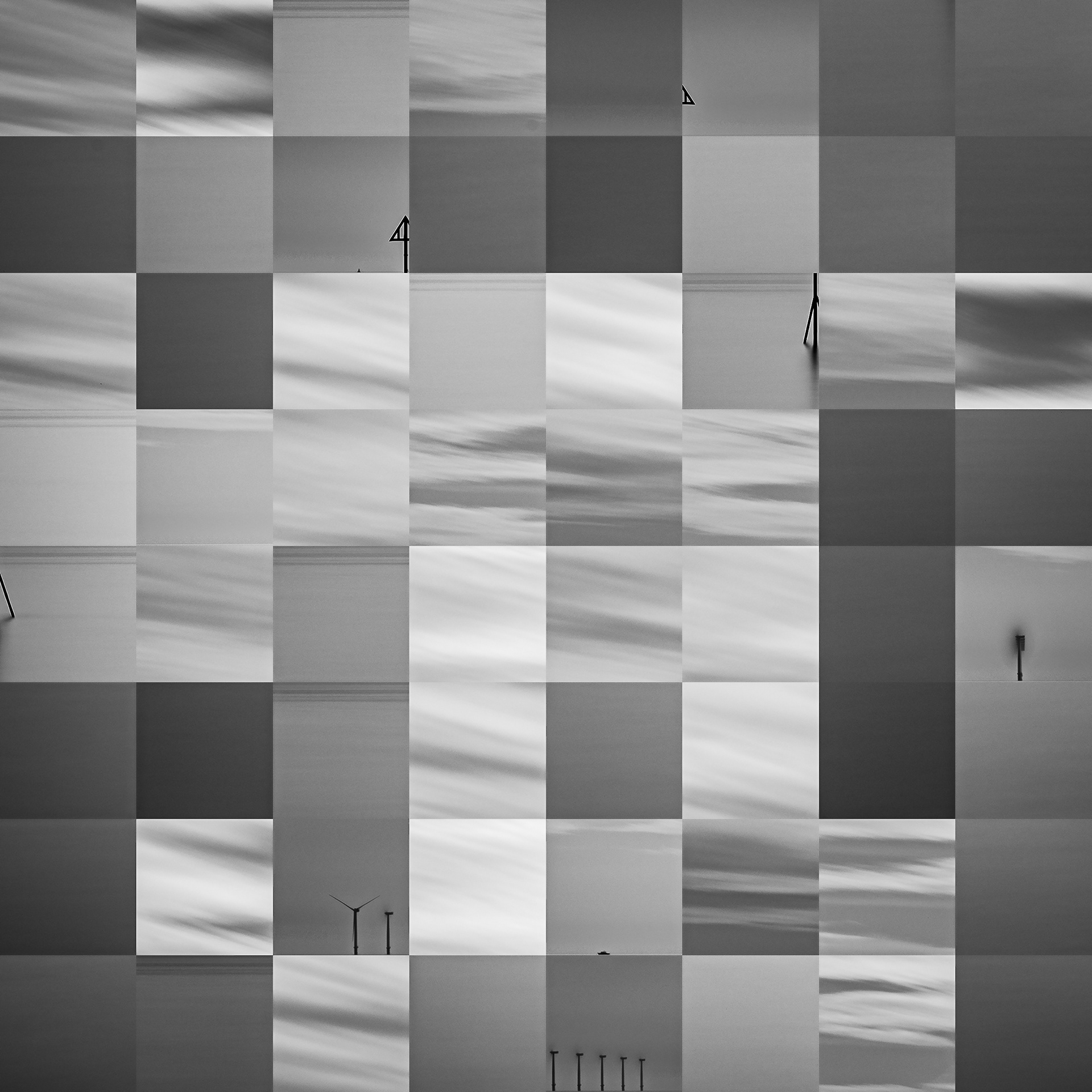 By working on the systematic deconstruction of these views, I reduced the territory to a sequence of fragments. Within this grid, the sea, the rocks, or the sky lose their names, becoming simple variations of tone, contrast, and geometric shapes. I am interested in that moment of uncertainty where the eye tries to reassemble the entire image, only to collide with the rigor of modularity.