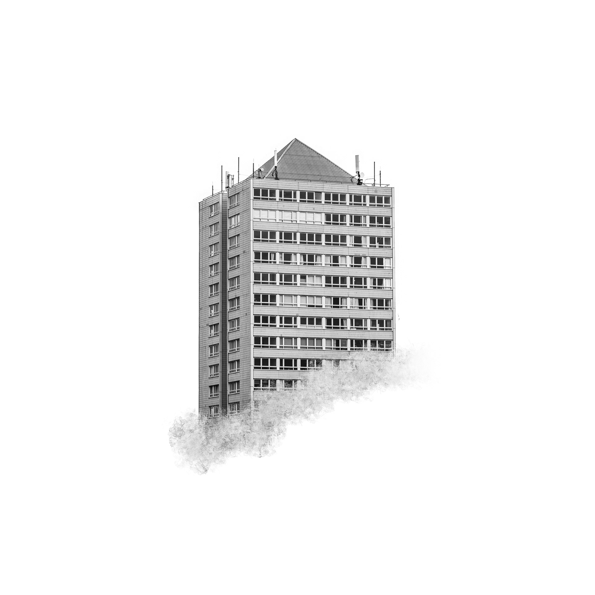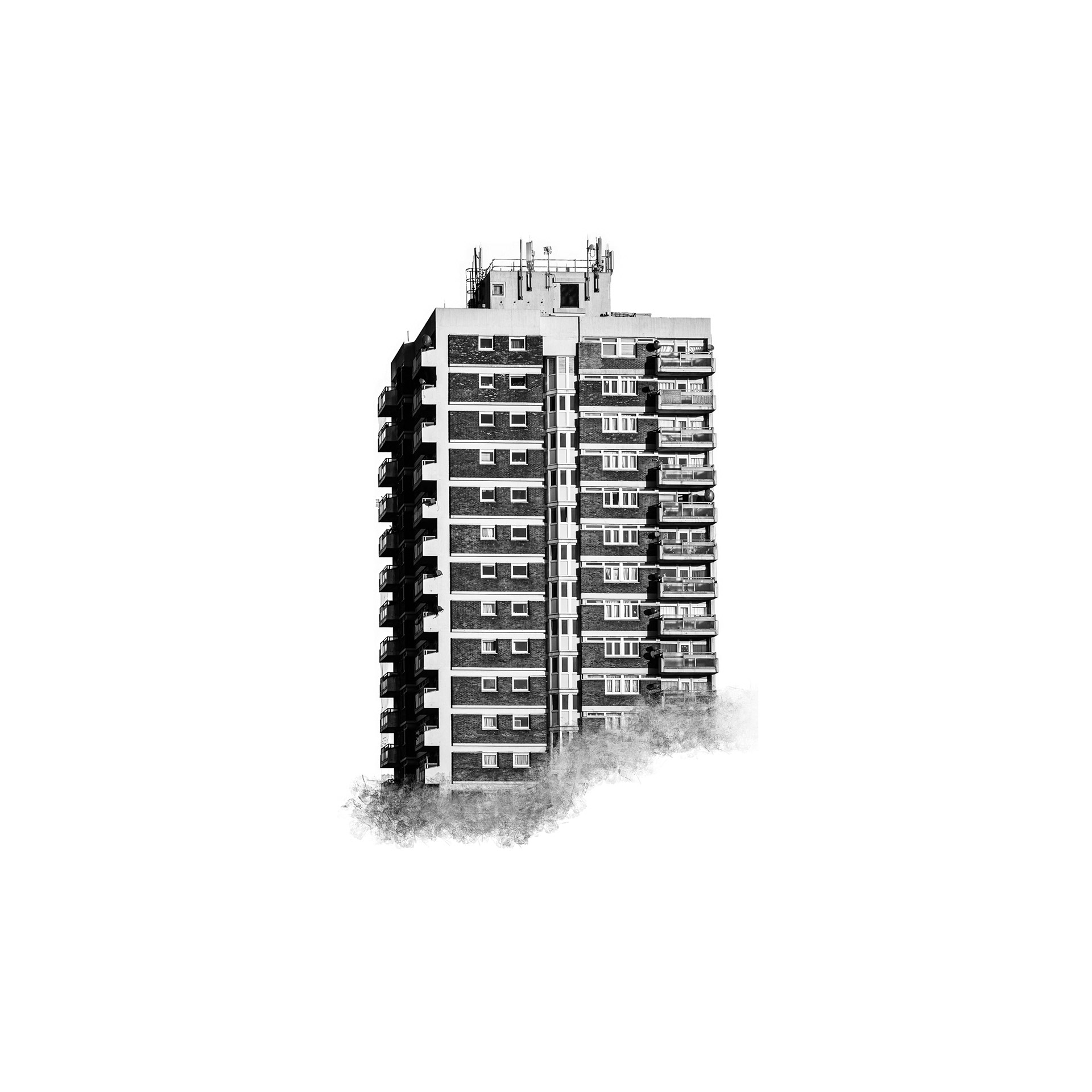 Framed by Walls isolates residential tower blocks from their surroundings, presenting them against a neutral field.