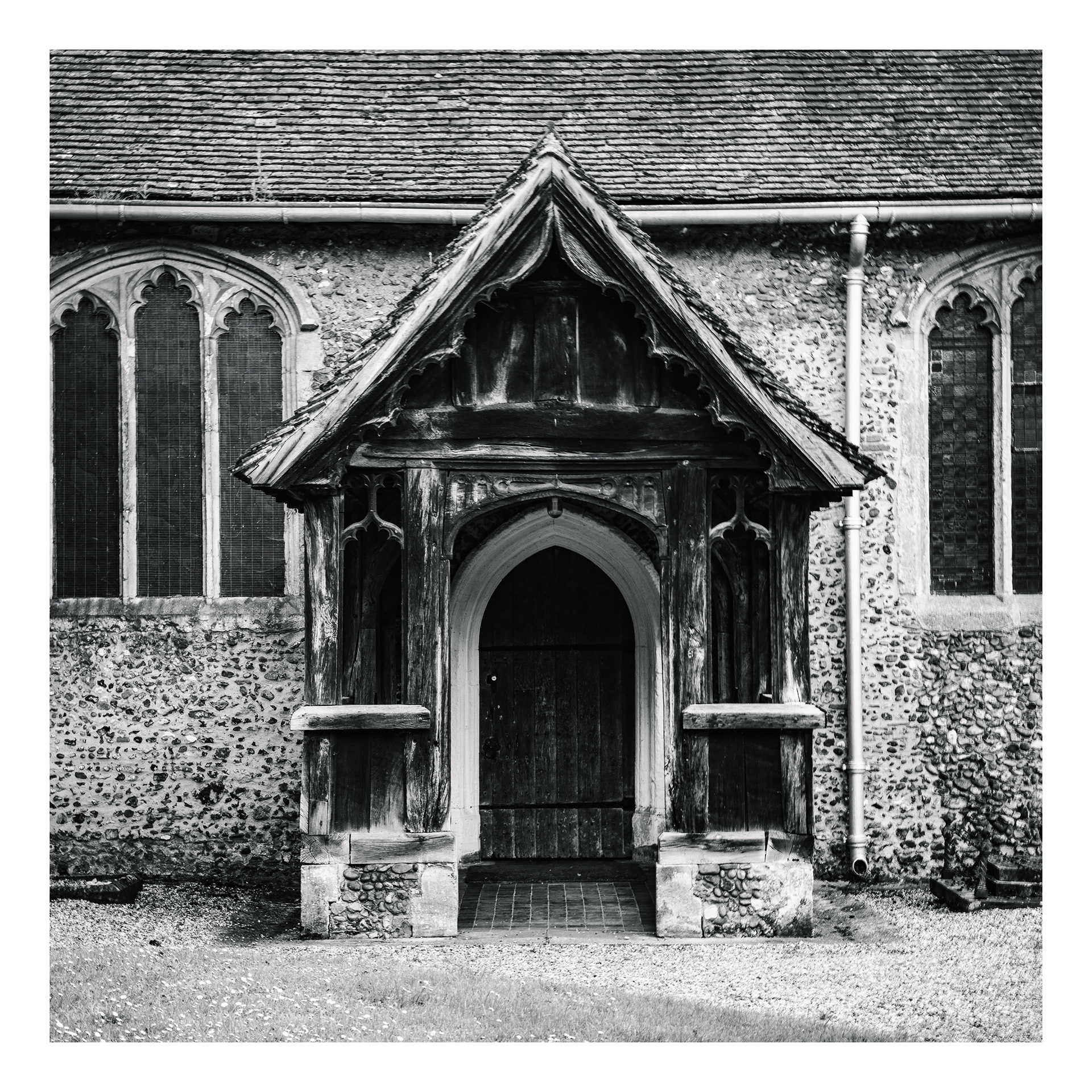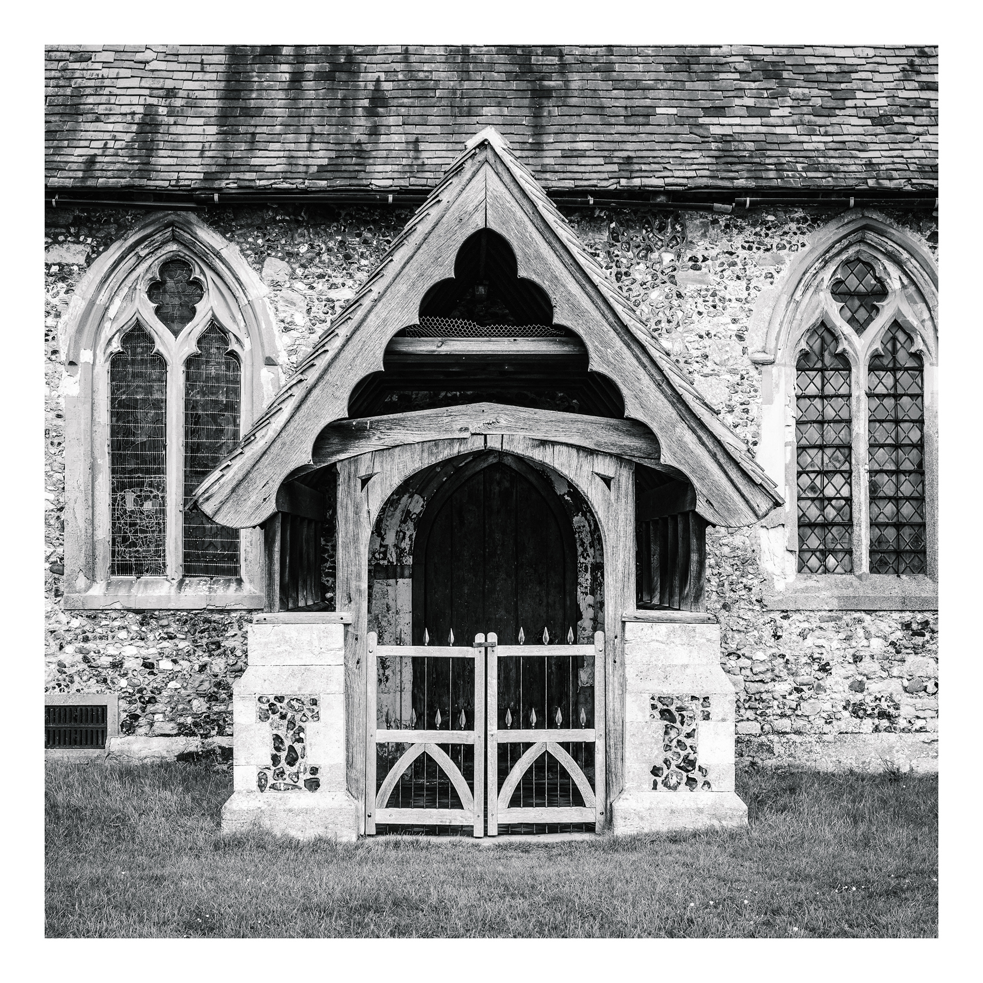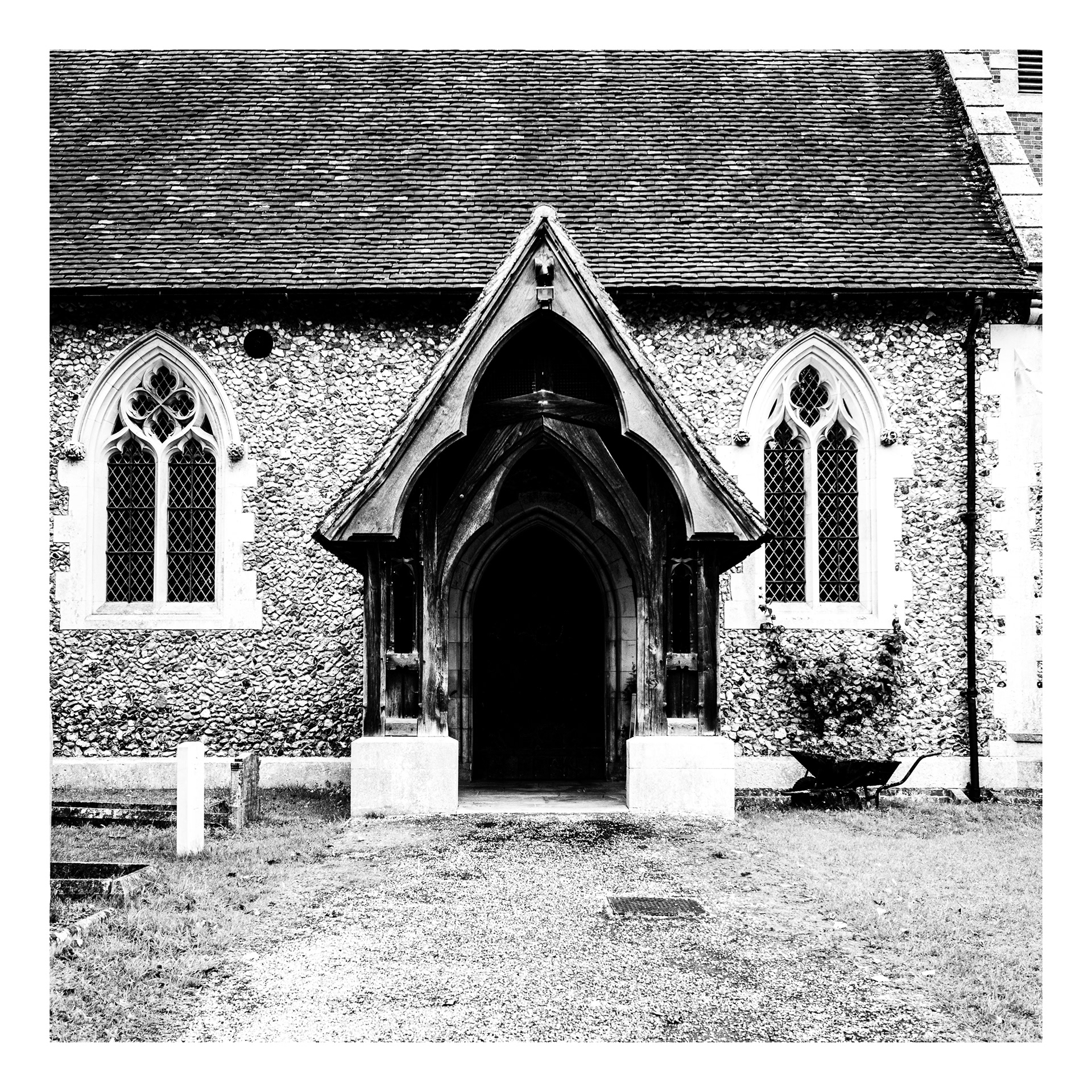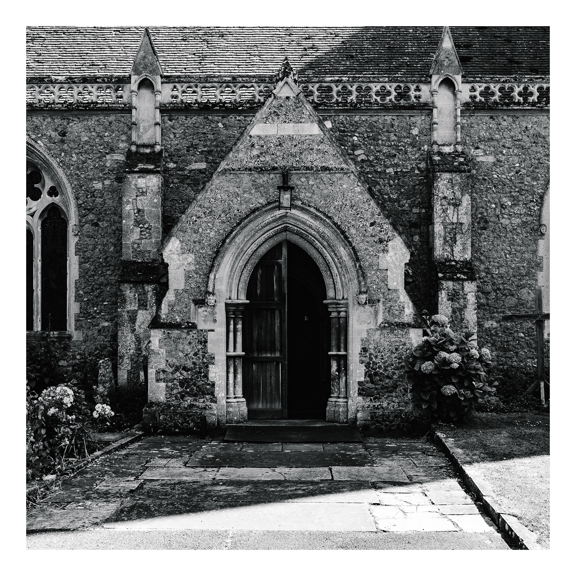 Holy Doors presents a series of church entrances photographed frontally from a consistent distance and height.