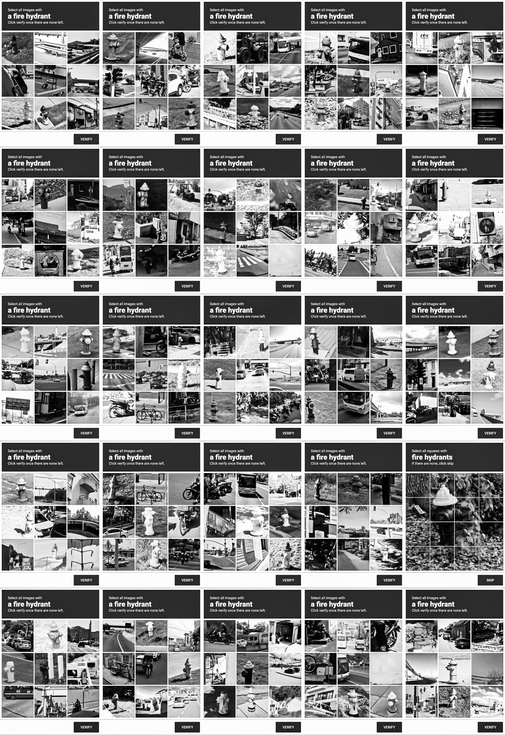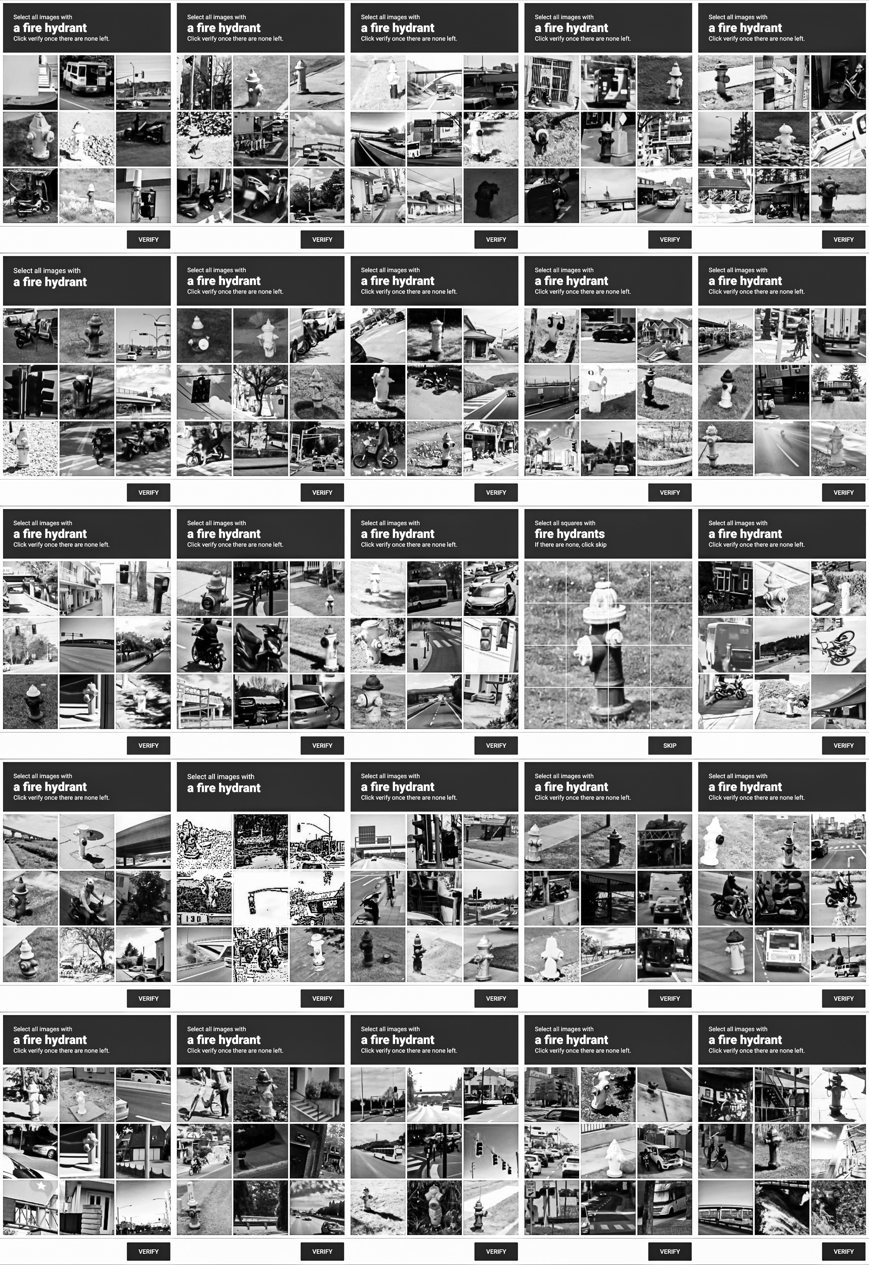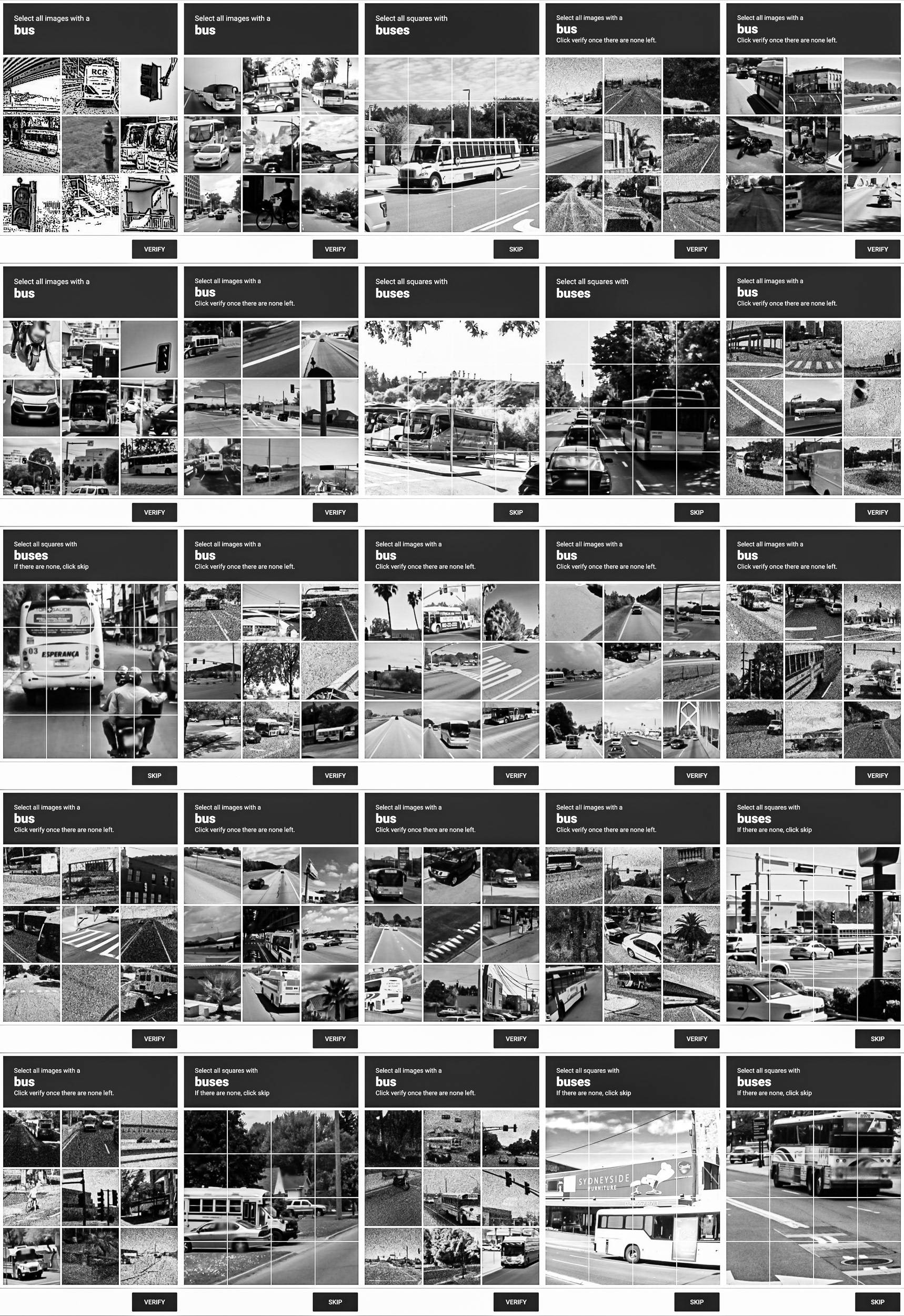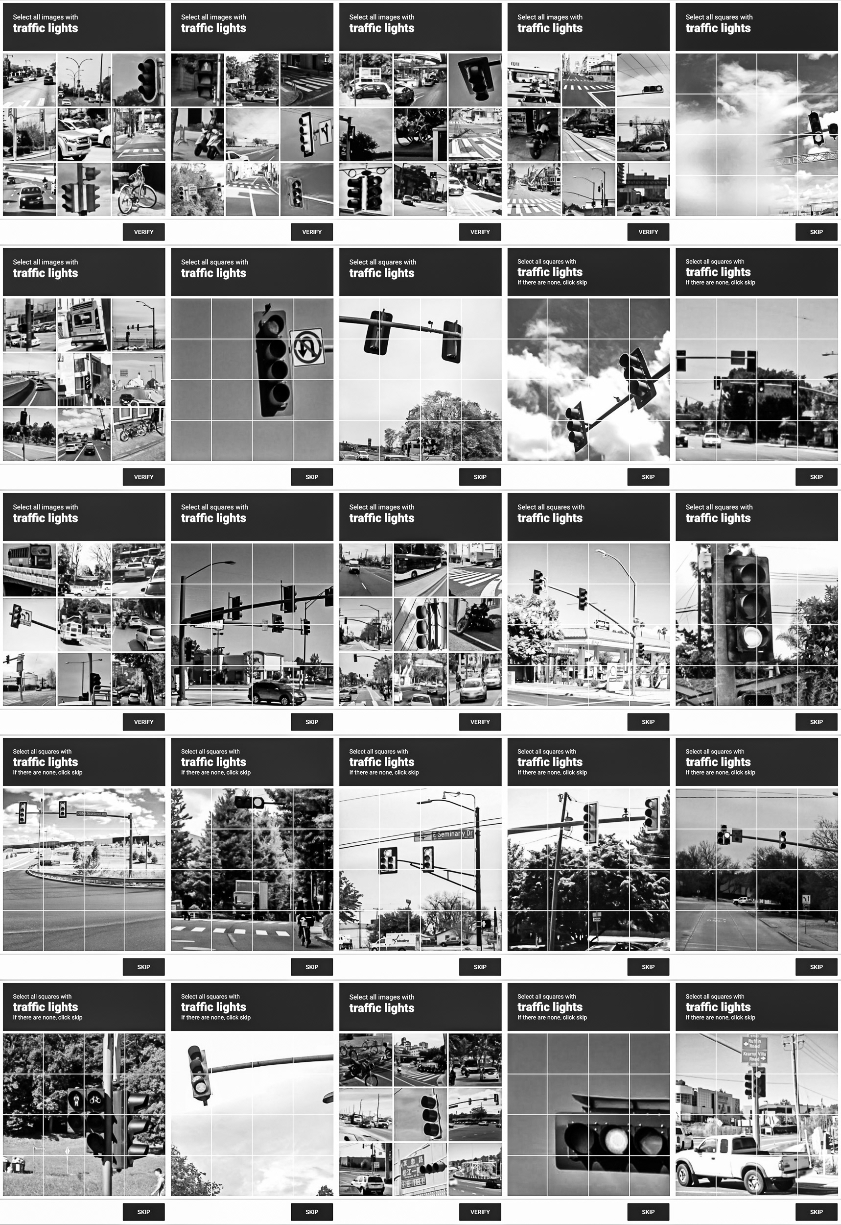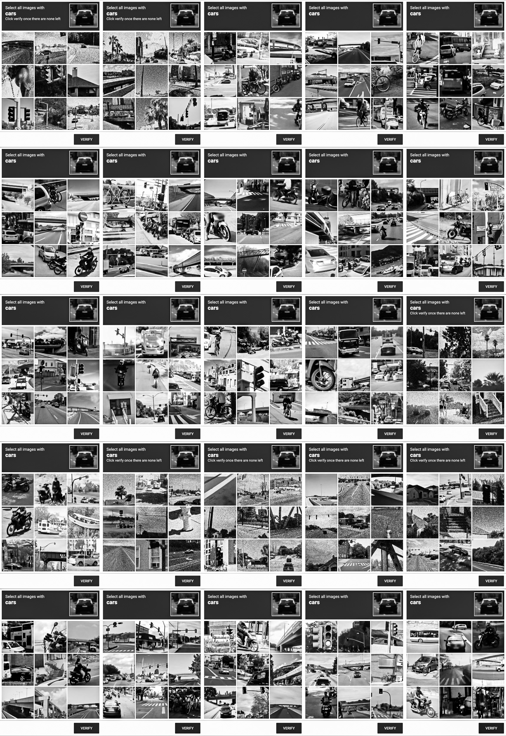 Through this process, photographic indexicality is neutralized. Urban topographies, vehicles, and everyday objects are stripped of their narrative context, reduced to a purely functional, low-resolution visual vocabulary. The grid archives the blind infrastructure through which human biology is temporarily integrated to teach machines how to decode the world.