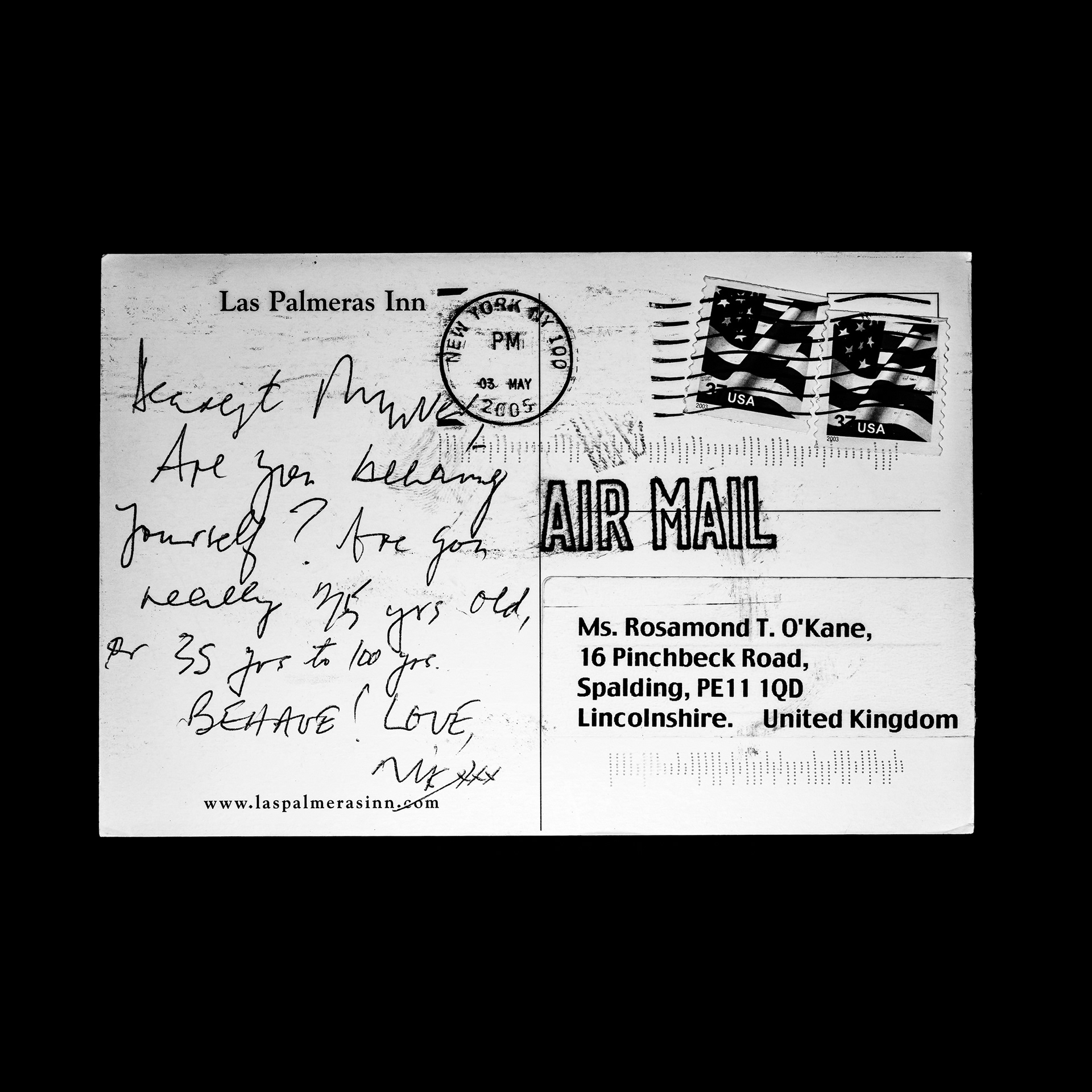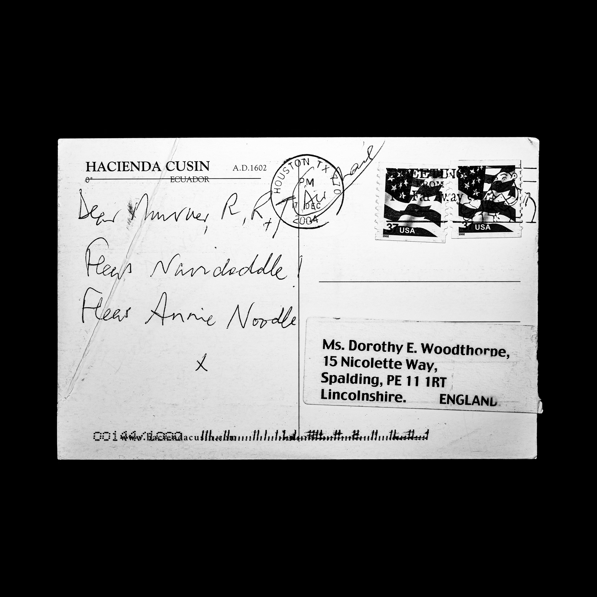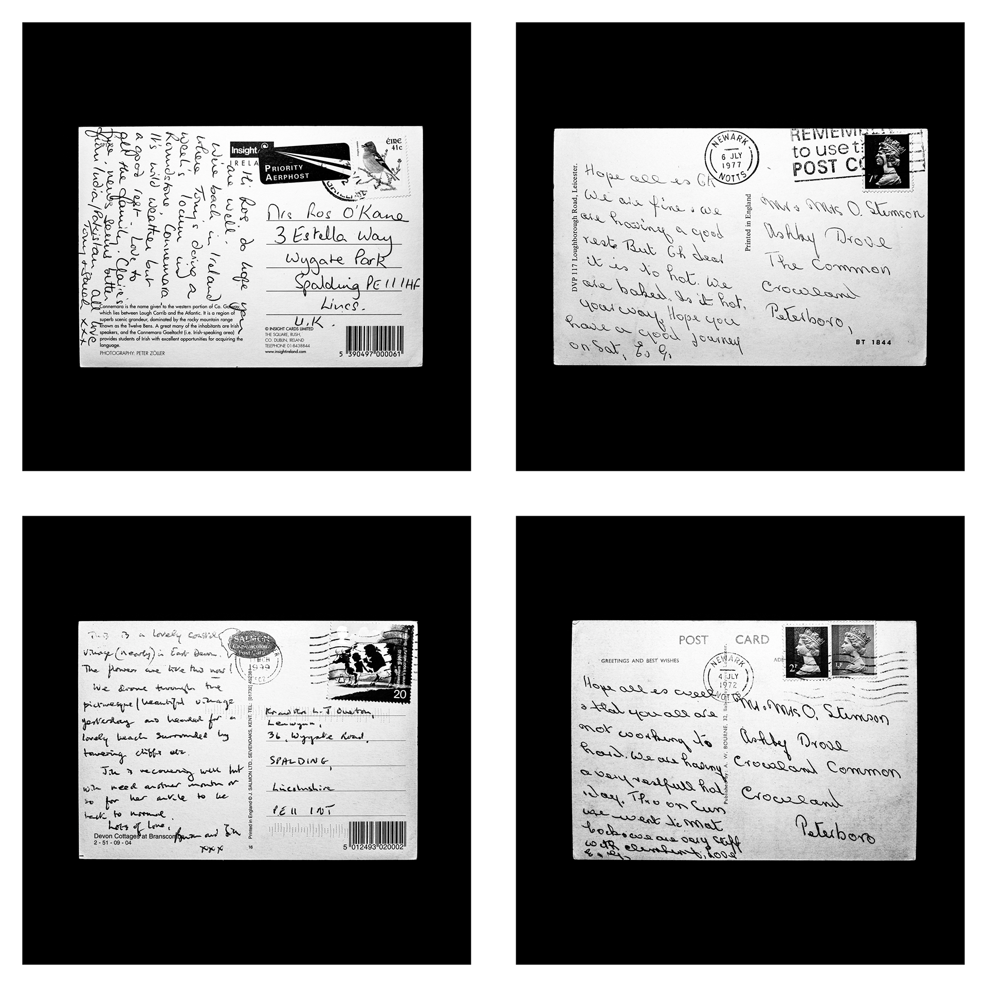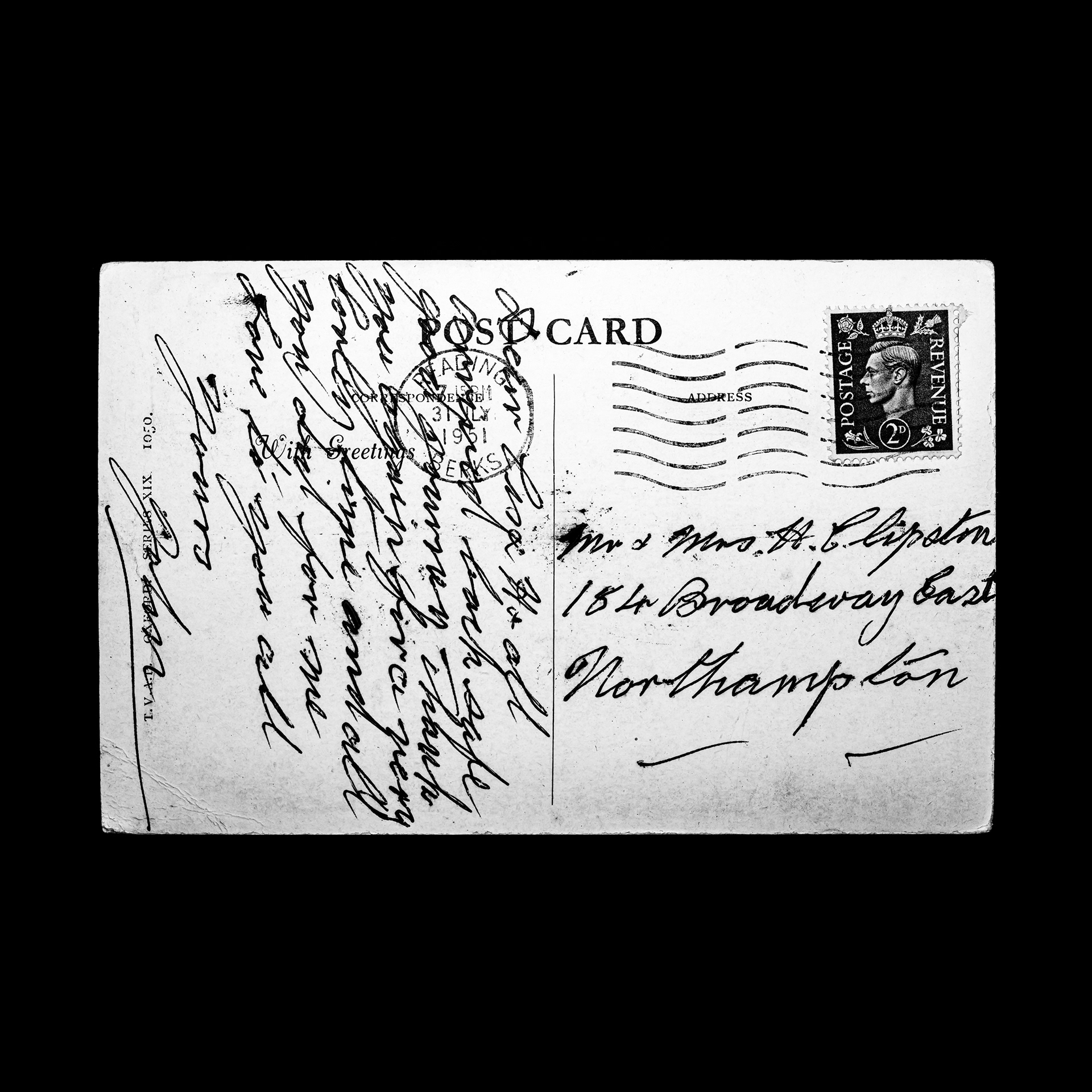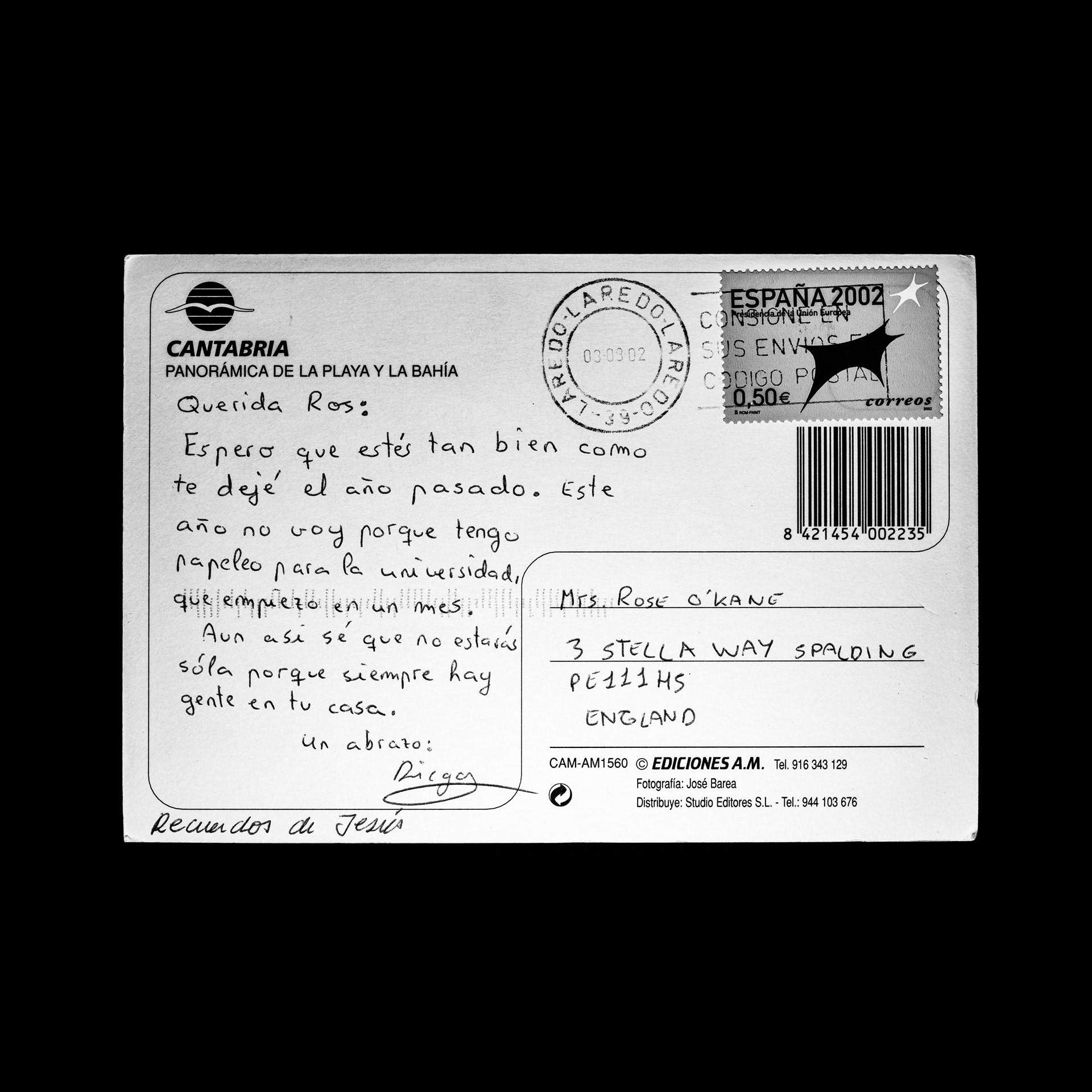 The serial nature of the presentation erases the specificity of the sender, turning handwriting and greetings into fossilized traces of an interaction bureaucratized by the postal service. Intimacy is turned into an archive, and the system of communication prevails over the content of the message.