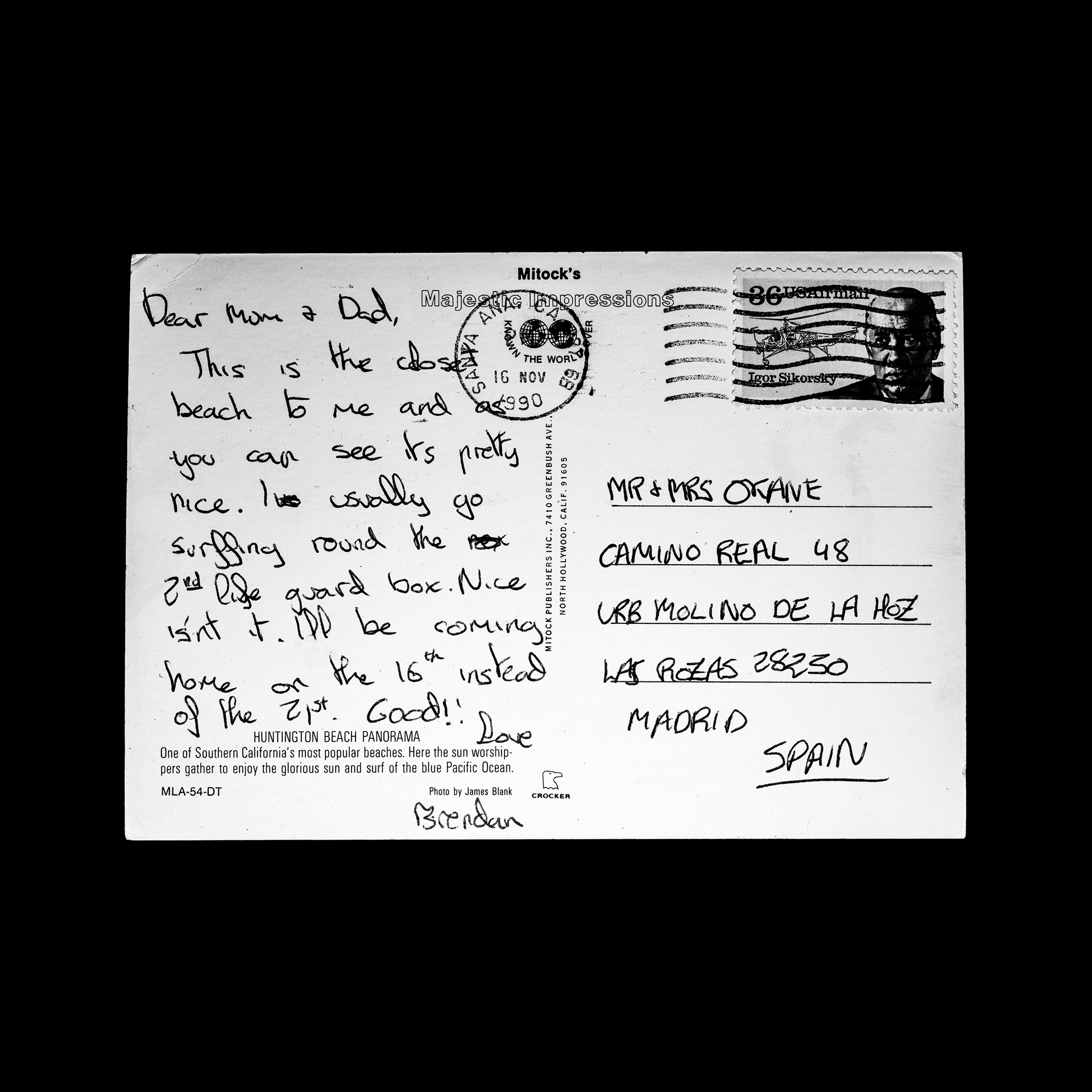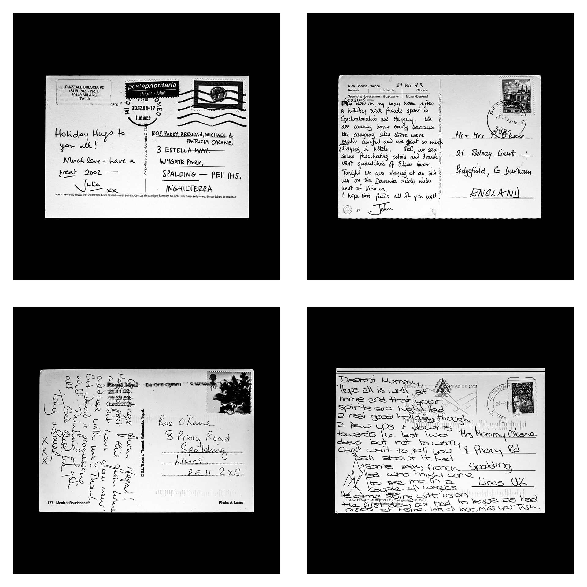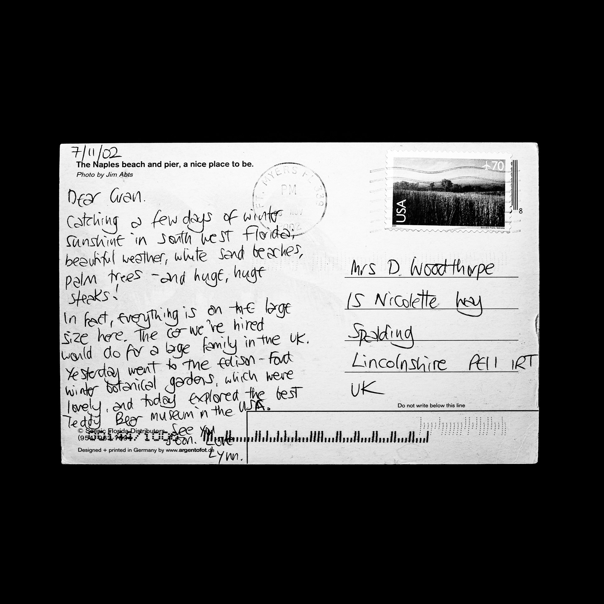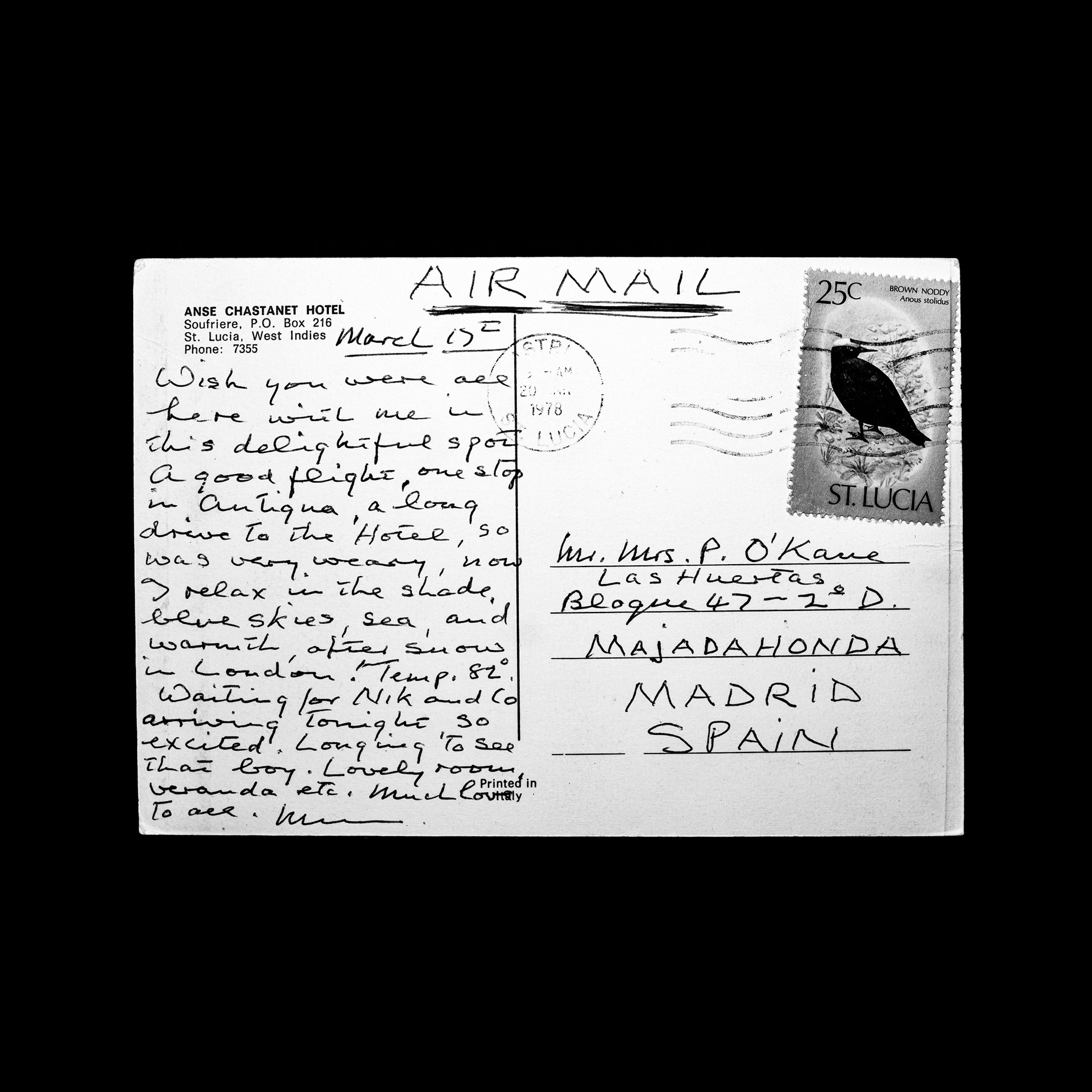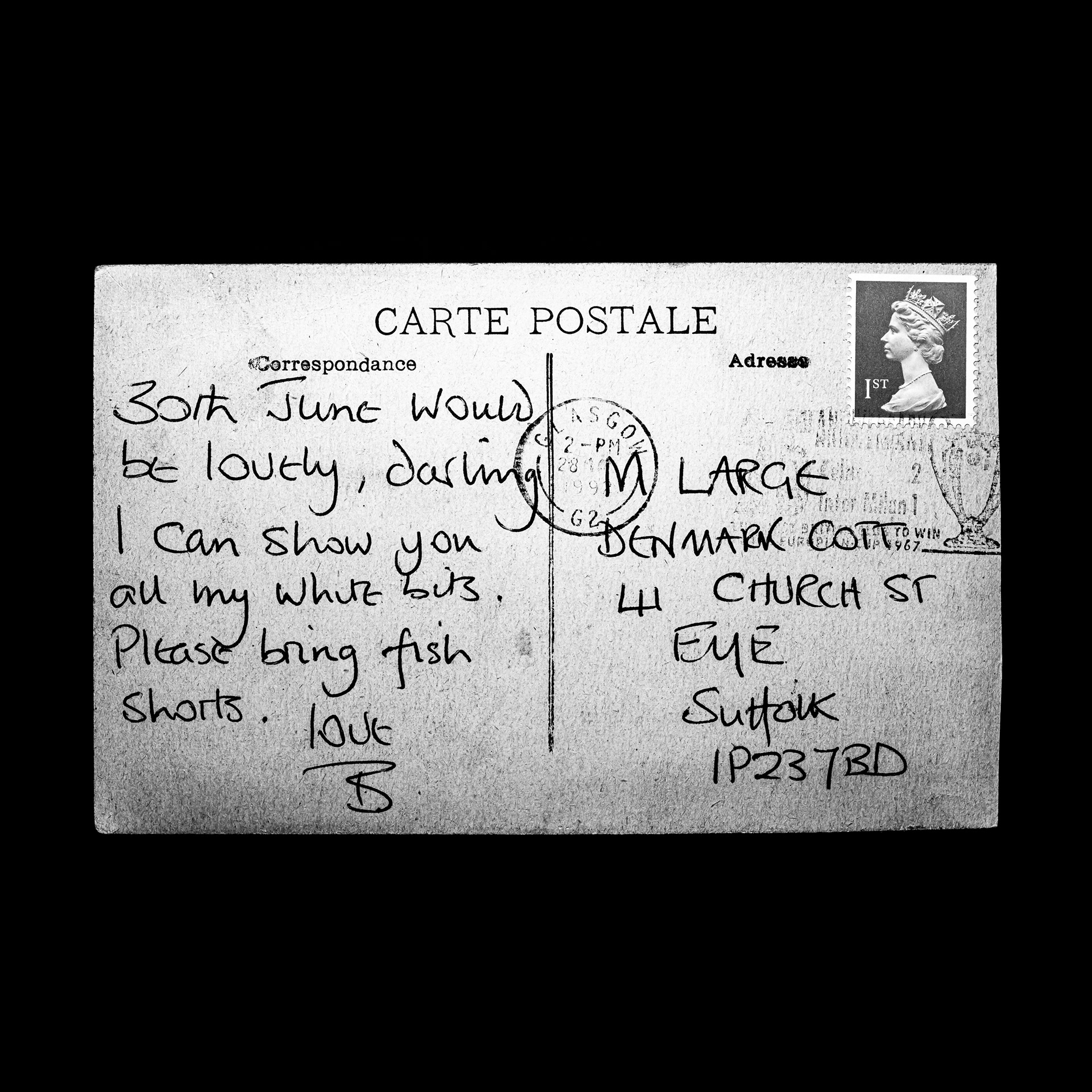 The serial nature of the presentation erases the specificity of the sender, turning handwriting and greetings into fossilized traces of an interaction bureaucratized by the postal service. Intimacy is turned into an archive, and the system of communication prevails over the content of the message.