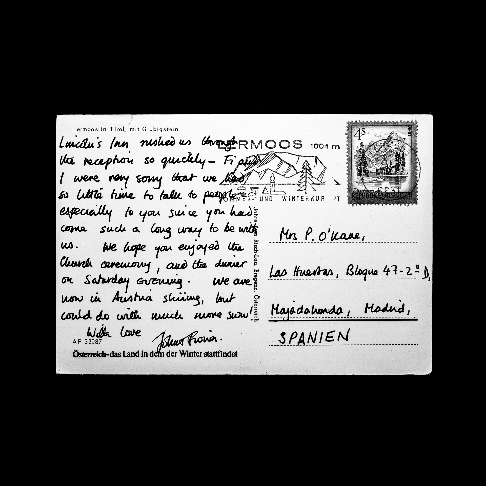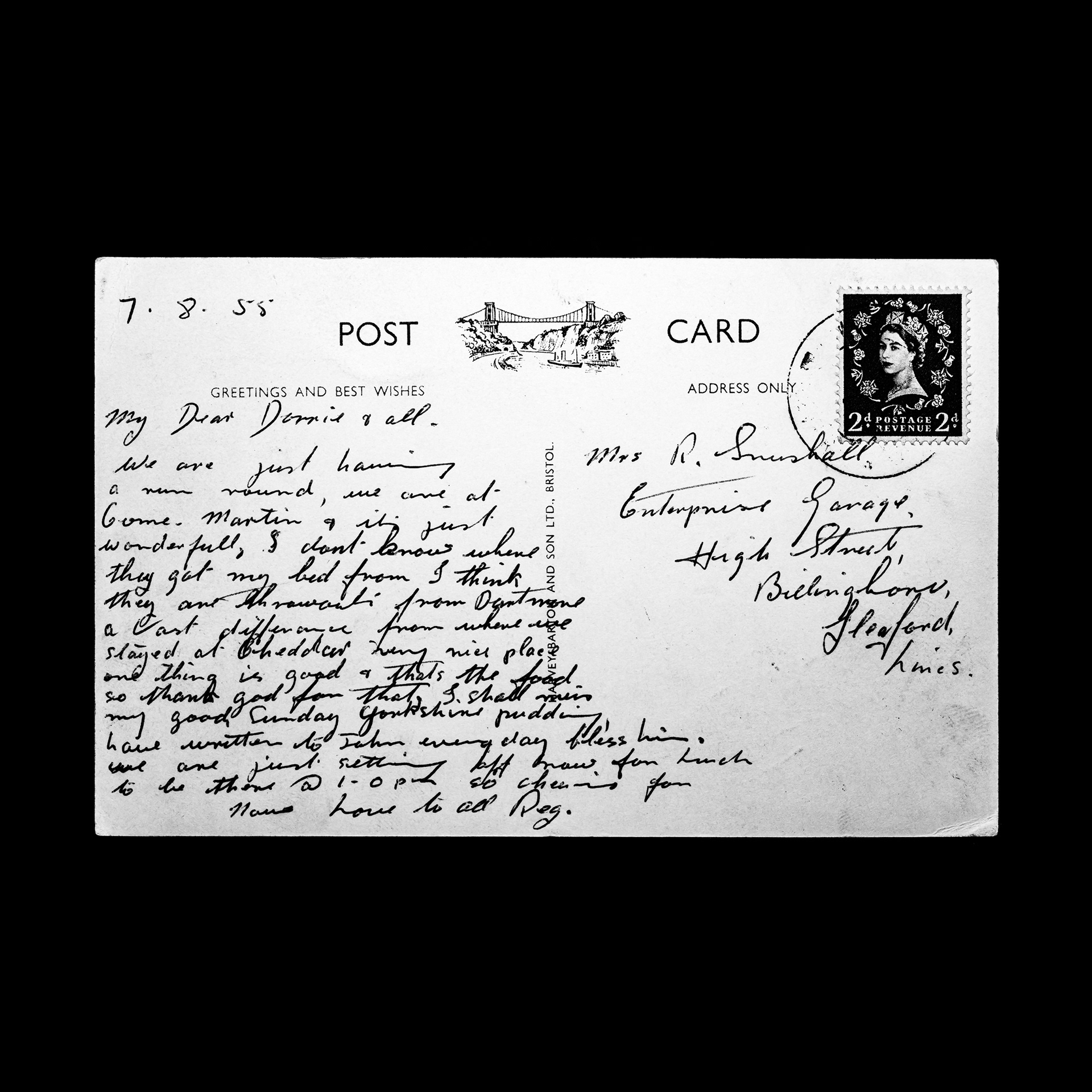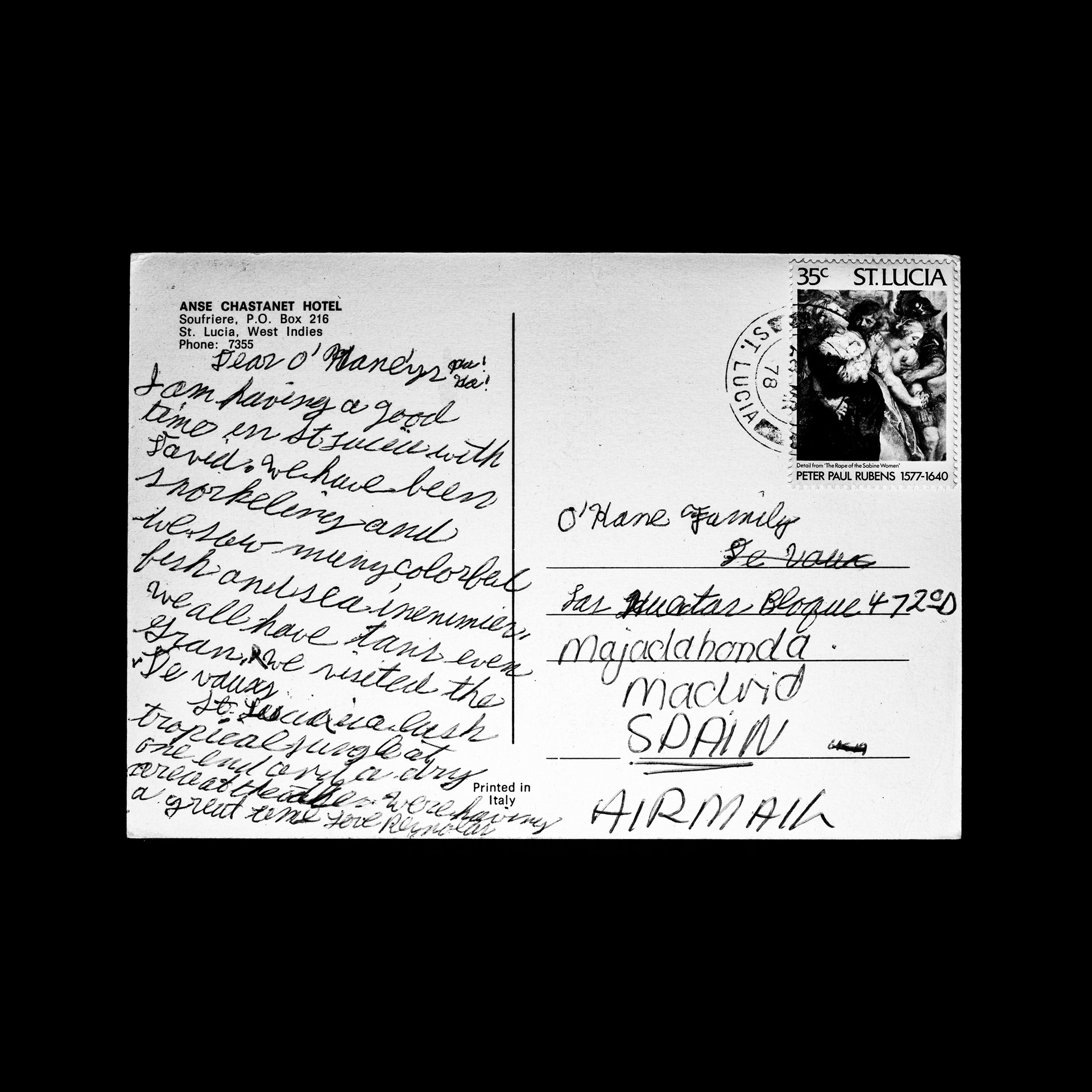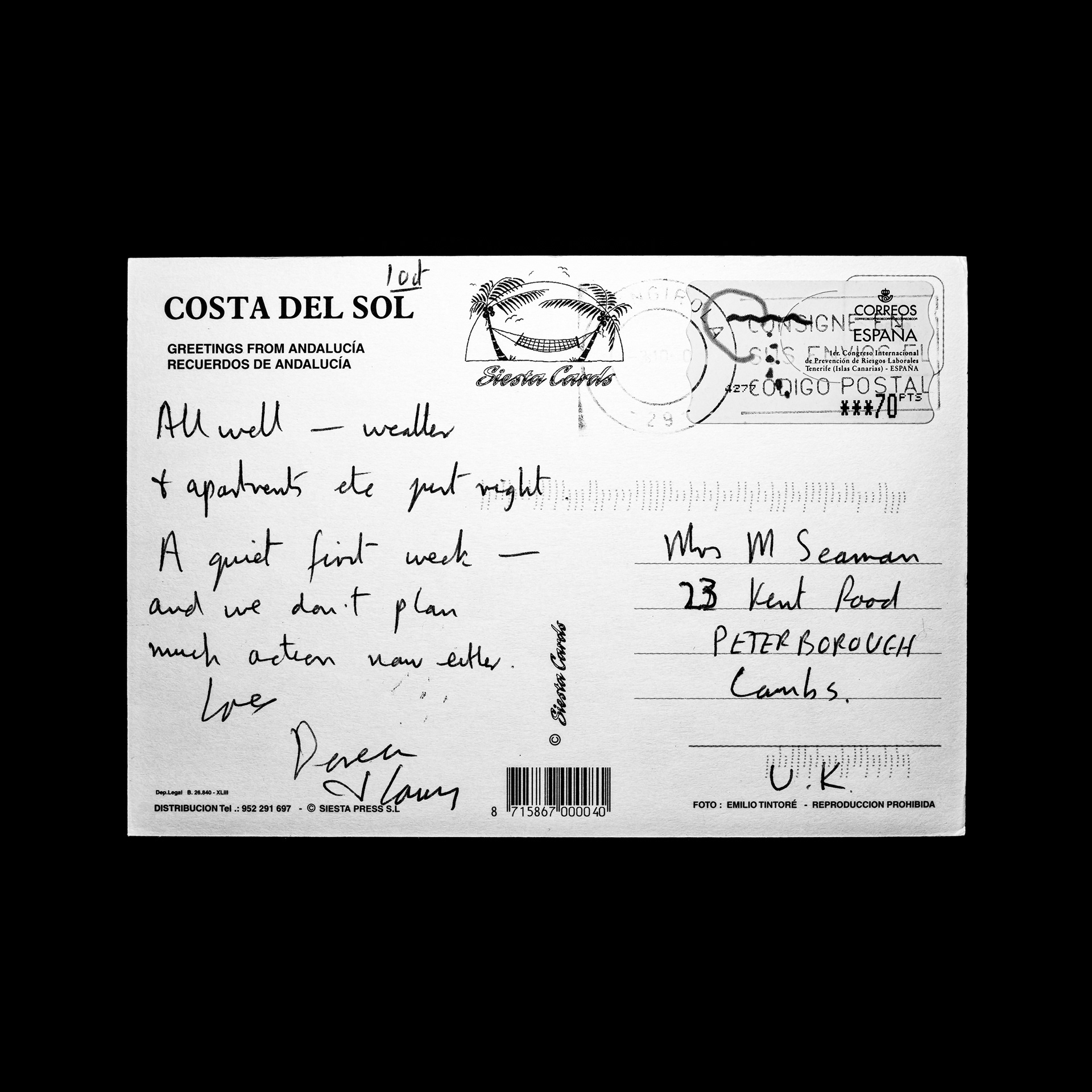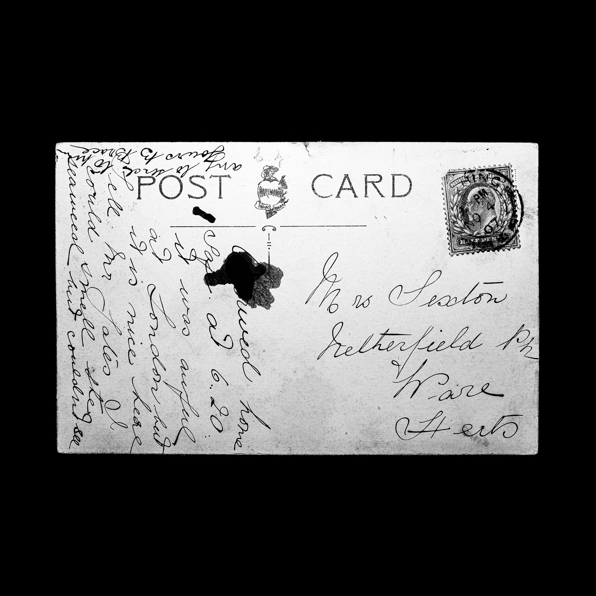 The serial nature of the presentation erases the specificity of the sender, turning handwriting and greetings into fossilized traces of an interaction bureaucratized by the postal service. Intimacy is turned into an archive, and the system of communication prevails over the content of the message.