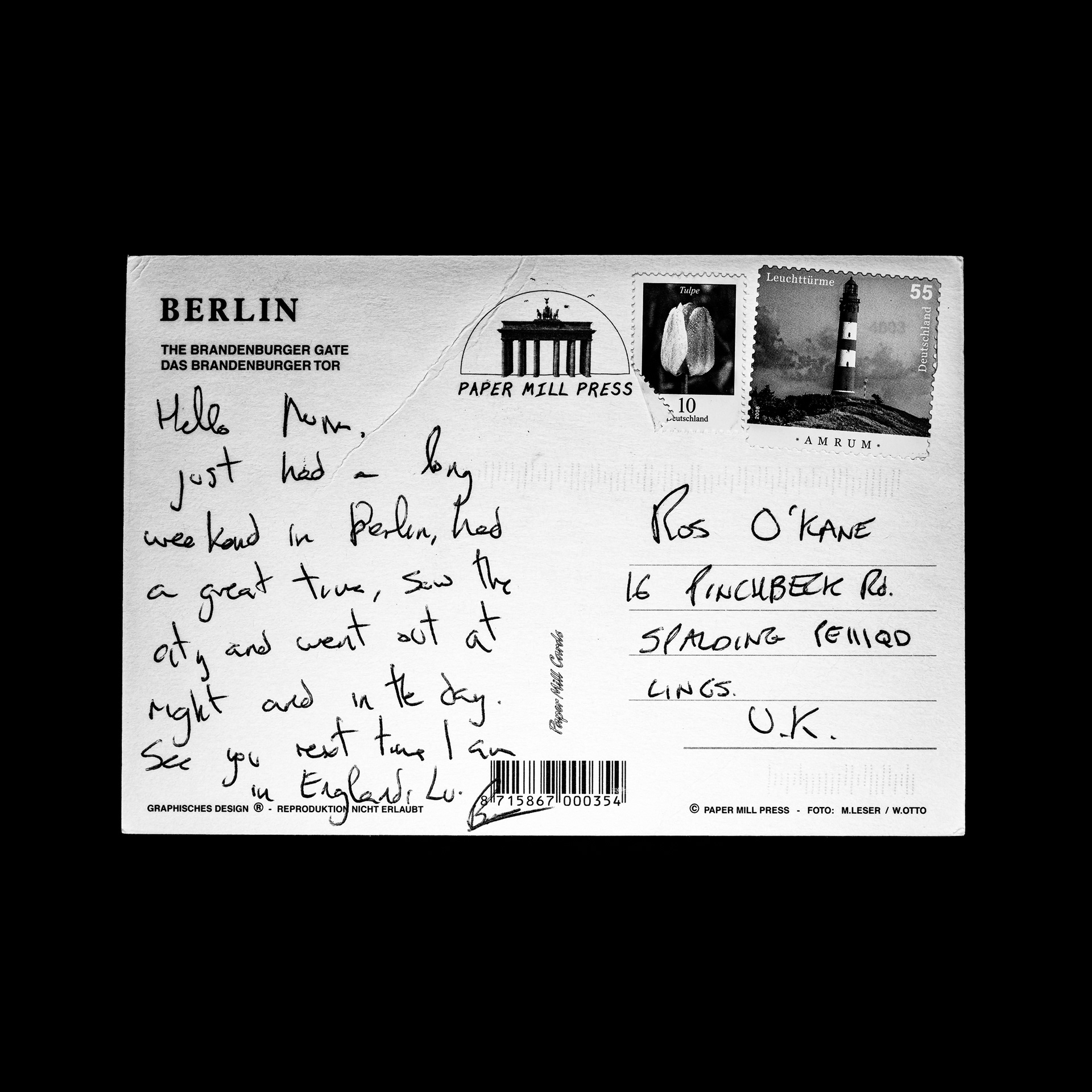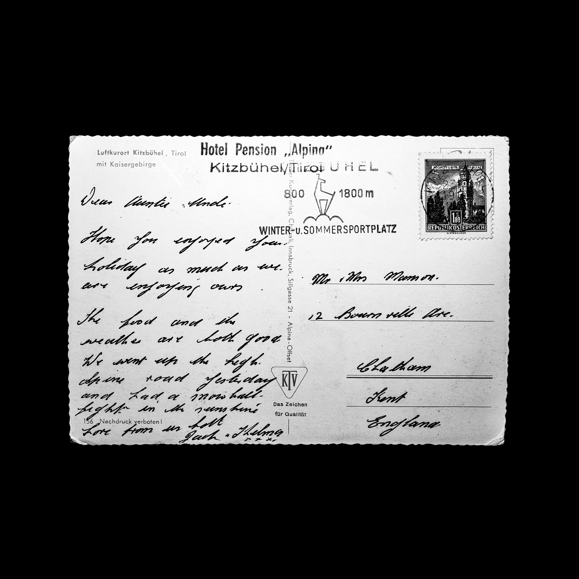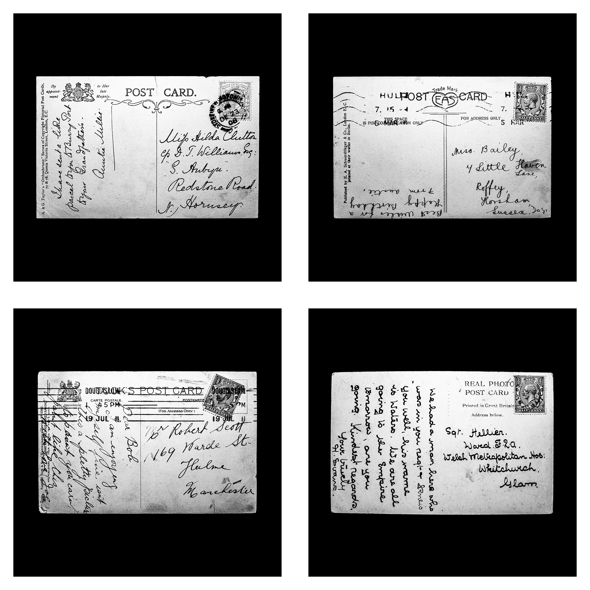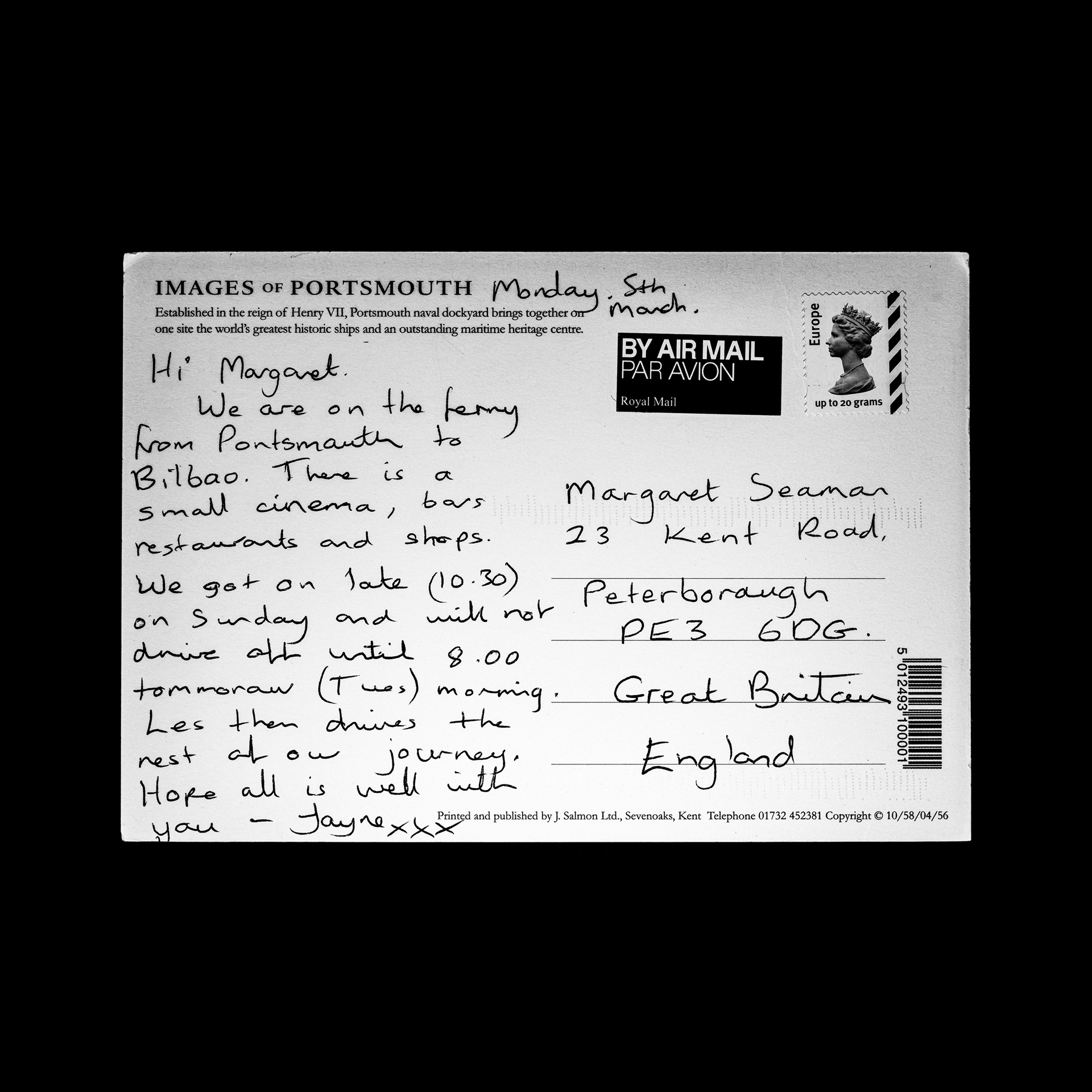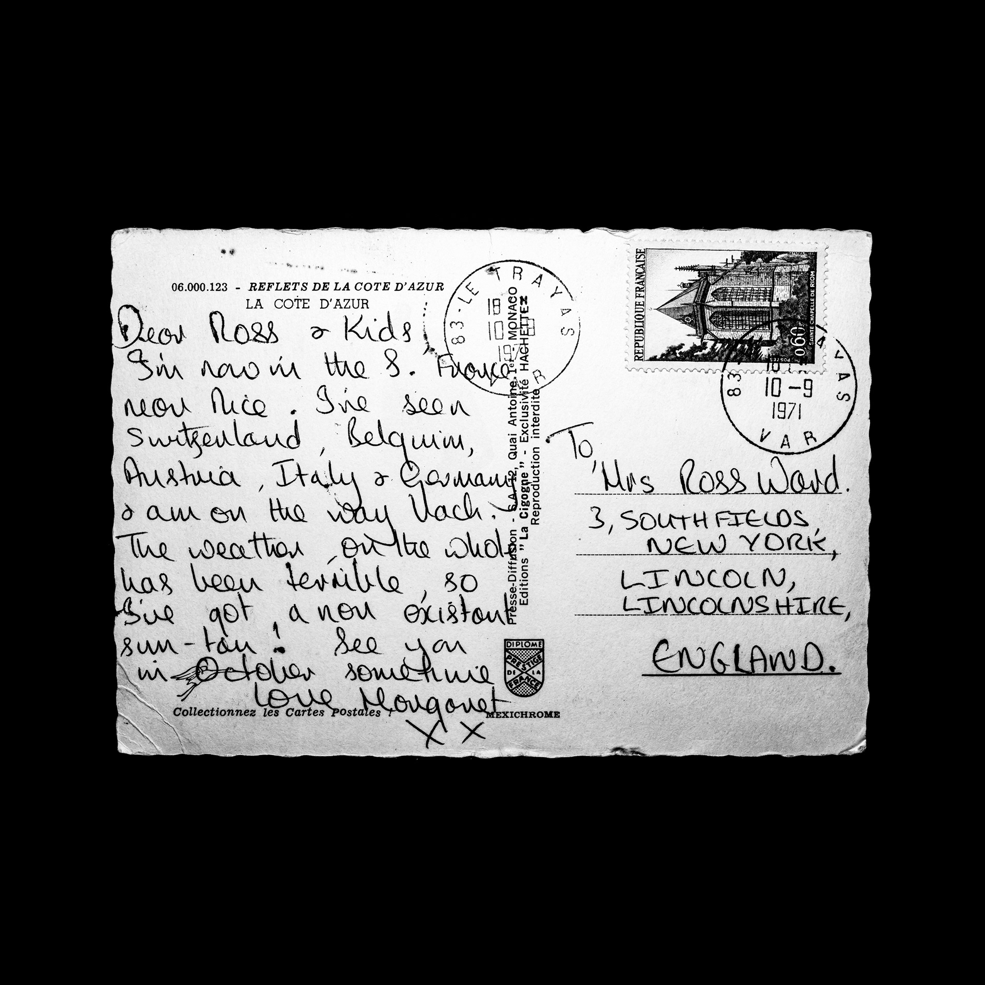The serial nature of the presentation erases the specificity of the sender, turning handwriting and greetings into fossilized traces of an interaction bureaucratized by the postal service. Intimacy is turned into an archive, and the system of communication prevails over the content of the message.