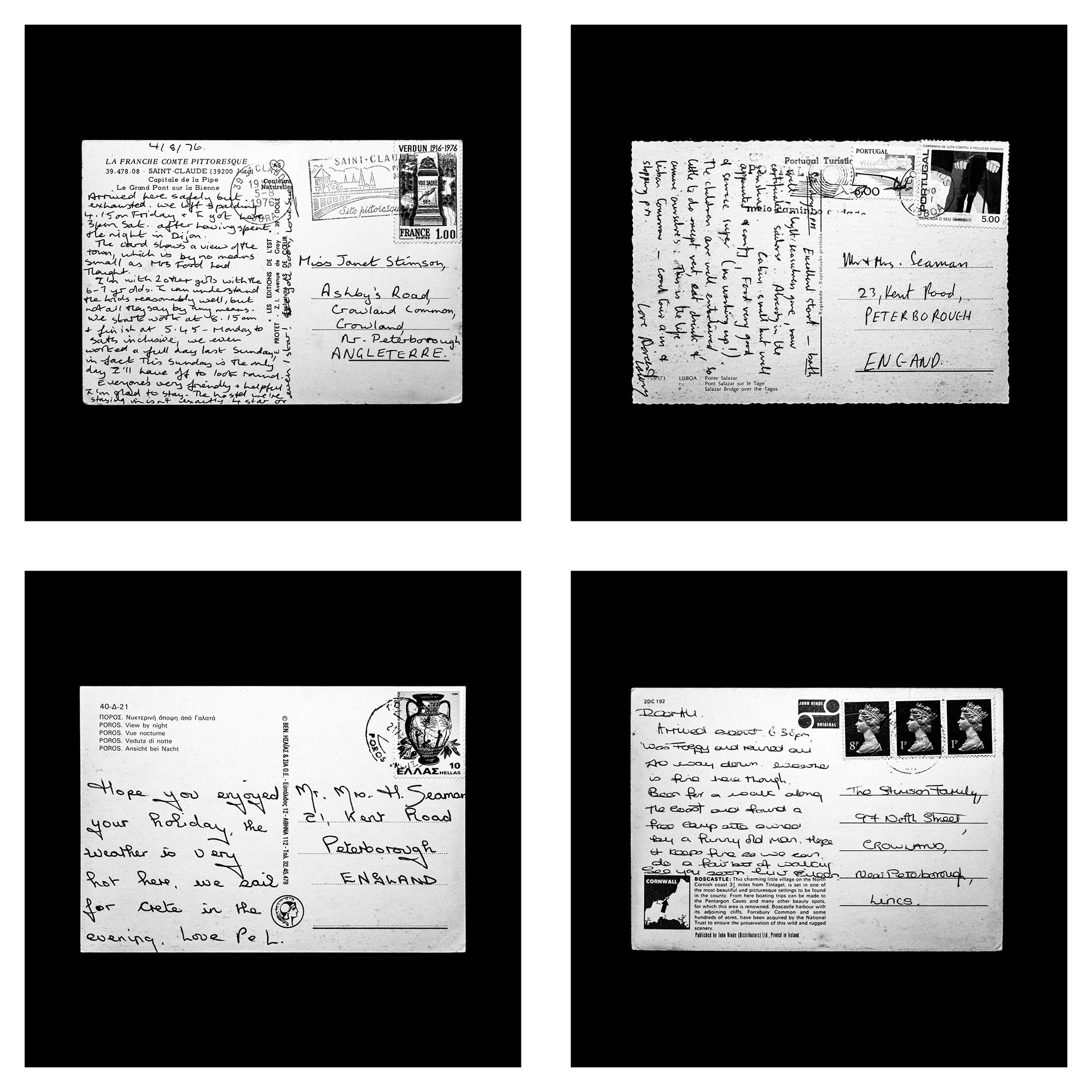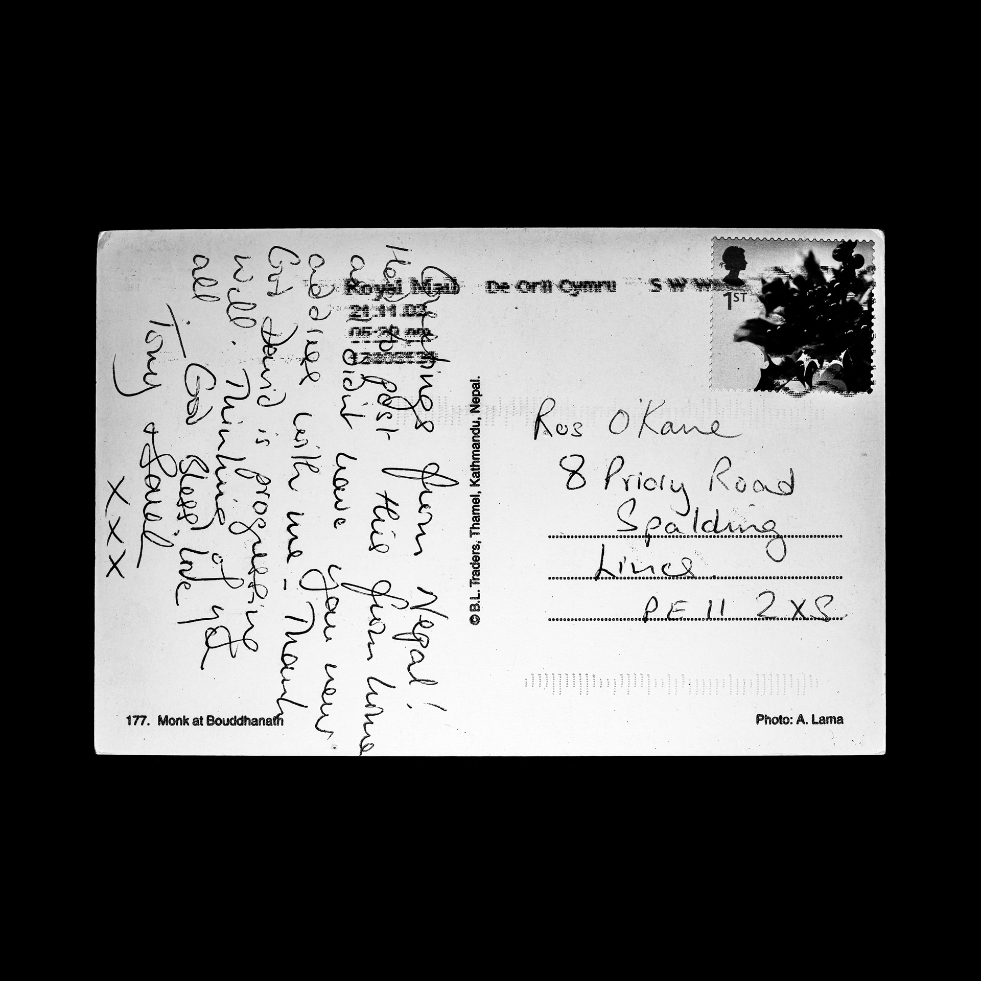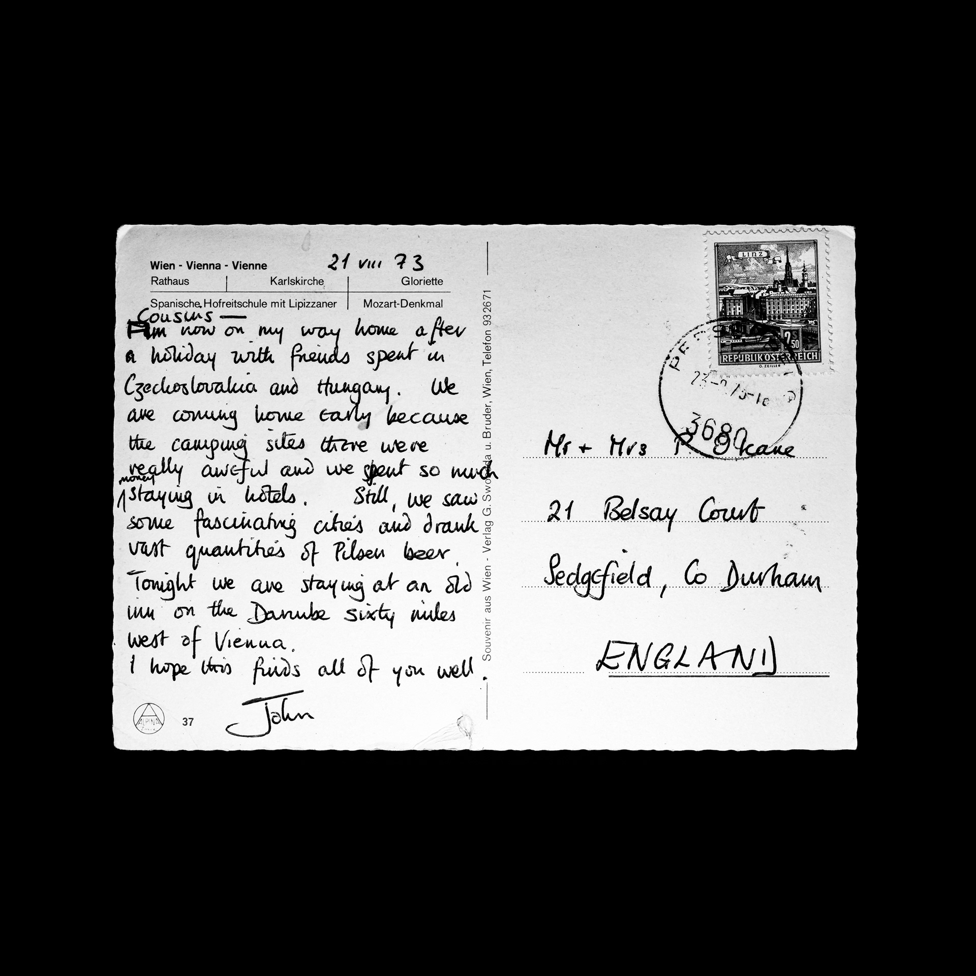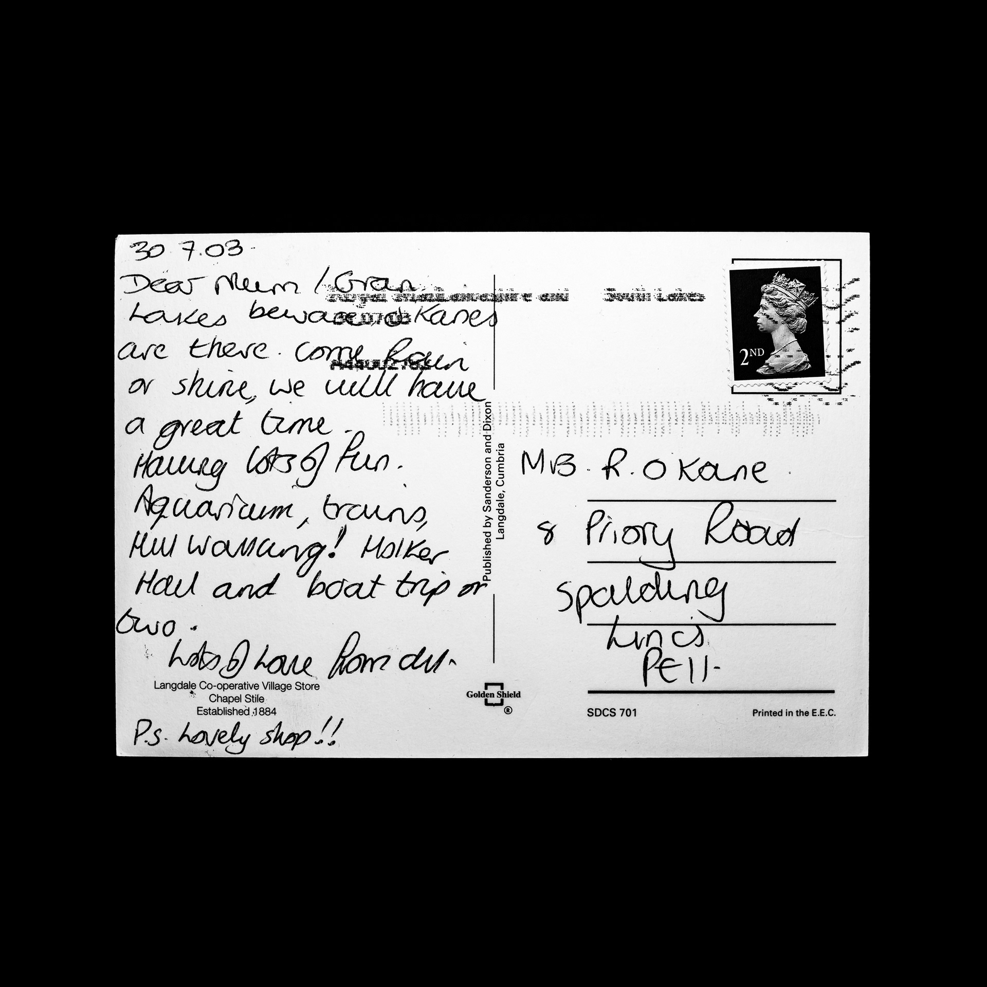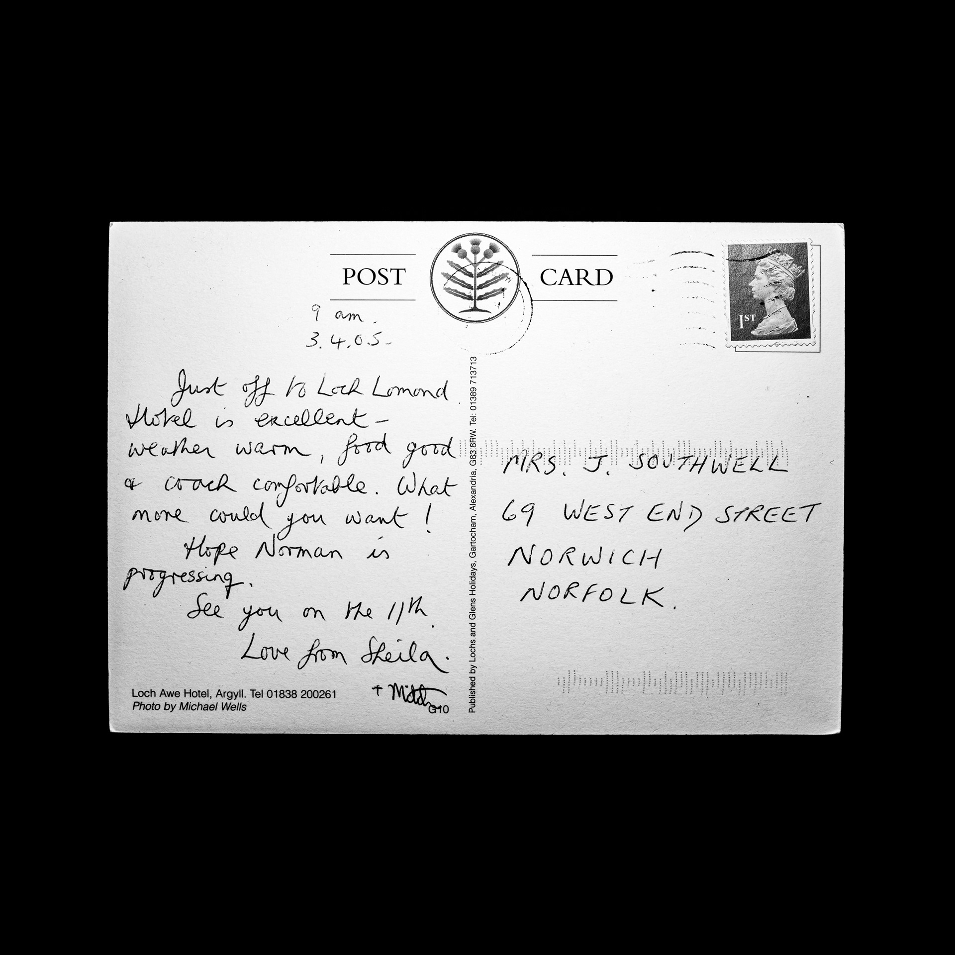 The serial nature of the presentation erases the specificity of the sender, turning handwriting and greetings into fossilized traces of an interaction bureaucratized by the postal service. Intimacy is turned into an archive, and the system of communication prevails over the content of the message.