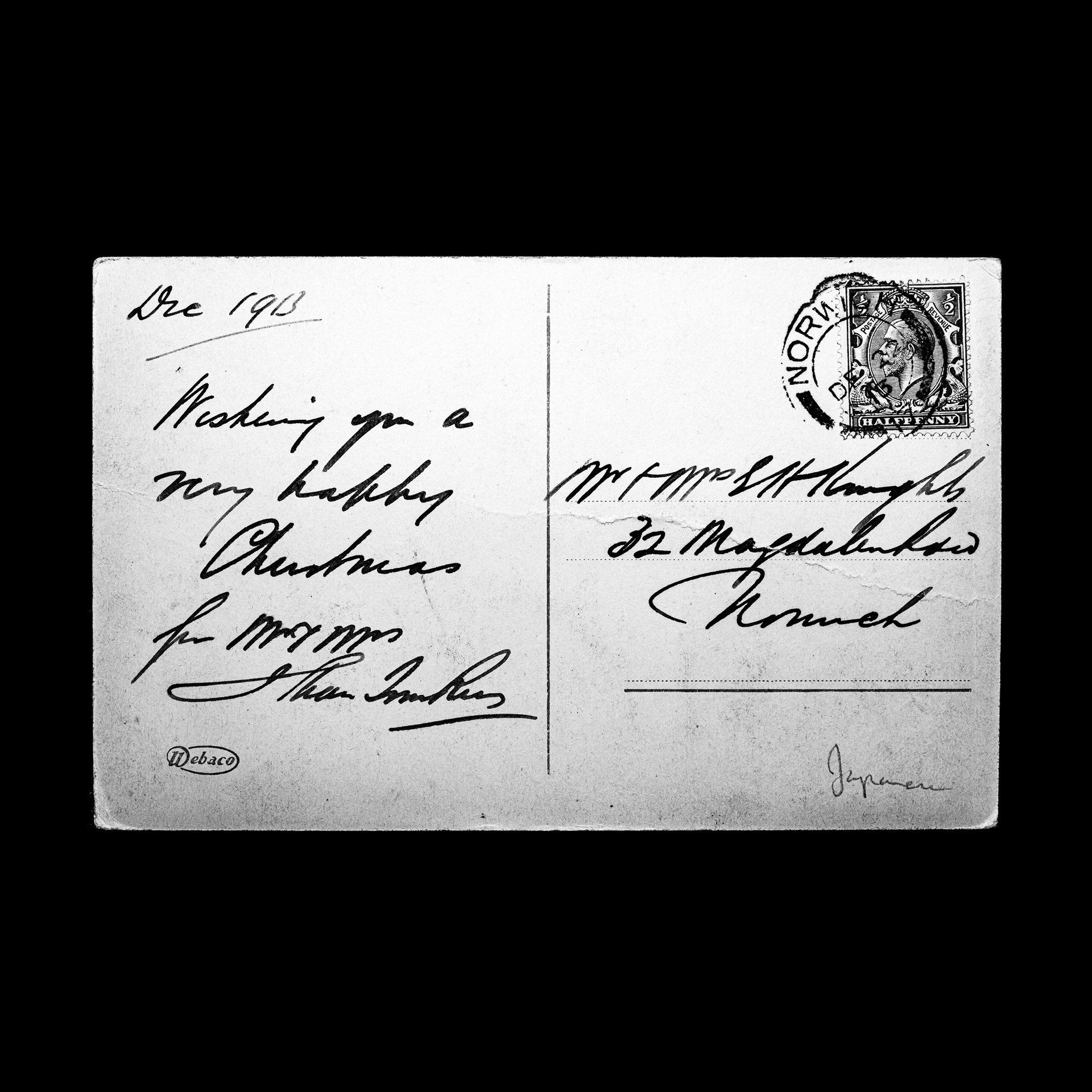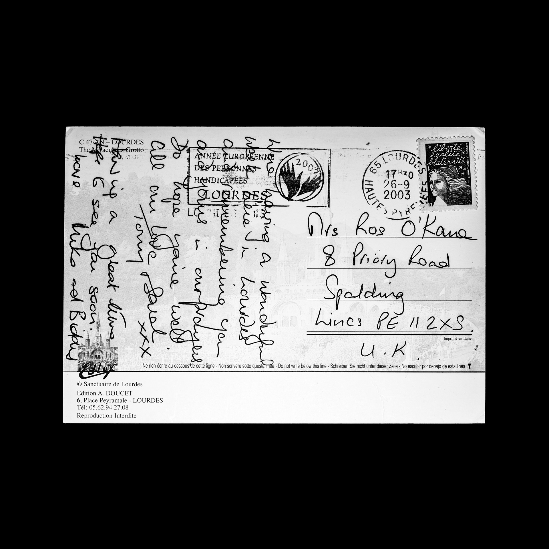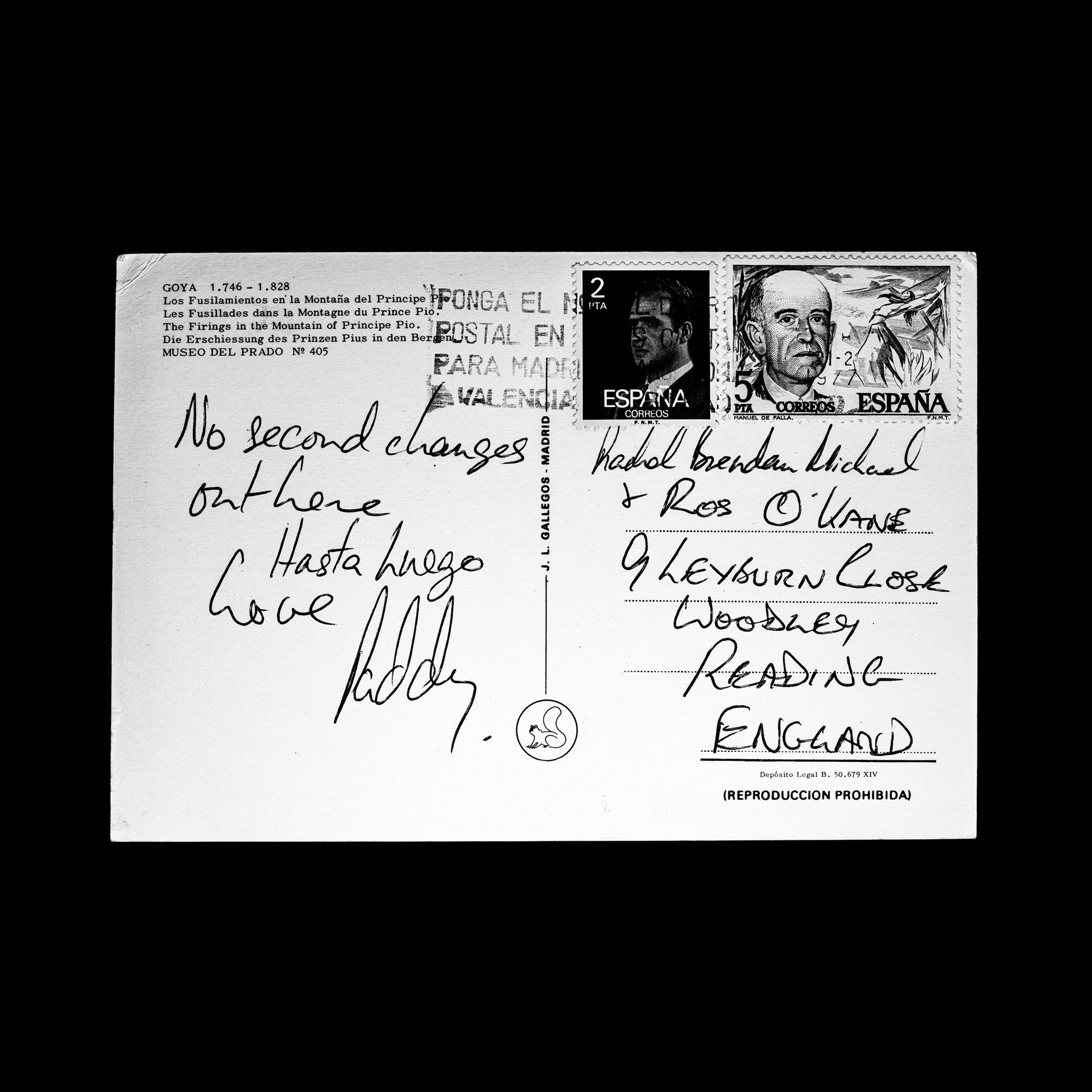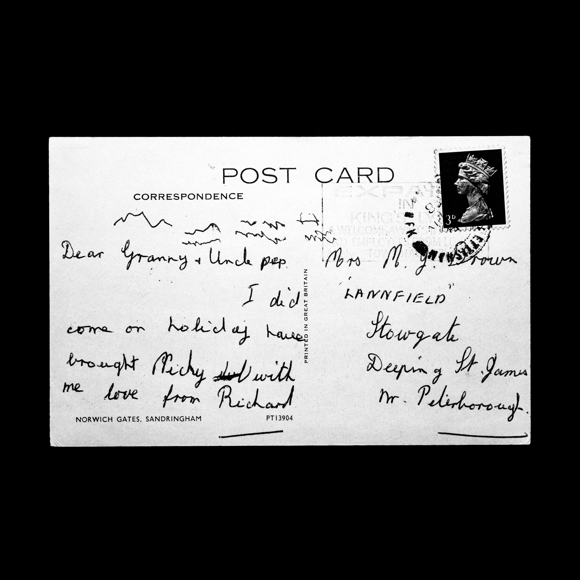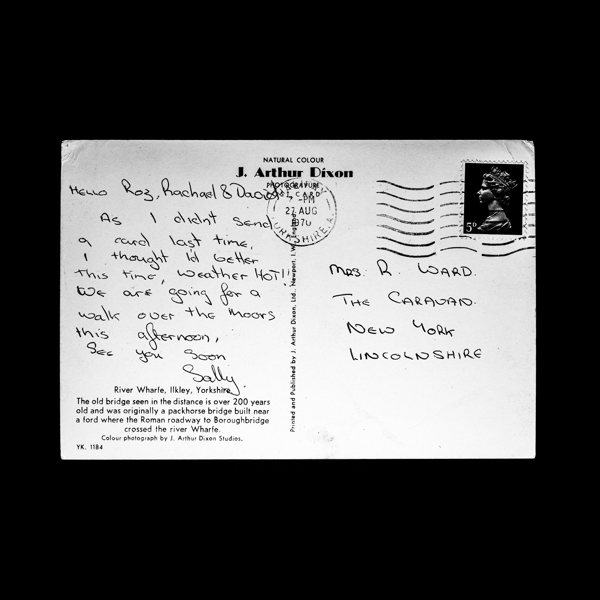 The serial nature of the presentation erases the specificity of the sender, turning handwriting and greetings into fossilized traces of an interaction bureaucratized by the postal service. Intimacy is turned into an archive, and the system of communication prevails over the content of the message.