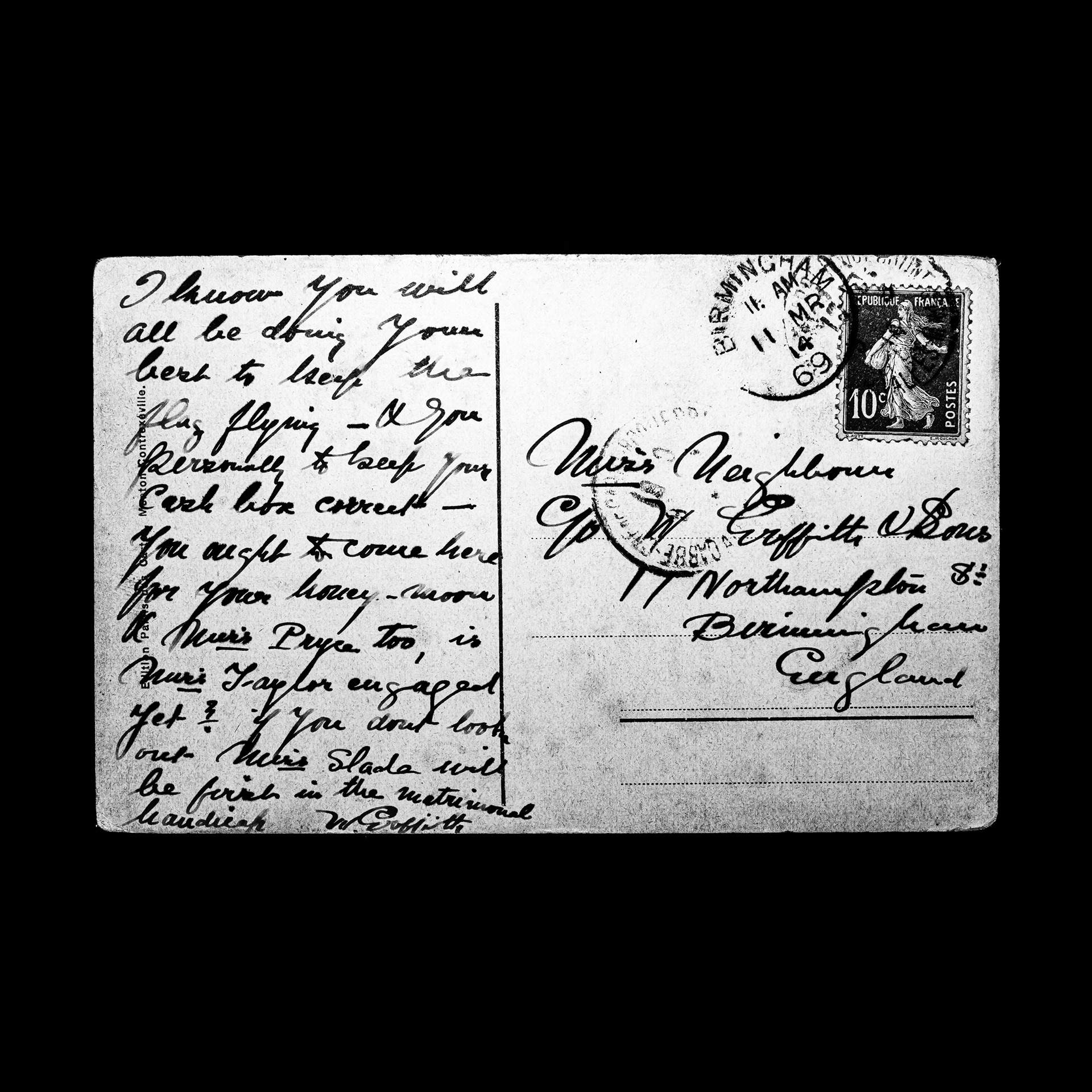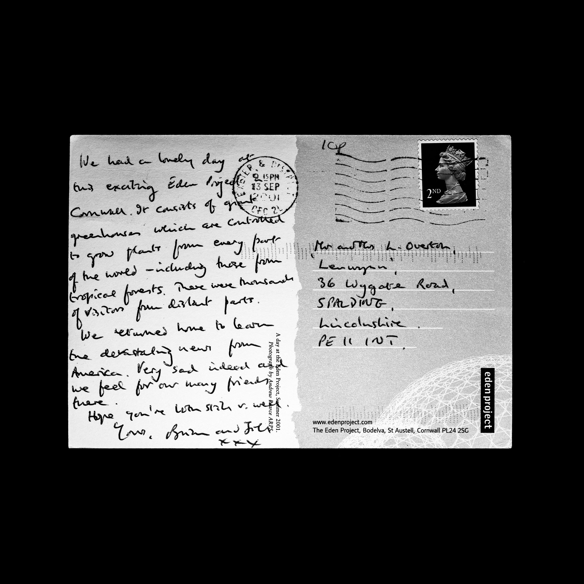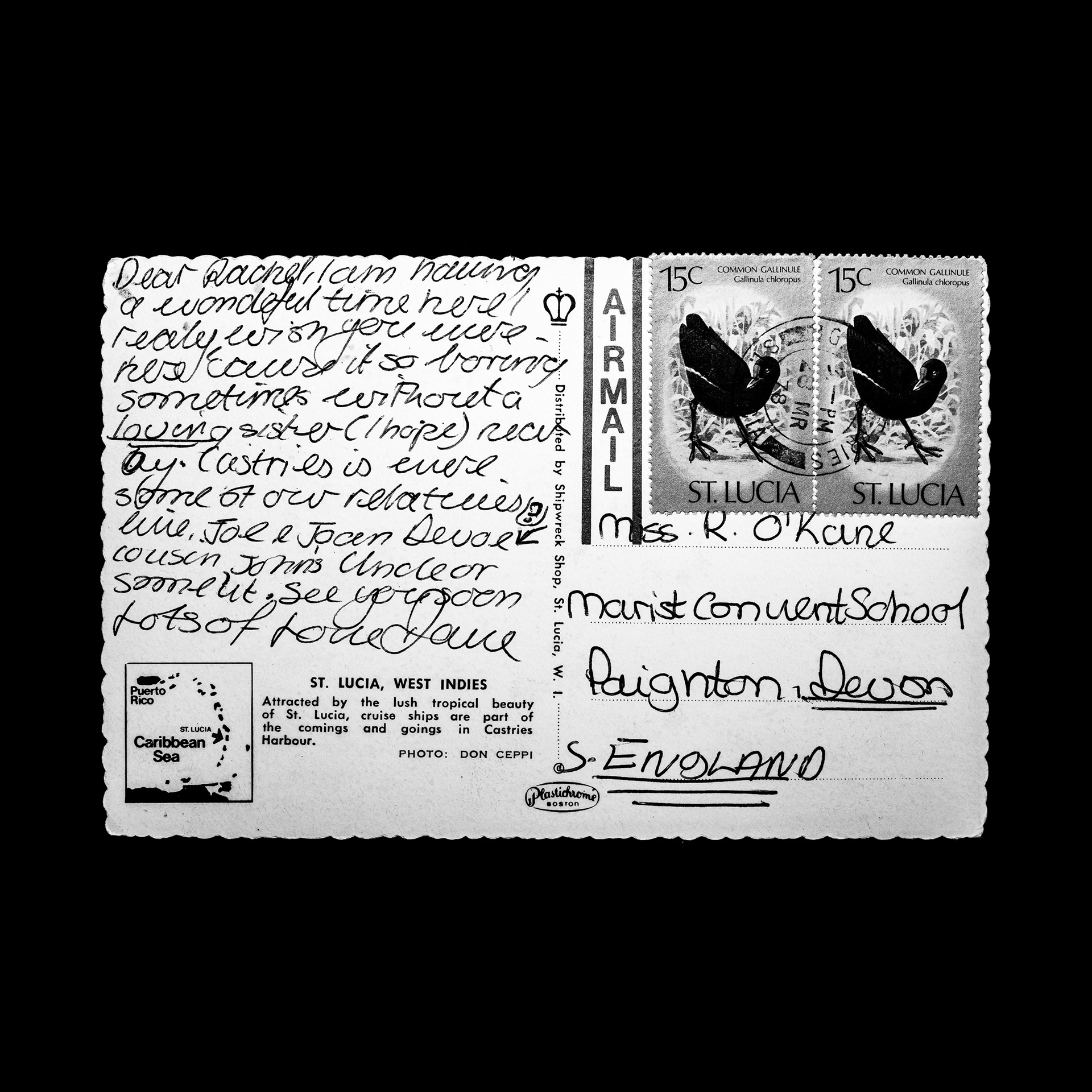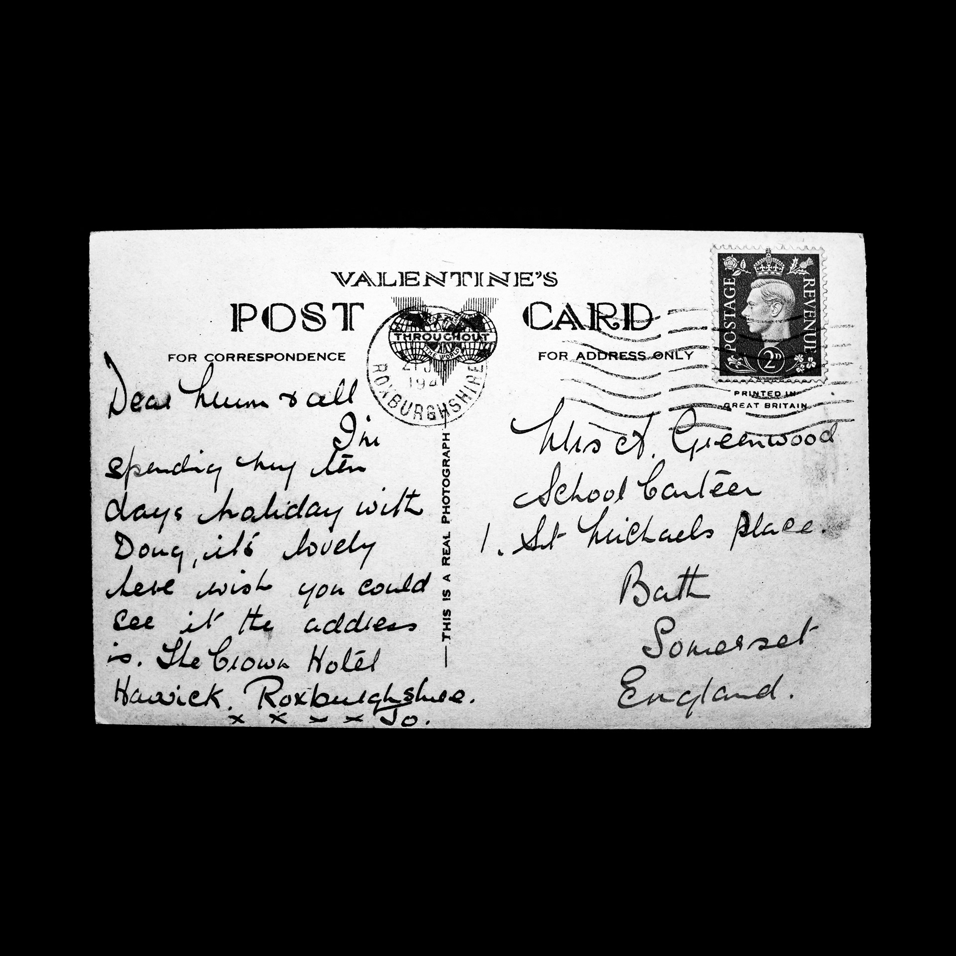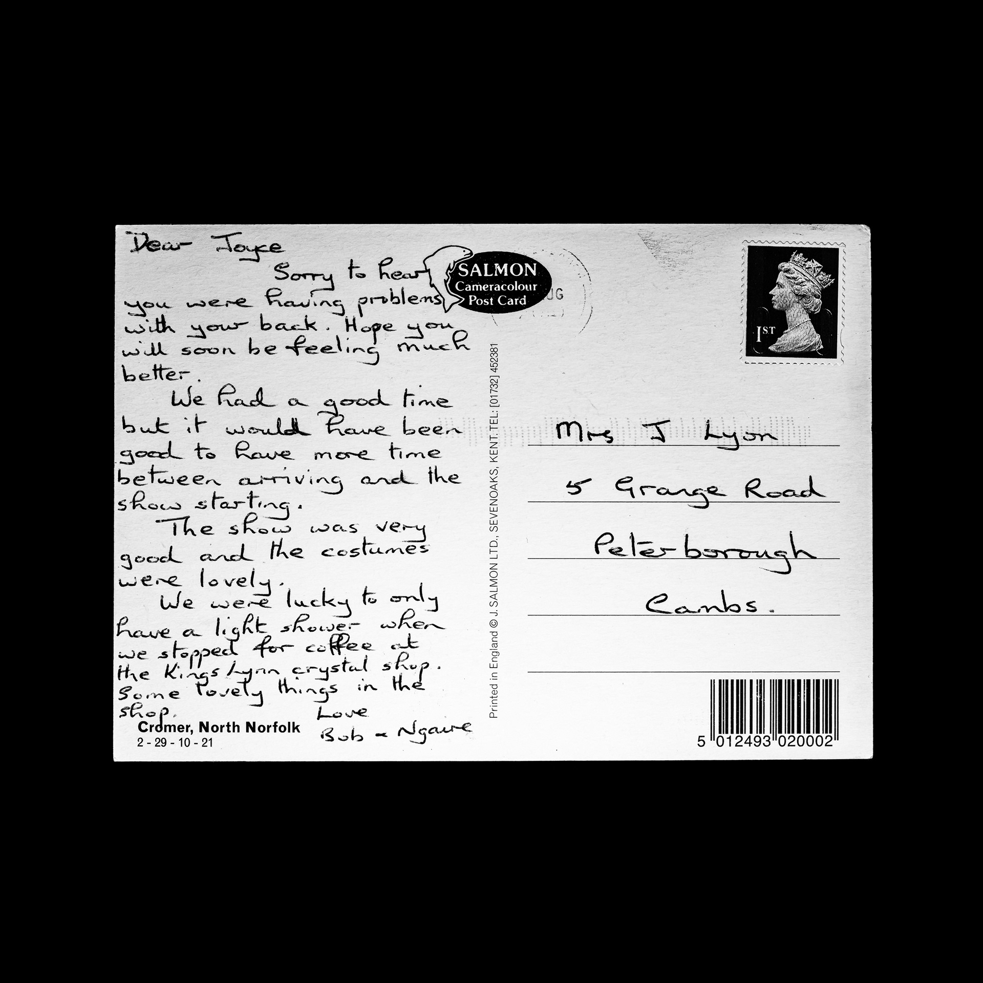 The serial nature of the presentation erases the specificity of the sender, turning handwriting and greetings into fossilized traces of an interaction bureaucratized by the postal service. Intimacy is turned into an archive, and the system of communication prevails over the content of the message.