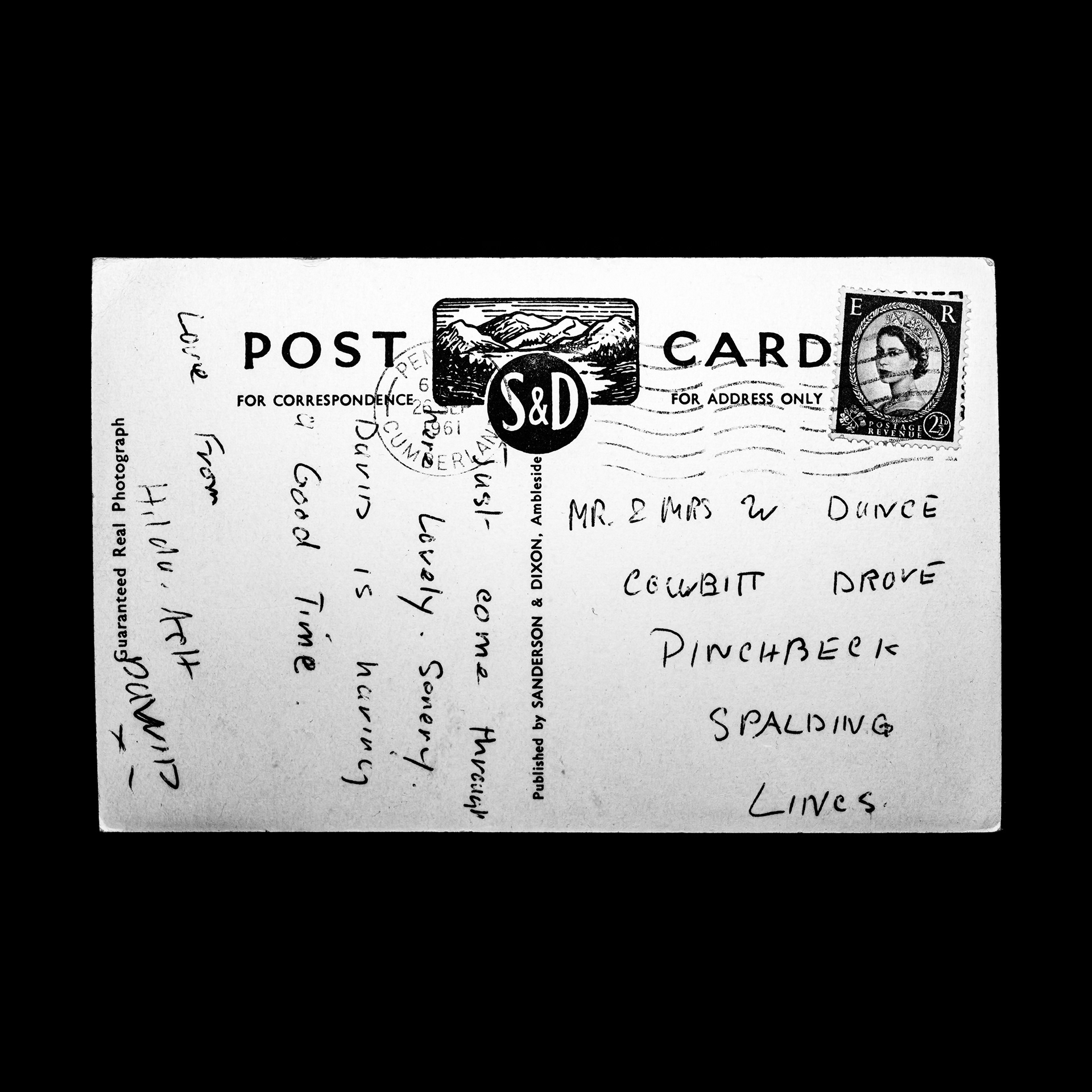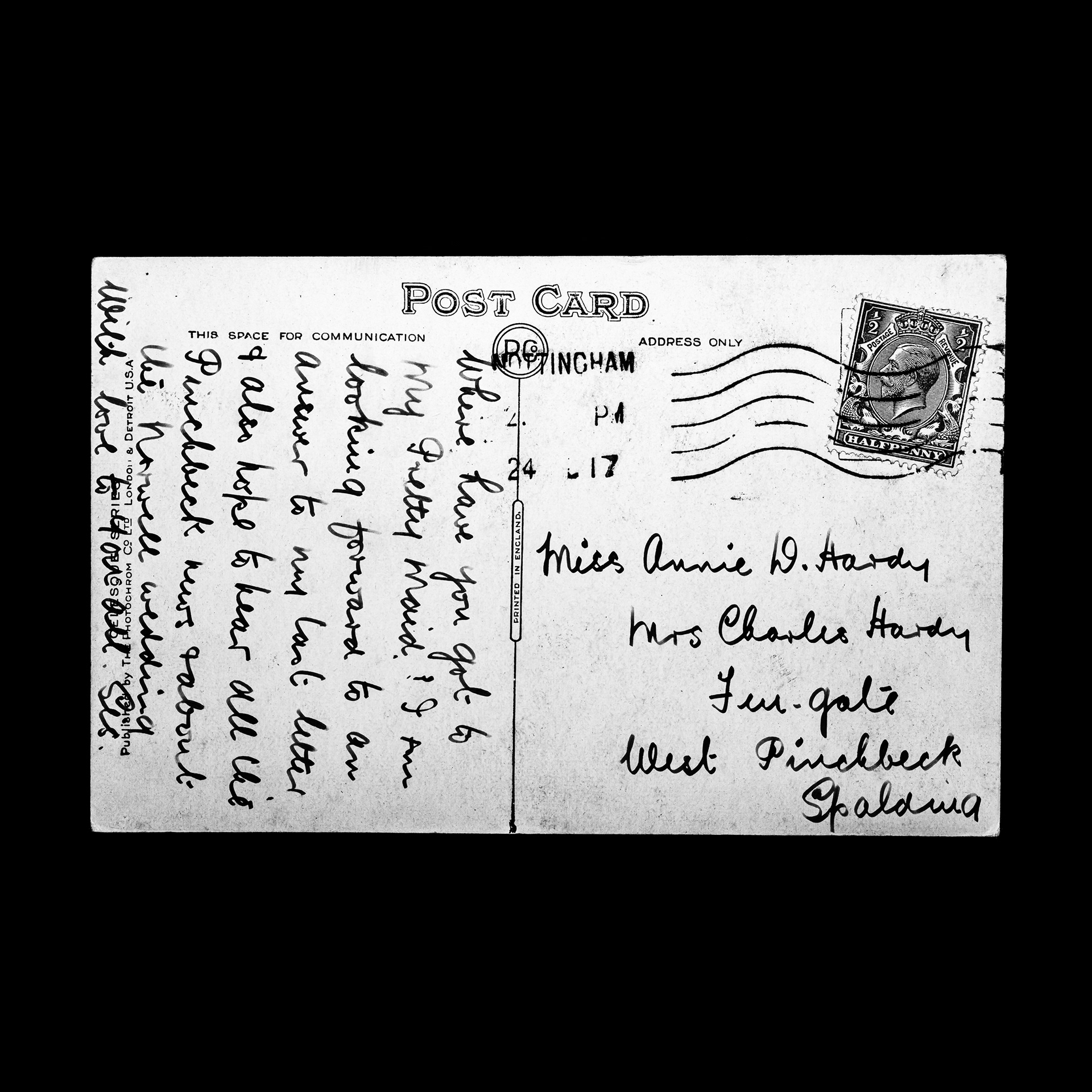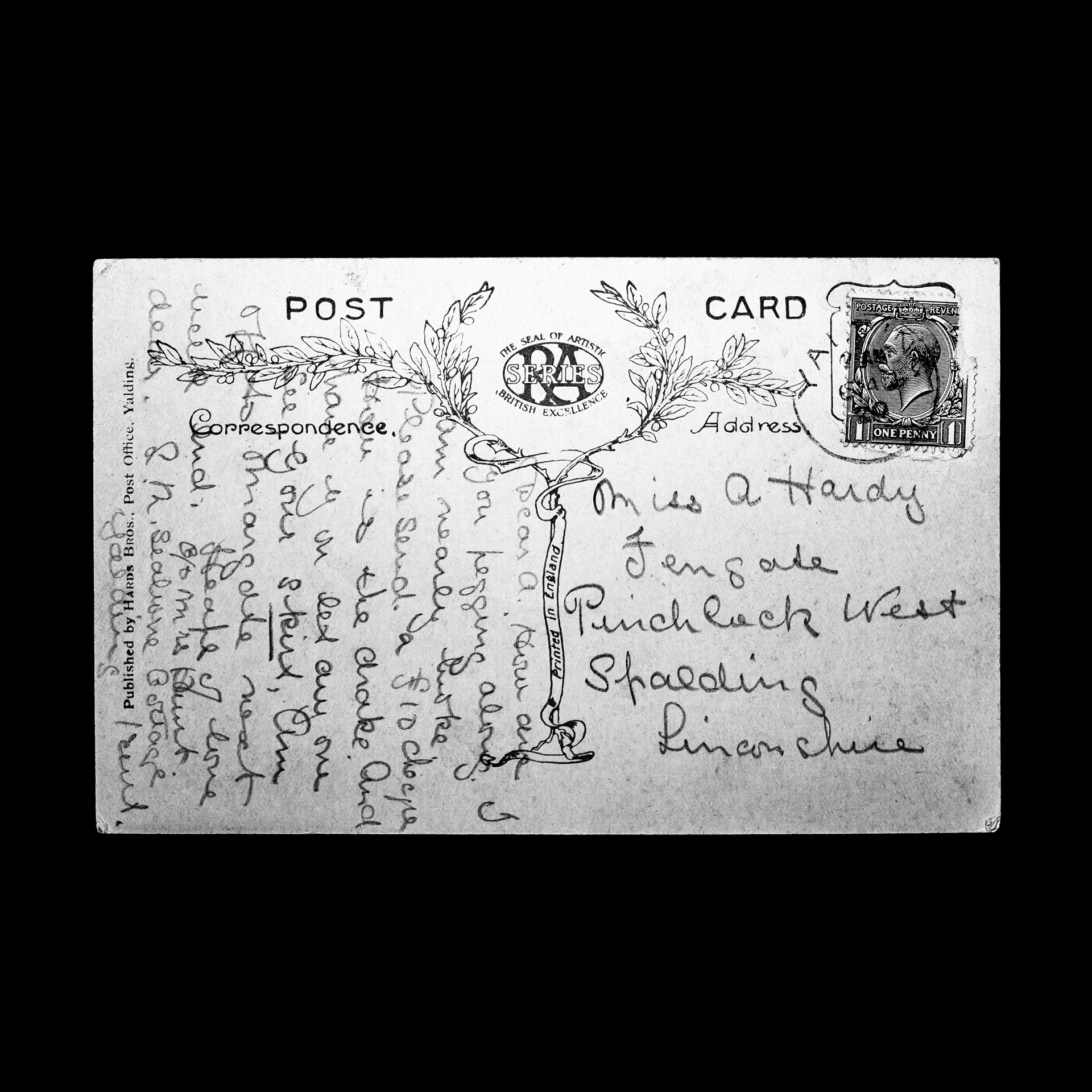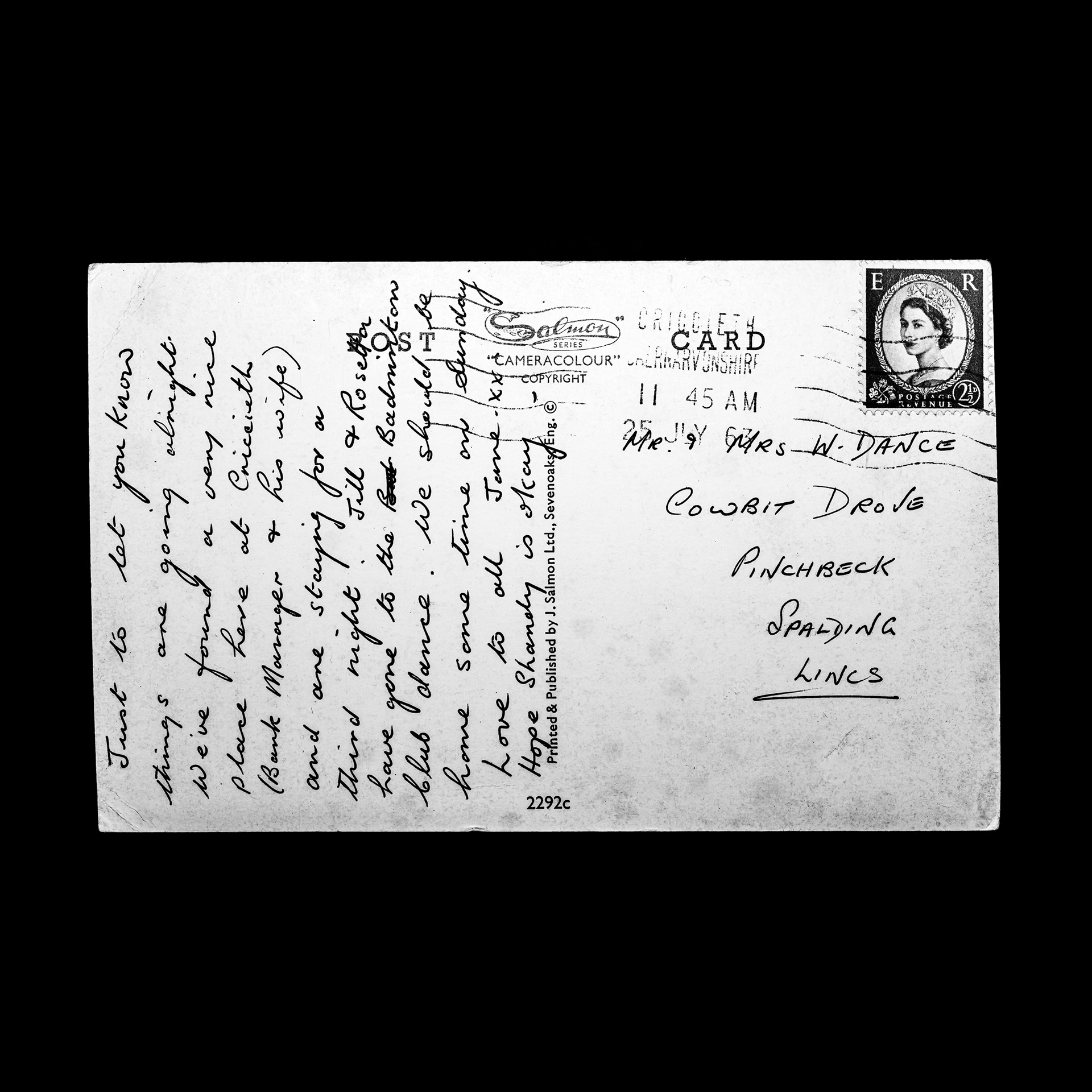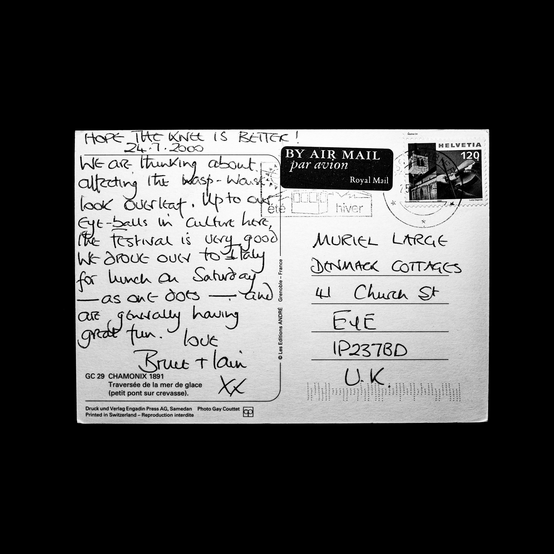 The serial nature of the presentation erases the specificity of the sender, turning handwriting and greetings into fossilized traces of an interaction bureaucratized by the postal service. Intimacy is turned into an archive, and the system of communication prevails over the content of the message.