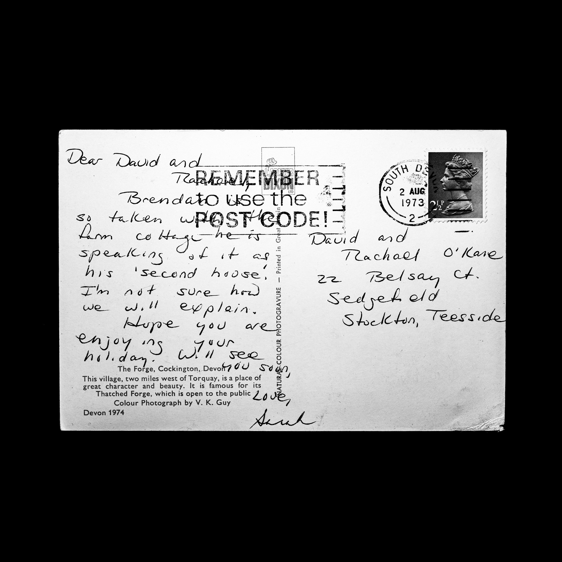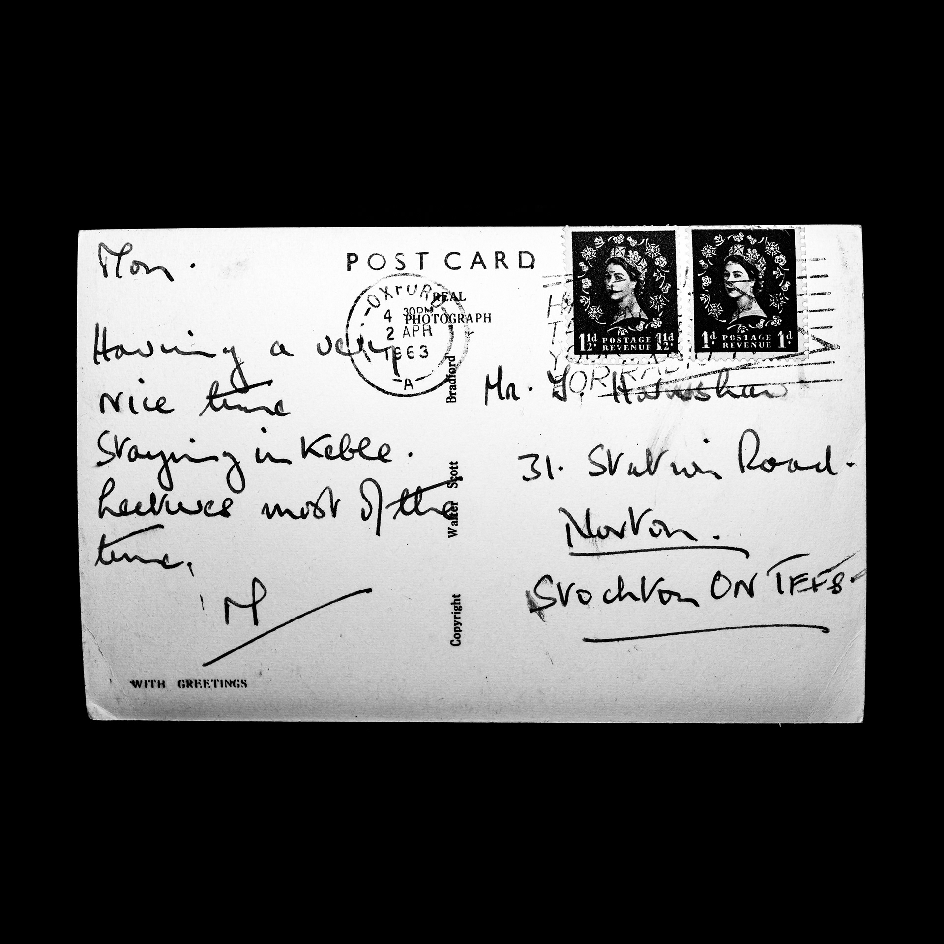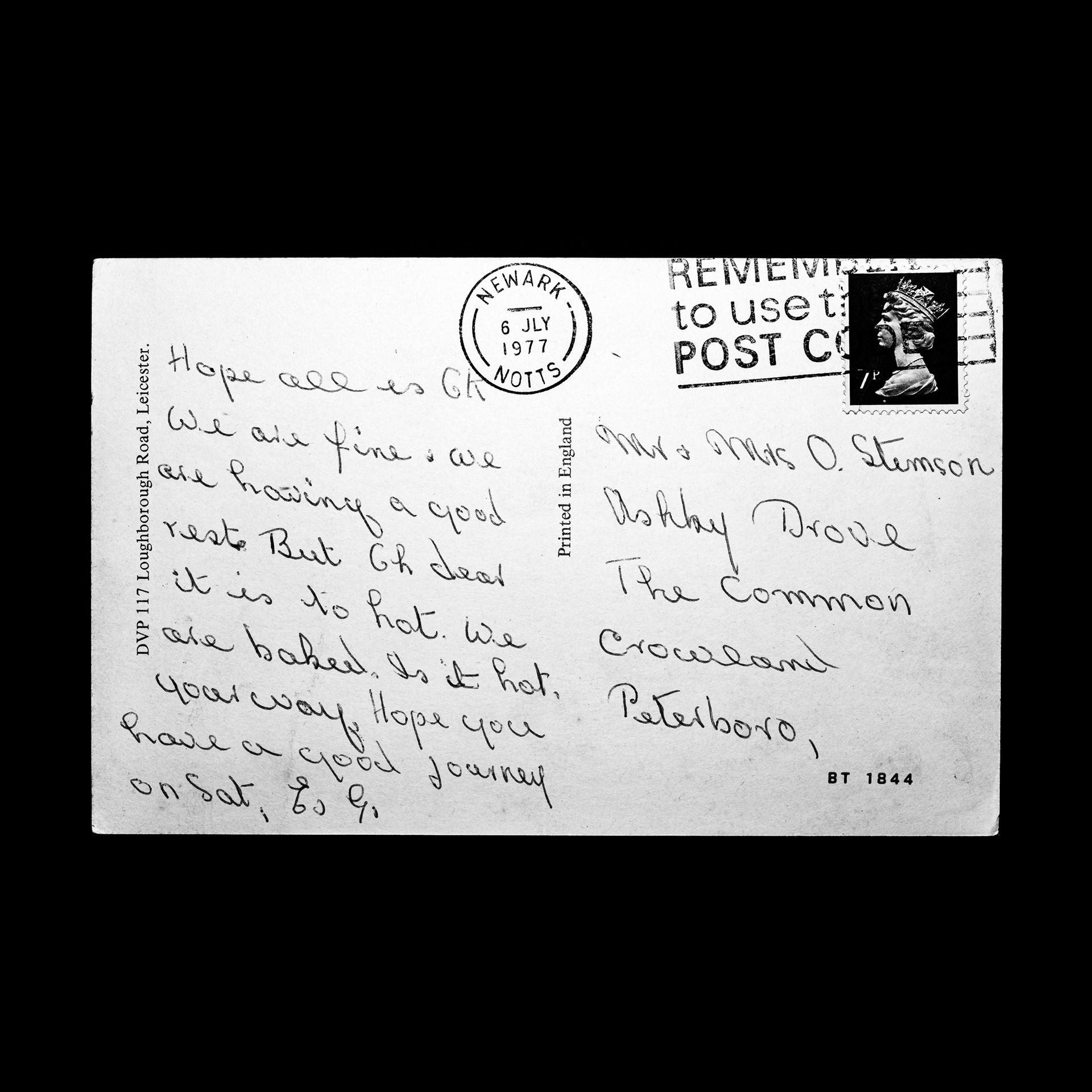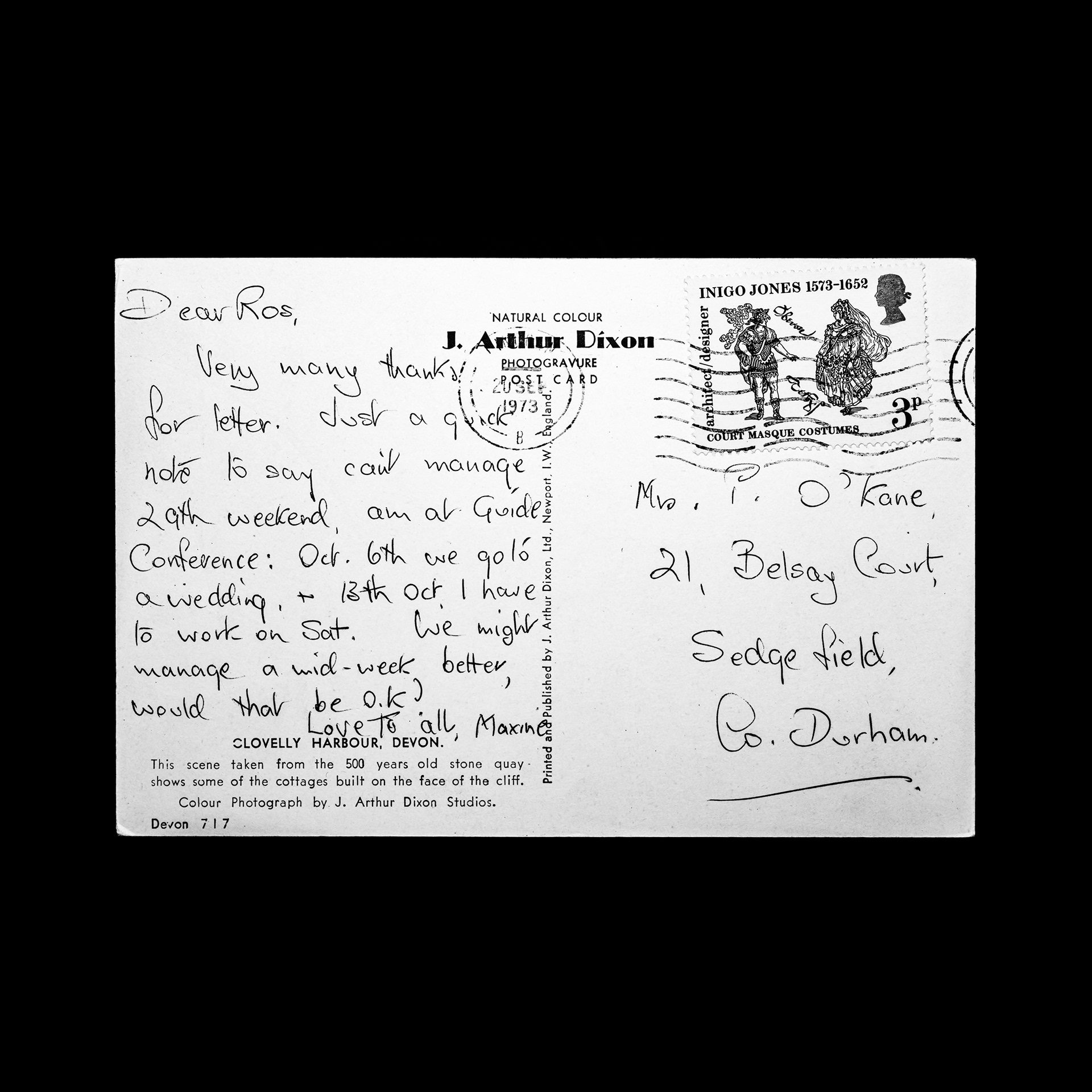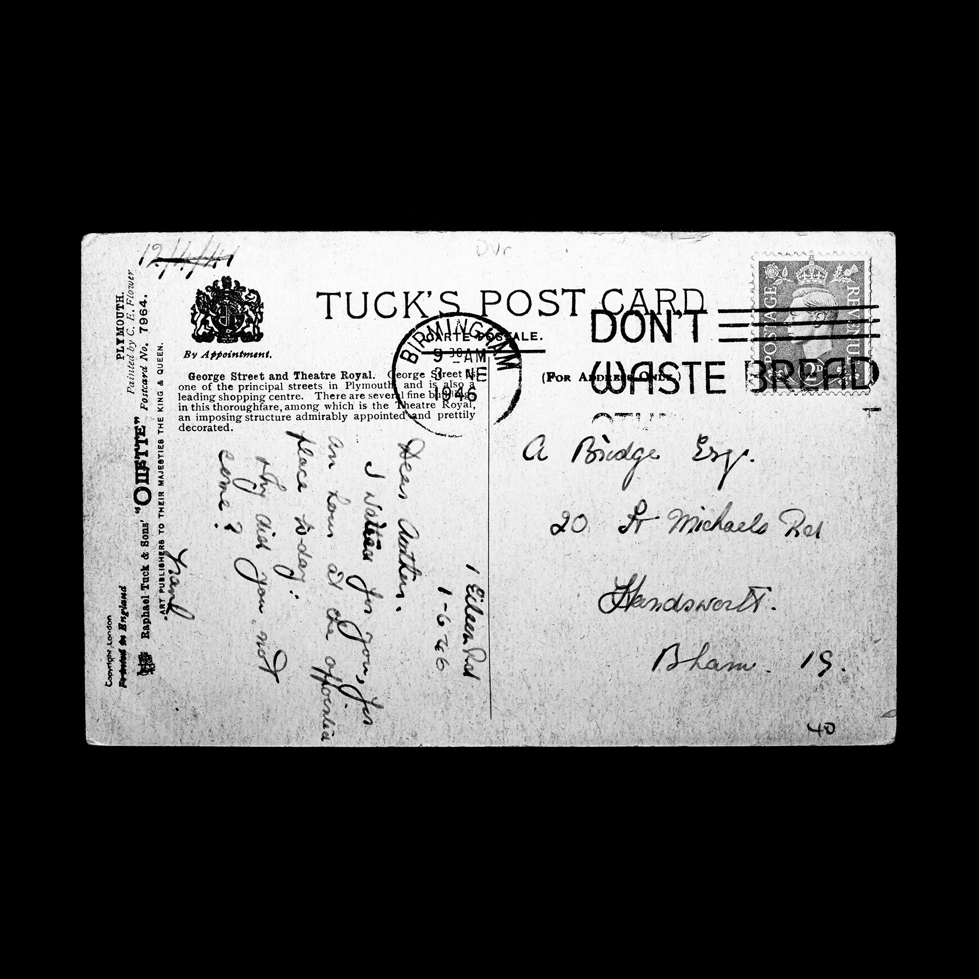 The serial nature of the presentation erases the specificity of the sender, turning handwriting and greetings into fossilized traces of an interaction bureaucratized by the postal service. Intimacy is turned into an archive, and the system of communication prevails over the content of the message.