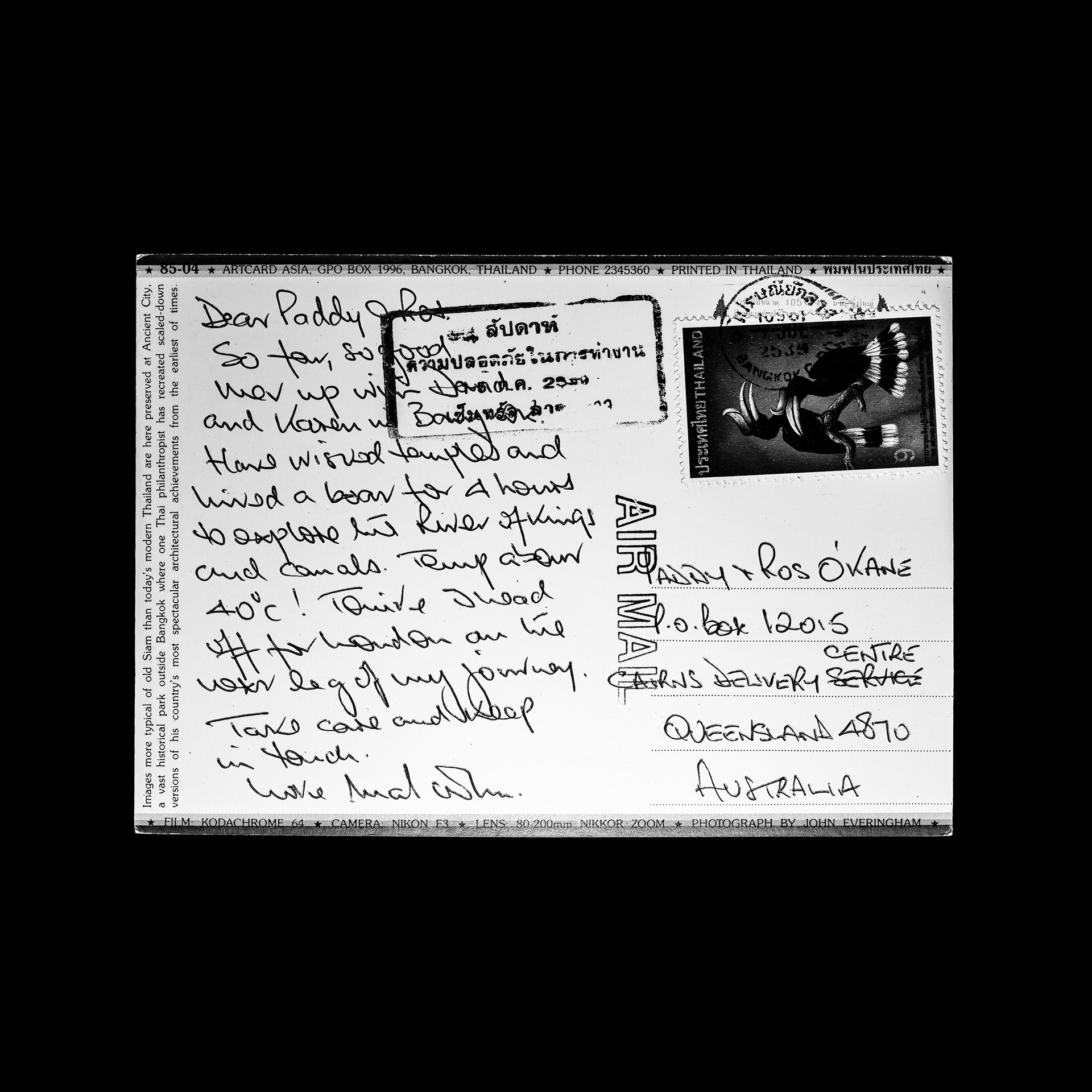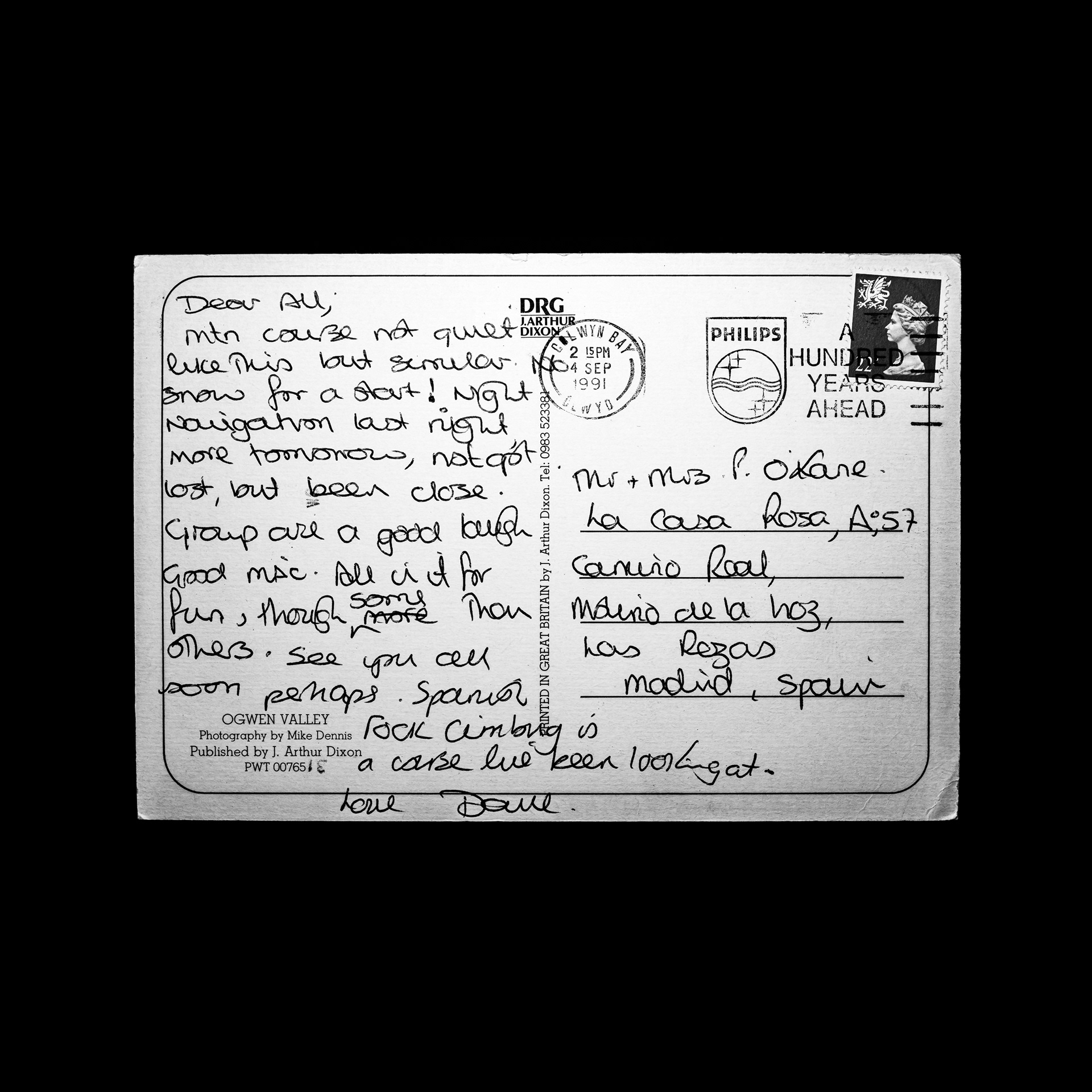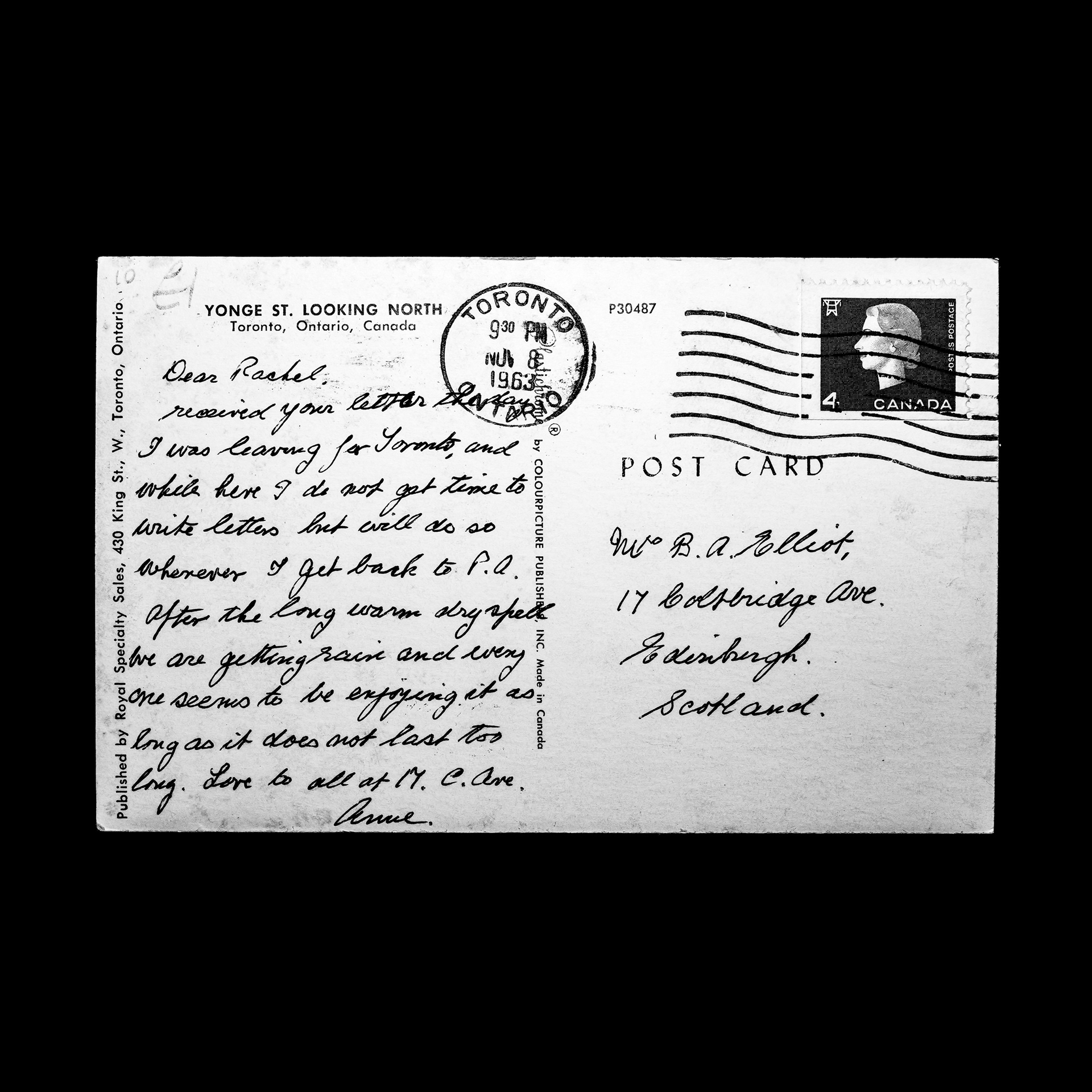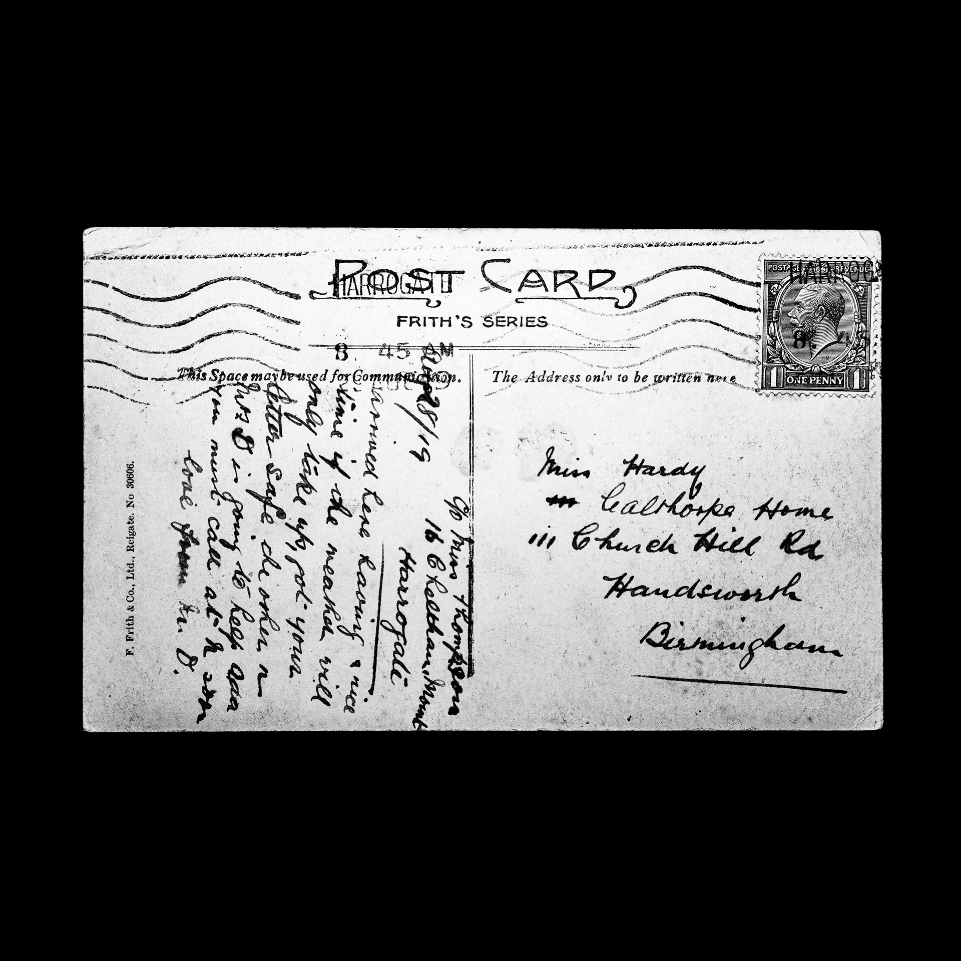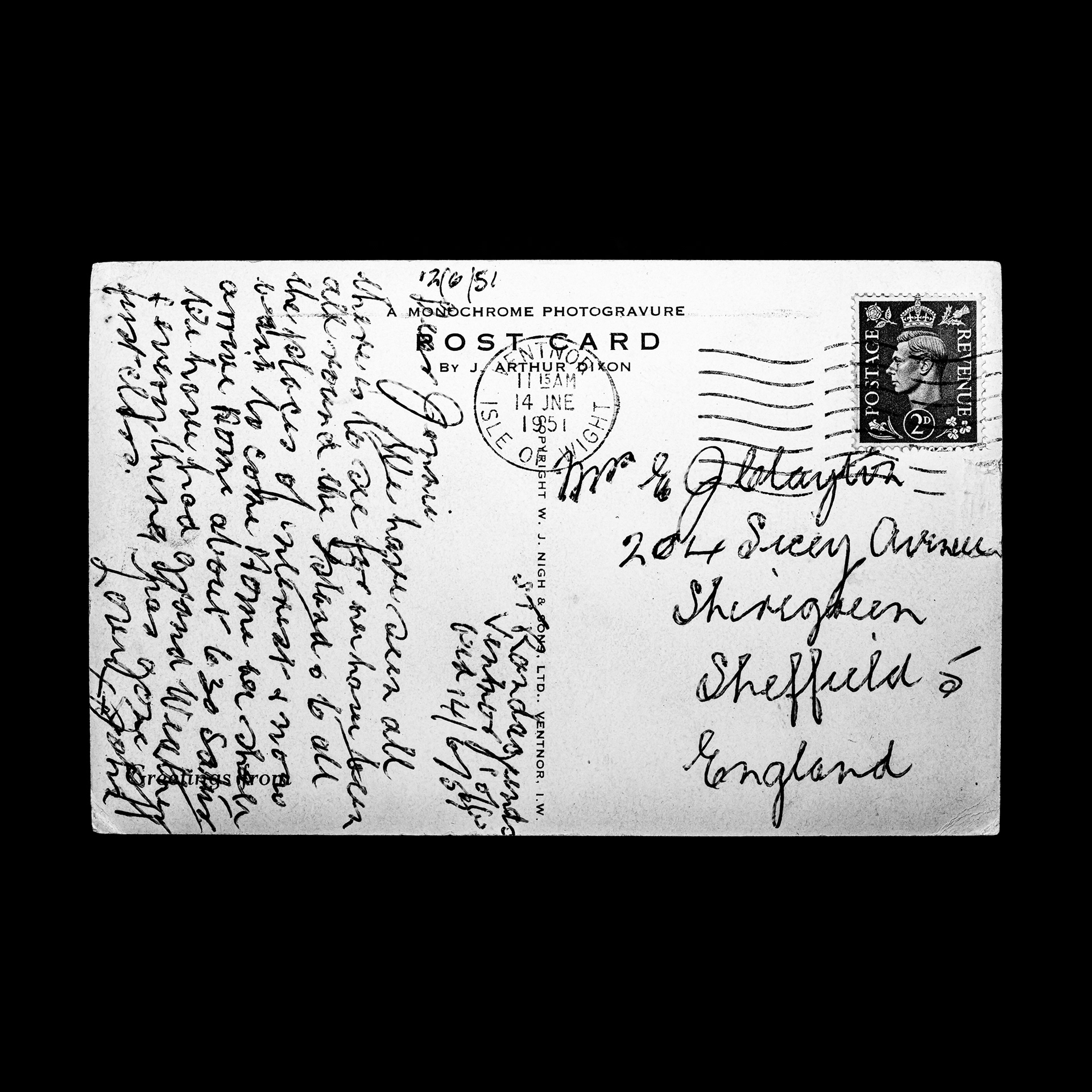 The serial nature of the presentation erases the specificity of the sender, turning handwriting and greetings into fossilized traces of an interaction bureaucratized by the postal service. Intimacy is turned into an archive, and the system of communication prevails over the content of the message.