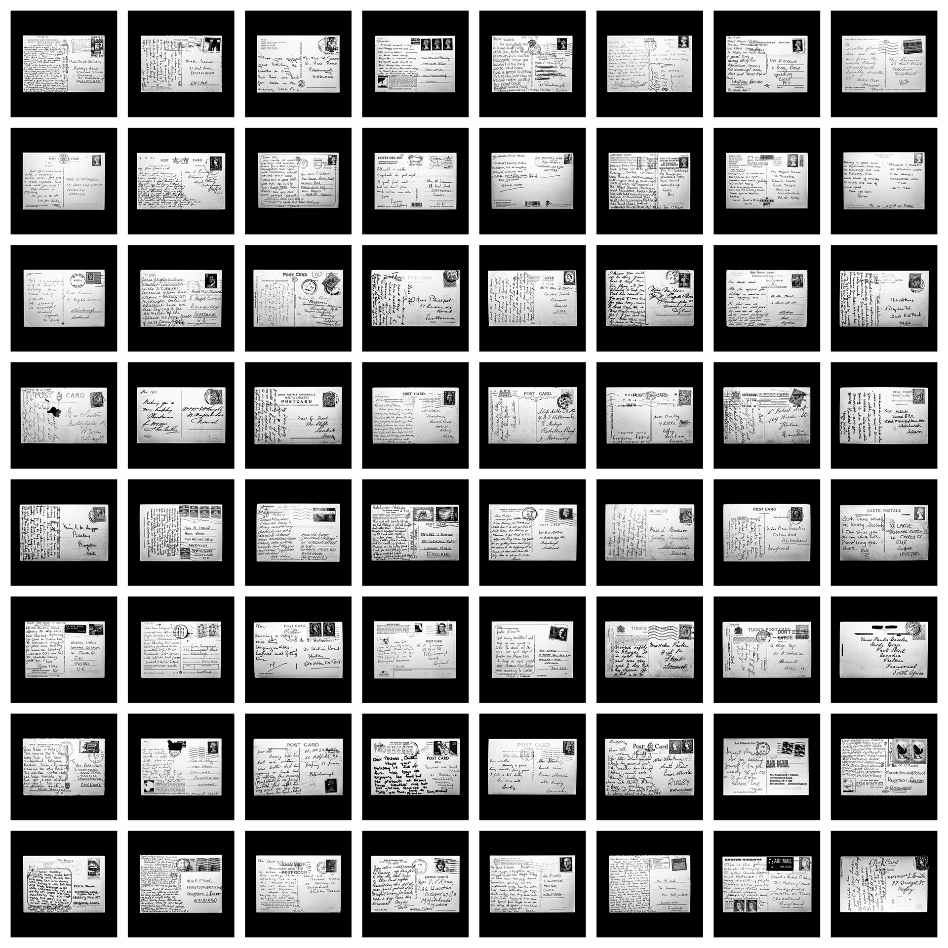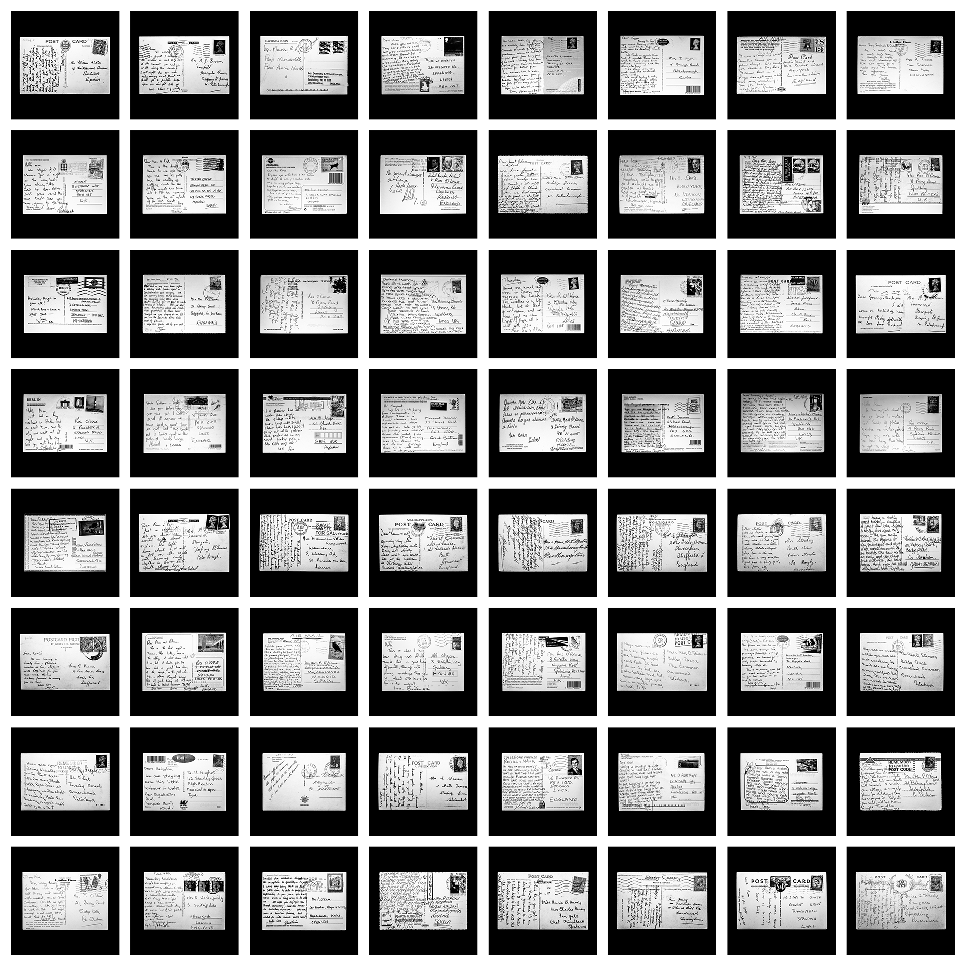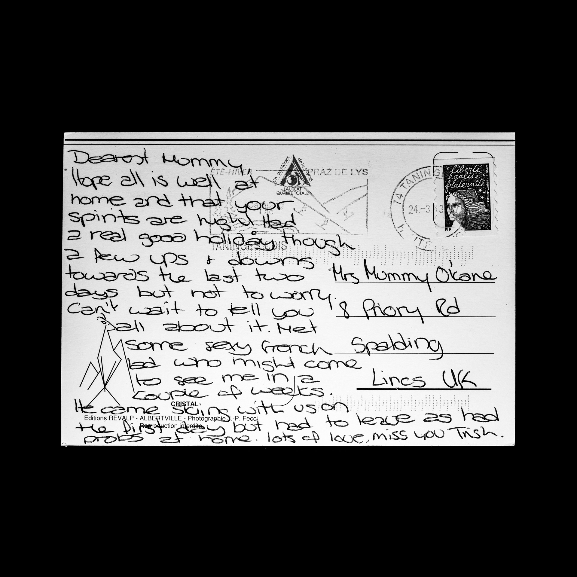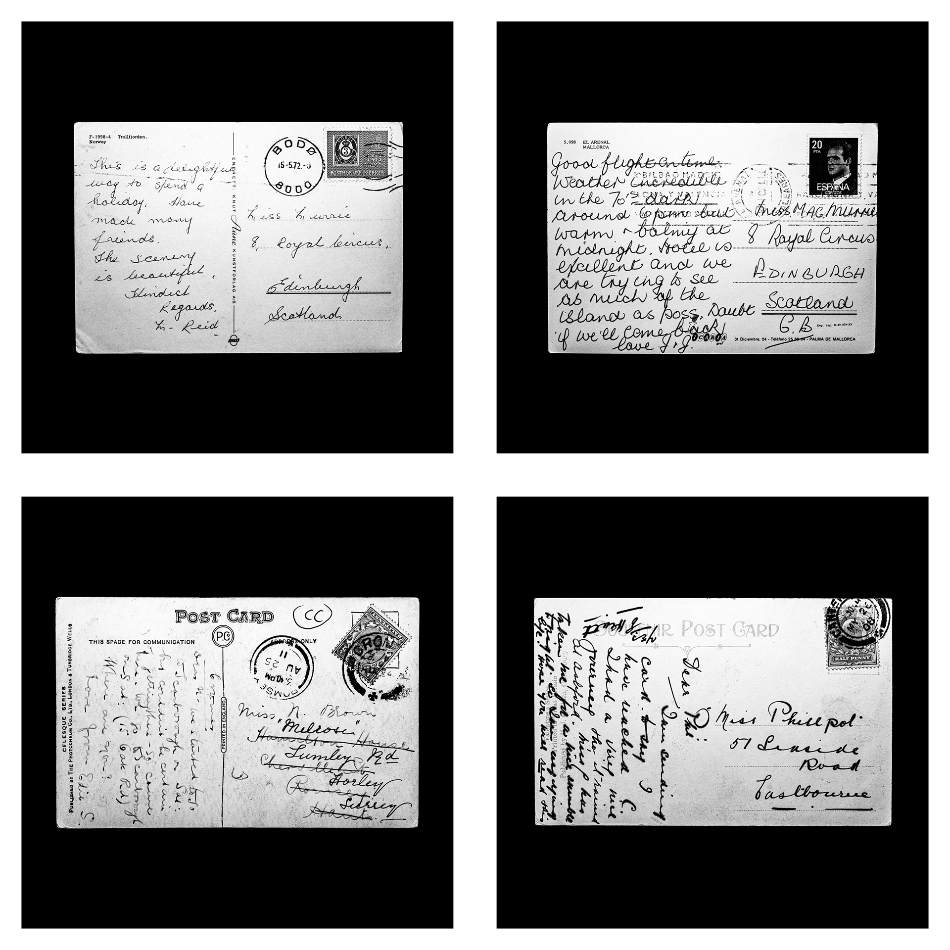 Posted explores the postcard not as a physical object, but as the minimal unit of a disrupted communication system. The work originates from the desire to isolate fragments of existence within a rigorous grid, transforming private messages into public, anonymous data.