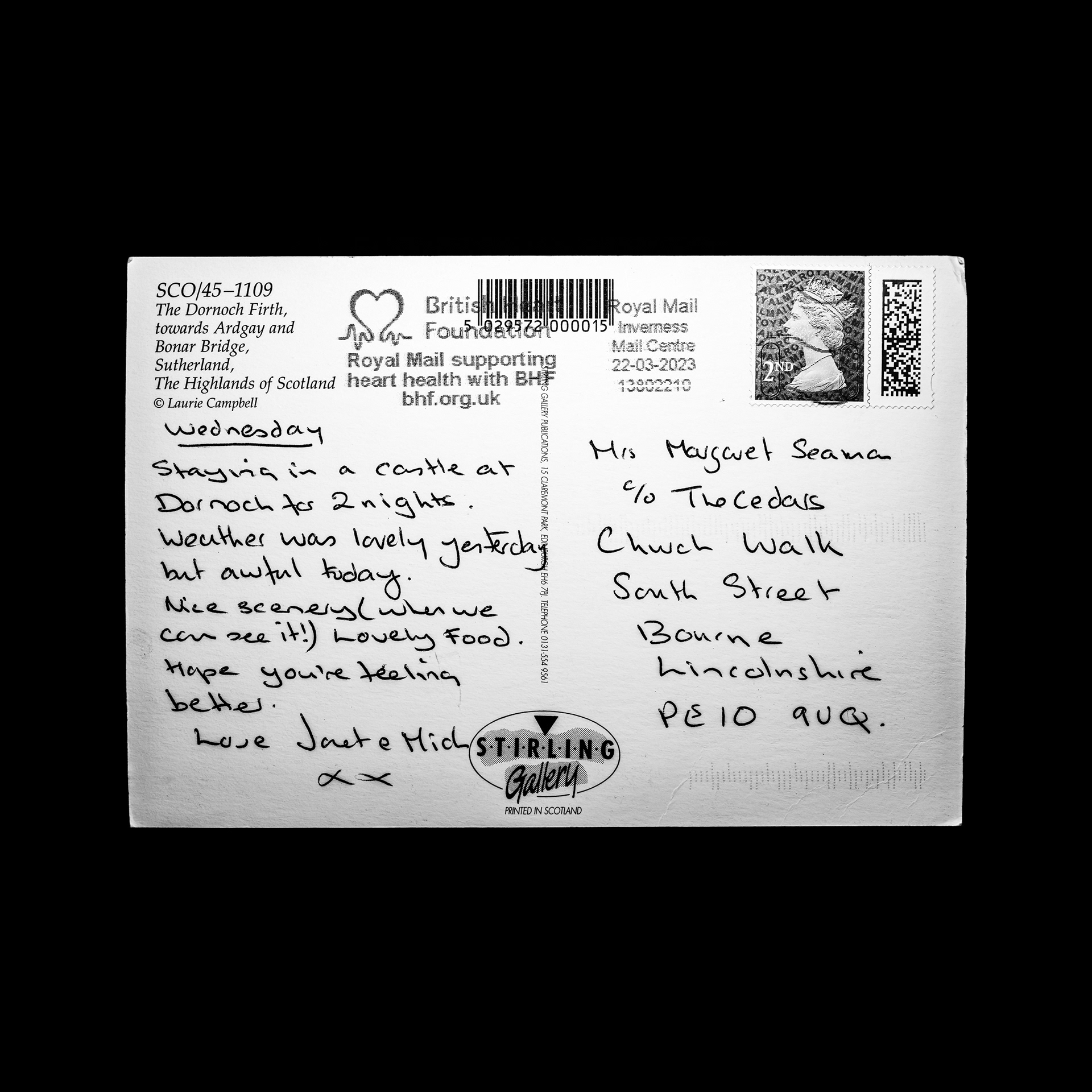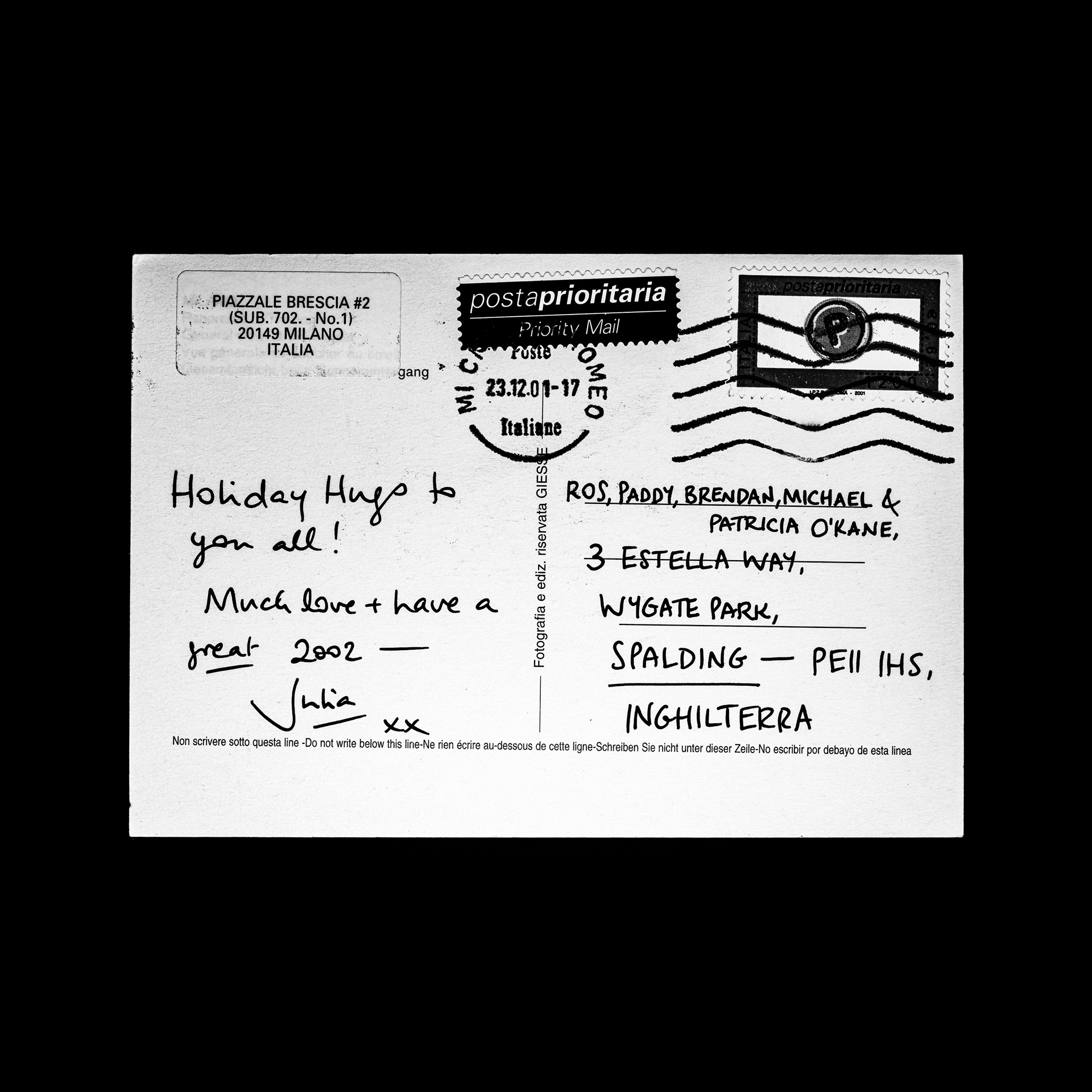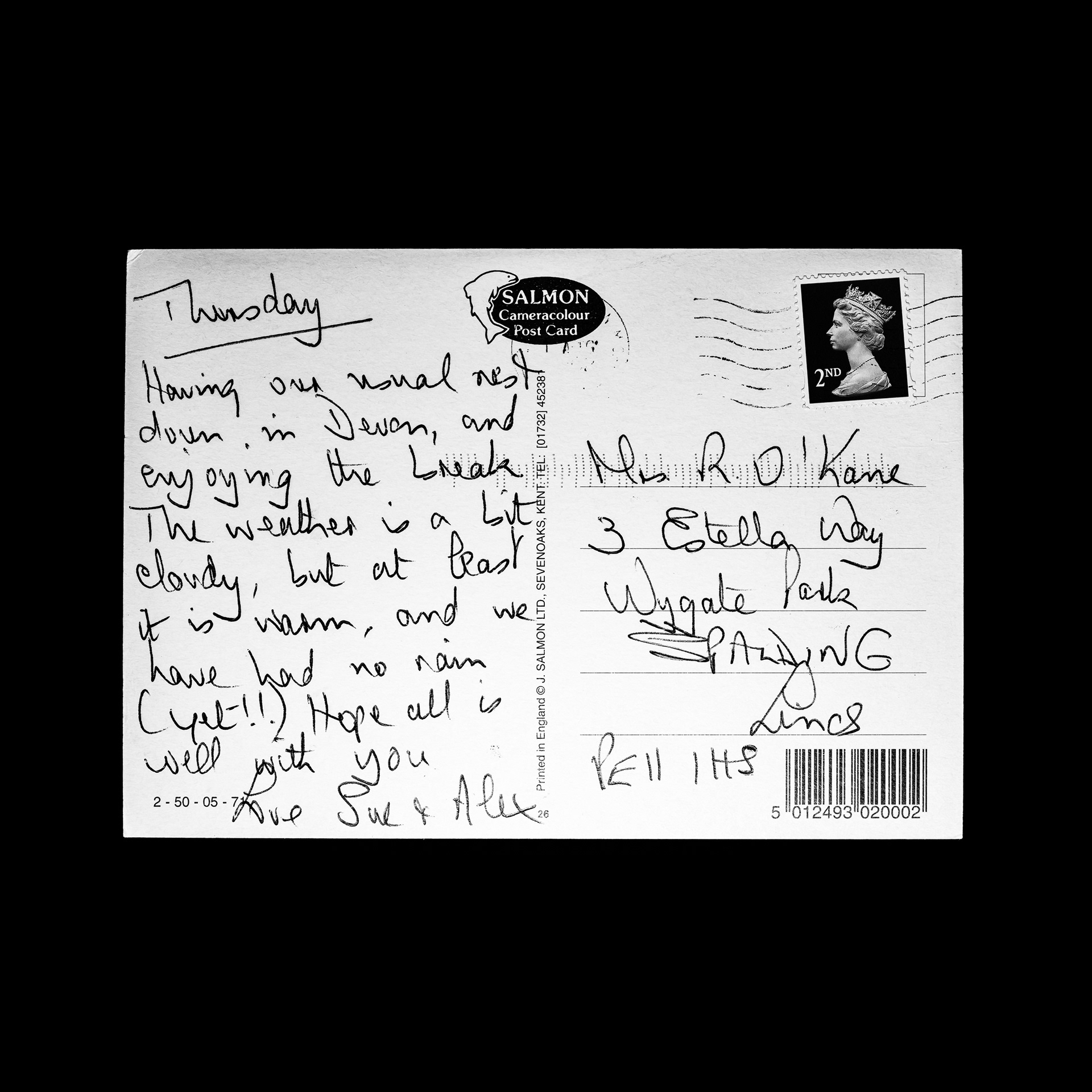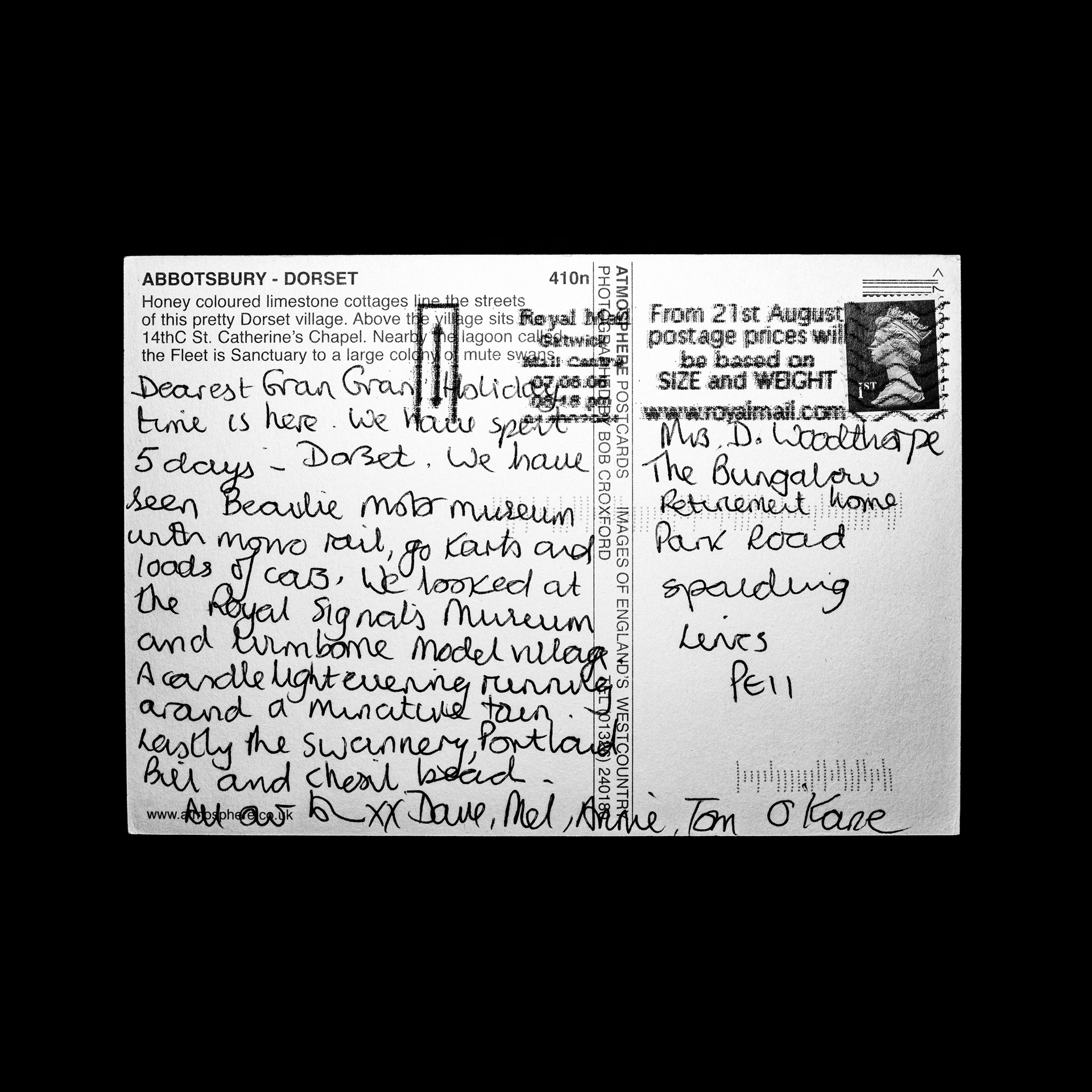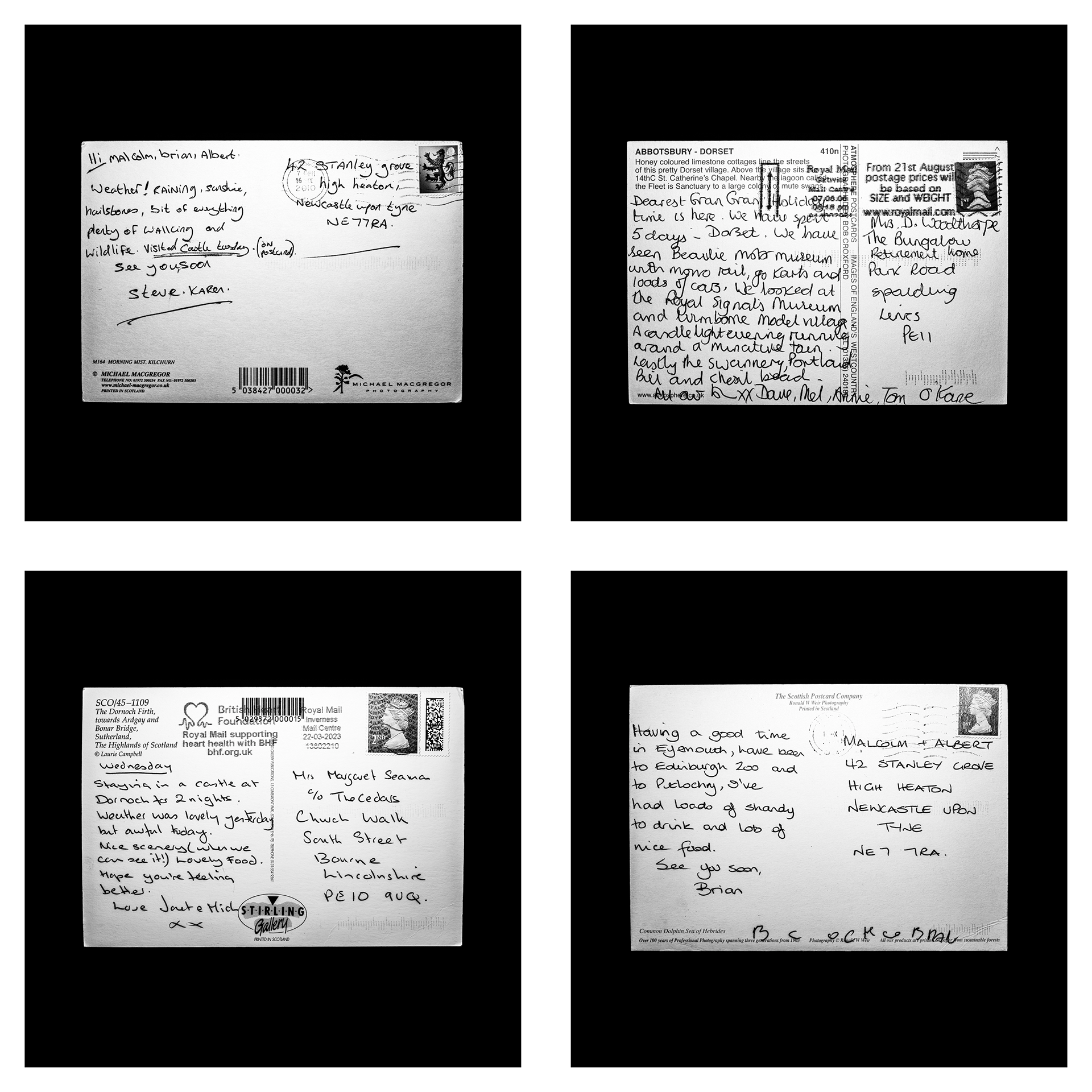 Posted explores the postcard not as a physical object, but as the minimal unit of a disrupted communication system. The work originates from the desire to isolate fragments of existence within a rigorous grid, transforming private messages into public, anonymous data.
