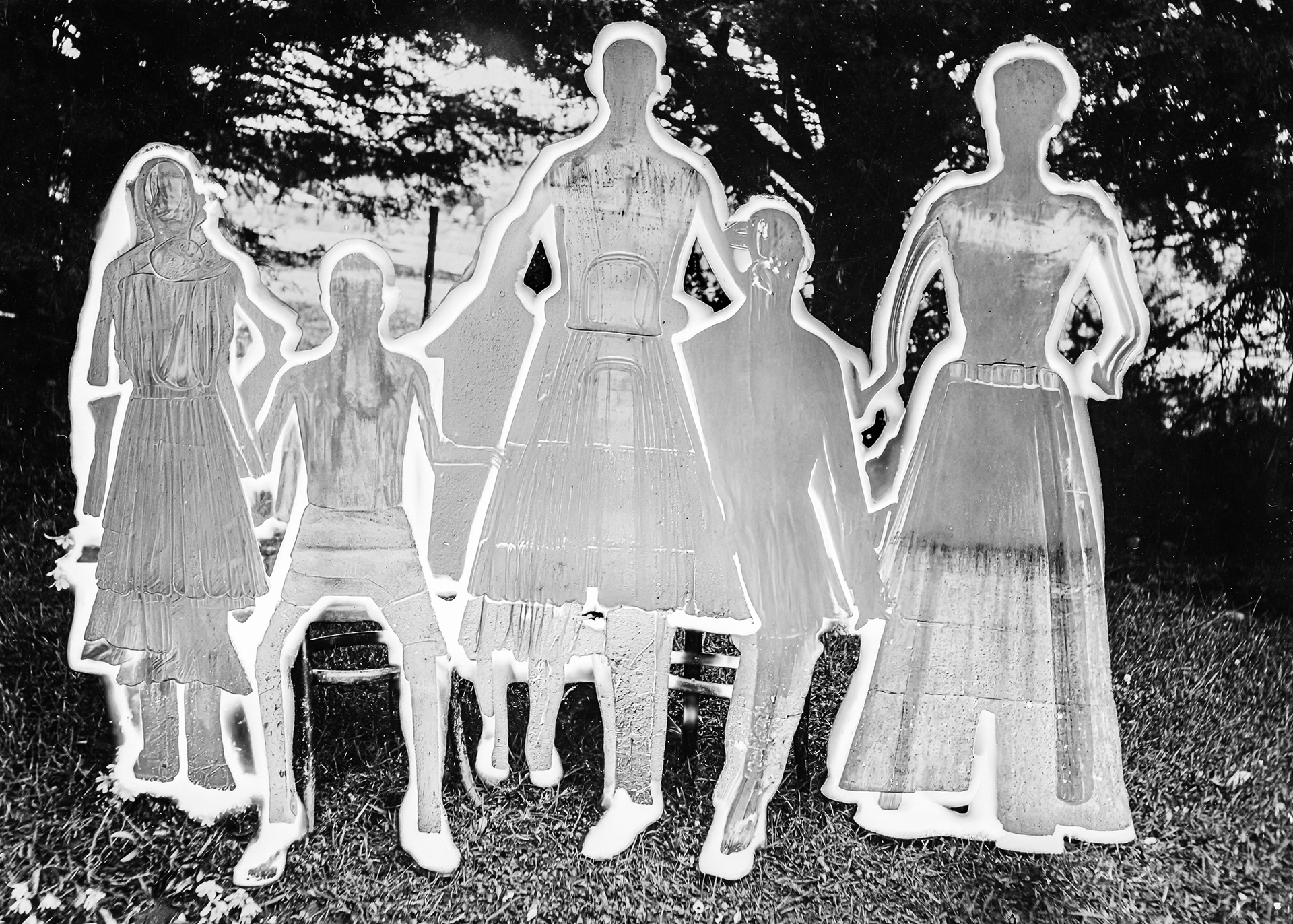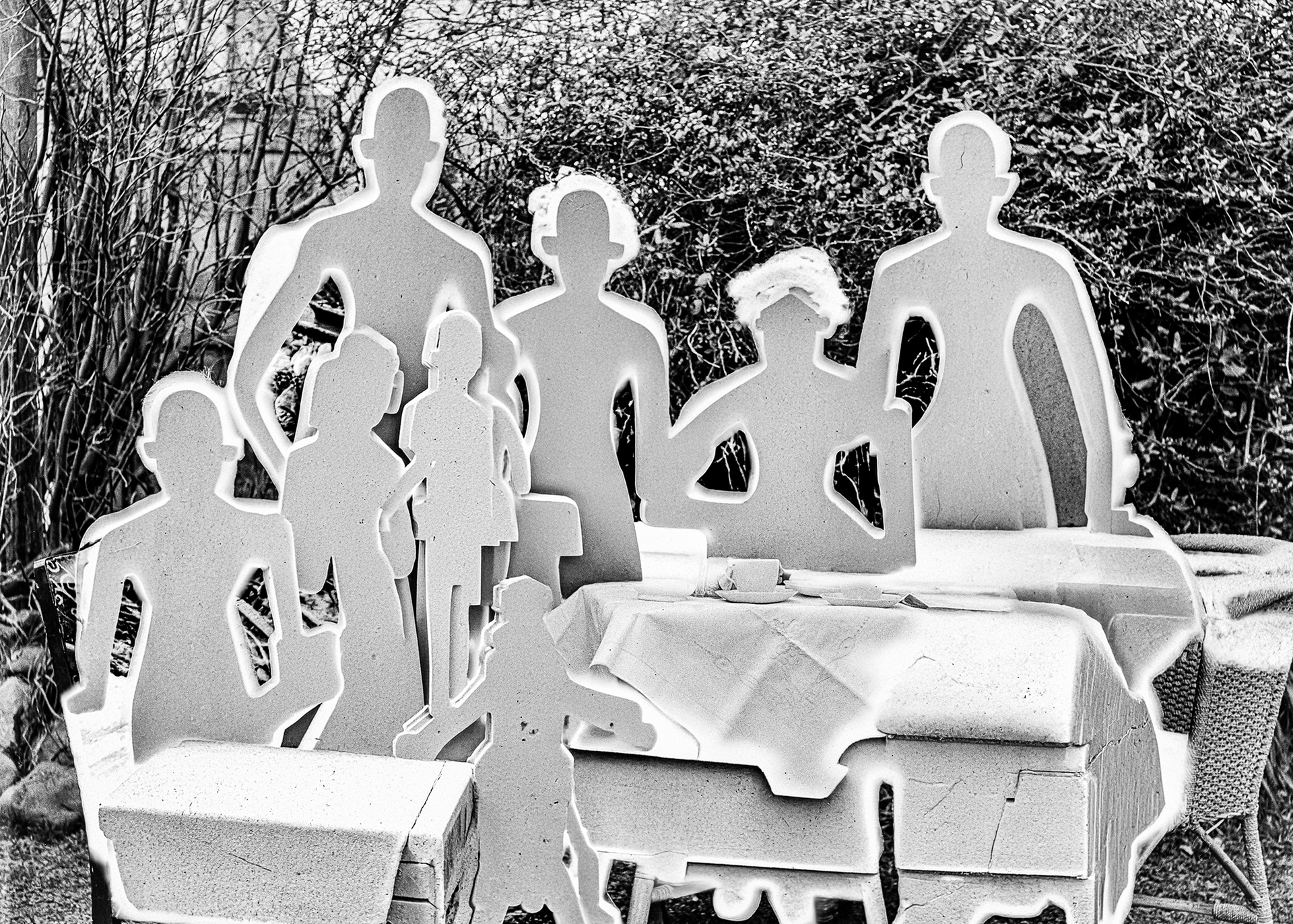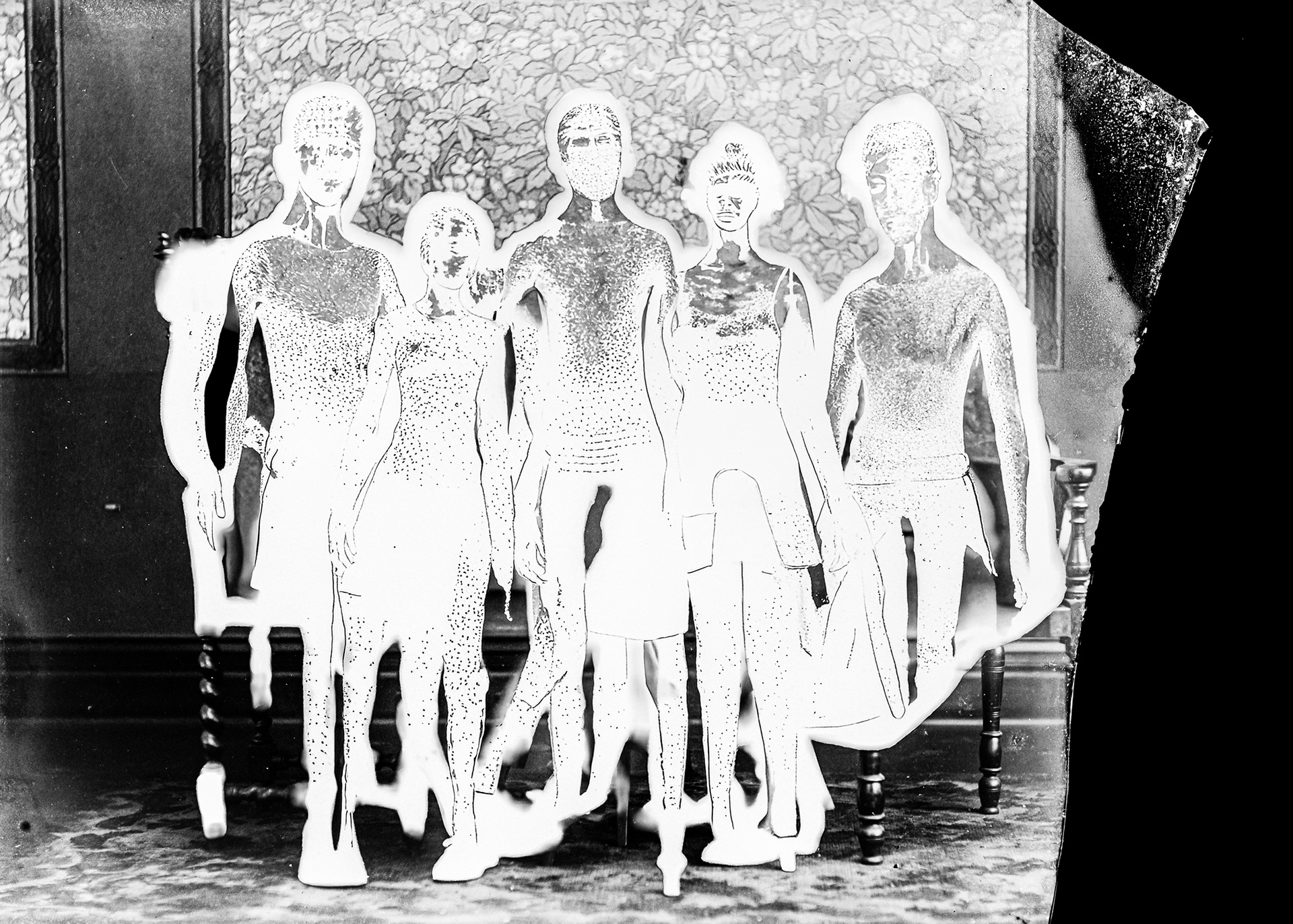 This project subjects 48 vintage family portraits to a strict protocol of algorithmic extraction. The systematic removal of the subjects does not symbolize physical death or romantic oblivion, but quantifies the exact loss of data necessary for their reconstruction. What remains on the photographic surface is not memory, but an incomplete trace: an excavation within the document.