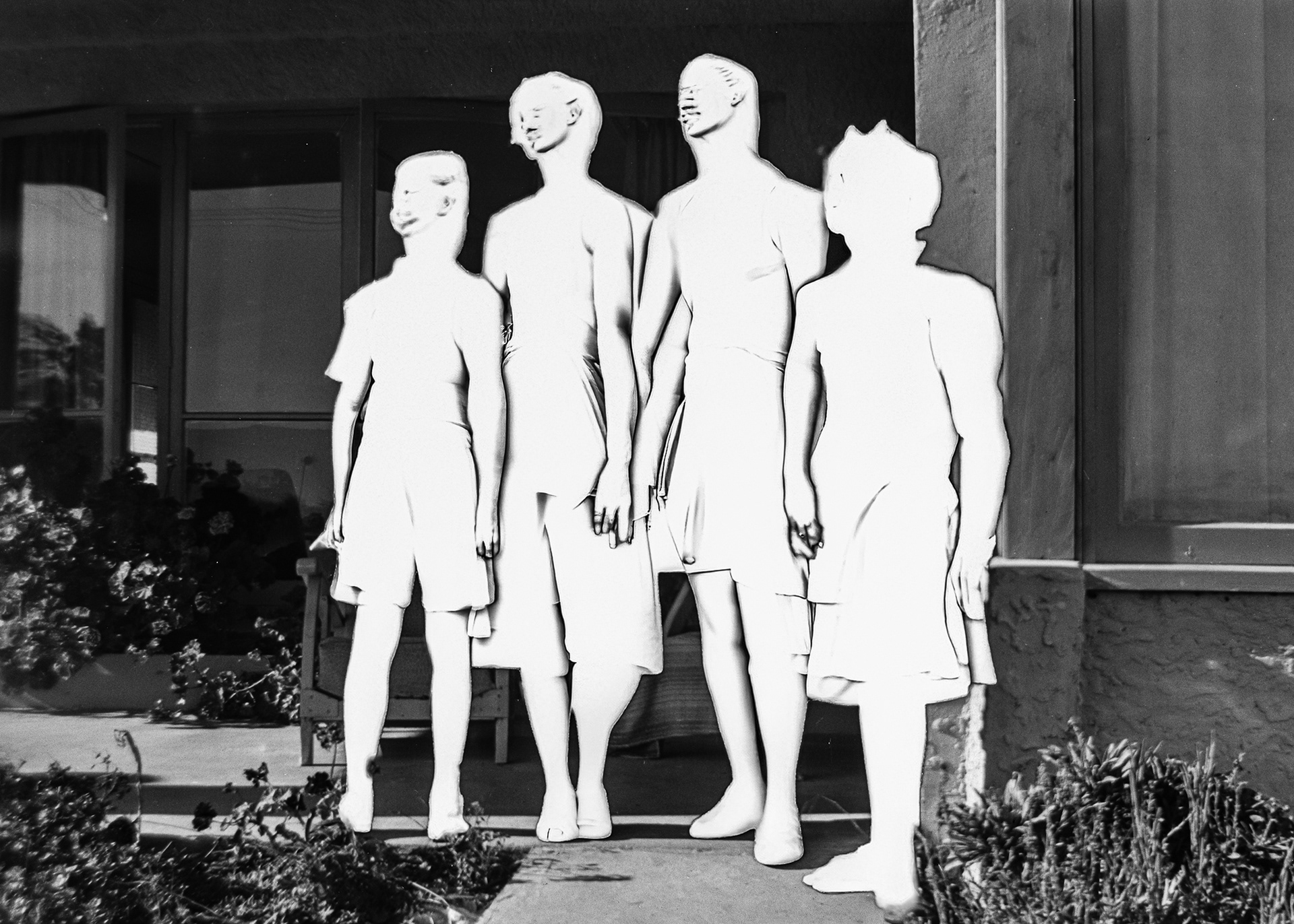 Subjected to a generative fill process (AI), the system attempts to suture the surface based on purely spatial matrices. The resulting outputs—unstable, approximate, and divergent—do not represent a software failure, but the mathematical and forensic proof that the original information is permanently unrecoverable. The family album is thus disarmed and converted into a clinical inventory of human residues, where the synthetic anomaly becomes the only visible truth.