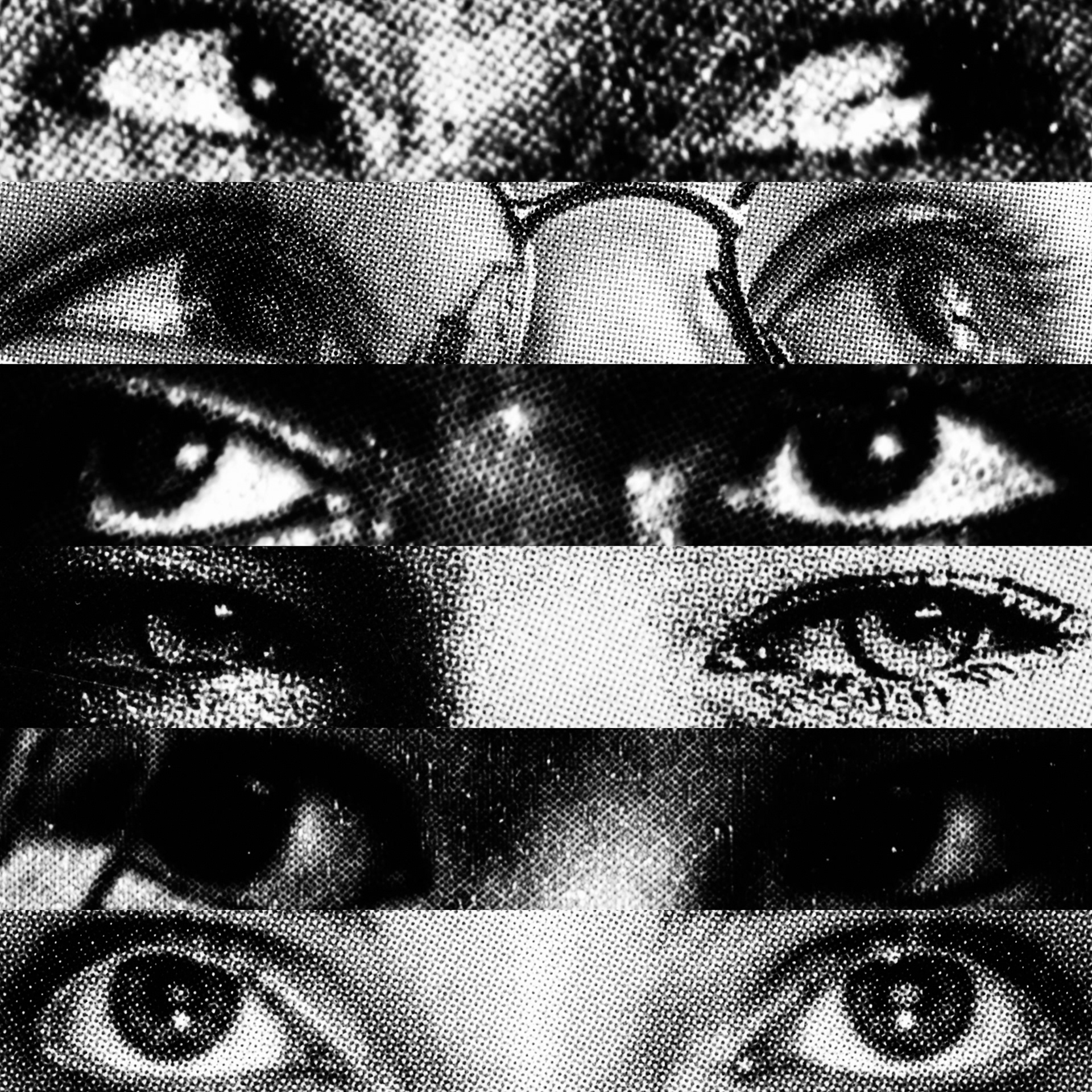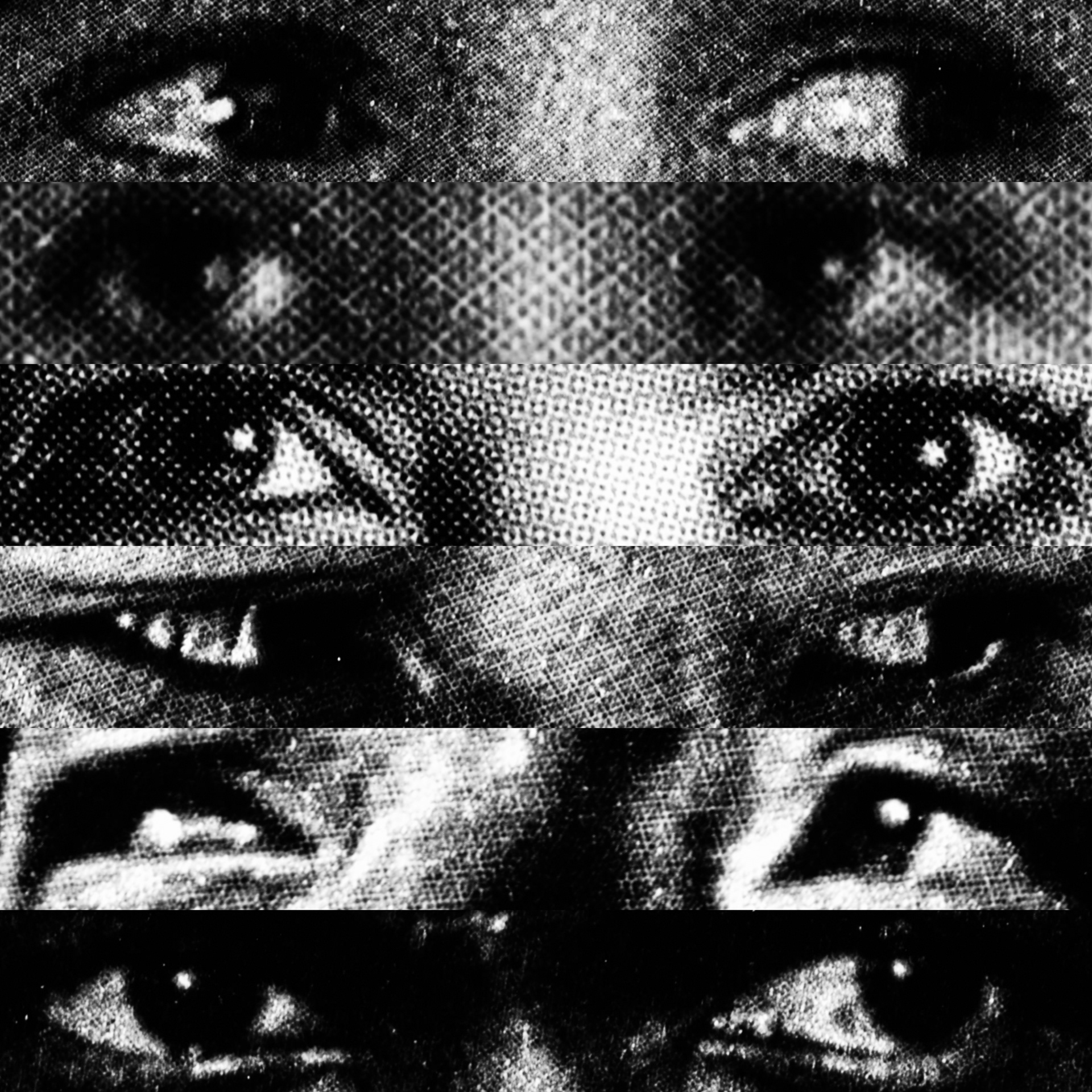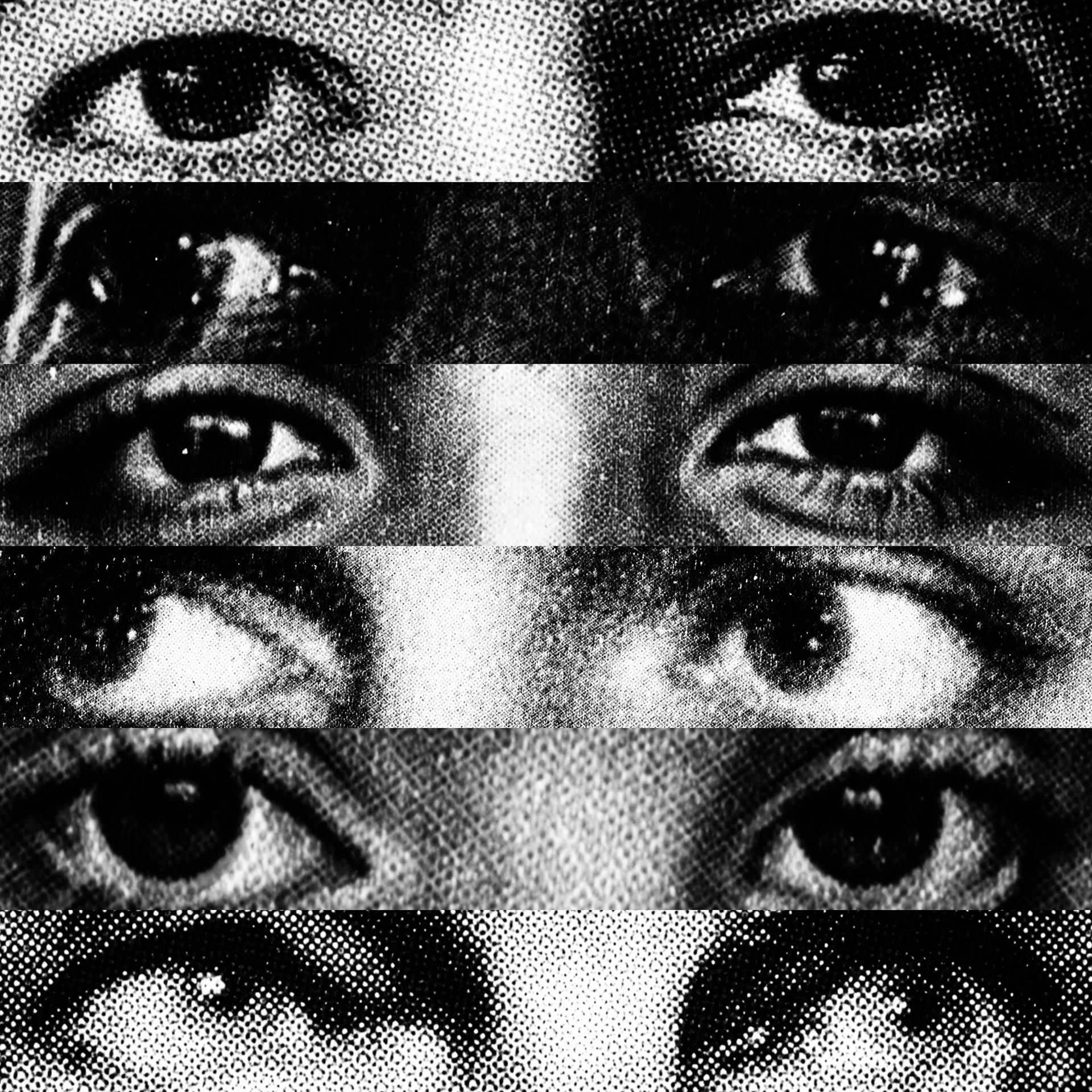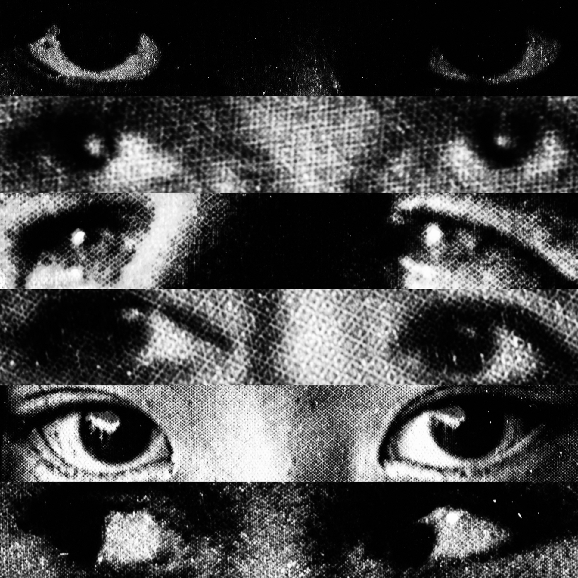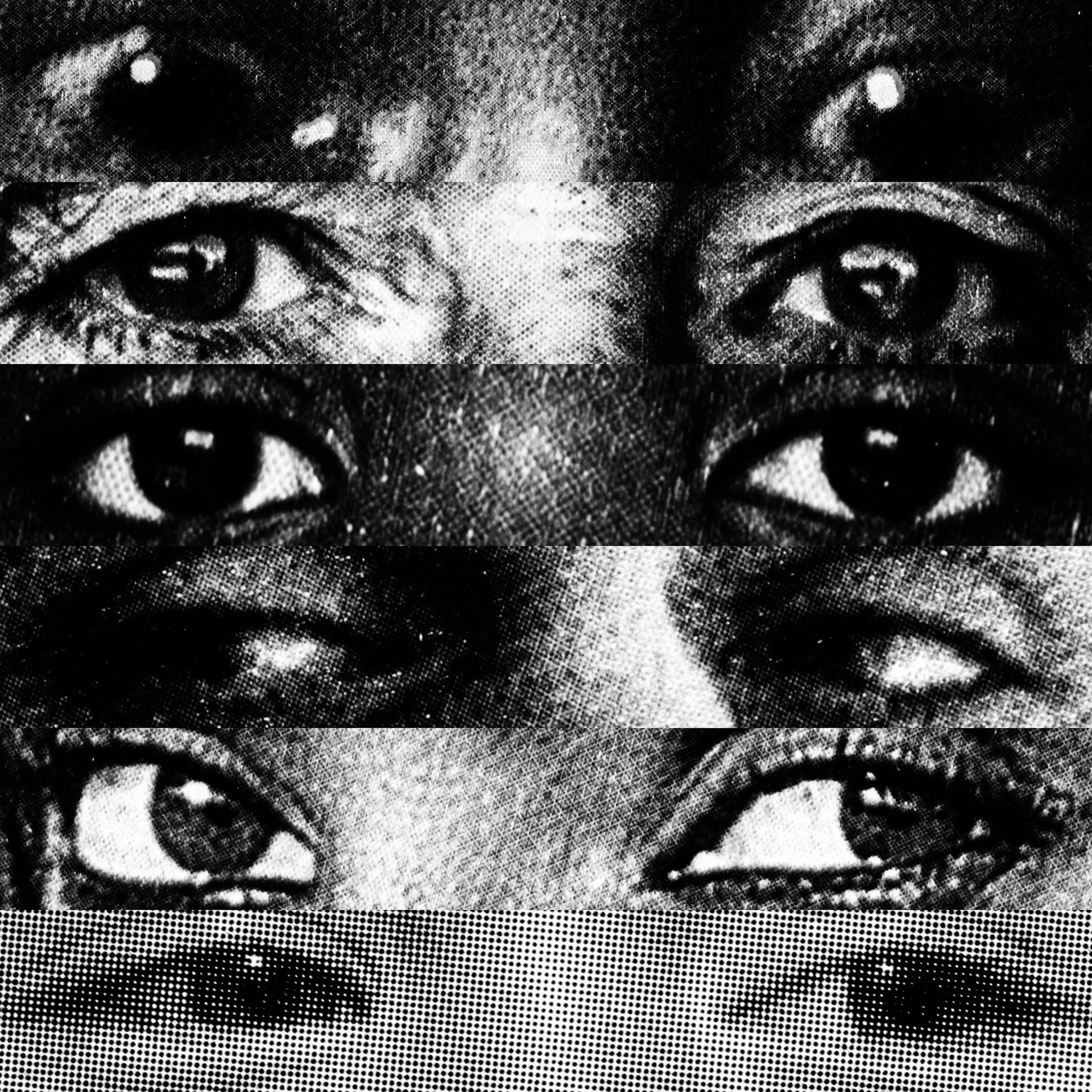 What emerges is a paradoxical visual contact: a mass of gazes that, despite being directed at the viewer, looks at nothing. Expressive intensity dissolves into its own multiplication, leaving only a weightless visual void that observes without seeing.