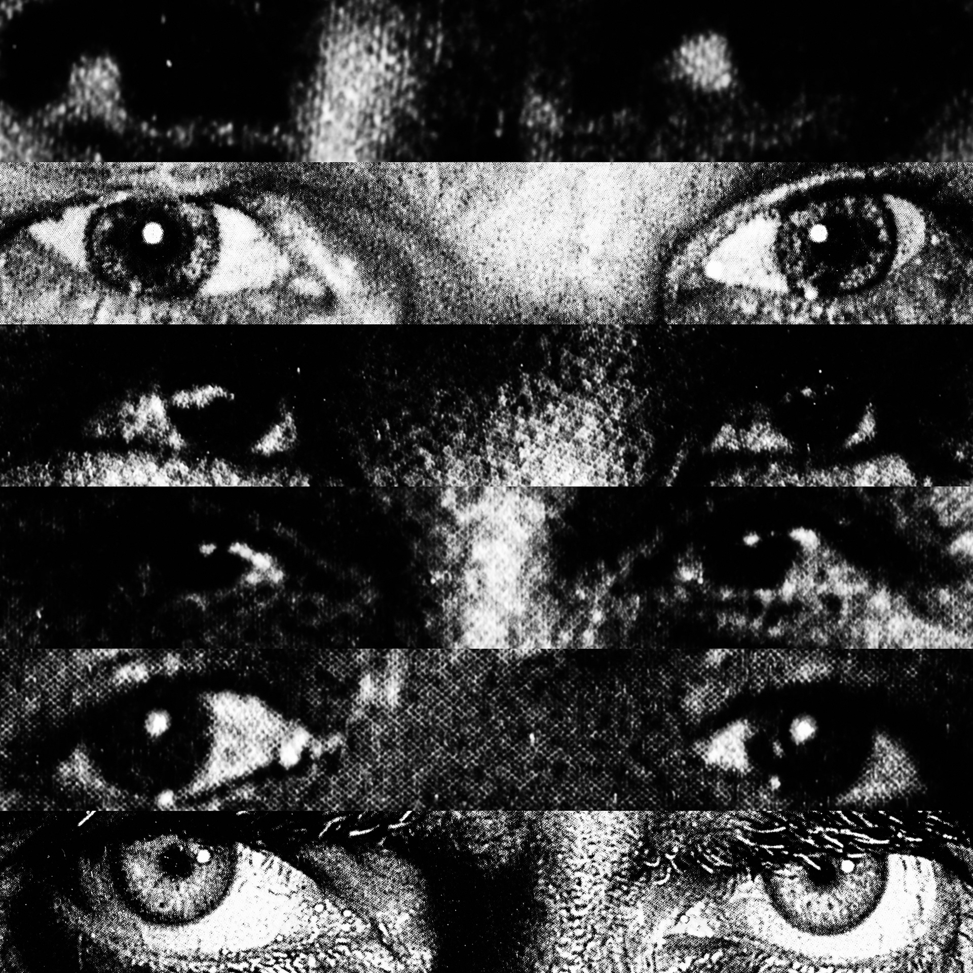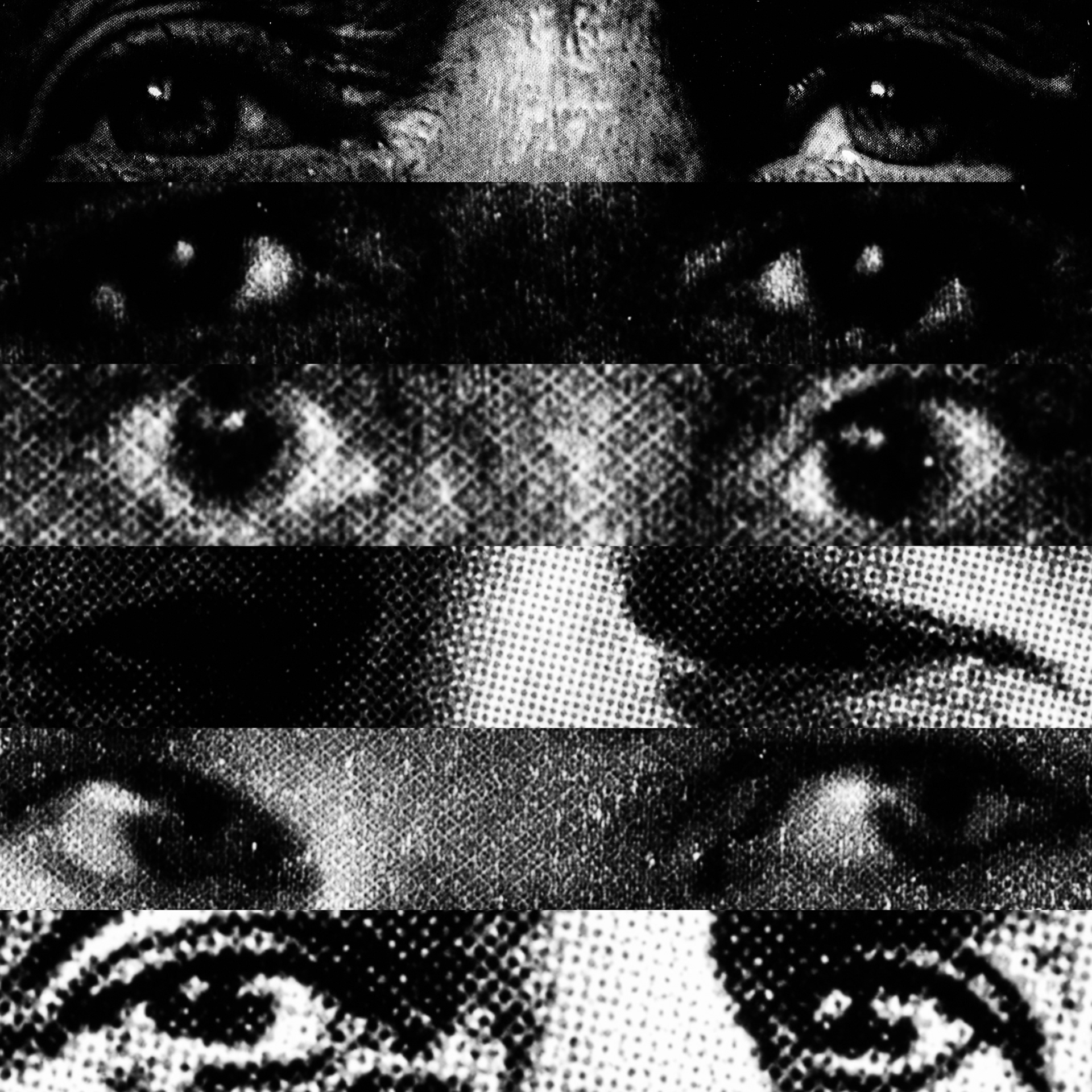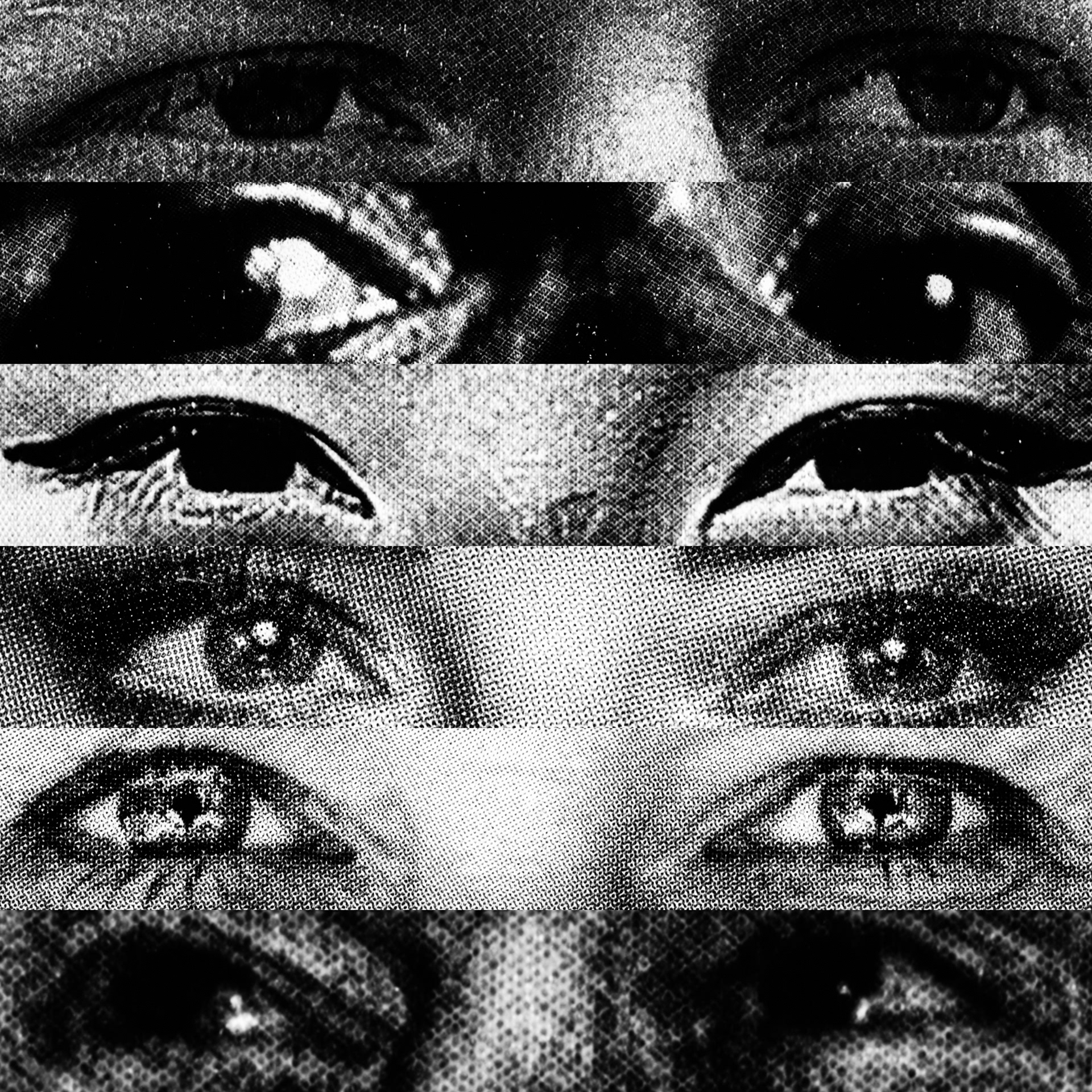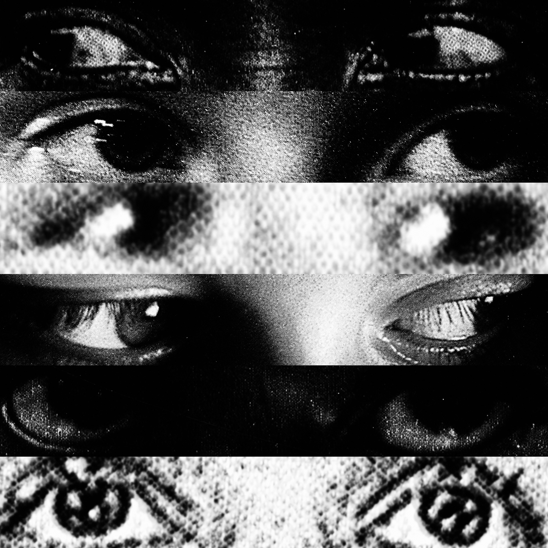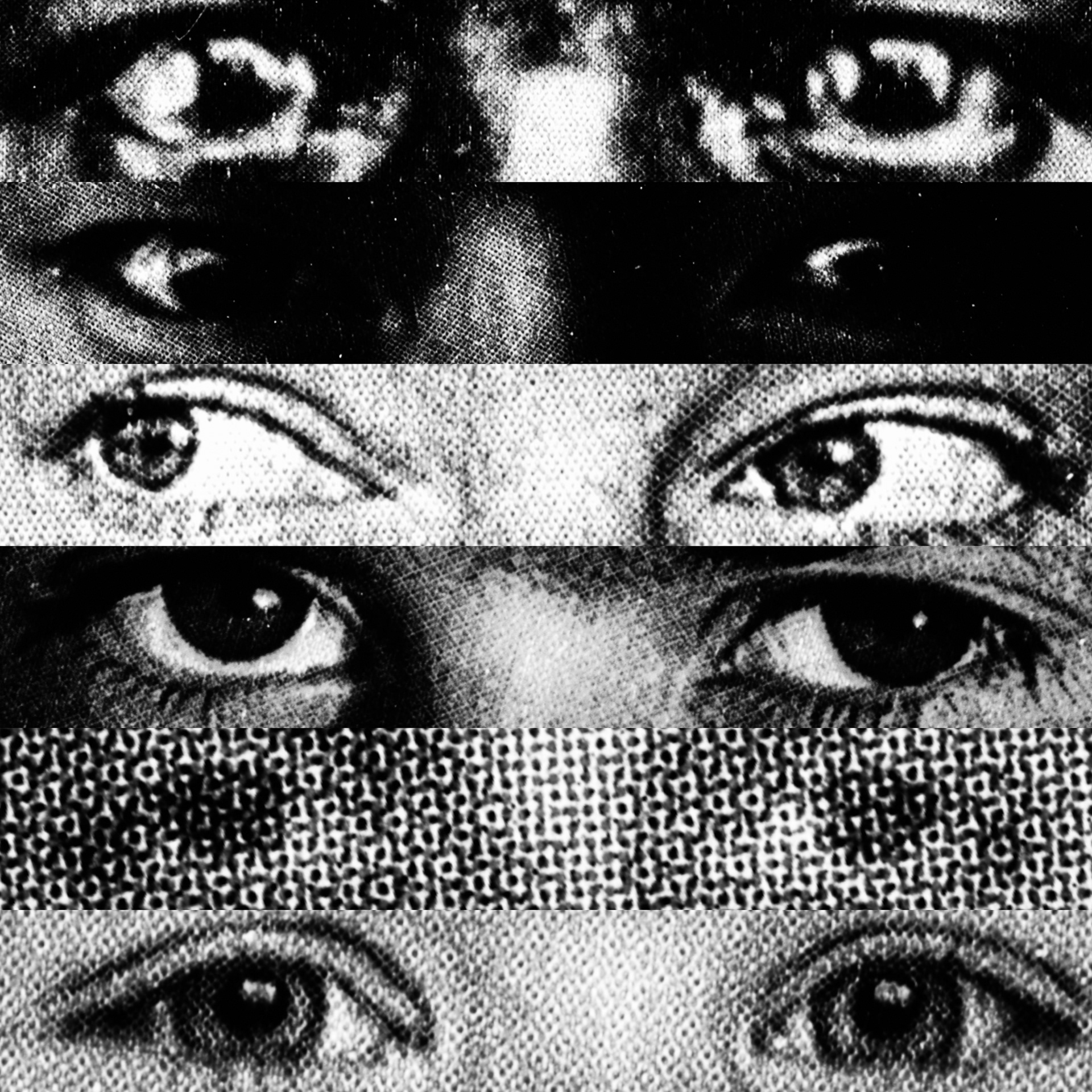 What emerges is a paradoxical visual contact: a mass of gazes that, despite being directed at the viewer, looks at nothing. Expressive intensity dissolves into its own multiplication, leaving only a weightless visual void that observes without seeing.