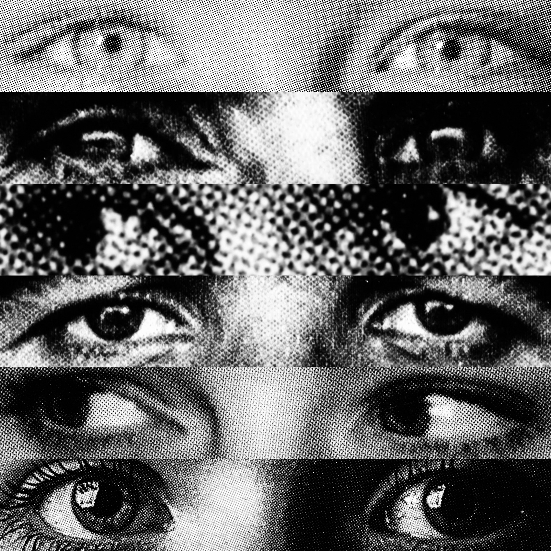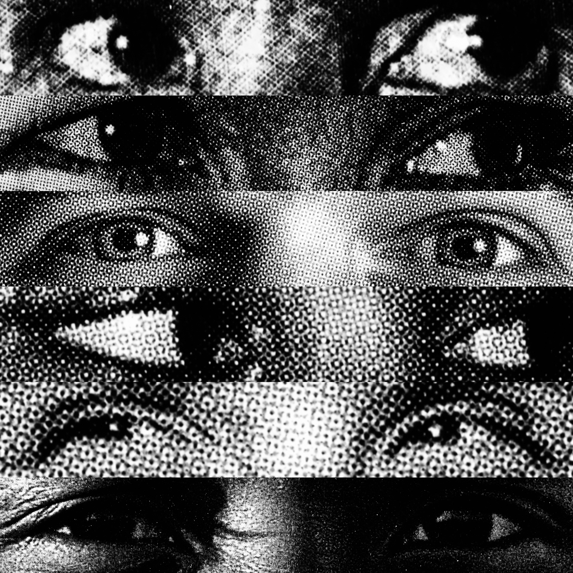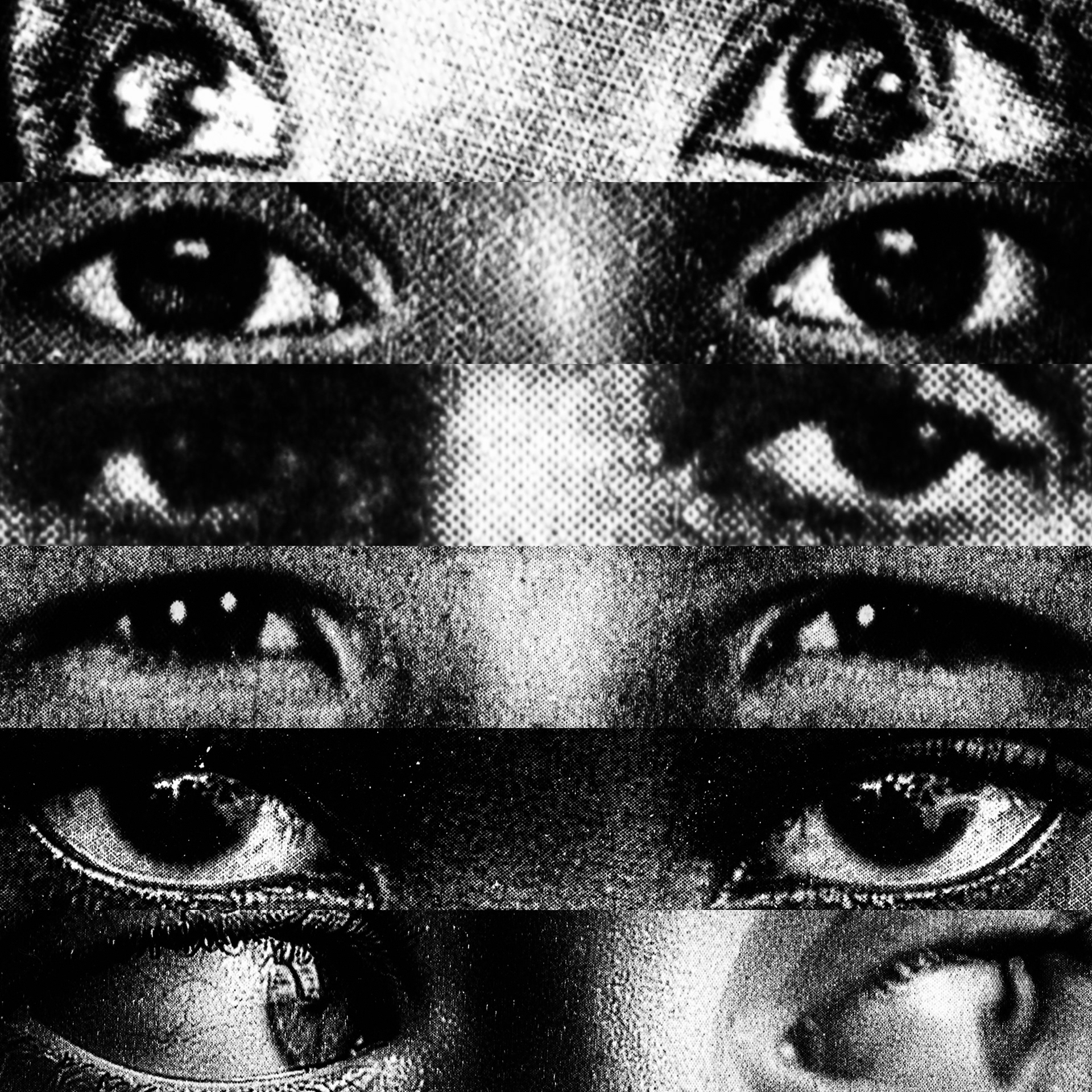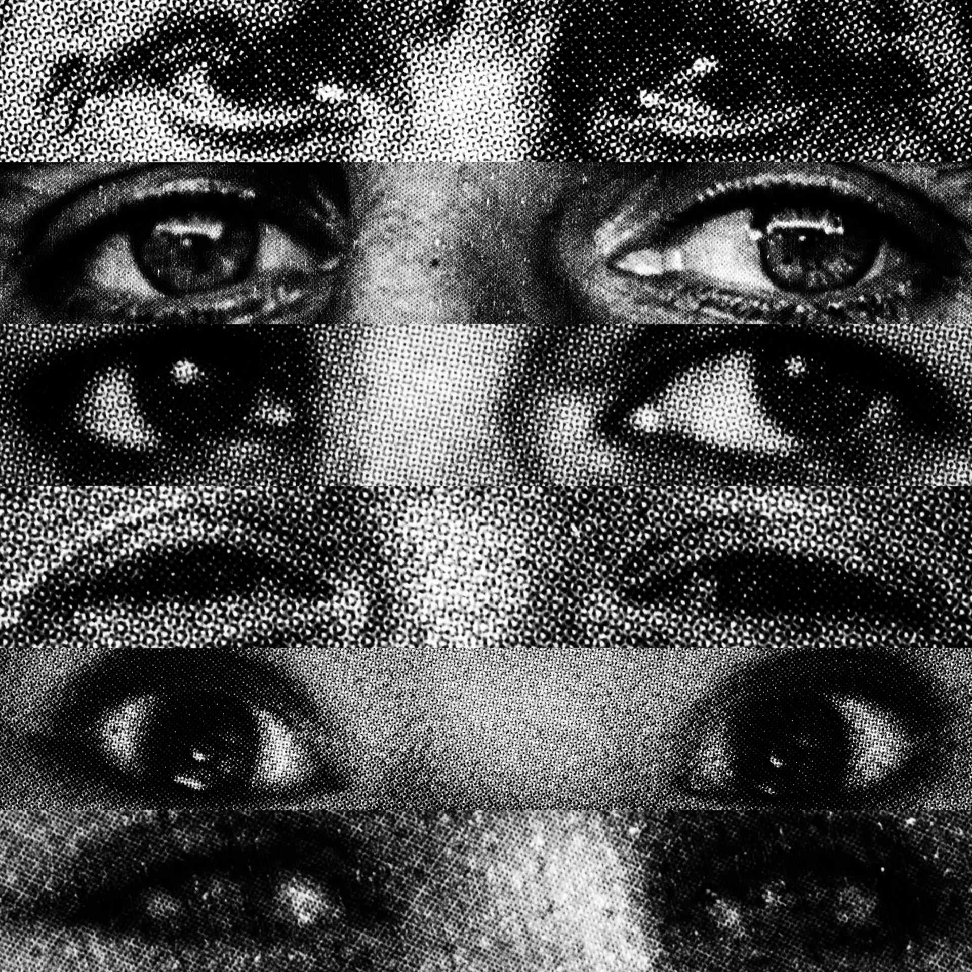 What emerges is a paradoxical visual contact: a mass of gazes that, despite being directed at the viewer, looks at nothing. Expressive intensity dissolves into its own multiplication, leaving only a weightless visual void that observes without seeing.