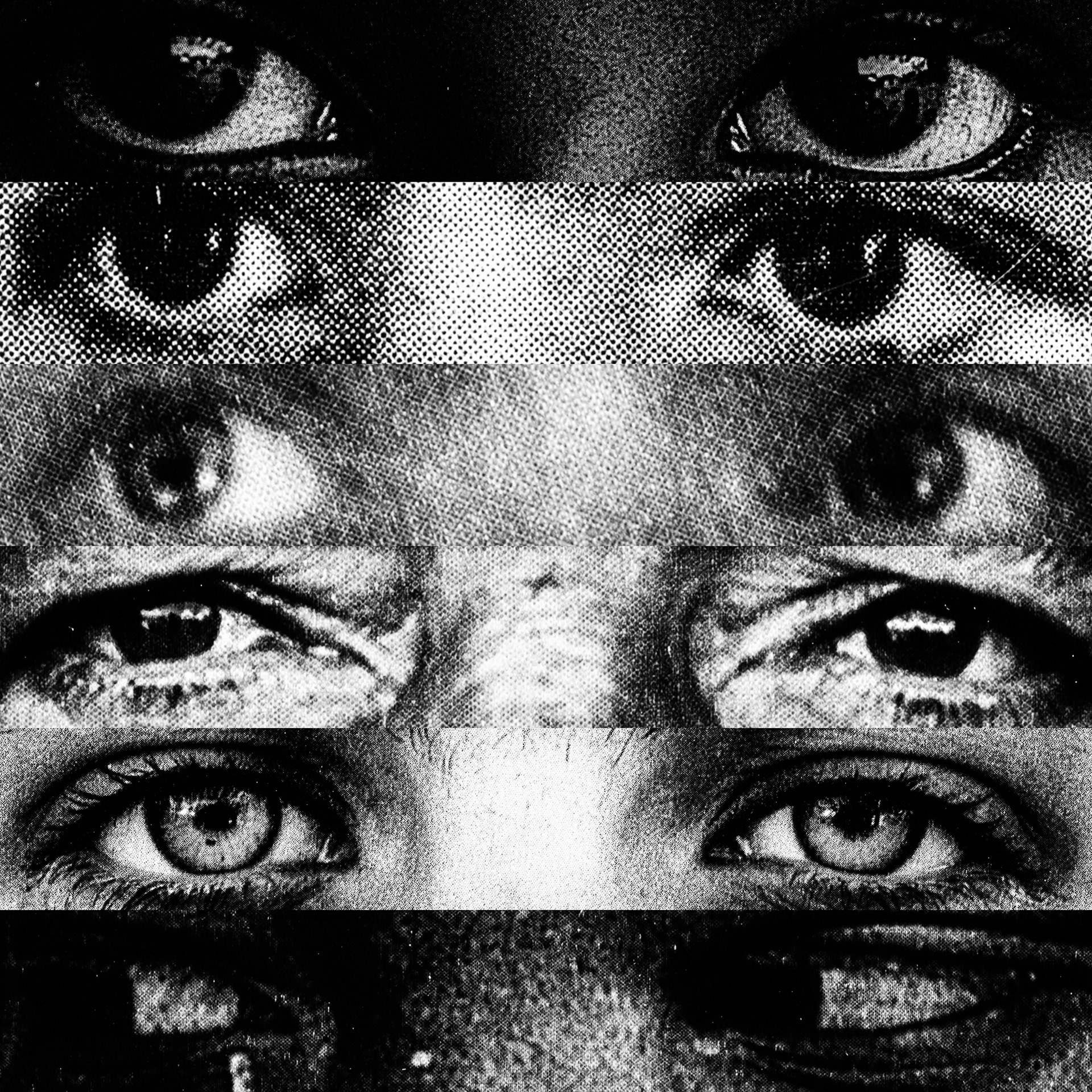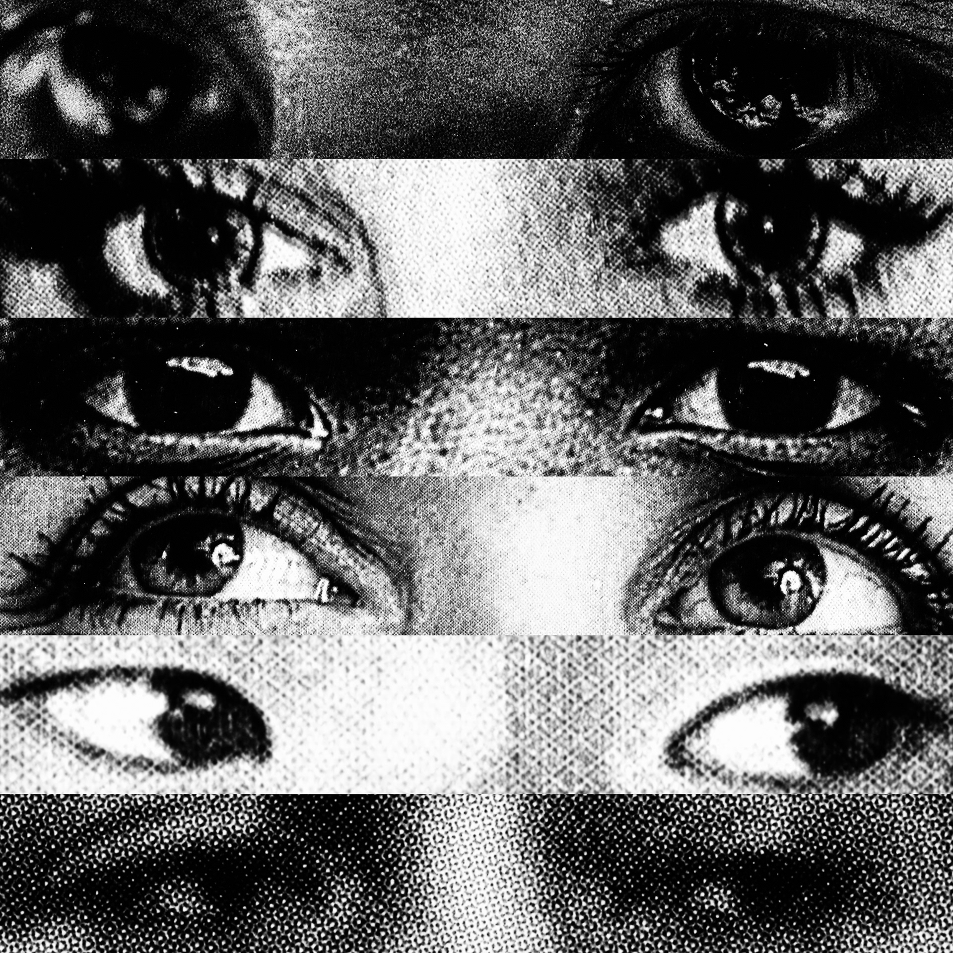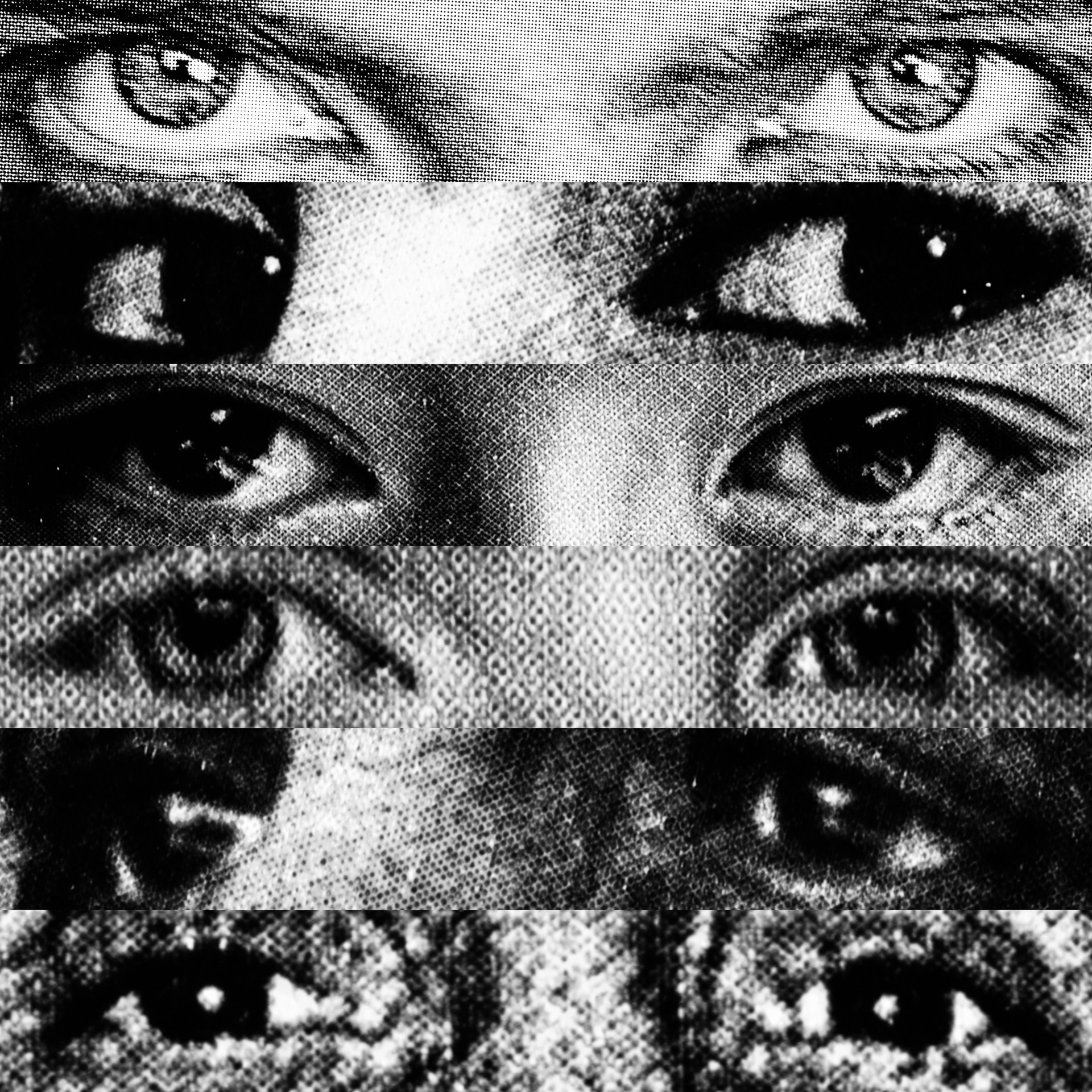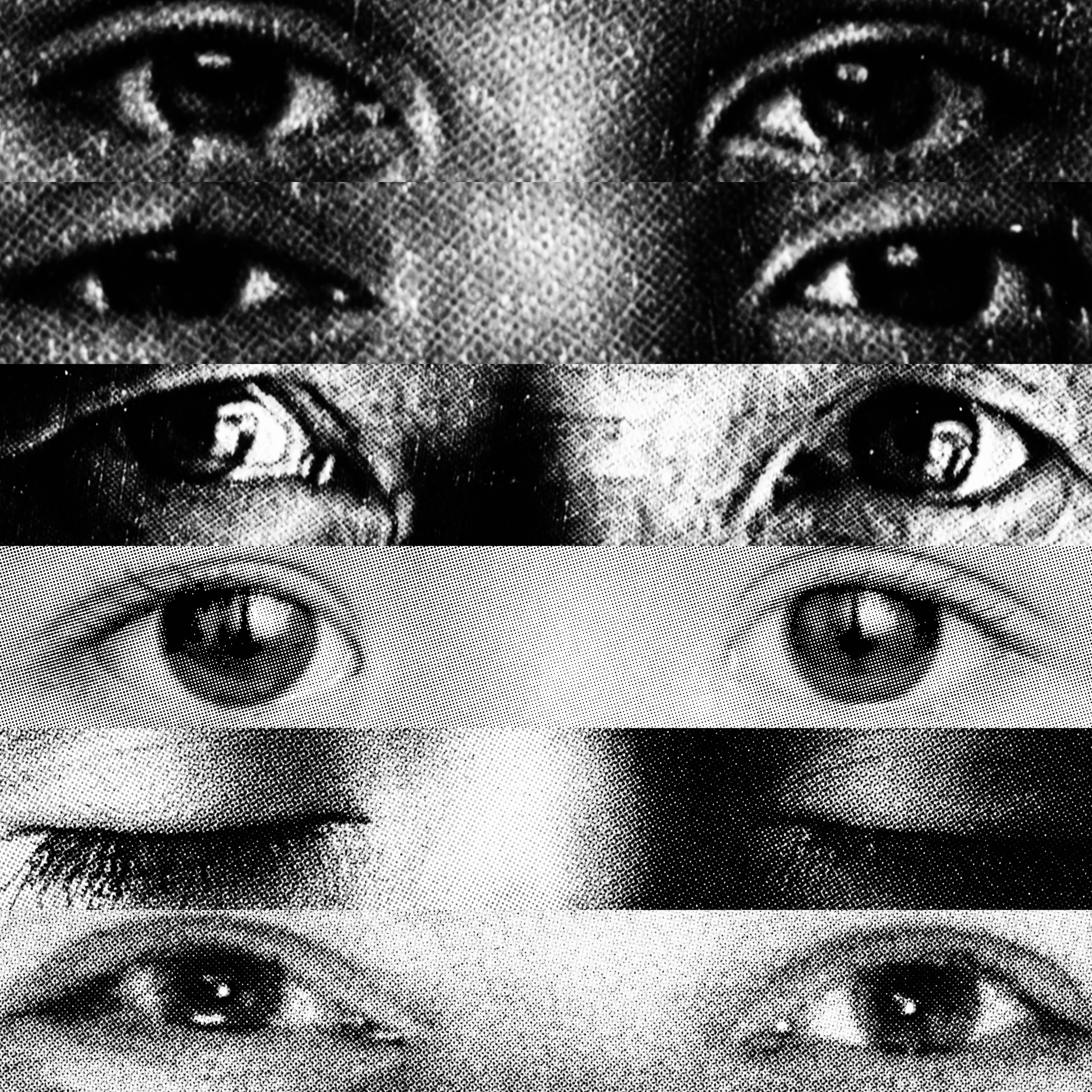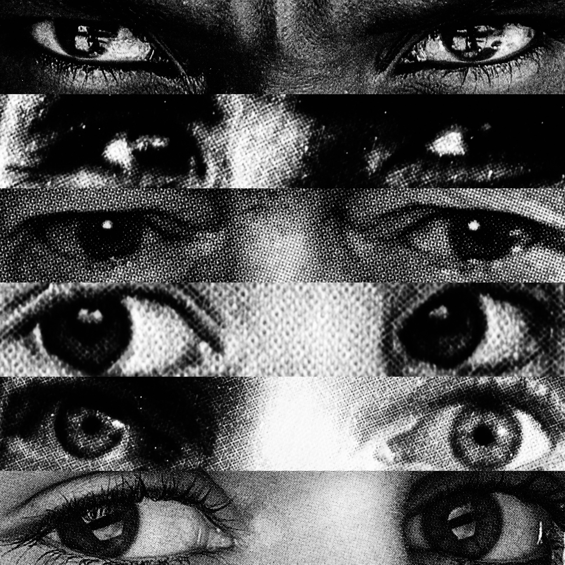 What emerges is a paradoxical visual contact: a mass of gazes that, despite being directed at the viewer, looks at nothing. Expressive intensity dissolves into its own multiplication, leaving only a weightless visual void that observes without seeing.