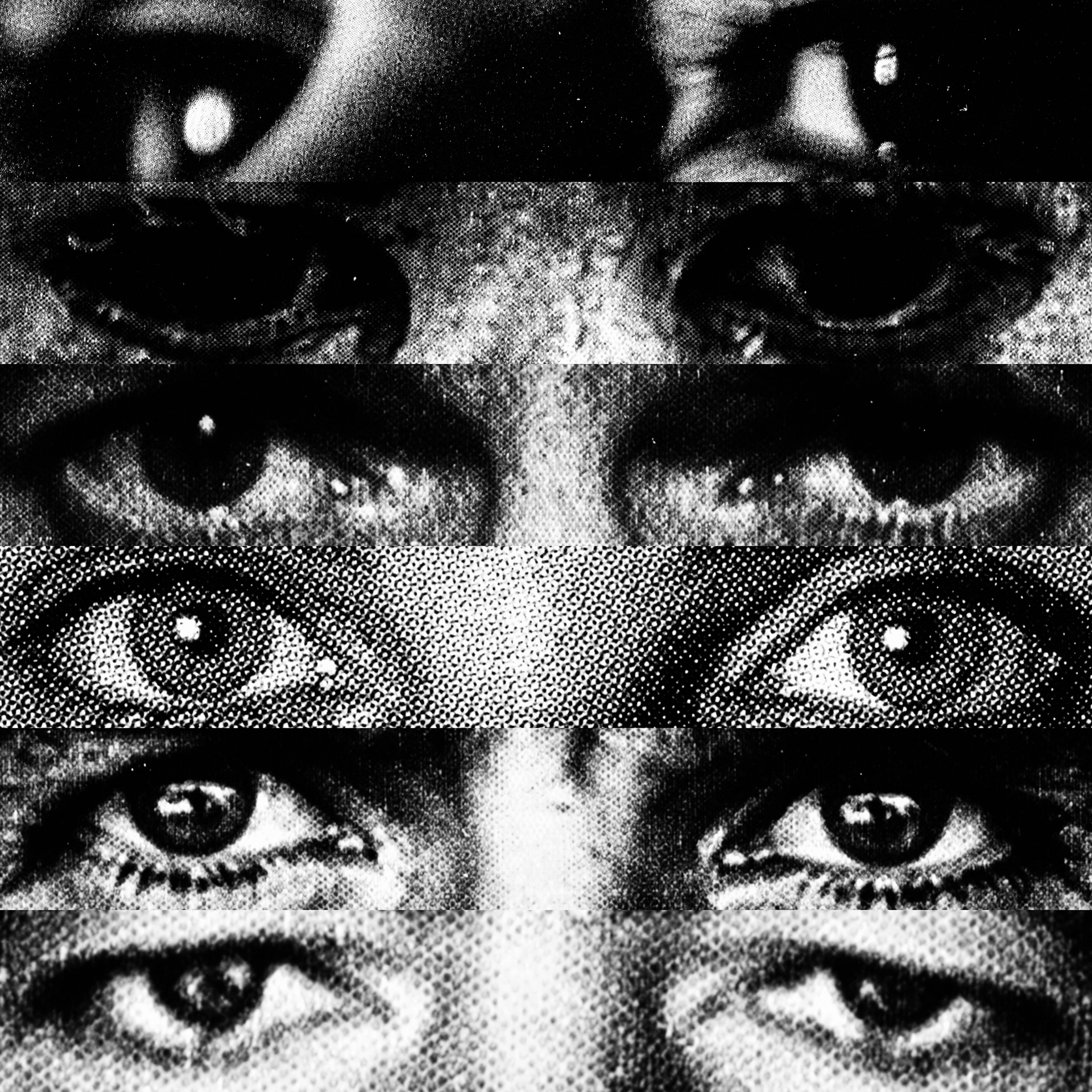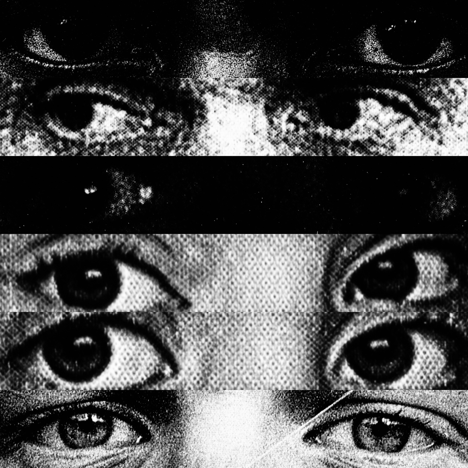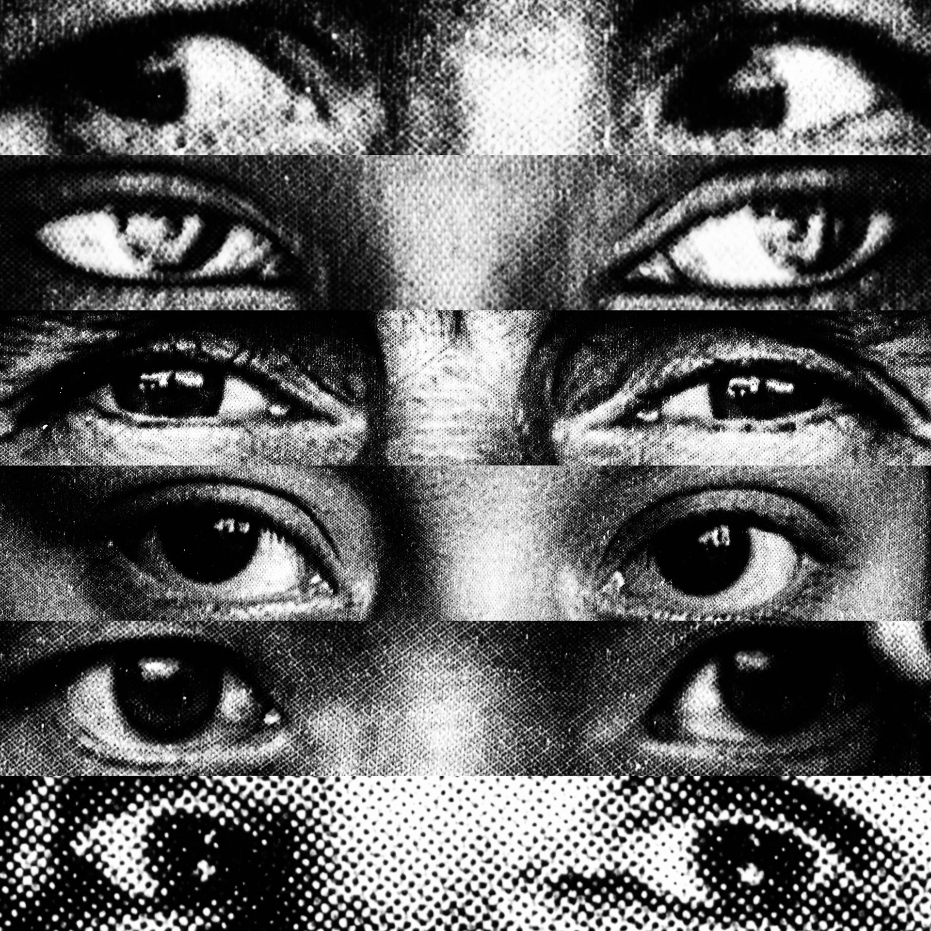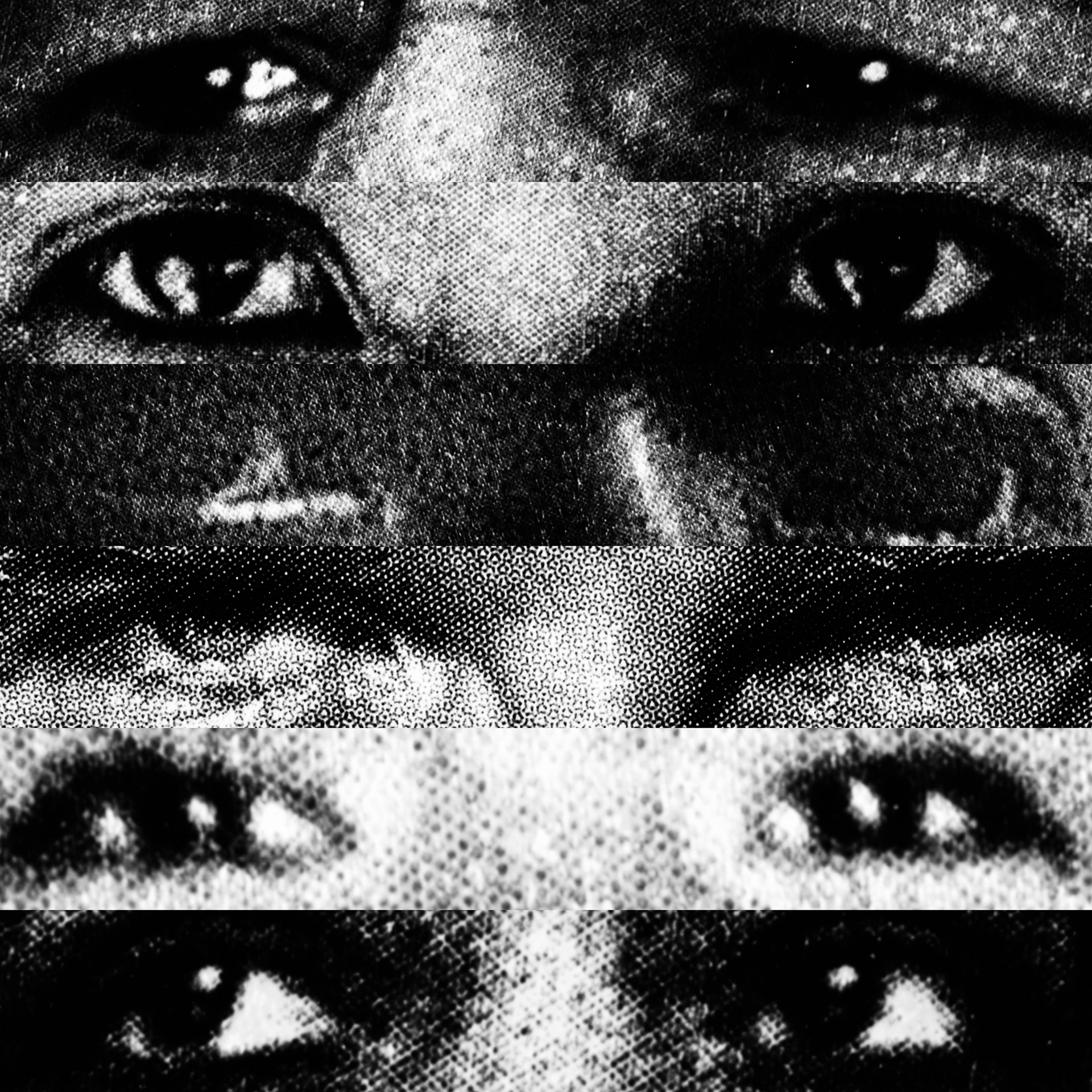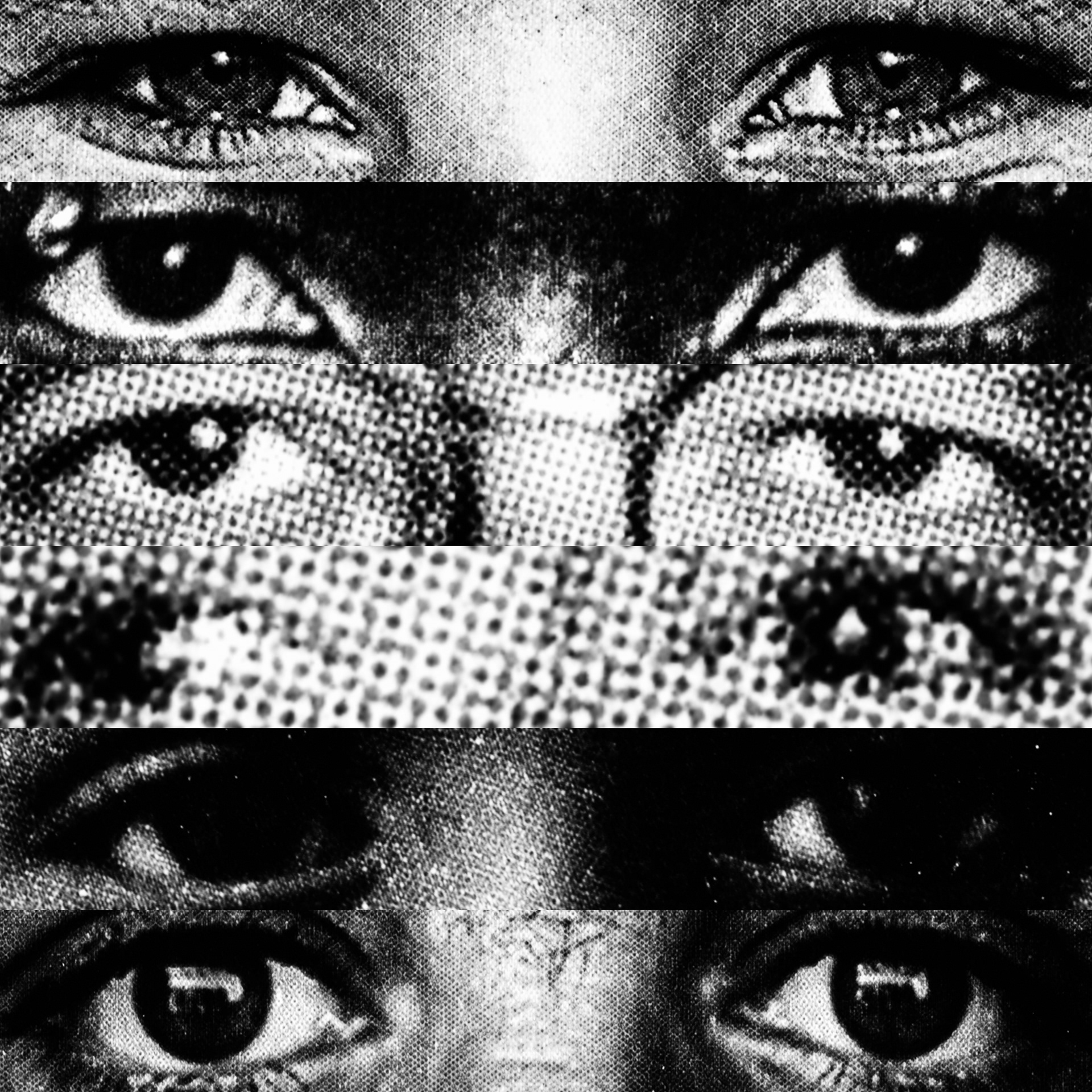 What emerges is a paradoxical visual contact: a mass of gazes that, despite being directed at the viewer, looks at nothing. Expressive intensity dissolves into its own multiplication, leaving only a weightless visual void that observes without seeing.